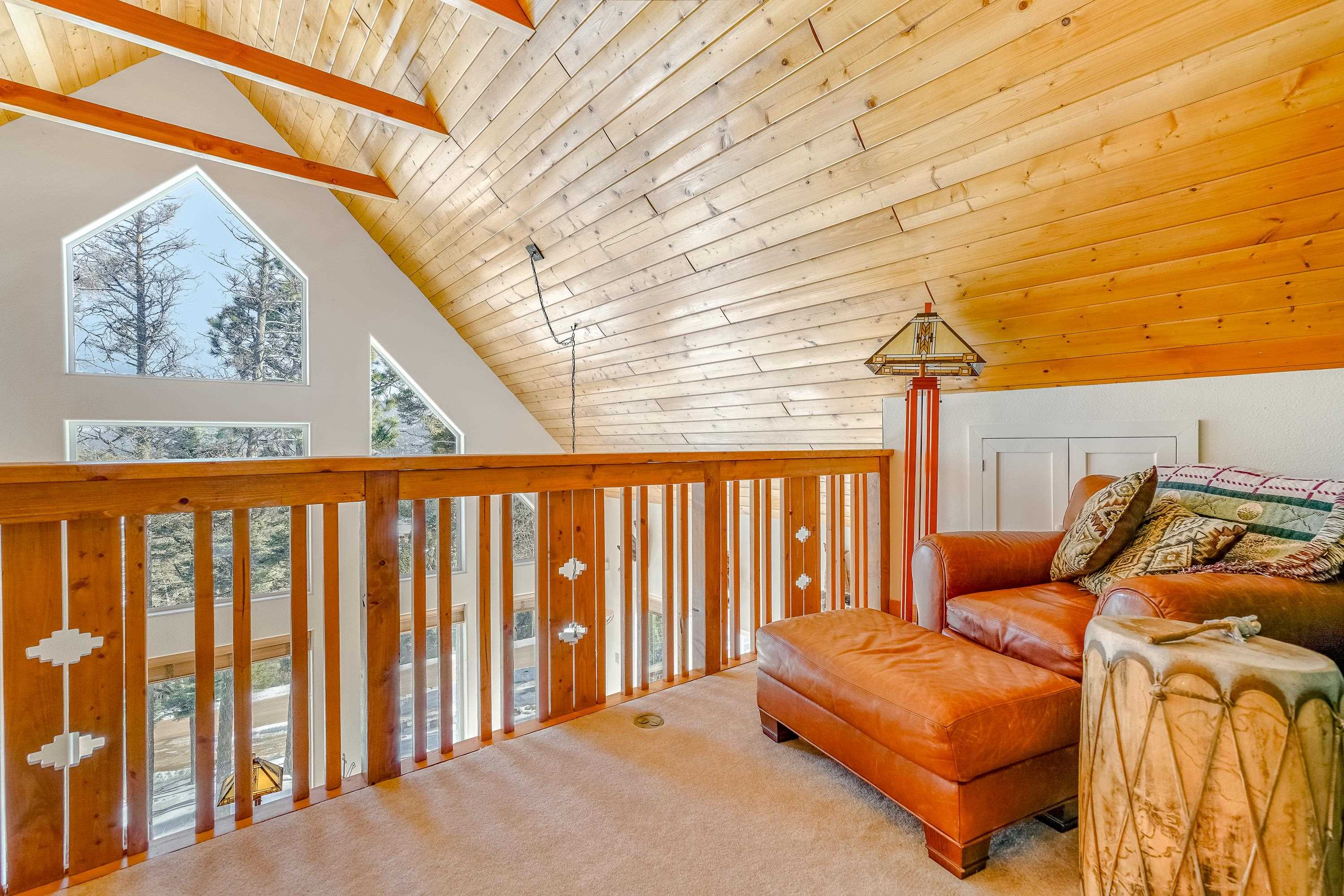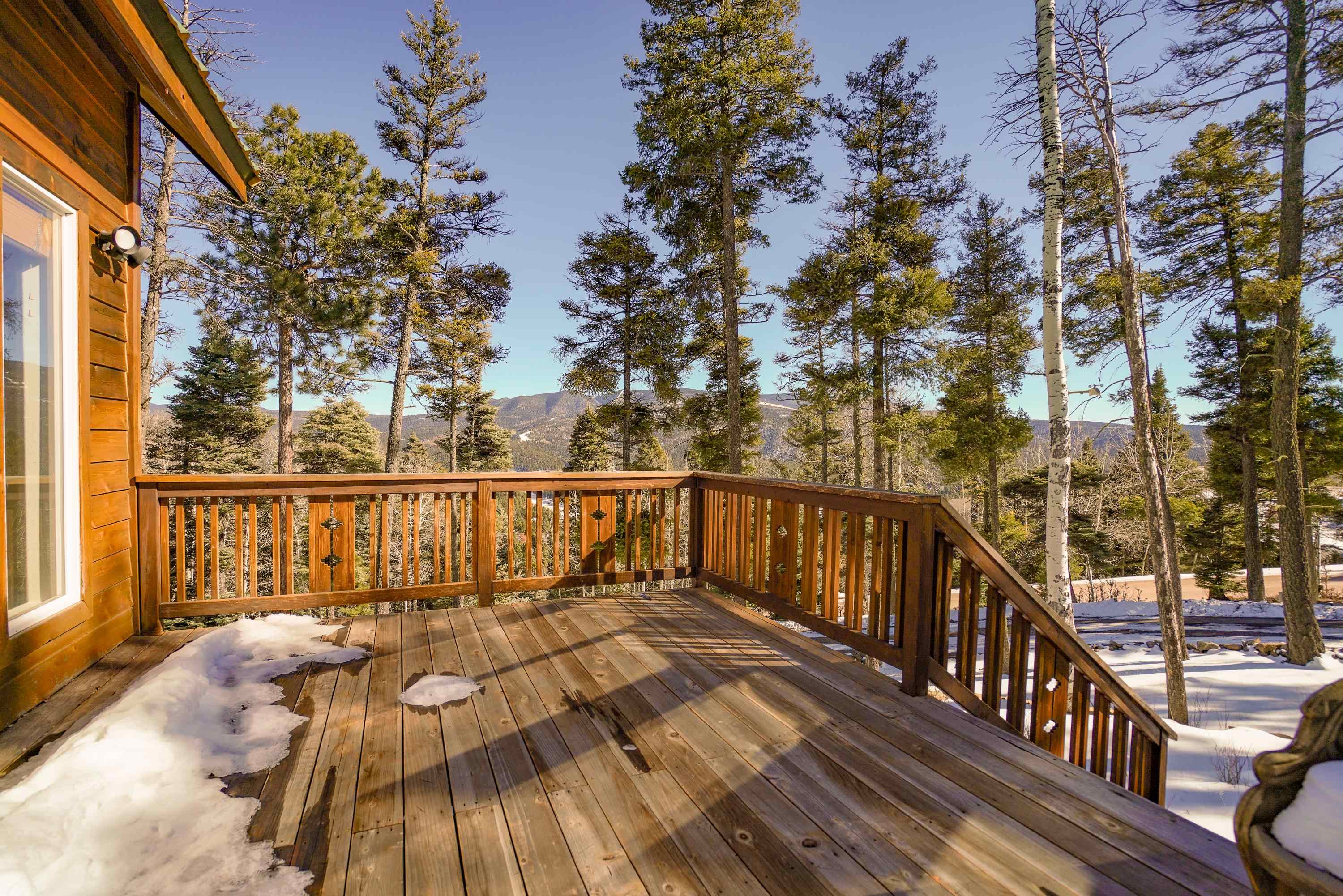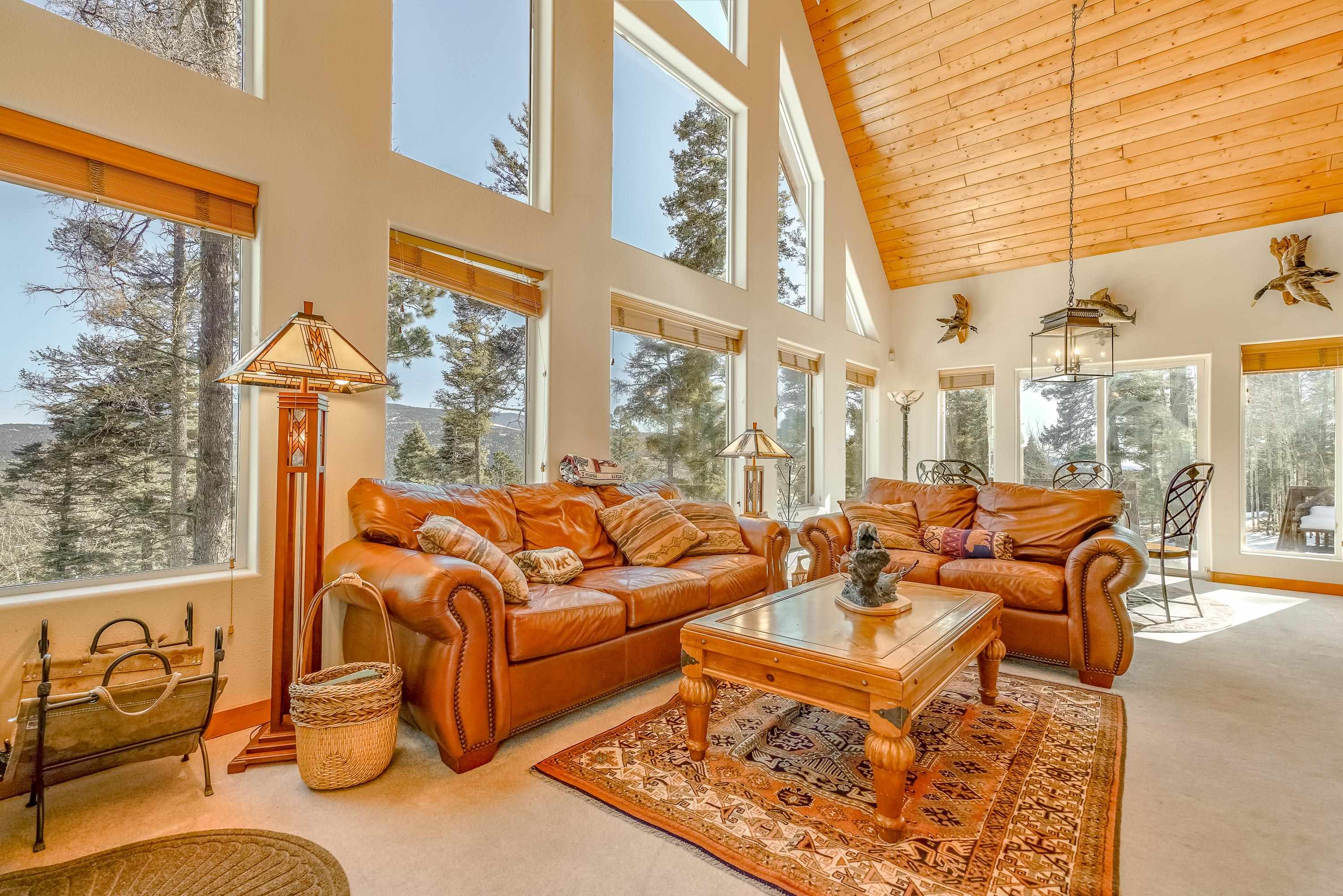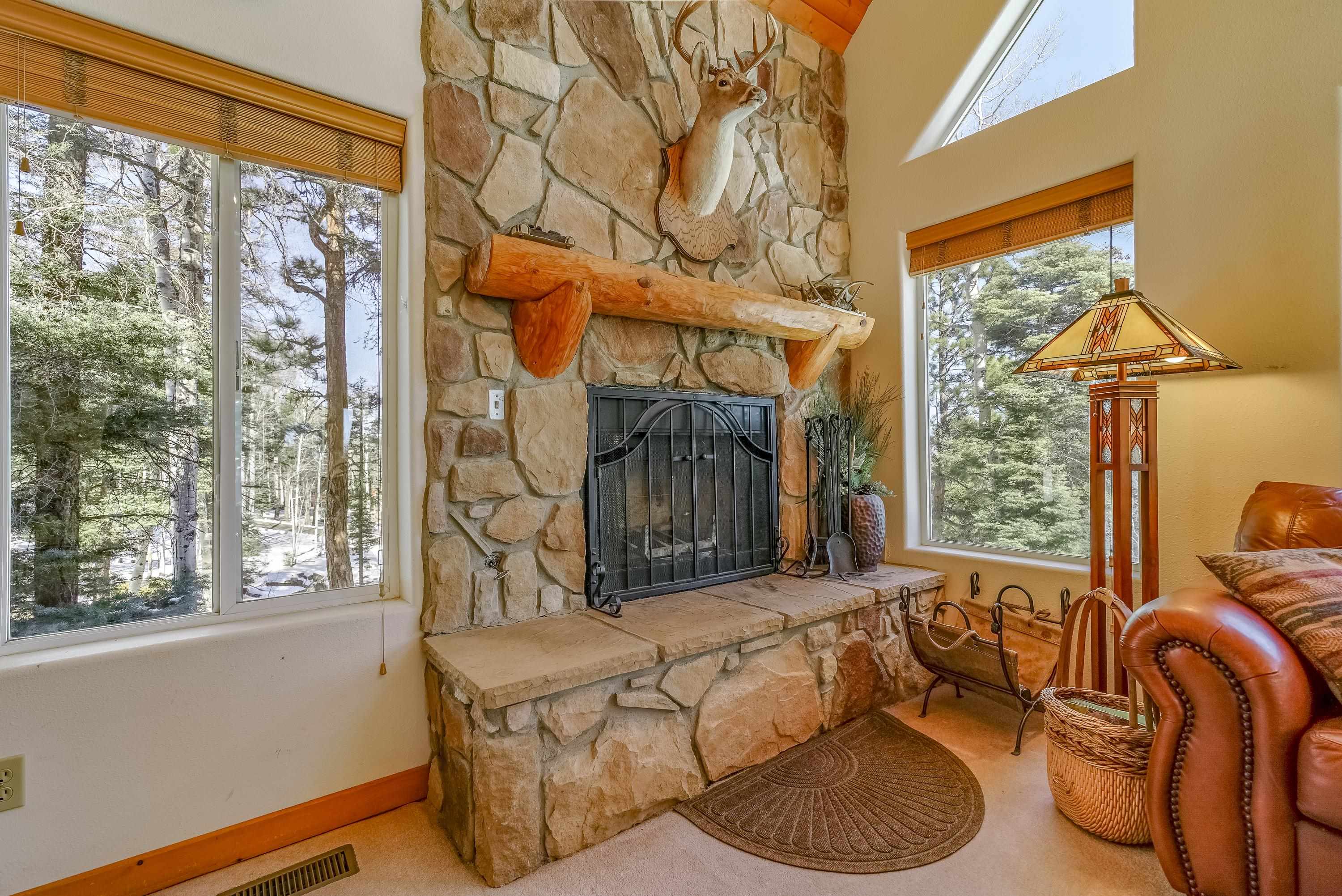 Take in big ski mountain views at 14 Sierra Blanca Cir. This inviting Angel Fire chalet offers a thoughtful layout and warm mountain character. The main living area is anchored by a wood-burning fireplace and framed by a stunning window wall that brings the scenery right into the home - perfect for cozy winter evenings and sunny mountain mornings alike. The main level features a comfortable flow with the kitchen, living, and dining areas, plus two guest bedrooms, a full guest bath, laundry, and an attached two-car garage. Upstairs, enjoy a loft space and a private primary suite with en-suite bath, creating a quiet retreat separate from the main-floor bedrooms. Currently operating as a rental and offering the classic Angel Fire lifestyle with quick access to skiing, golf, trails, and town amenities, this property is an excellent option for a mountain getaway, full-time living, or an investment opportunity with broad appeal.