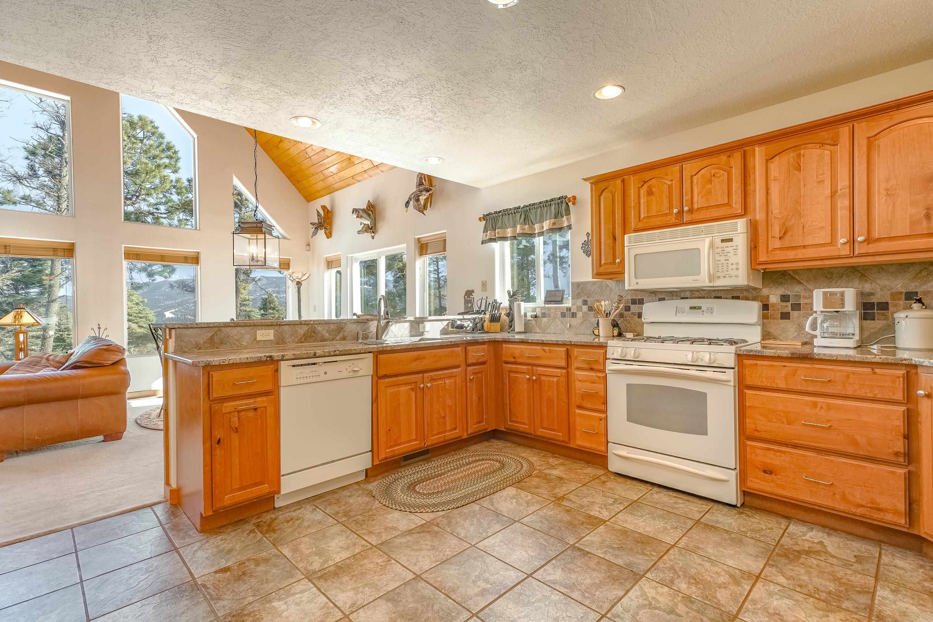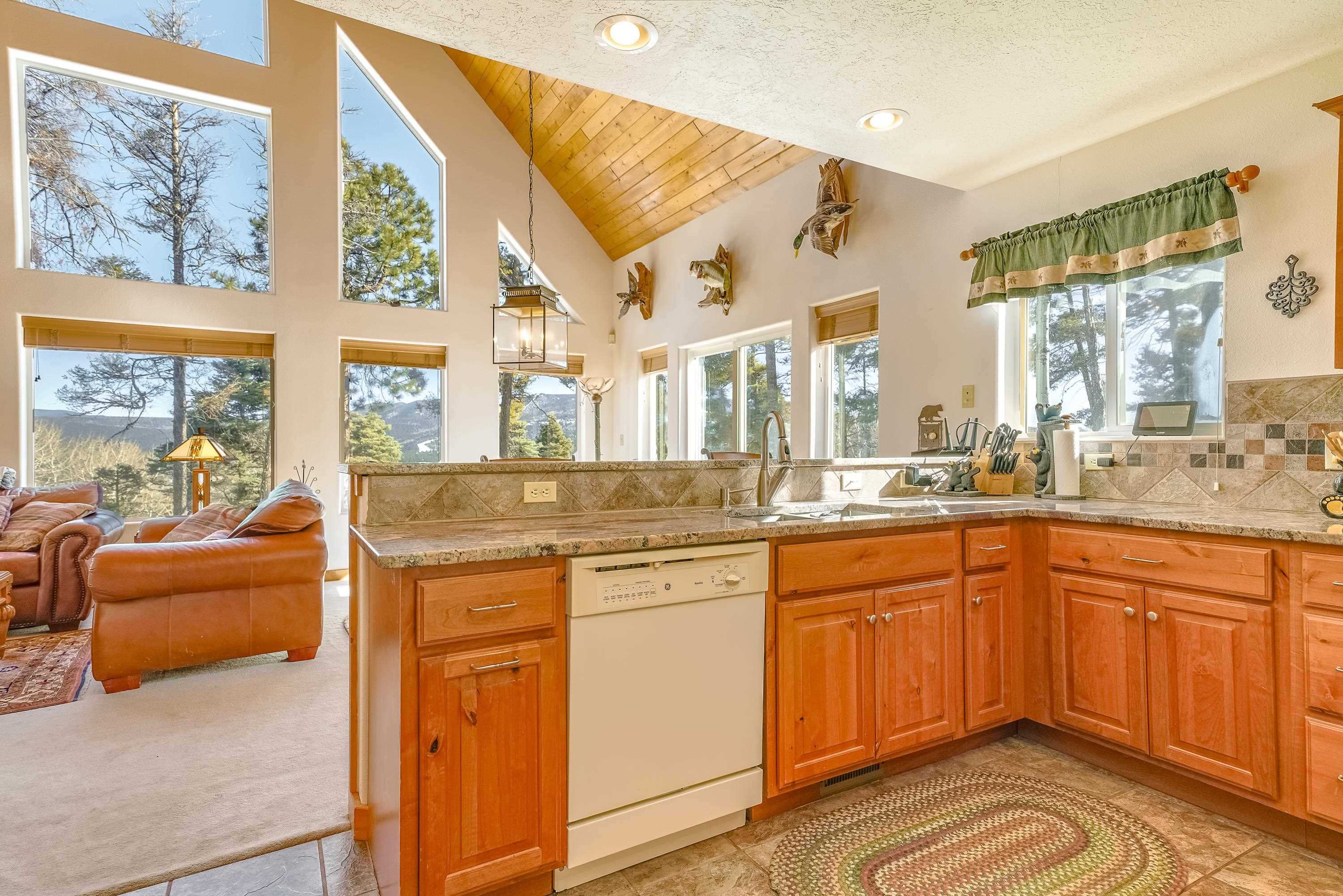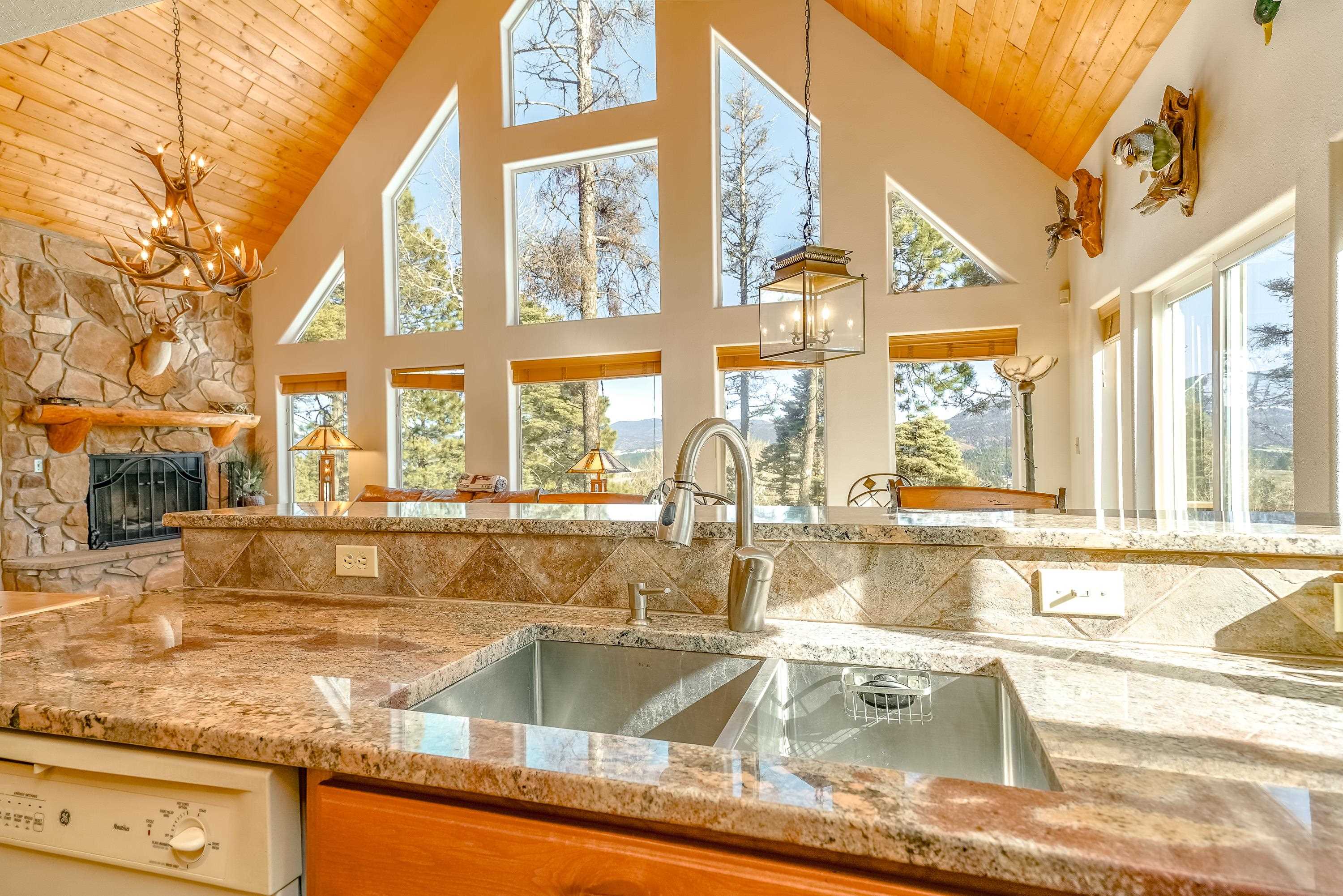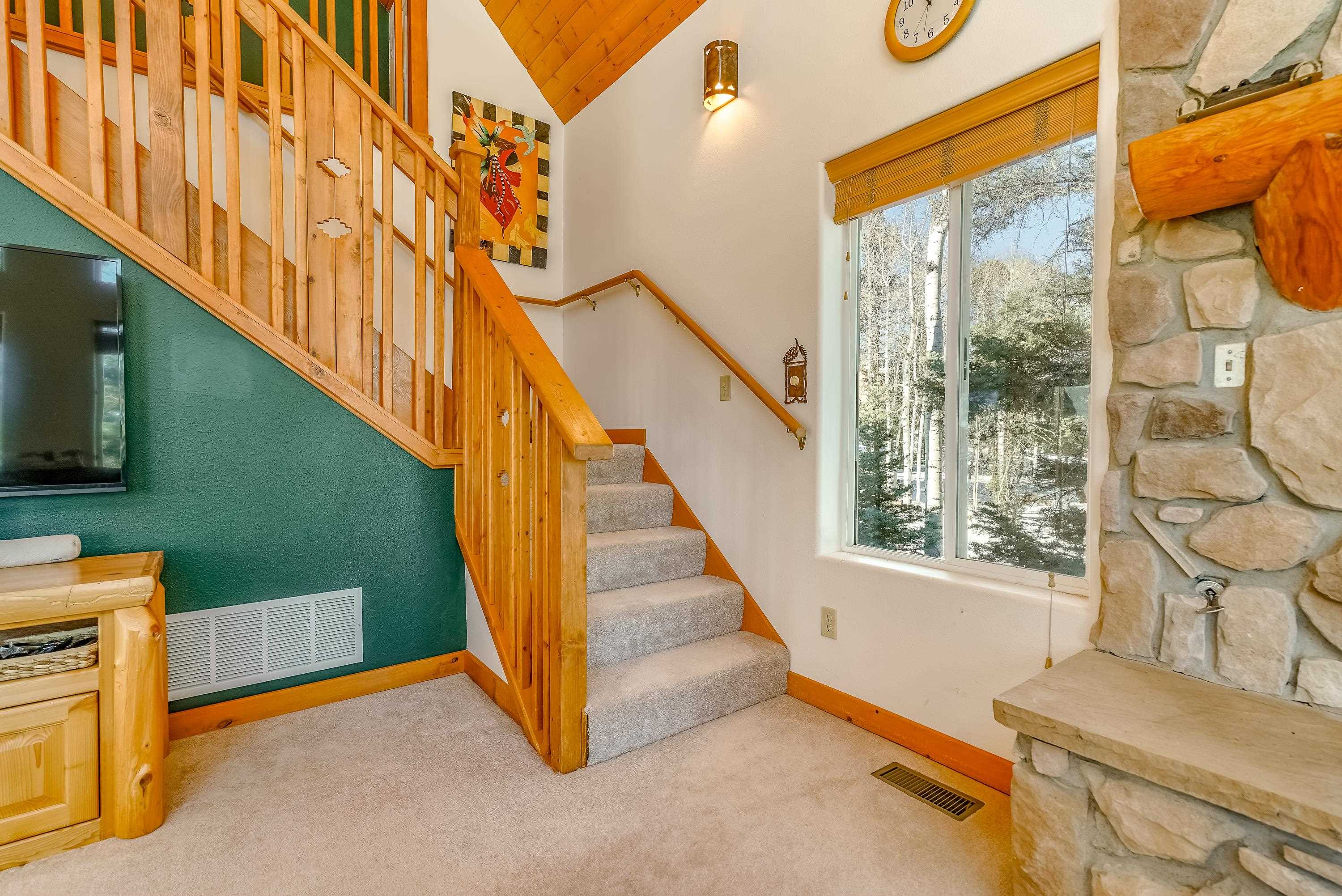 Take in big ski mountain views at 14 Sierra Blanca Cir. This inviting Angel Fire chalet offers a thoughtful layout and warm mountain character. The main living area is anchored by a wood-burning fireplace and framed by a stunning window wall that brings the scenery right into the home - perfect for cozy winter evenings and sunny mountain mornings alike. The main level features a comfortable flow with the kitchen, living, and dining areas, plus two guest bedrooms, a full guest bath, laundry, and an attached two-car garage. Upstairs, enjoy a loft space and a private primary suite with en-suite bath, creating a quiet retreat separate from the main-floor bedrooms. Currently operating as a rental and offering the classic Angel Fire lifestyle with quick access to skiing, golf, trails, and town amenities, this property is an excellent option for a mountain getaway, full-time living, or an investment opportunity with broad appeal.
