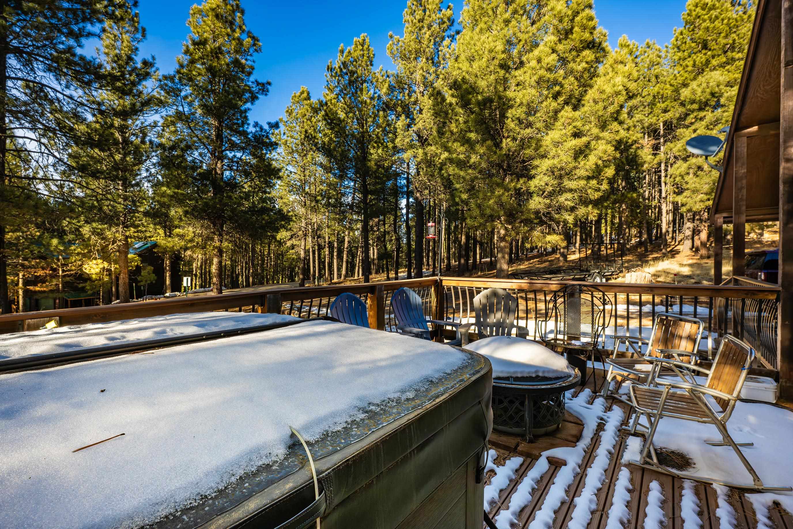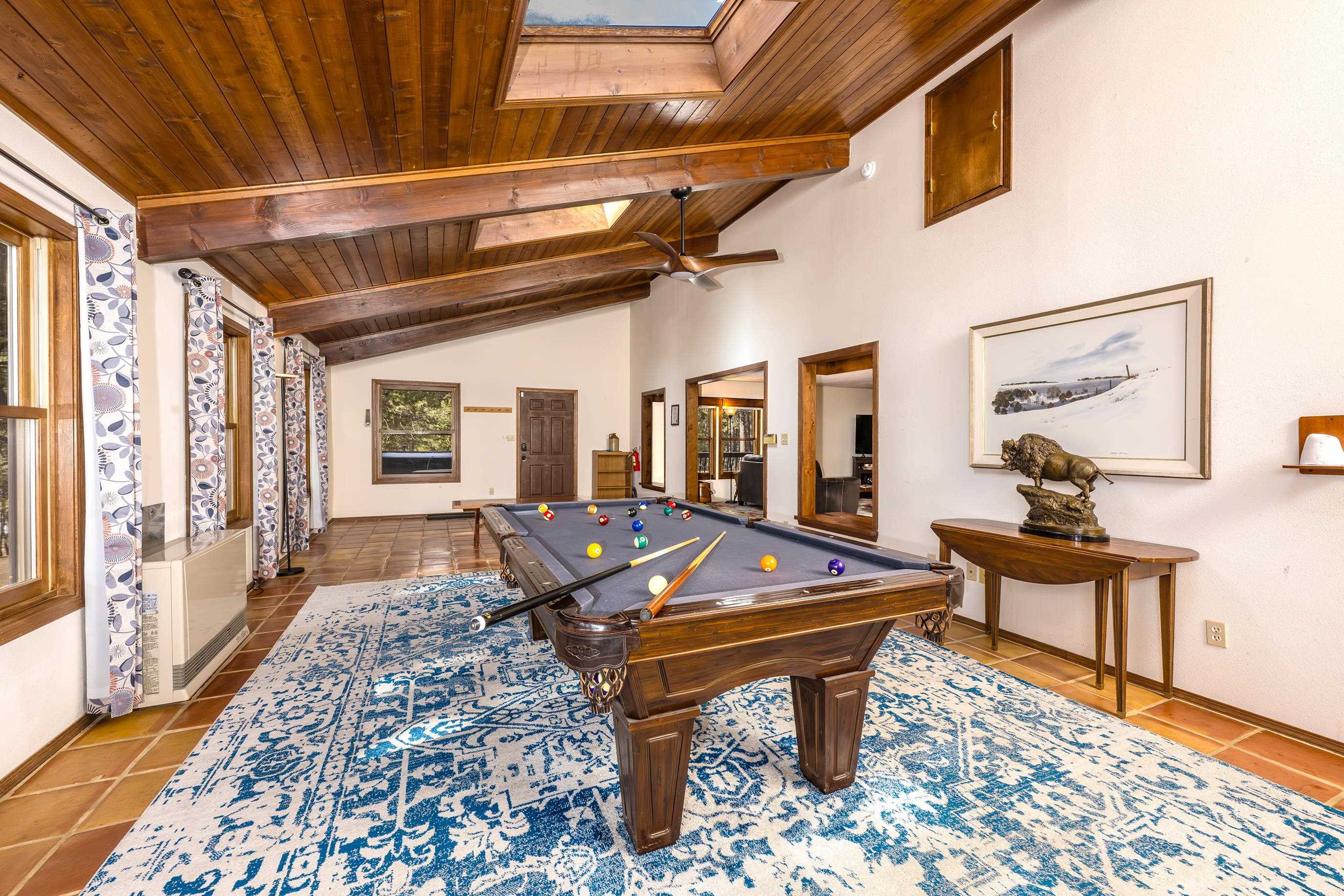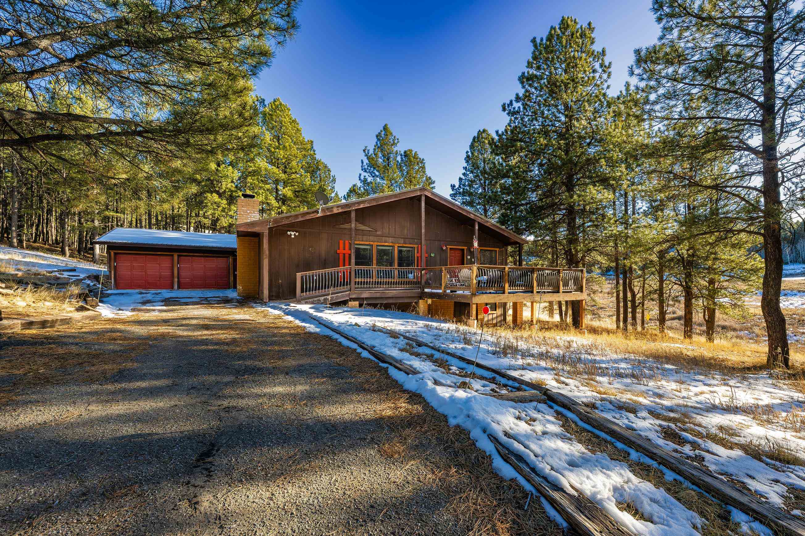 Spacious and inviting, this 3,300 sq ft mountain home is just five minutes from all of Angel Fire Resort's top amenities. Featuring 5 bedrooms and 3 bathrooms, the home offers plenty of room for family and guests, with three separate gathering areas, including a game room with a pool table--perfect for entertaining. The heart of the home is the warm and welcoming living space, anchored by a stunning large stone fireplace where everyone can come together after a day of adventure. After skiing, golfing, or mountain biking, unwind in the hot tub or gather around the fire pit on the expansive deck, ideal for enjoying cool mountain evenings. The primary suite is conveniently located on the main level, offering easy access and comfort. Additional features include a two-car garage and a rare bonus: with the right offer, the Jeep, SXS, and trailer can be included. All of this sits on a level one-acre lot--no steep hills to climb--making year-round access easy and stress-free. This is a true mountain retreat with space, comfort, and unbeatable proximity to everything Angel Fire has to offer.