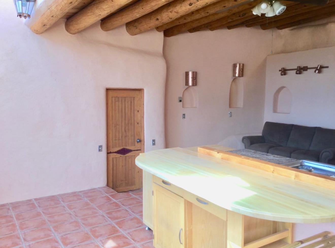 An Earthship (Aloe Vera House) as the main house, shared wall with the Casita (Rosemary Casita), and a Studio (Turquoise House) as a separate guest house with a barn, five stalls, corrals, and extra space to expand with ~2 empty acres of land. All income producing properties could bring in $6,000 per month with all three rented out. The Aloe Vera House has the furthest entrance with a private fenced-in yard and a sliding door to the living room or possible second bedroom. Insert woodstove in the kiva fireplace for toasty warmth with your honey on cold nights. A few steps down to the Master Bedroom, two closets (His and hers etc.), and a beautifully lit bathroom with a skylight. This home was re-stuccoed three years ago and is in great shape/well-maintained/loved. The open concept dining, kitchen and possible mini-living room allow lots of storage with a wash room/pantry off the kitchen and a foyer to the front door. Completely remodeled kitchen! Move-in ready or investment property with current tenants. A shared mechanical room to the Casita, fiberoptic for the whole building, and an on-demand water heater for you or your tenants! The Casita also has a private entrance so nobody really sees each other in passing. As you enter the Casita you step into another foyer for your shoes and coats and a kitchenette with two hot plates mounted on the counter with a mini double-oven included. The Pantry/closest is a tri-level design hidden behind the mini living space! The tri-level loft bedroom is cozy and built above the pantry. Laundry on-site for tenants at the Turquoise House next door. The bathroom is the star of the show at the Casita with a stunning rock tub and rock features. Natural light doesn't disappoint! The Studio Turquoise House has been transformed into an Artist's Dream with a huge open studio space, woodstove, office space, propane heater and a loft bedroom. The second half of the studio is the living space with a full kitchen, full bath, living room, and bedroom with a reading nook for your bookshelves and office space. The Turquoise House has two outdoor seating areas - one in the front for extra sun and one in the back for shade and sunsets on the mountains! About 2-3 acres of the property comprise of corrals and the barn. Hiking and riding trails nearby and possible investment behind the property - 50,000 acres! Full of history, beauty, infinite ideas, and creativity for a new owner to take over current leases or to turn this dwelling into your mini universe of divine energy!