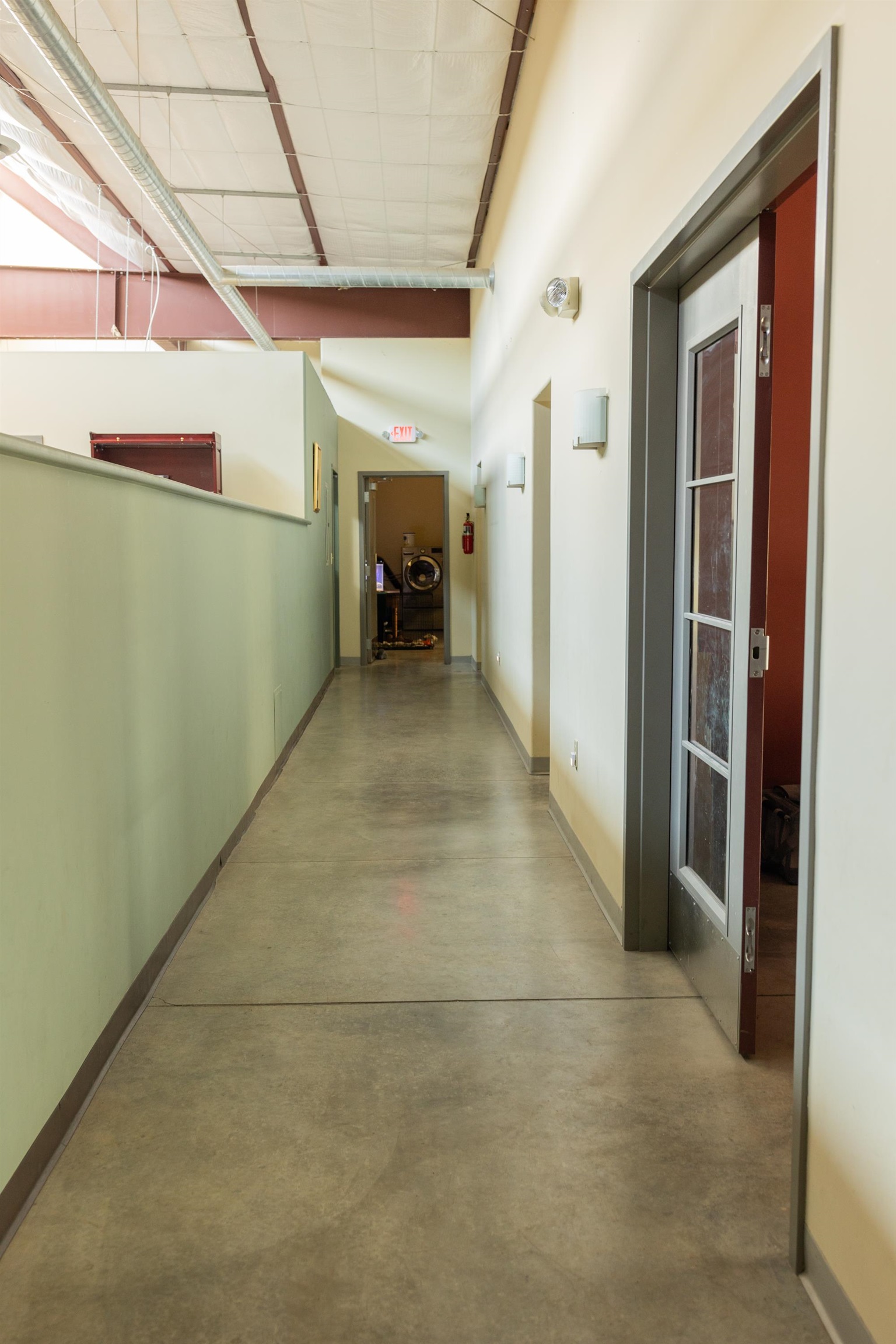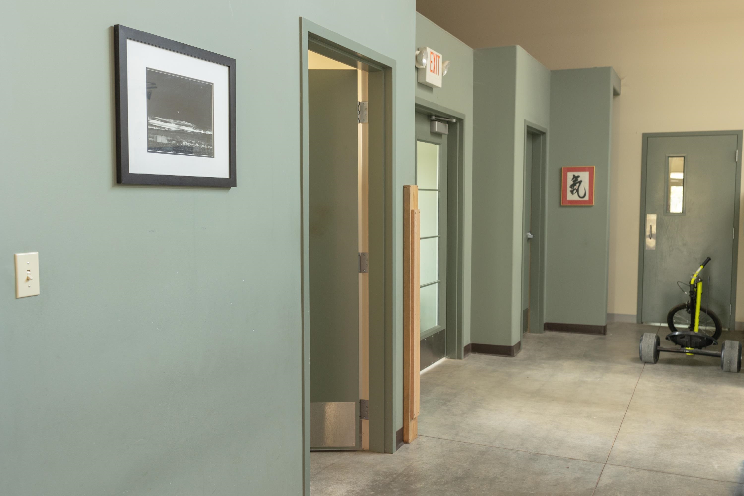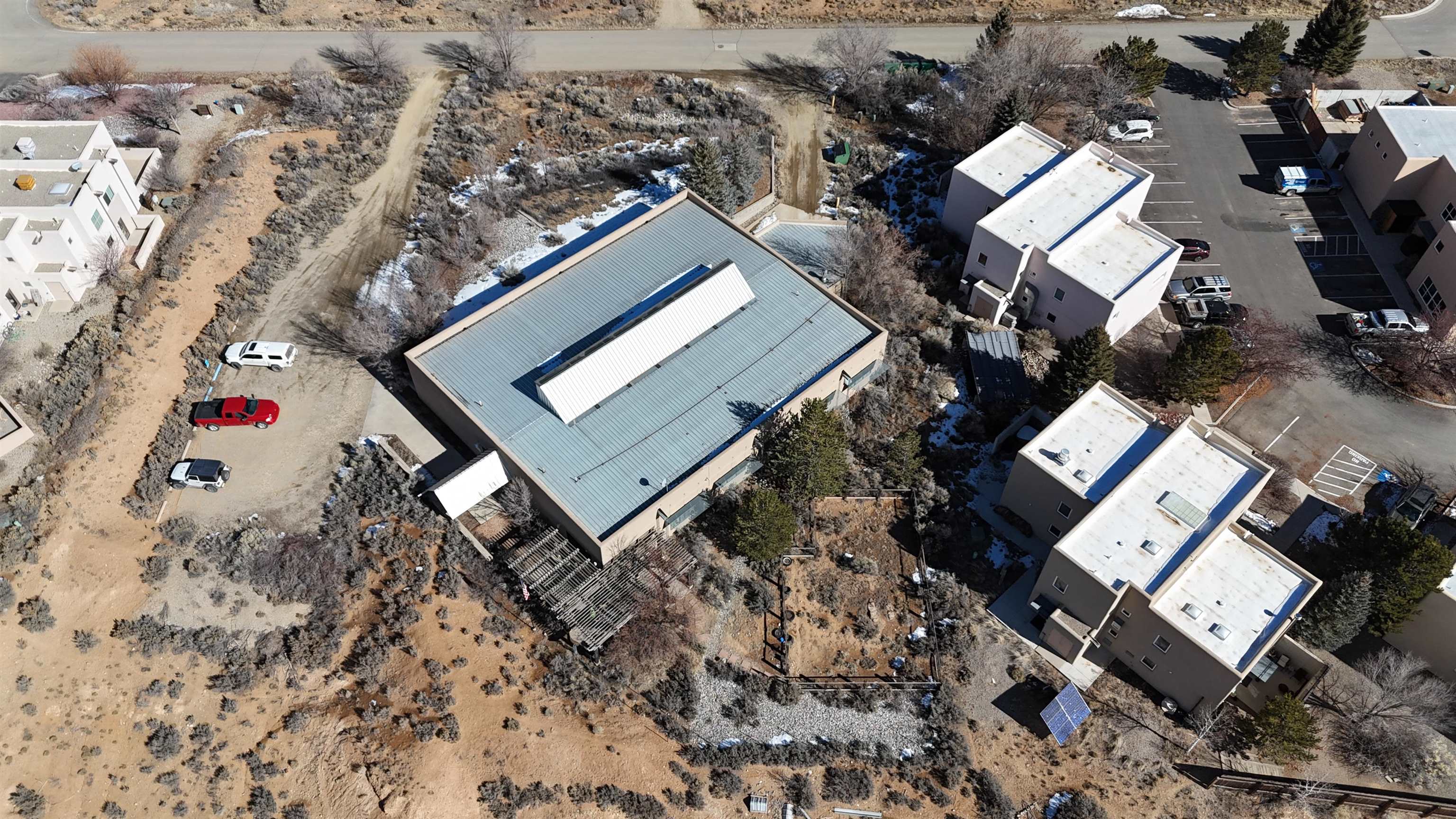 This building was designed and built as a working warehouse and distribution center for a book publishing company, using sustainable development principles. There are many natural and harmonious features allowing an aesthetically pleasing environment for future occupants. High ceilings and large clerestory windows provide diffused natural lighting throughout, while the lower windows are operable and shielded to reduce solar gain in the summer. Insulated walls of R-28, and R38, in the roof, maintains comfort and control inside. Efficient lighting, radiant heated floor zones, low volume plumbing fixtures and energy efficient controls systems, make this property a pleasure to own and operate. The exterior grounds are landscaped and irrigated with drought resistant plants and structured to take advantage of the how the elements impact the building over the course of the year. Passive solar gain on the south side into offices, conference and lounge areas. Small exterior patio off lounge provides outdoor seating and recreation area. Inside, the building is designed as open offices and meeting areas, a library or large conference room, several private perimeter offices, a common kitchen area, two large bathrooms, and several clean and well lit storage and delivery areas. There is also a second commercial kitchen, with many appliances in place near the loading area.