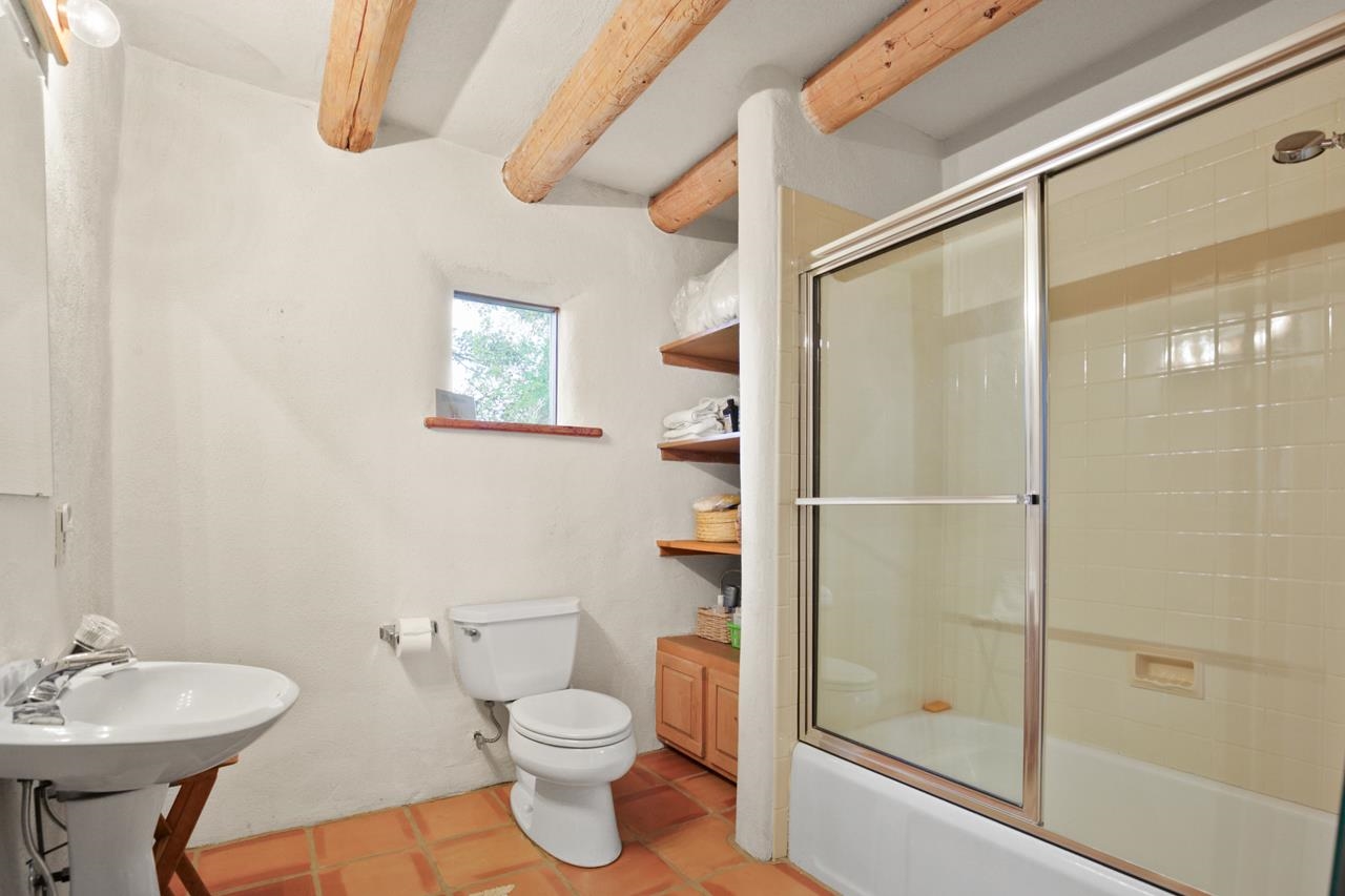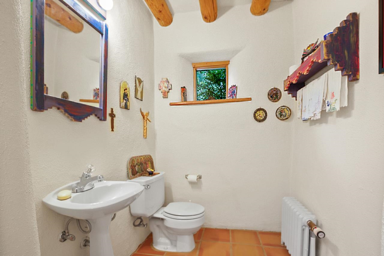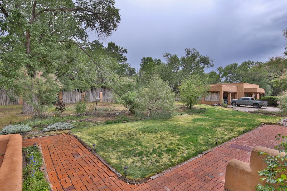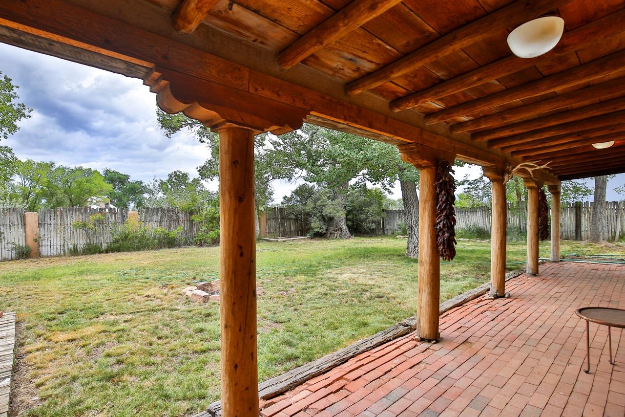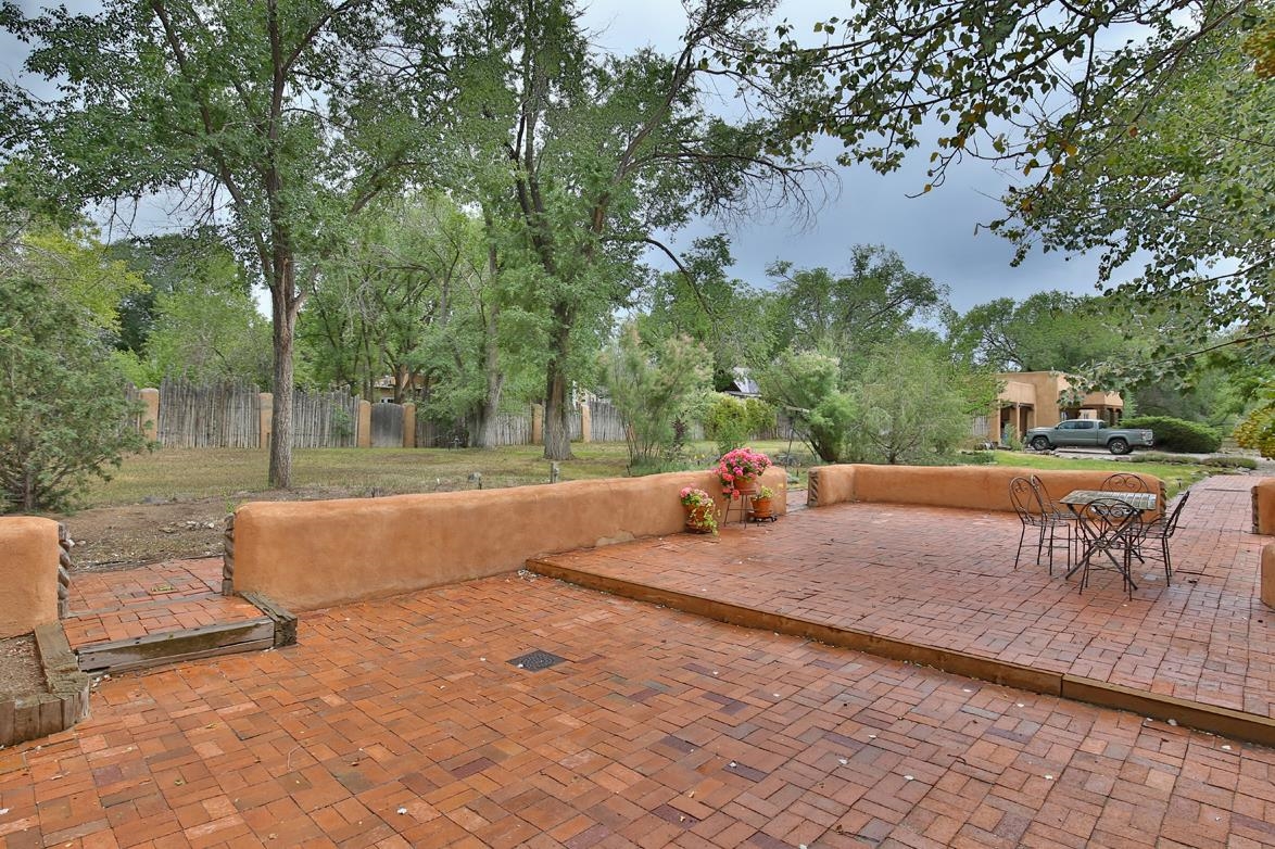 Privately set on 5.33 irrigated acres at the south end of Taos, this rare over-100-year-old, double-thick adobe estate offers enduring craftsmanship, warmth, and authenticity that cannot be replicated. Originally built in 1928, the substantial adobe walls provide exceptional insulation, quiet, and structural presence--hallmarks of true historic Taos construction. The home features seven traditional kiva fireplaces, creating warmth, character, and ambiance throughout multiple living spaces. A gracious central hallway serves as a gallery-style entrance, ideal for art display, and connects spacious rooms that flow naturally for both everyday living and entertaining. The kitchen, breakfast nook, formal dining room, library, and office provide a flexible and functional layout with room to gather or retreat. With four bedrooms, three with ensuite baths, the home offers comfort and privacy for residents and guests. An attached art studio with a two-car carport adds versatility and presents an excellent opportunity for conversion into a guest casita, creative studio, or private retreat. The expansive acreage and irrigated land create a true compound setting, offering ample room for future improvements such as additional guest structures, gardens, or recreational spaces (subject to approvals). Rich in history, substance, and potential, this distinctive adobe property represents a rare opportunity to own an authentic Taos estate with room to grow.