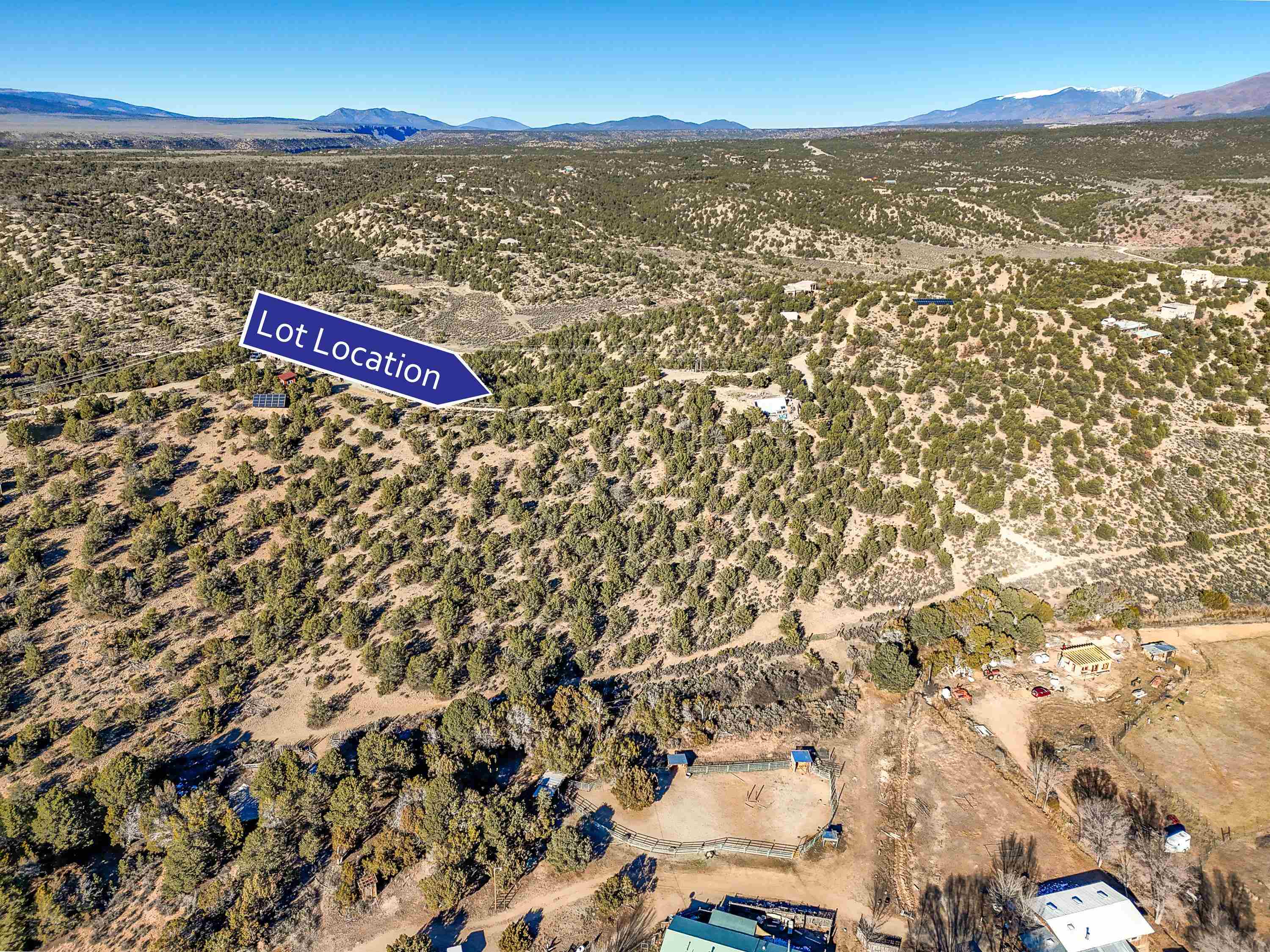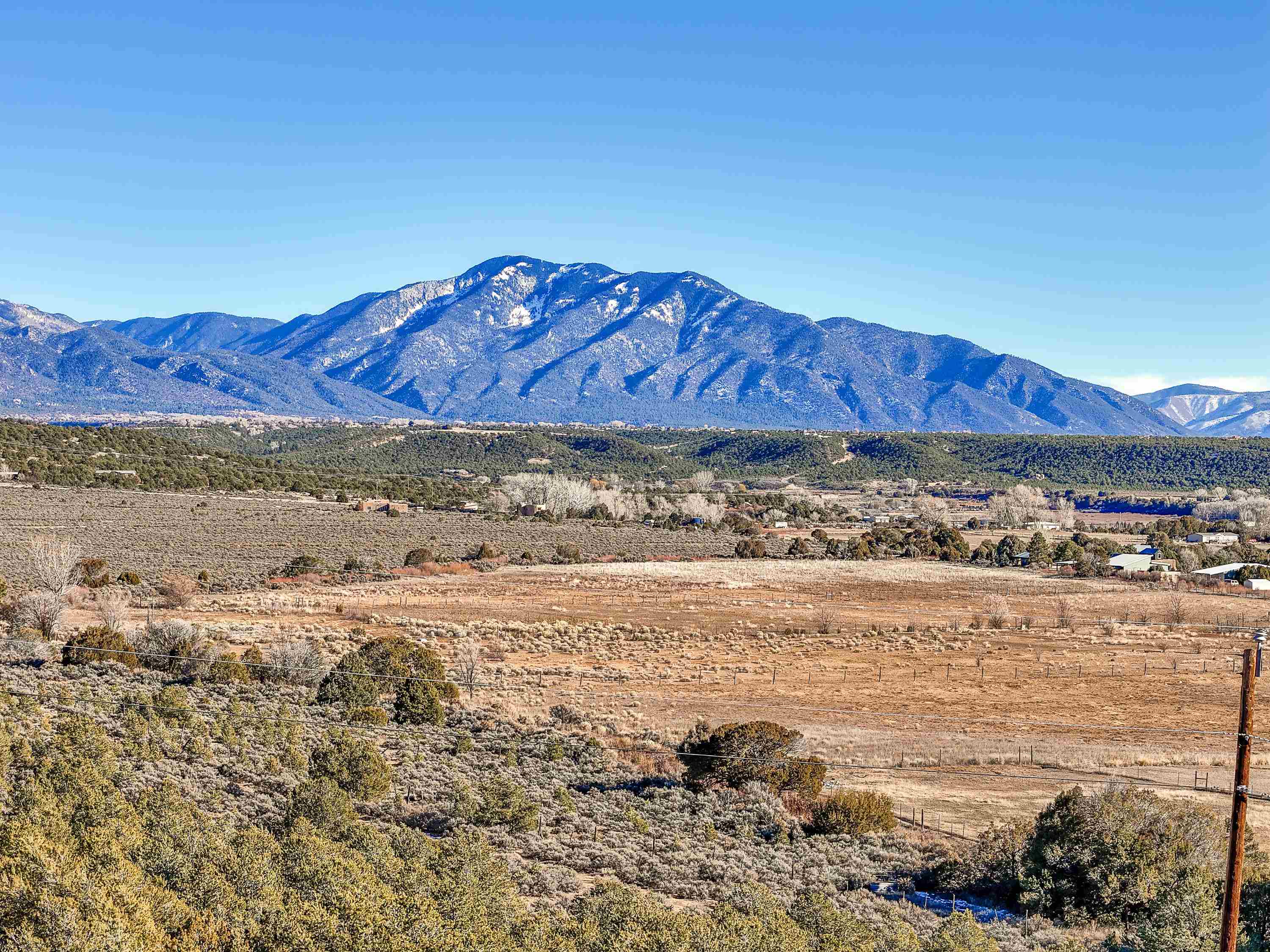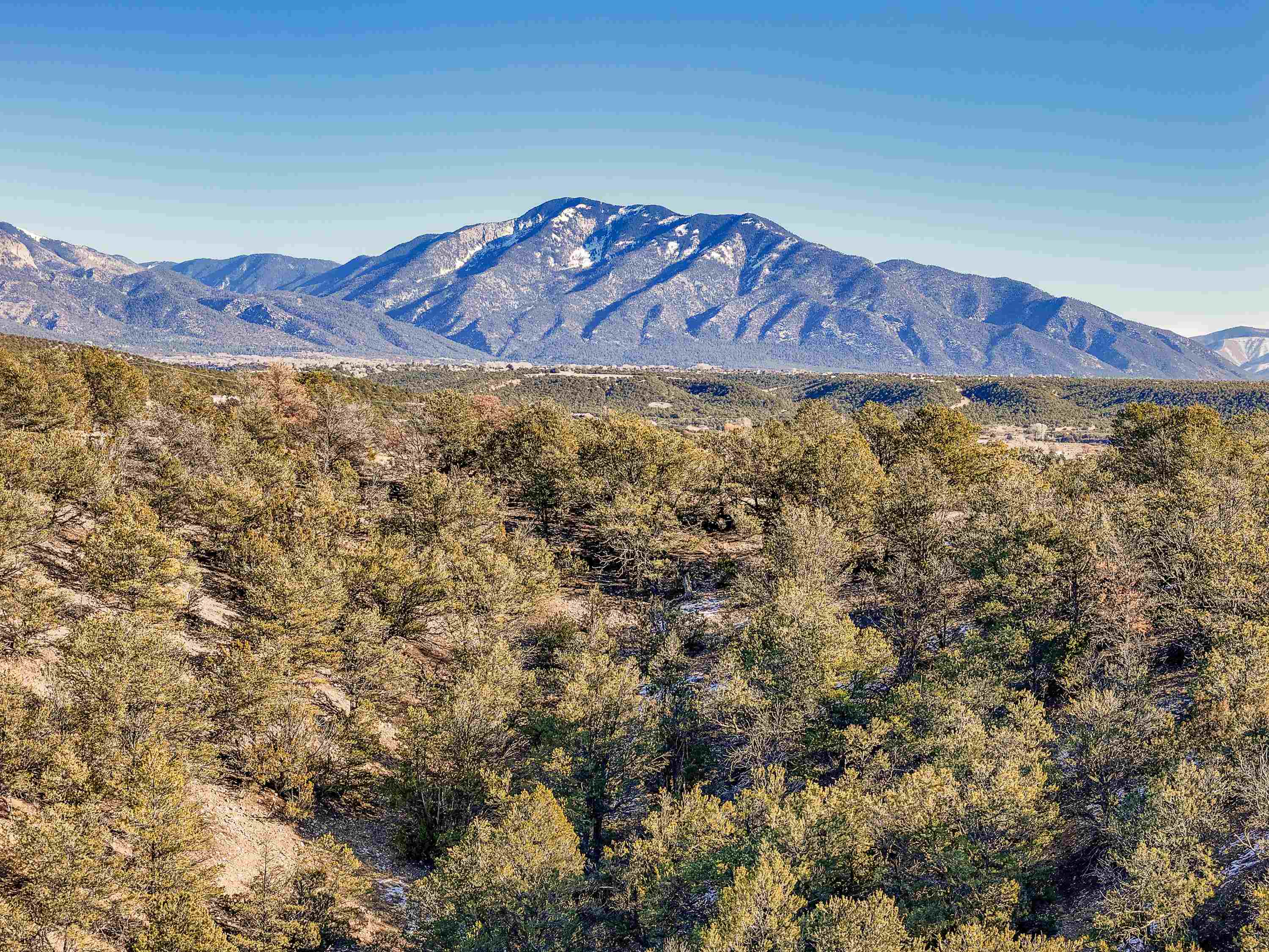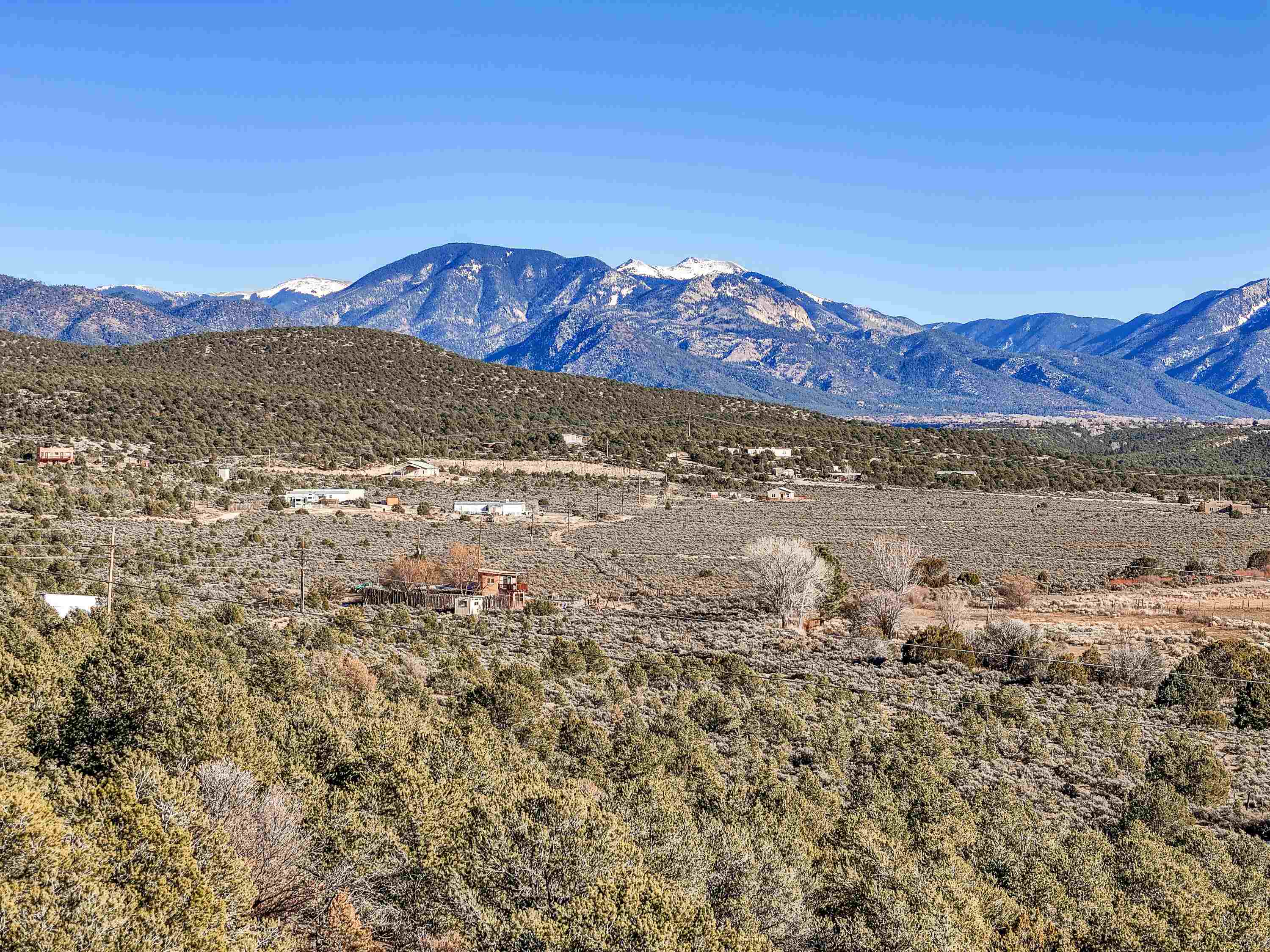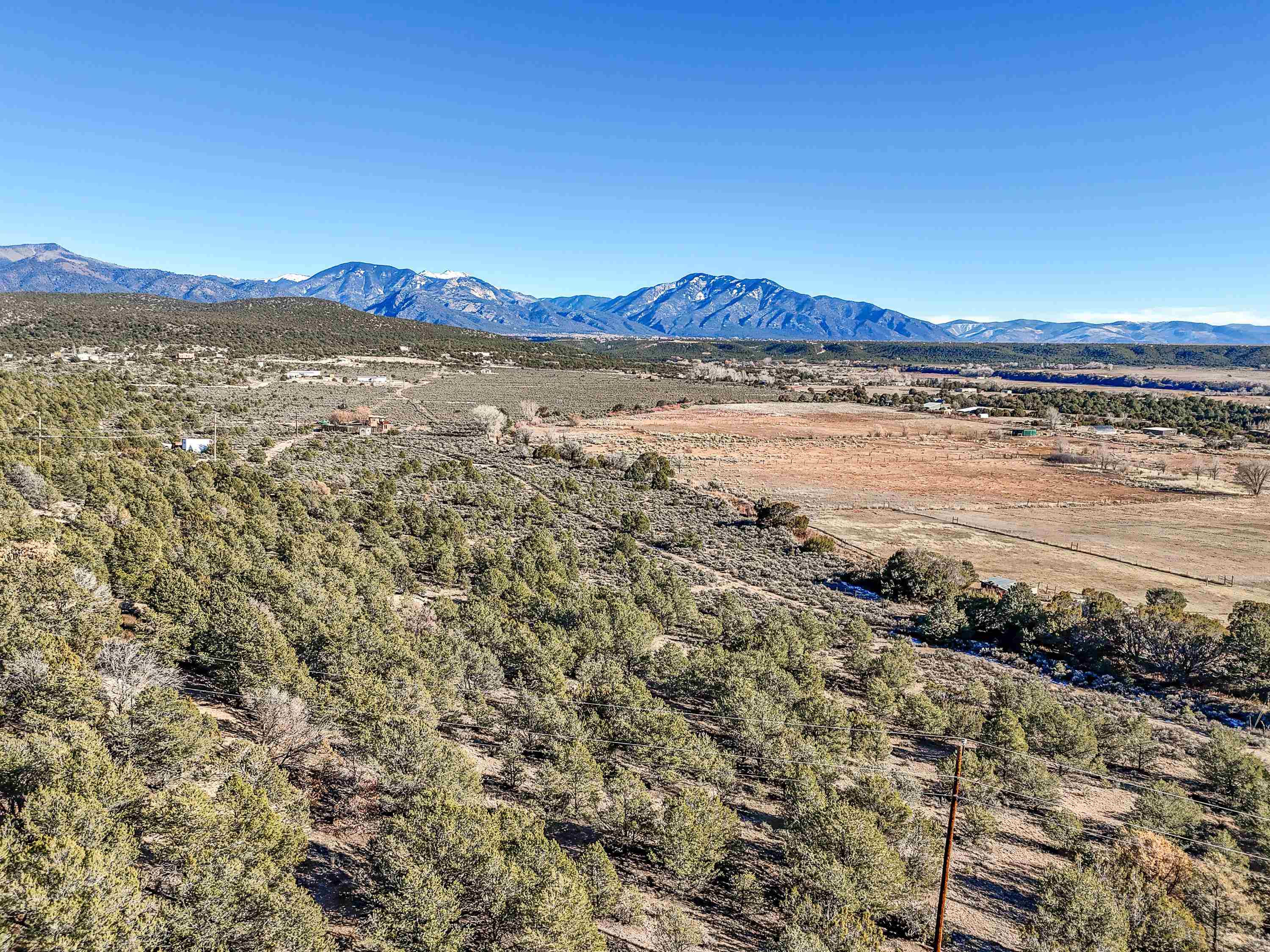 Beautiful south facing 3 acre parcel that starts at the ridge and runs down the hill to the valley below with views of Taos Mountain to the east, and the Truchas peaks to the south. Secluded and sunny - the perfect spot to build your home. Electric and Fiber optic at the lot.