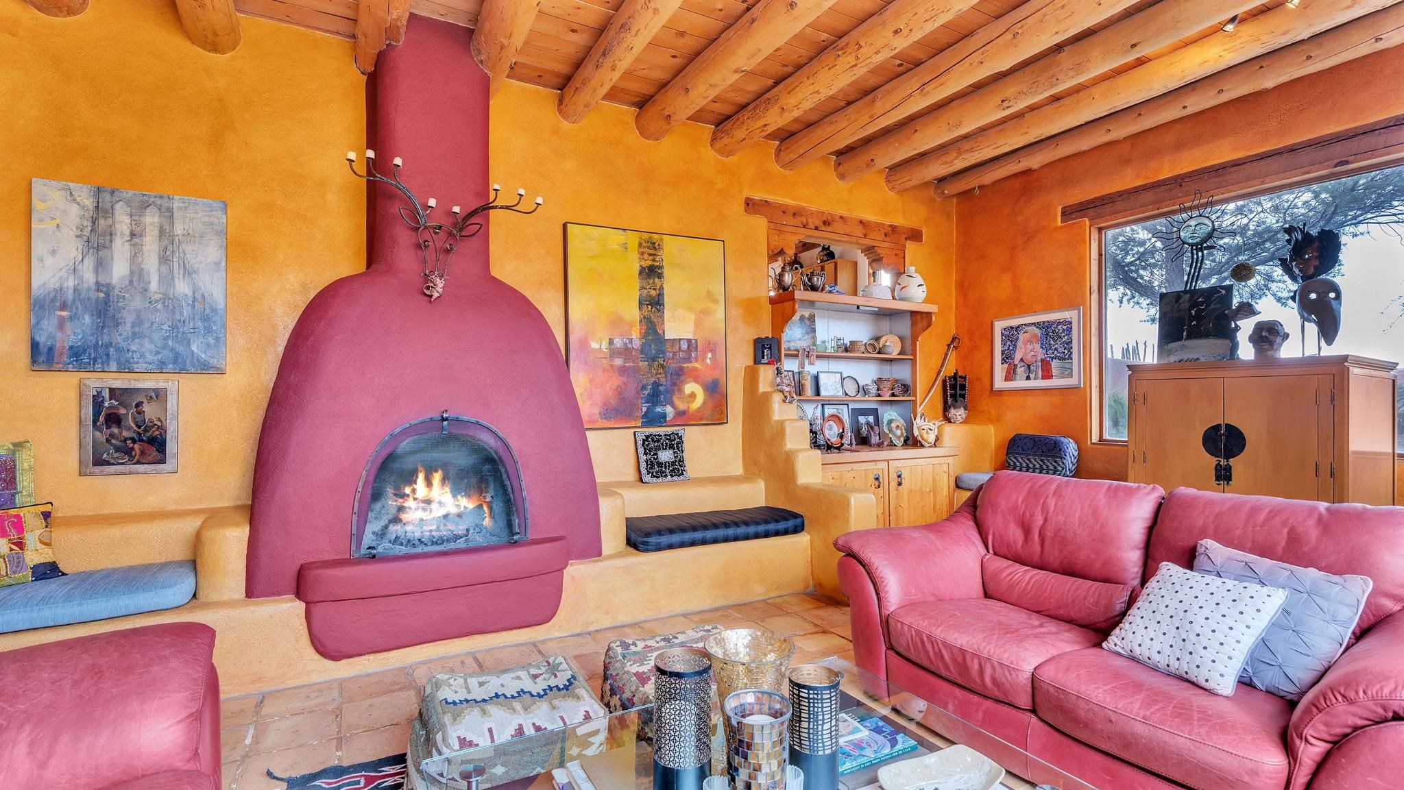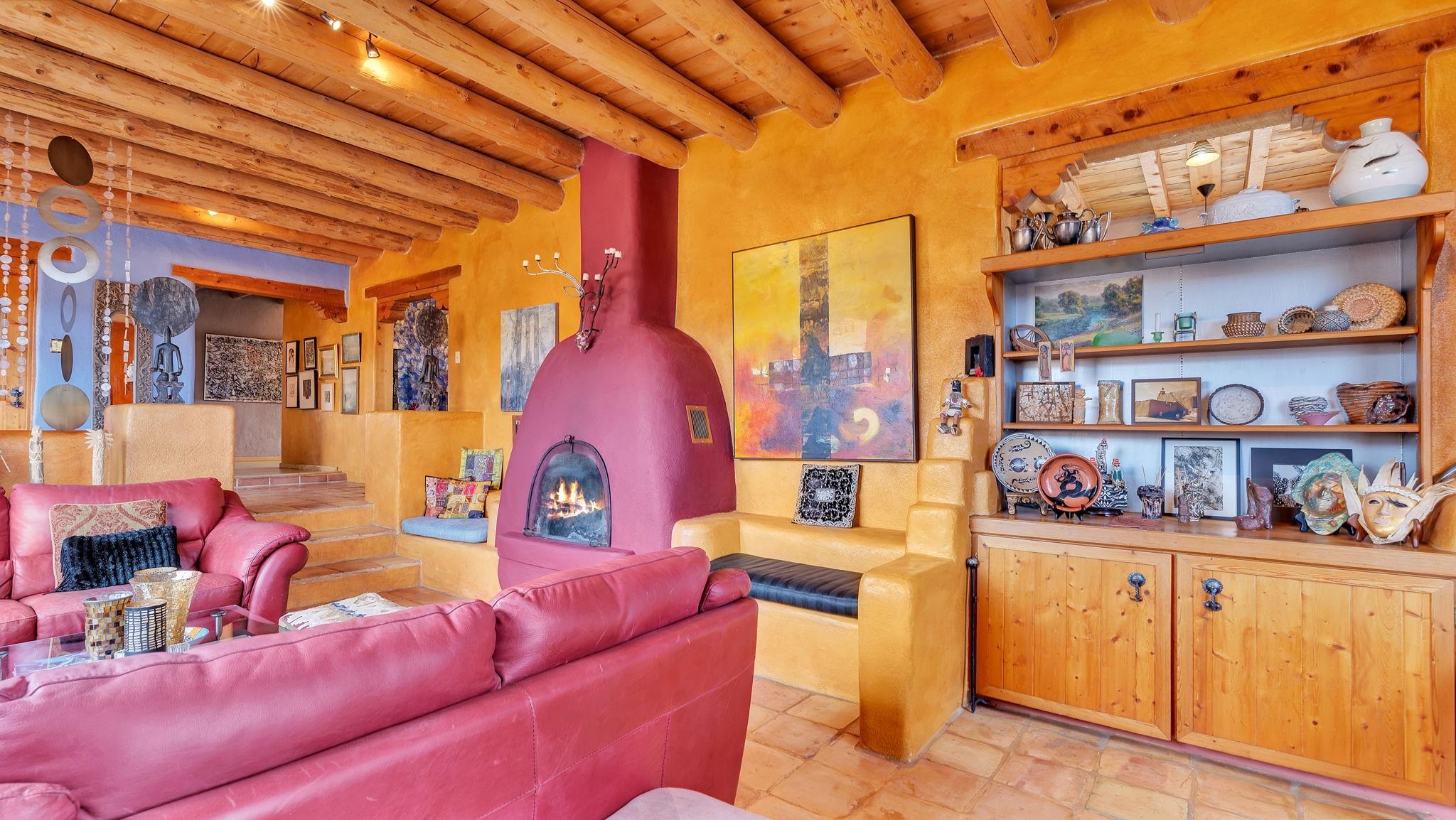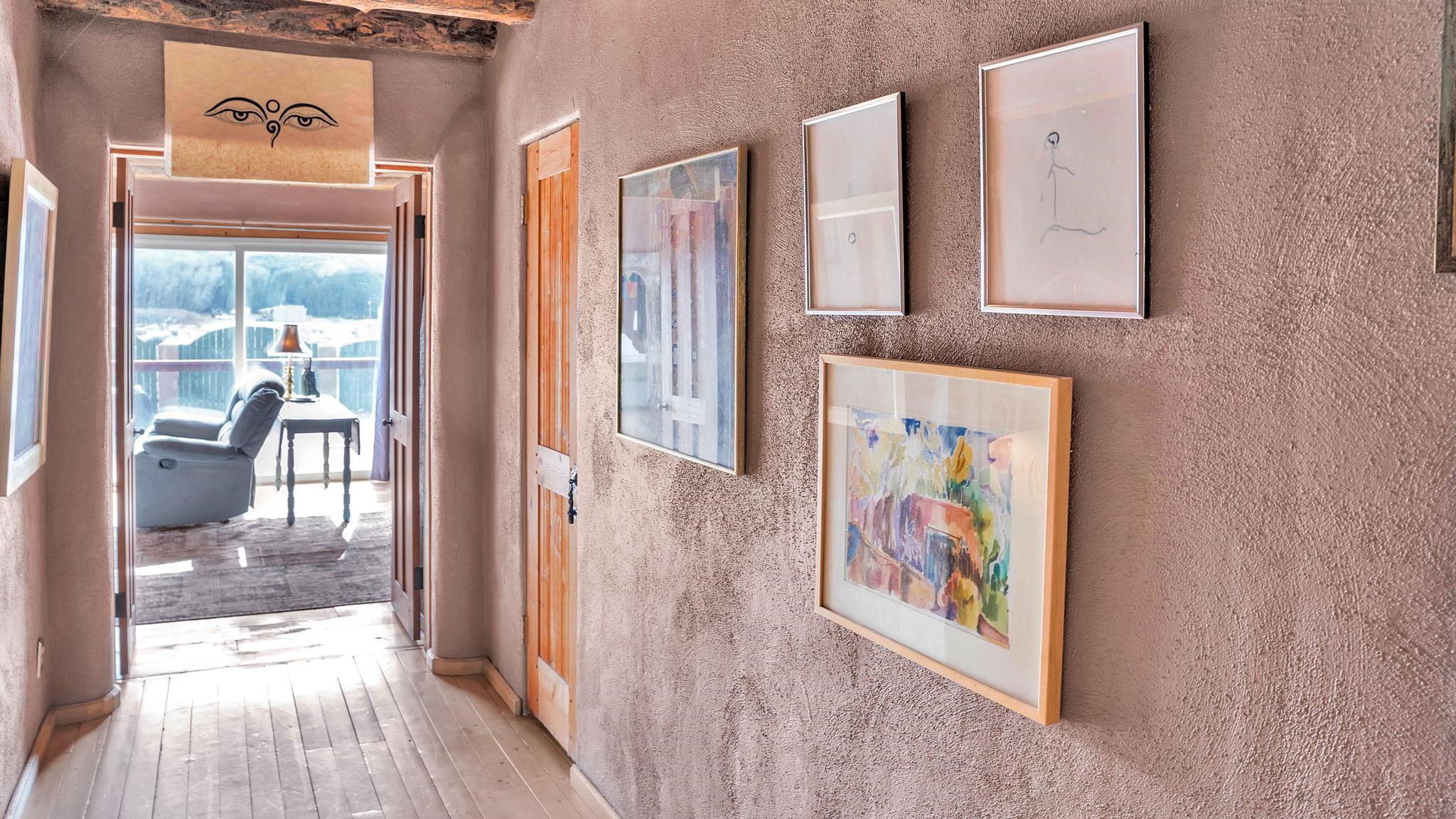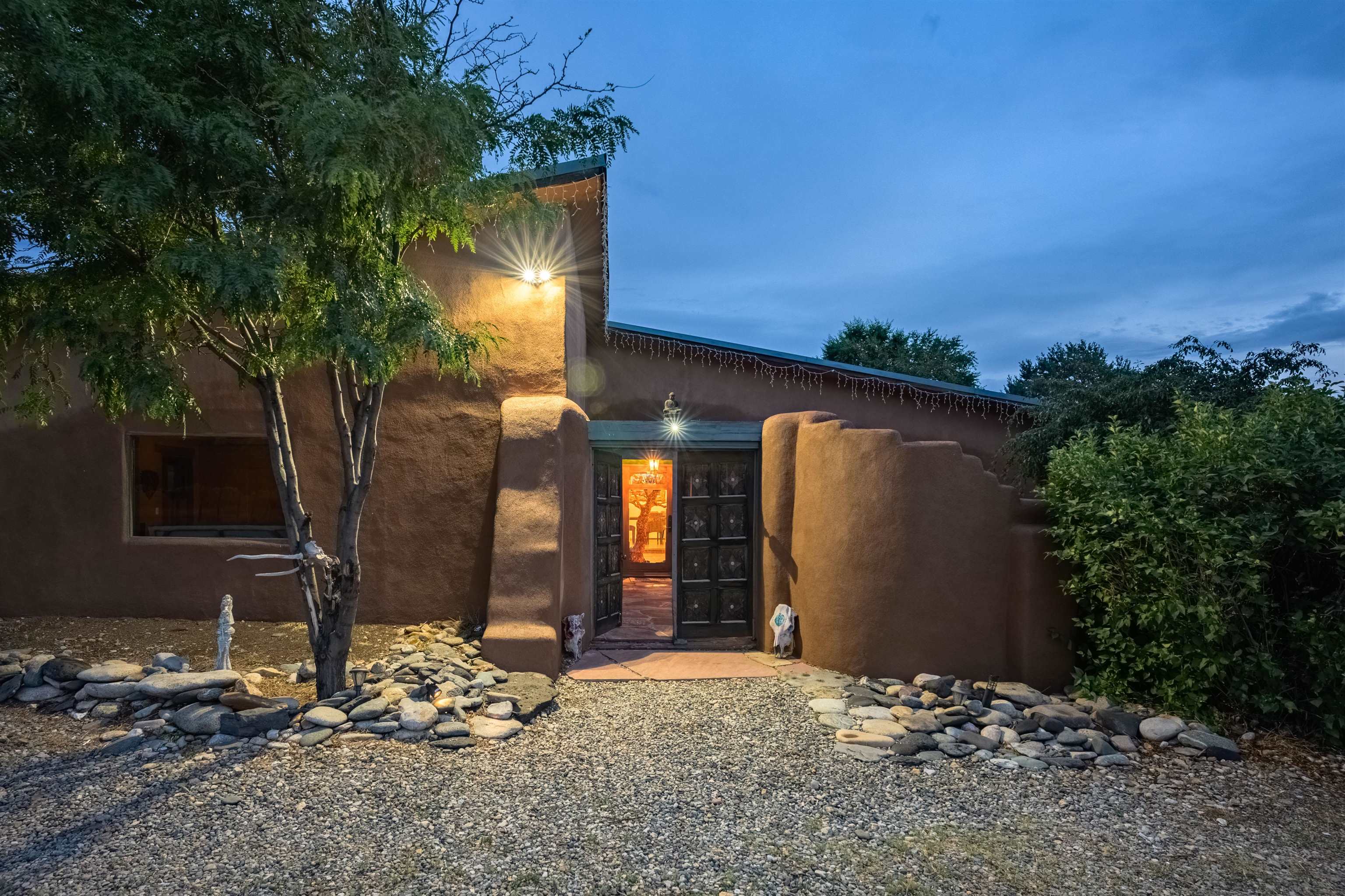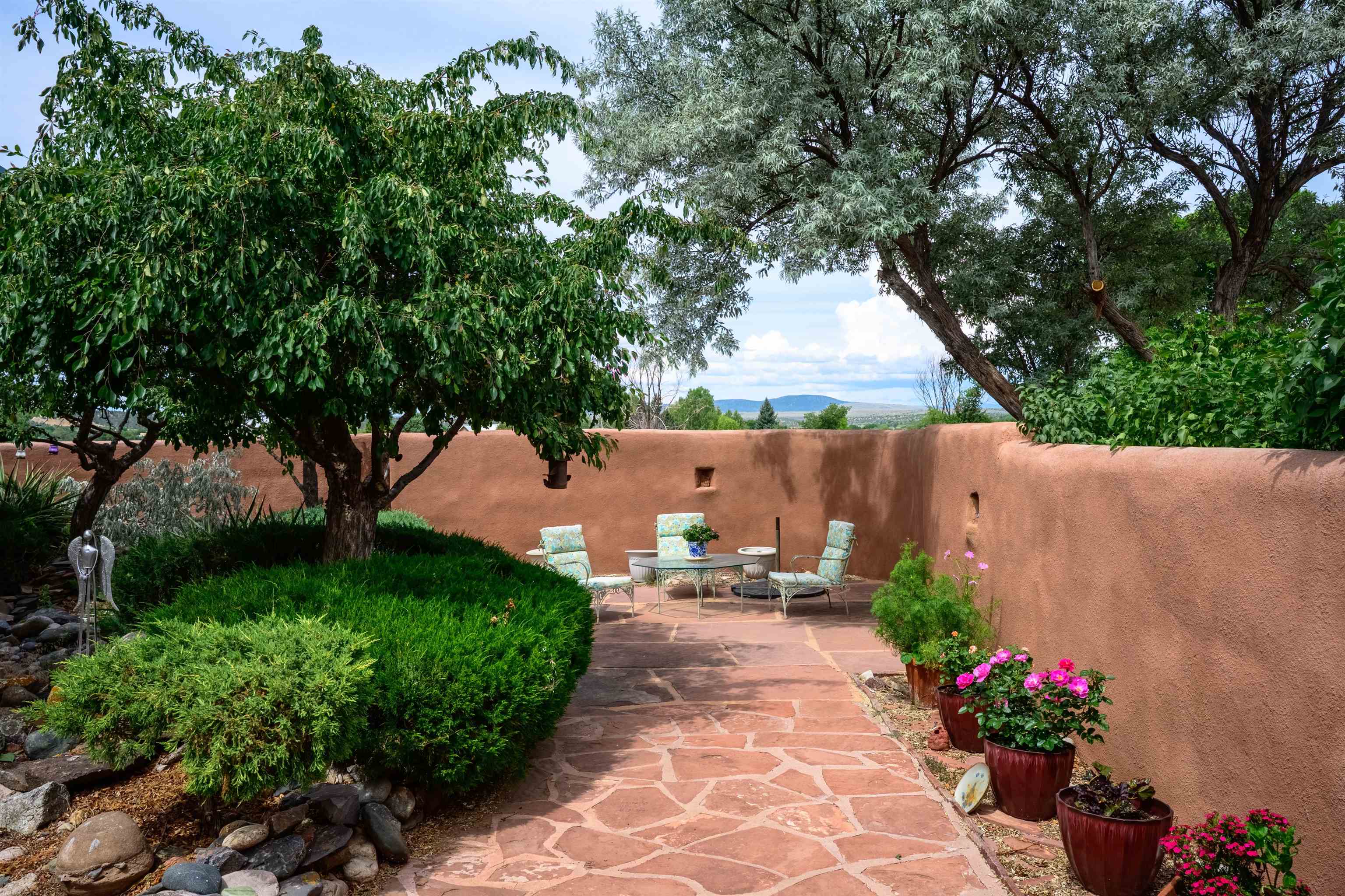 Rare Ranchette with an Adobe Residence & Water Rights in Magical Arroyo Hondo ~ Everything you've ever dreamed of exists right here. This rare property features a flowing seasonal acequia alongside an elegant and tastefully updated Adobe residence. Perfectly positioned for the outdoor enthusiast, you can play in the waters of the Rio Grande just minutes to the west, or head east through charming Arroyo Seco to experience the world-class slopes of Taos Ski Valley. Spanning just under three lush acres off a well-maintained, paved Hondo Seco Road, this private oasis offers supreme tranquility and some of the absolute best views in the Southwest. An unforgettable first impression awaits as you step through the enclosed flagstone patio and a breathtaking masterpiece sea glass door. Inside, an immediate sense of vibrant warmth fills the space, where abundant natural light highlights classy fixtures and endless Southwestern character. Stunning architectural details are everywhere, from the viga and beam ceilings down to the hardwood and Saltillo tile floors, beautifully complemented by a traditional fireplace, bancitos, corbels, and step-down walls perfect for displaying your art collection. The sunken den offers a welcoming gathering spot to cozy up by the fire, while a versatile back bonus room serves perfectly as a home office, studio, theater, or extra sleeping space. The home provides three spacious bedrooms and two comfortable bathrooms, highlighted by a large primary ensuite tucked quietly at the back of the home with beautiful light, a highly functional bathroom, and private access to the yard. At the heart of the home, the open-concept dining room and kitchen--complete with a second egress to the back deck--provide the ideal setting for morning routines and entertaining dinner guests. Step outside to the enclosed, beautifully landscaped backyard to find a tranquil pond and fountain, creating a magical setting where you will love tending the garden, relaxing, and unwinding under a starry New Mexico sky.