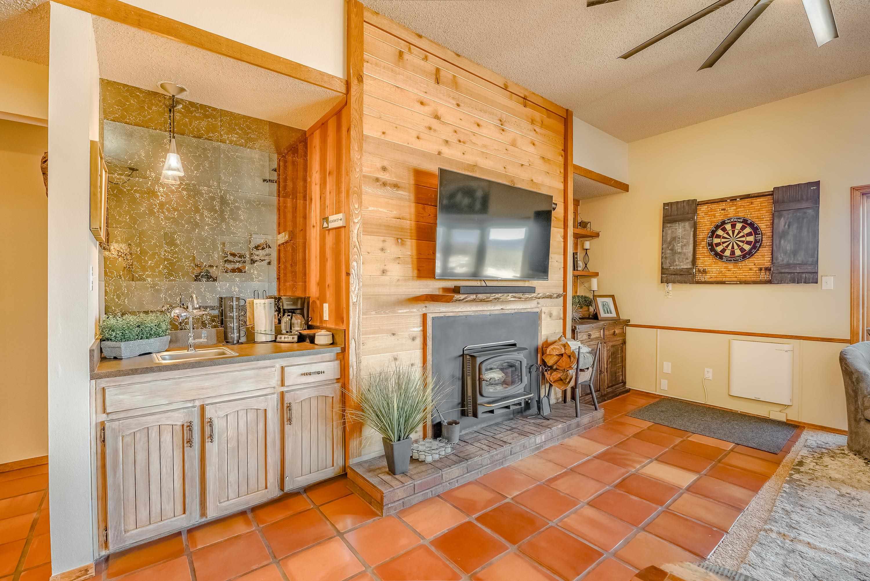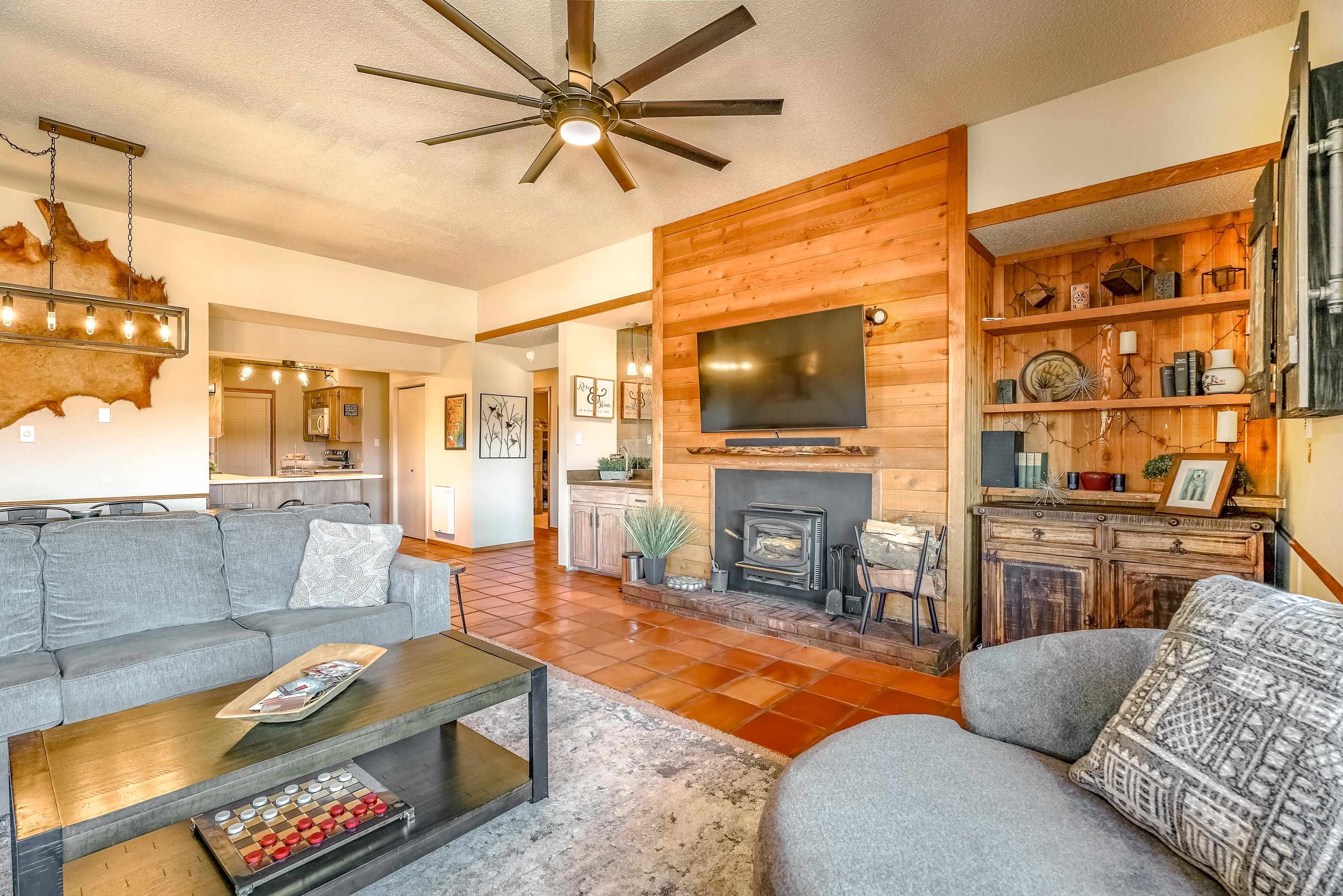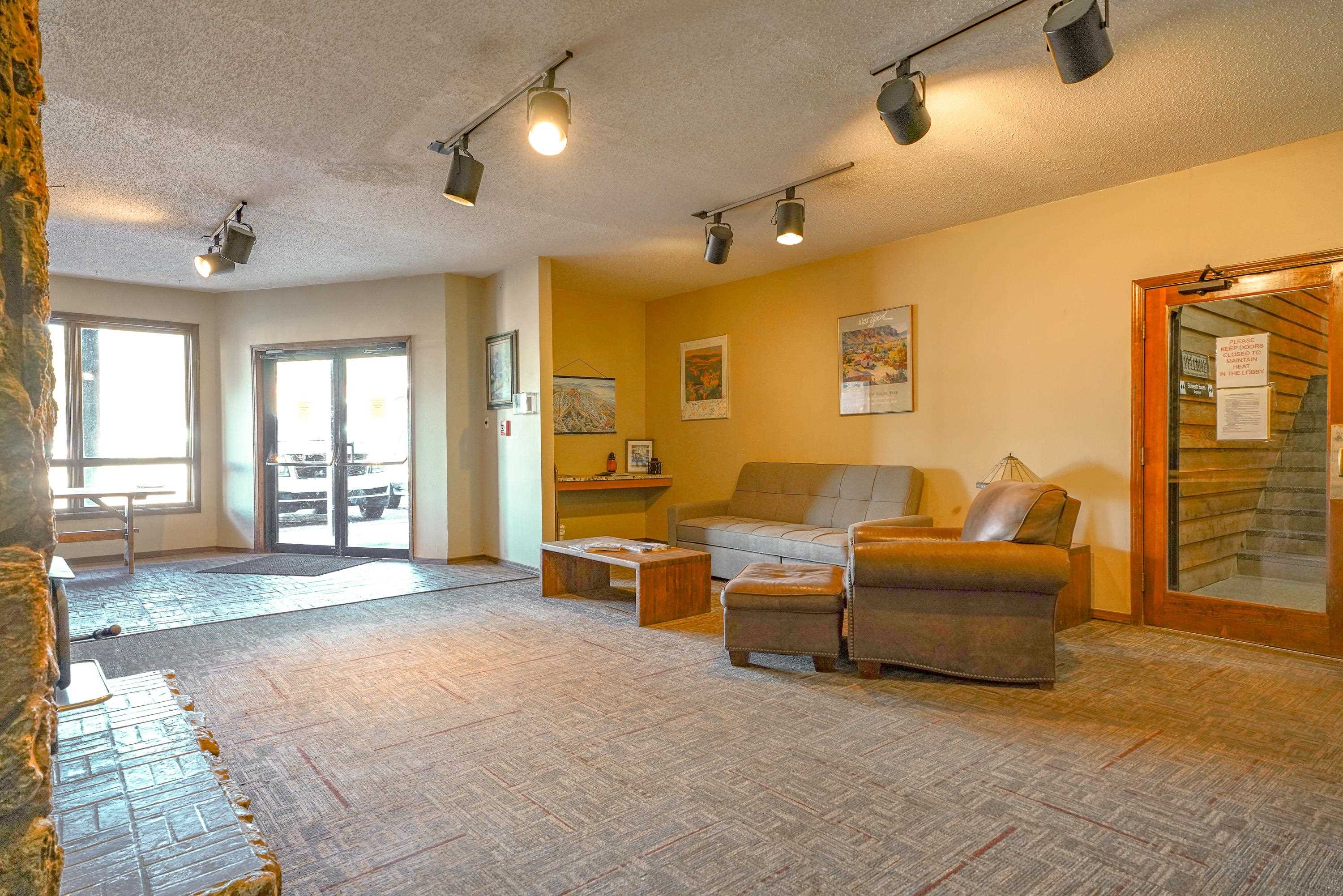 Bright and welcoming with stunning views of Wheeler Peak! Located just steps from the brand new ski lift and ski house, this exceptional 2-bedroom, 1-bath condo offers strong vacation rental potential. Recently updated to create a clean, elevated aesthetic while maintaining a warm, inviting atmosphere. Featuring one of the largest floor plans in the complex, the expansive living area provides an inviting space to relax, entertain, and take in the alpine surroundings. Enjoy cozy evenings by the rock-wall fireplace with firewood conveniently provided by the HOA. Includes a private owner's bathroom, laundry room and storage unit for added convenience. Additionally there is a separate laundry room for guests, an indoor courtyard, ski storage and a covered BBQ pavilion. HOA also covers utilities, snow removal, exterior up keep. Sold fully furnished, this property is ready to operate as a premium rental immediately.