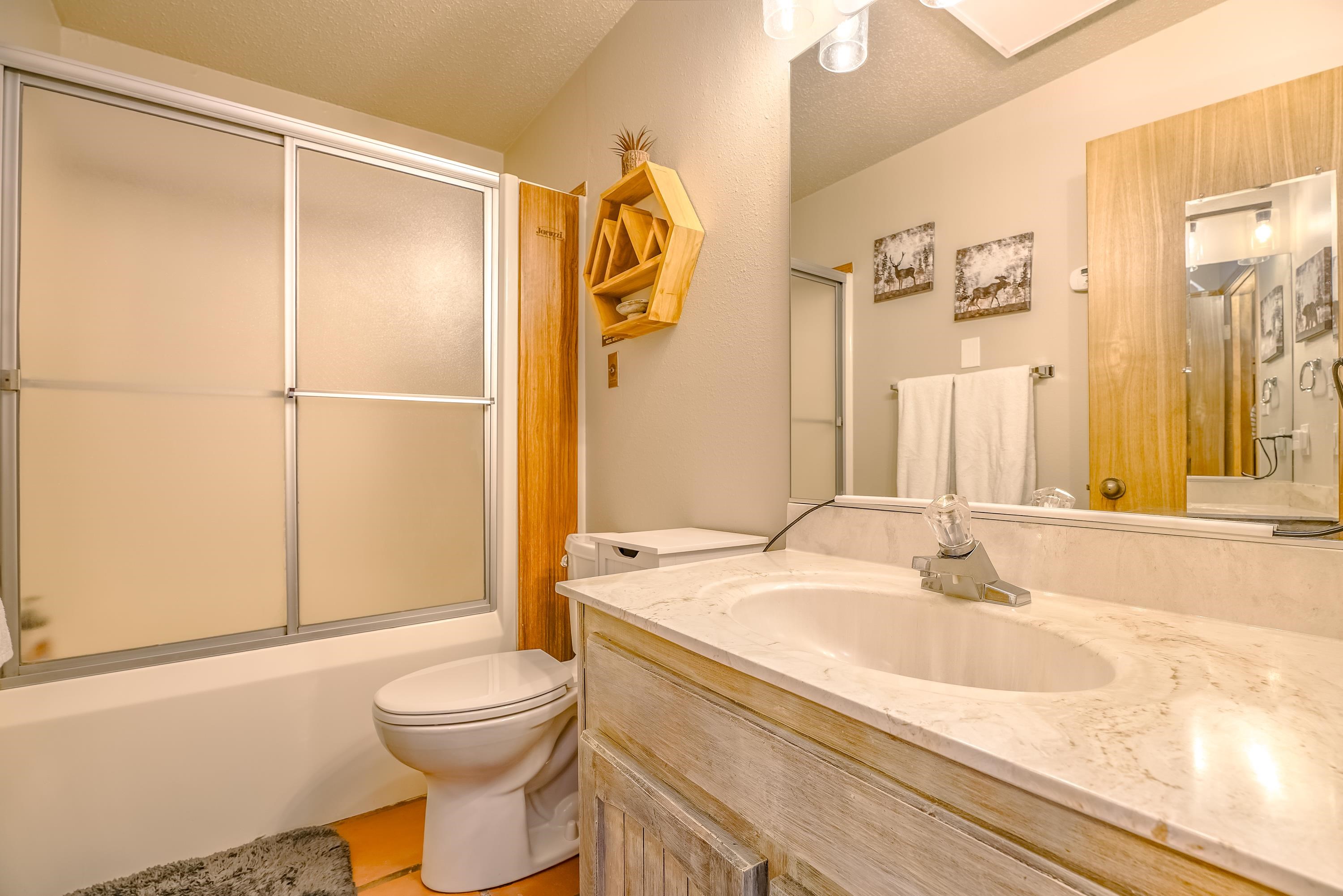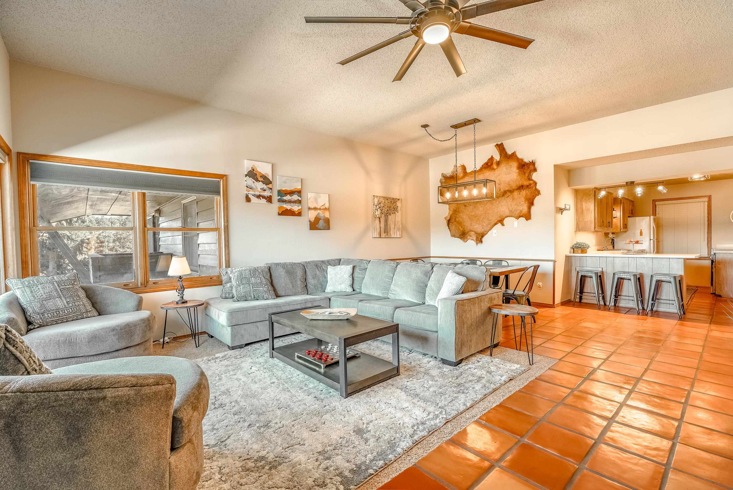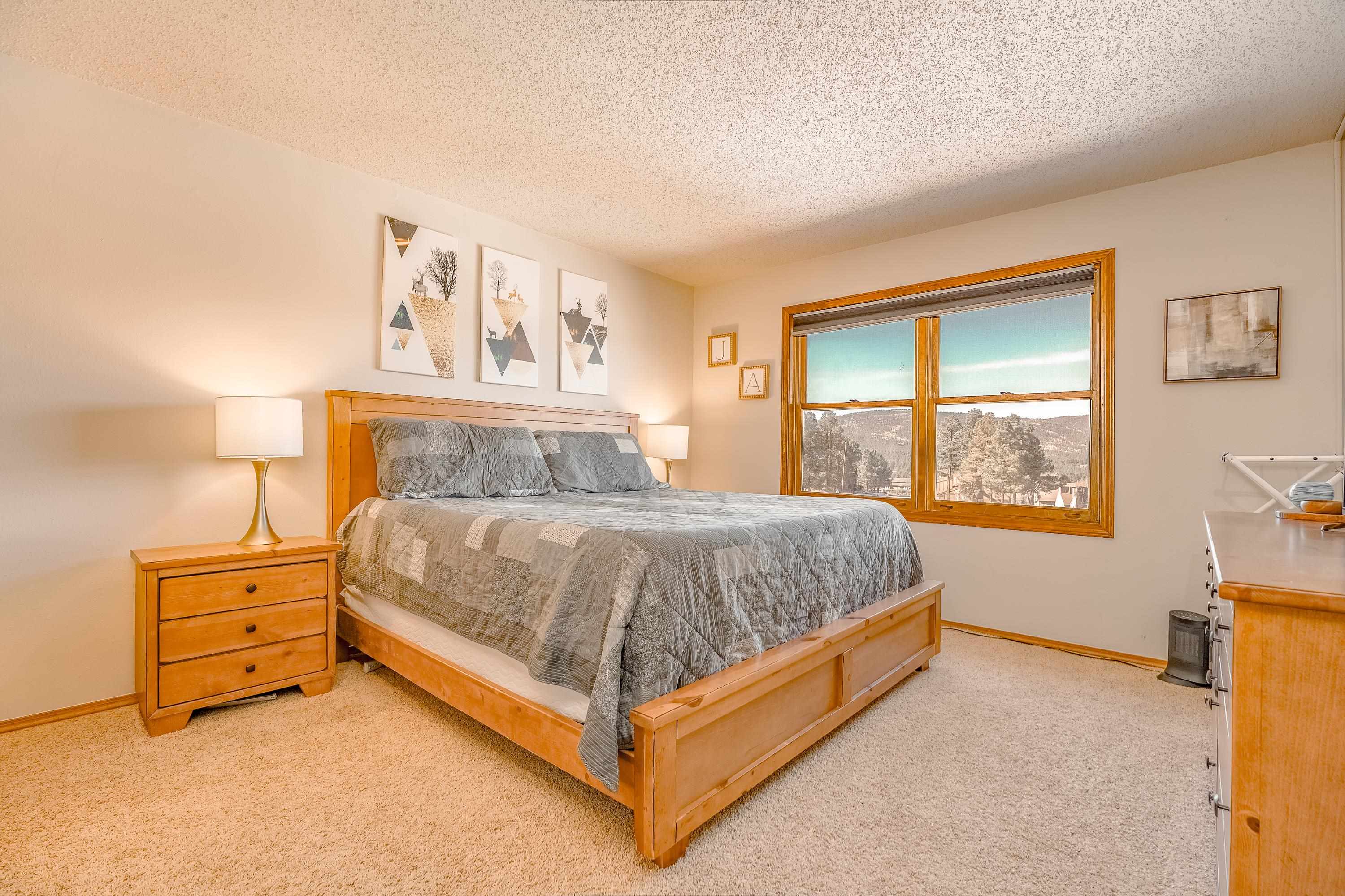 Bright and welcoming with stunning views of Wheeler Peak! Located just steps from the brand new ski lift and ski house, this exceptional 2-bedroom, 1-bath condo offers strong vacation rental potential. Recently updated to create a clean, elevated aesthetic while maintaining a warm, inviting atmosphere. Featuring one of the largest floor plans in the complex, the expansive living area provides an inviting space to relax, entertain, and take in the alpine surroundings. Enjoy cozy evenings by the rock-wall fireplace with firewood conveniently provided by the HOA. Includes a private owner's bathroom, laundry room and storage unit for added convenience. Additionally there is a separate laundry room for guests, an indoor courtyard, ski storage and a covered BBQ pavilion. HOA also covers utilities, snow removal, exterior up keep. Sold fully furnished, this property is ready to operate as a premium rental immediately.