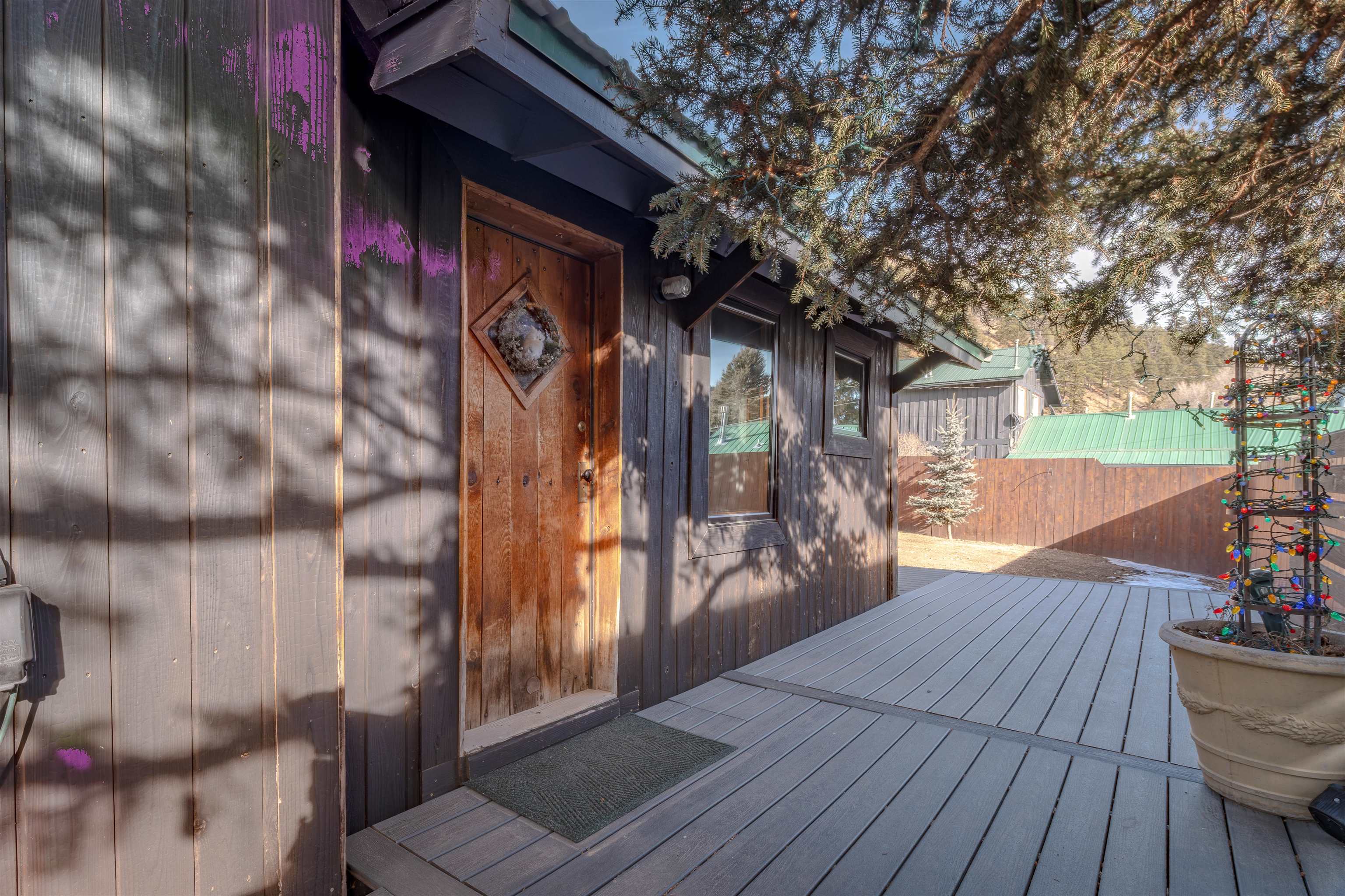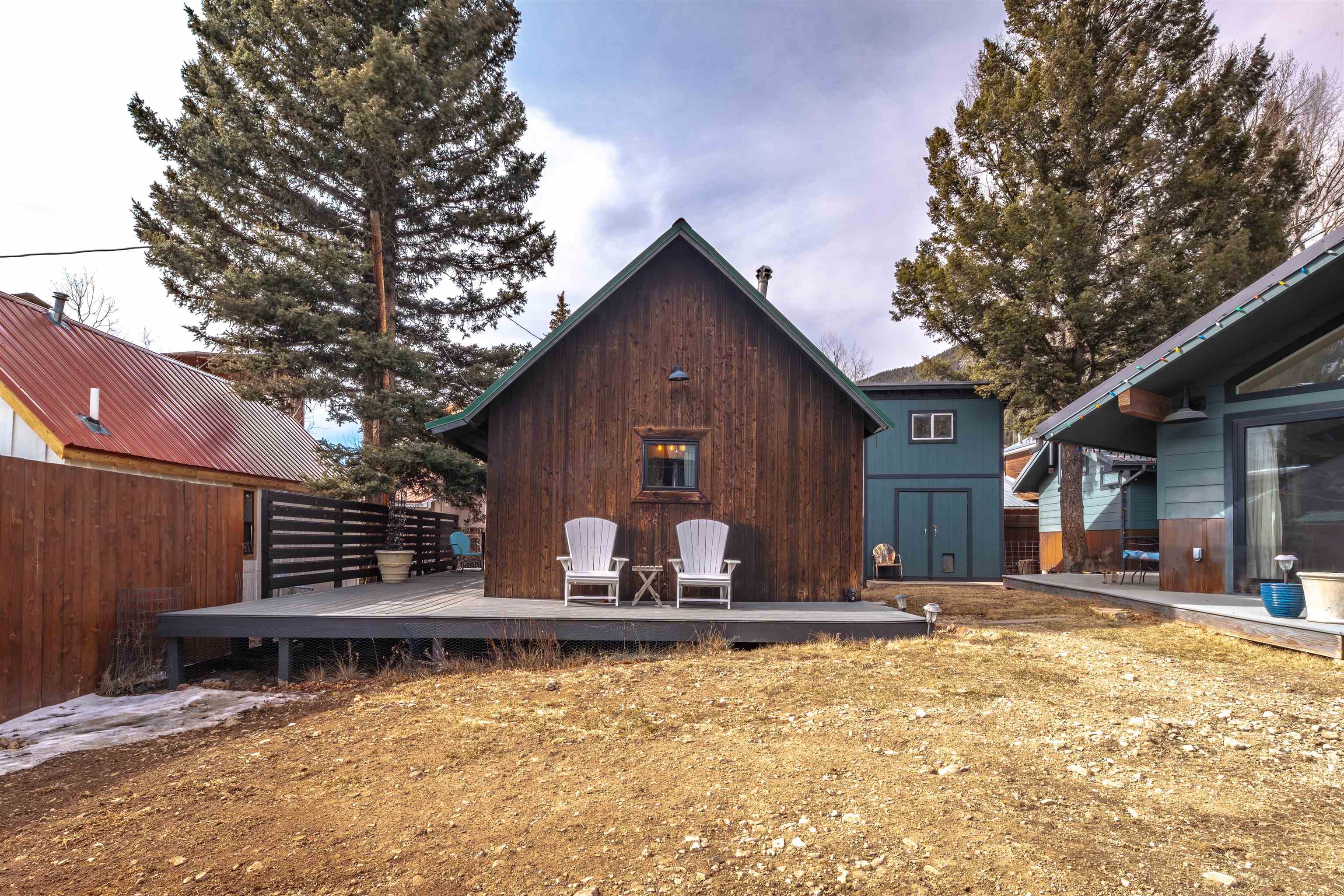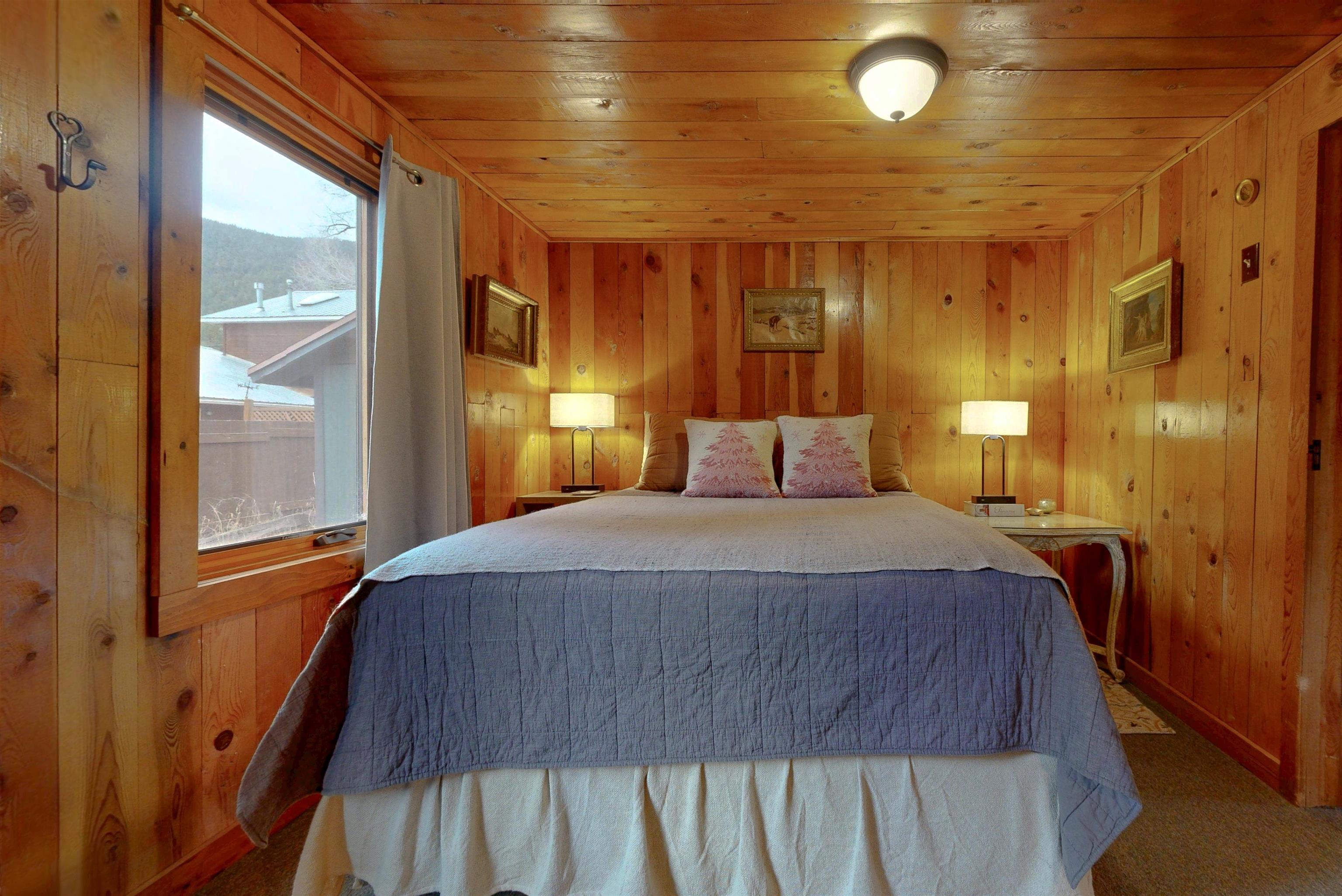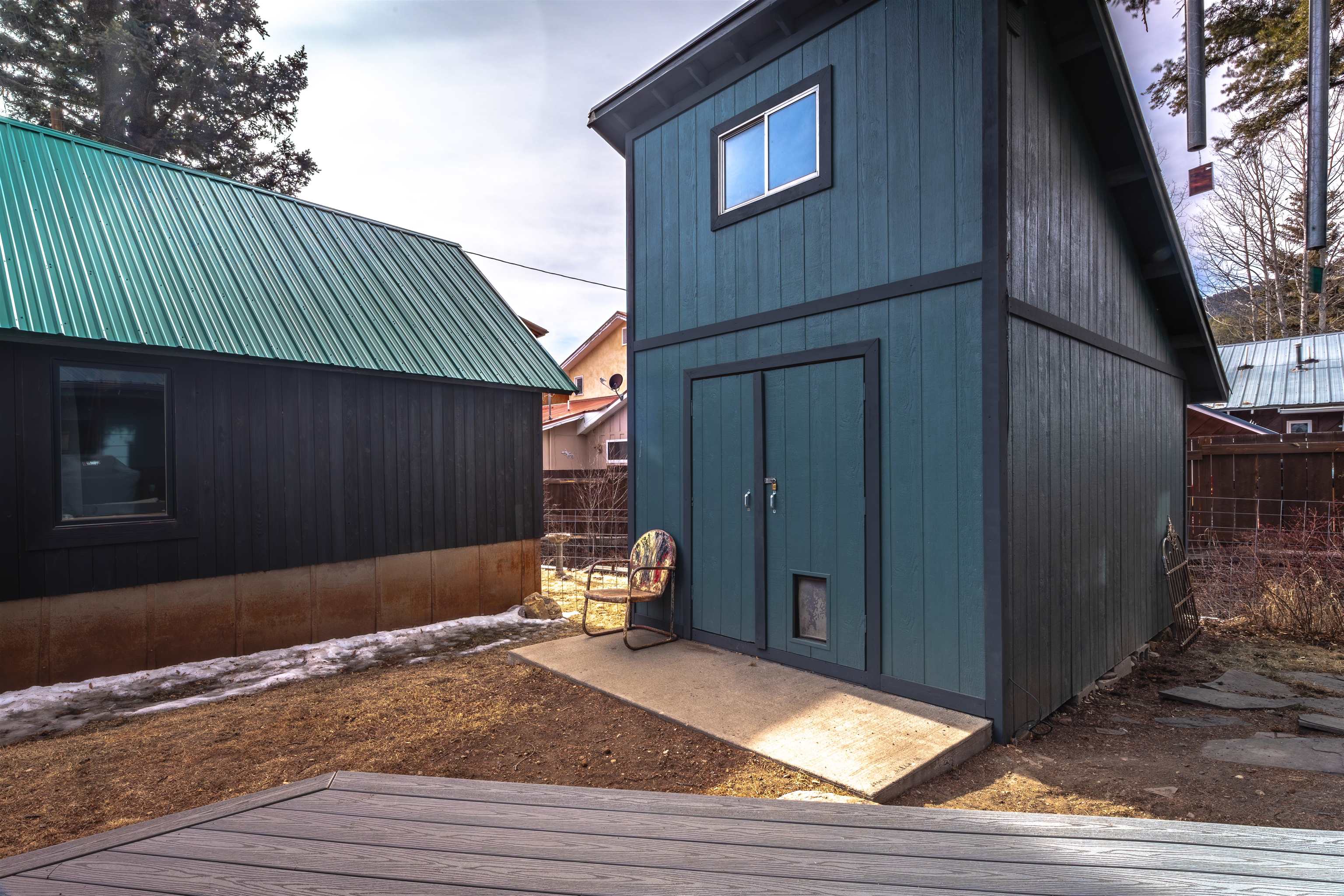 IN-TOWN MAIN HOUSE WITH GUEST CABIN! Discover the ultimate mountain lifestyle in the heart of Red River -- just a short walk to restaurants, shopping, and the ski slopes. Fully remodeled main house in 2019, this beautifully updated 2-bedroom, 2-bathroom home offers 1,615 square feet of thoughtfully designed living space, blending high-end finishes with the relaxed charm of alpine living. From the backyard deck, enjoy the rare and captivating view of skiers descending the run in the winter, while the soothing sounds of the bordering Mallette creek on one side of the property creates a peaceful backdrop starting in late spring, all summer and into fall. Inside, the open concept living and kitchen areas are designed for gathering and comfort. Custom cabinetry throughout the space including storage benches, while mountain views and ski slope vistas fill the home with natural beauty. Cozy evenings are effortless with both a fireplace and wood-burning stove. Quartz countertops throughout add a refined touch, and the Navien natural gas water heater provides modern efficiency with radiant floor heating in the main home. The primary bedroom is conveniently located on the main level with a private ensuite bath. The second bedroom offers access to an upper-level loft -- a flexible reading, sleeping, or recreation space perfect for sleepovers, a teen retreat, gaming area, or quiet time with a great book. A separate 437 square foot cabin with sleeping loft provides exceptional versatility and rental potential. Partially renovated in 2022, it features durable Japanese Cypress siding known for its natural resistance to fire, pests, and weathering -- requiring no paint or stain -- along with new windows, carpet and Trex decking on all exterior surfaces. The backyard offers privacy and flexibility, including potential to expand parking. This is one of the few properties in town with a sizeable, fenced yard. A single-car carport and additional parking spaces accommodate guests with ease. An outdoor shop with electricity and loft storage creates the perfect space for hobbies, gear storage, studio use, or creative pursuits. With walk-to-everything convenience, ski slope views, creek frontage, and income potential, this stunning property offers a rare opportunity to own a fully renovated mountain retreat in one of Northern New Mexico's most beloved resort towns. This is one of the most beautiful homes in all of Red River for under $1 million!
