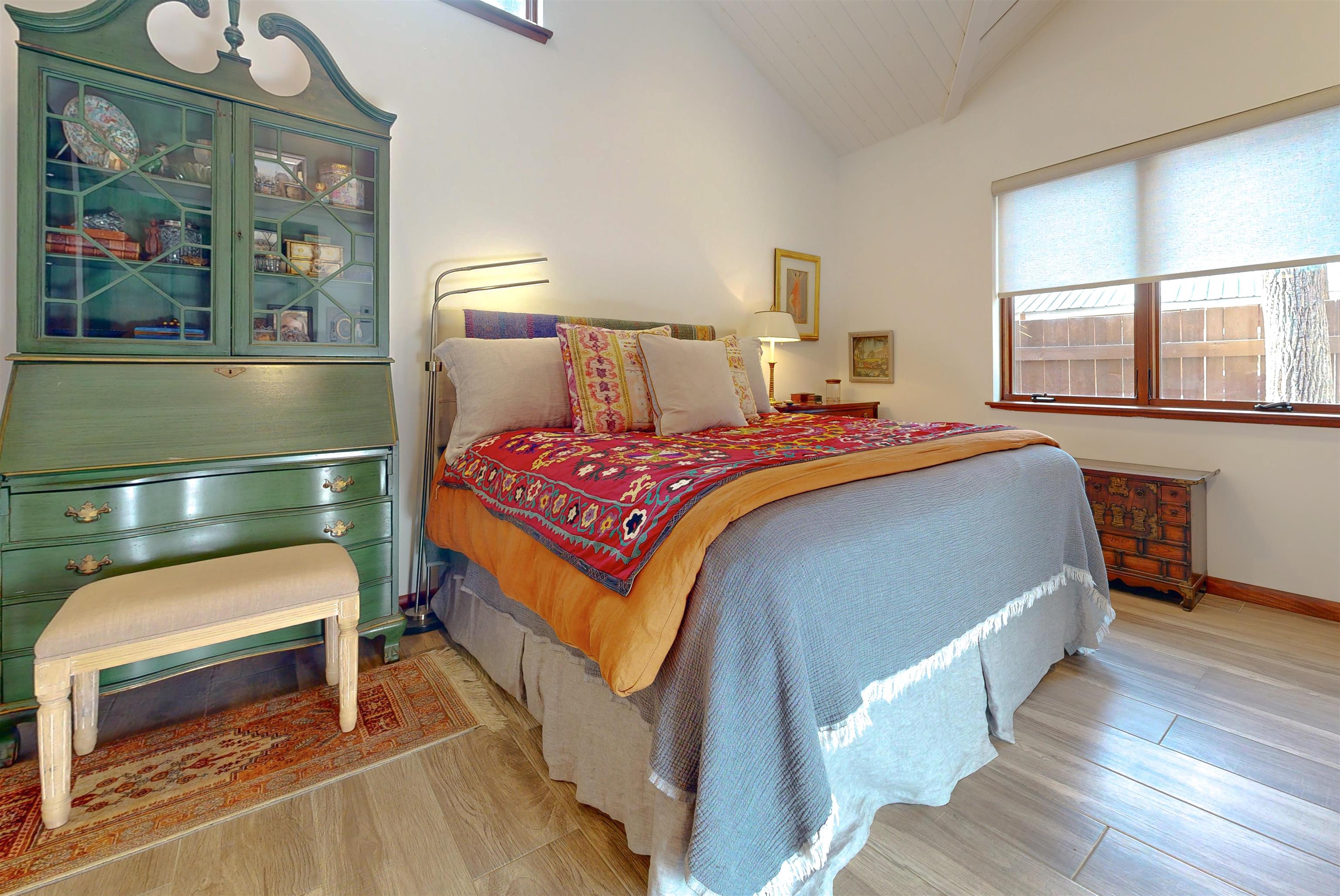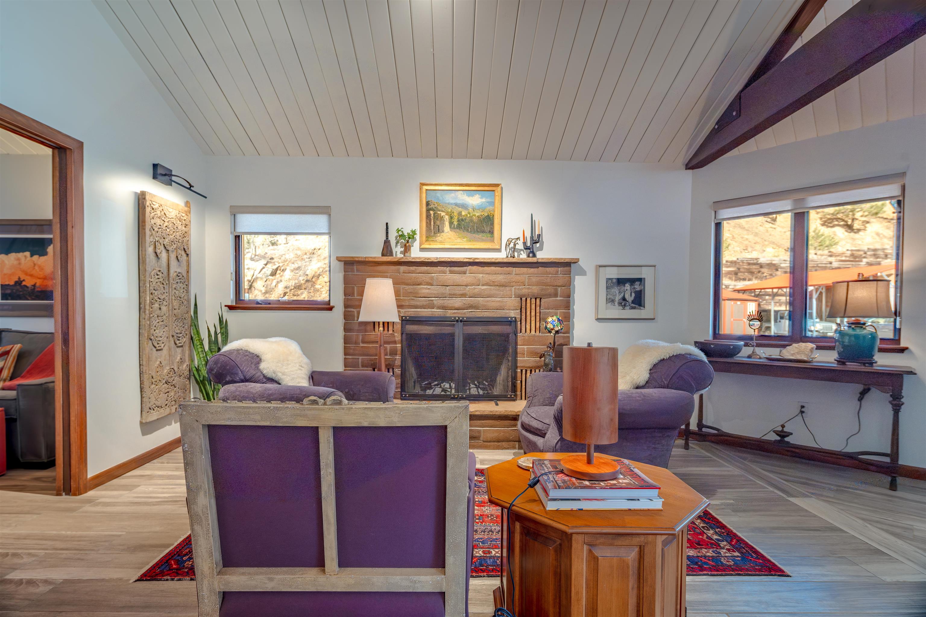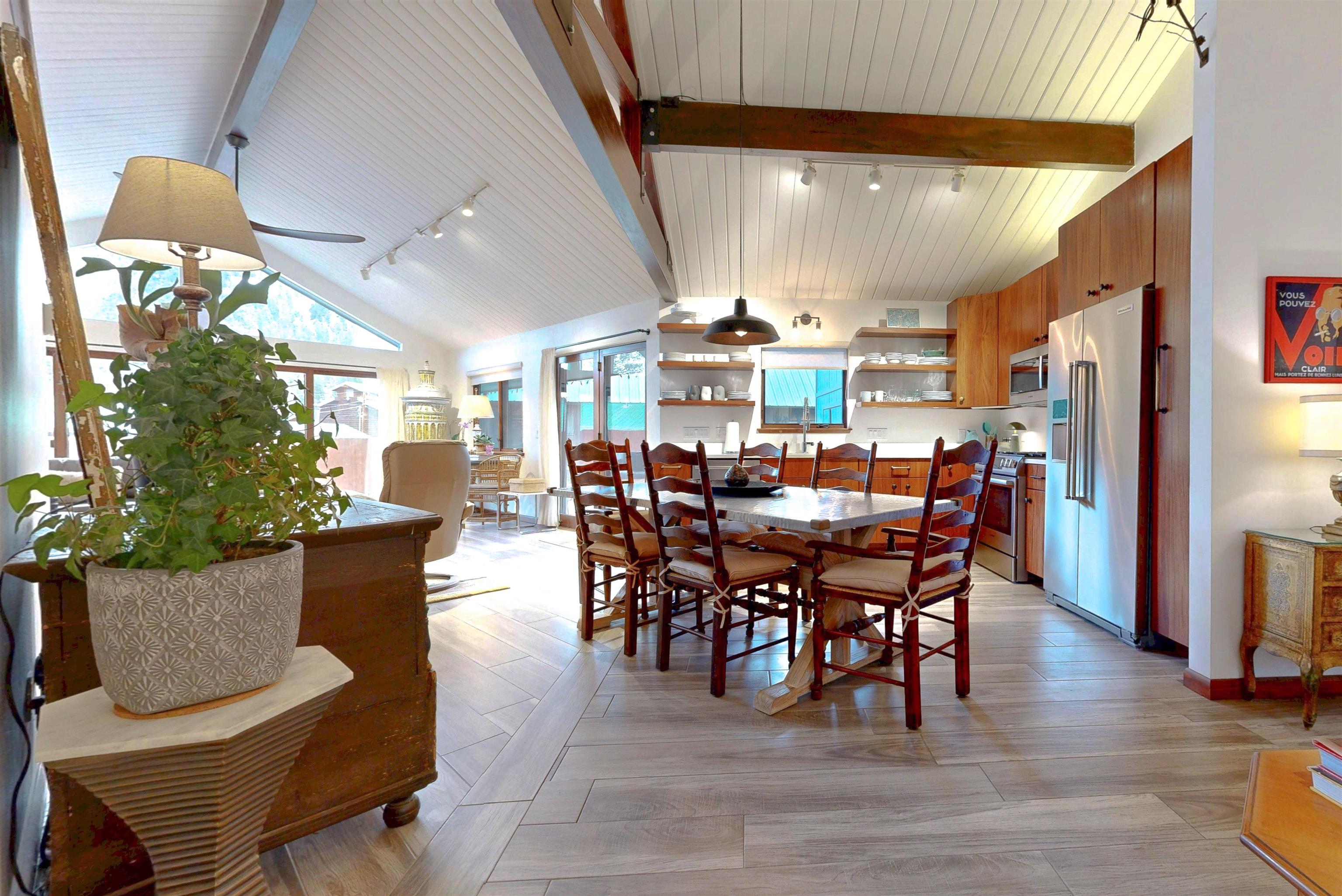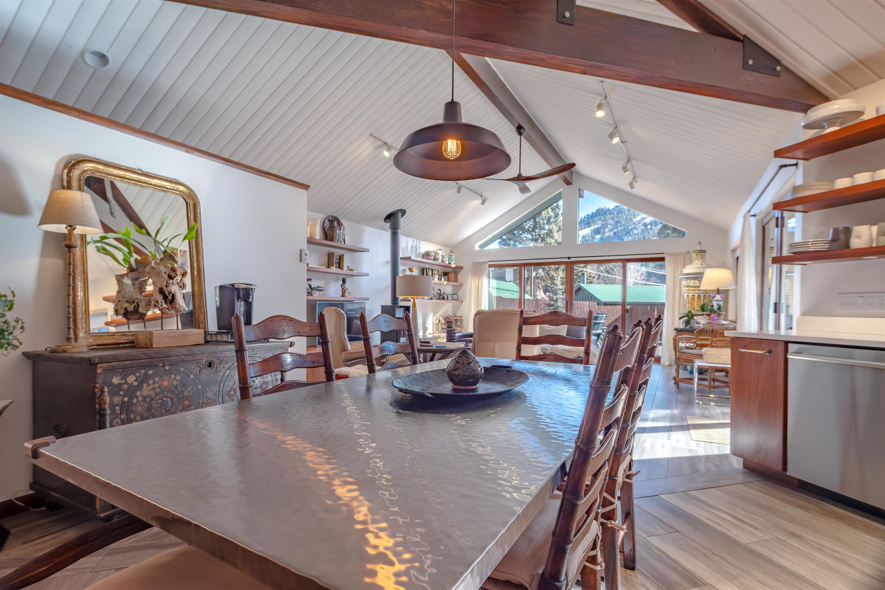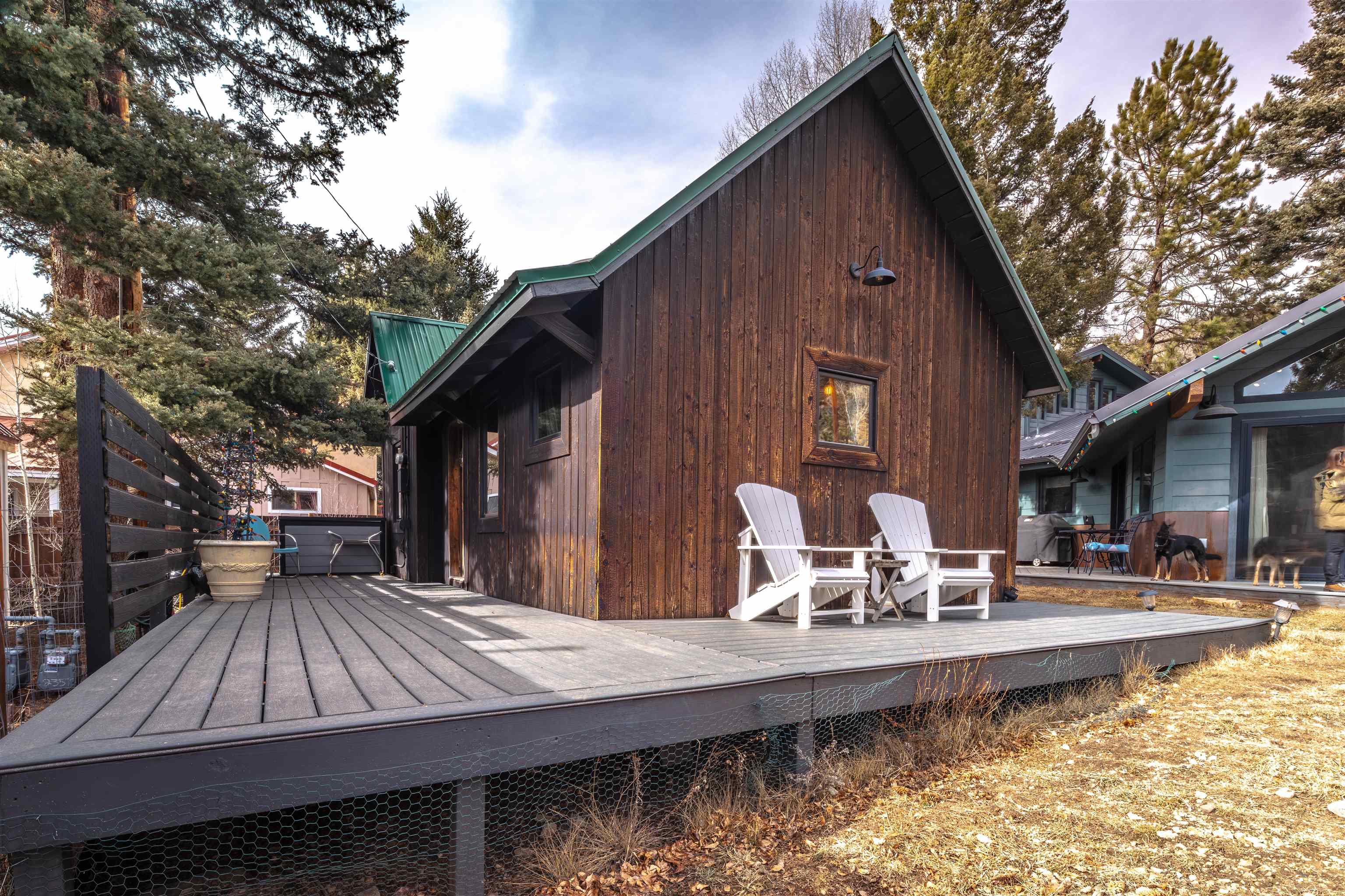 IN-TOWN MAIN HOUSE WITH GUEST CABIN! Discover the ultimate mountain lifestyle in the heart of Red River -- just a short walk to restaurants, shopping, and the ski slopes. Fully remodeled main house in 2019, this beautifully updated 2-bedroom, 2-bathroom home offers 1,615 square feet of thoughtfully designed living space, blending high-end finishes with the relaxed charm of alpine living. From the backyard deck, enjoy the rare and captivating view of skiers descending the run in the winter, while the soothing sounds of the bordering Mallette creek on one side of the property creates a peaceful backdrop starting in late spring, all summer and into fall. Inside, the open concept living and kitchen areas are designed for gathering and comfort. Custom cabinetry throughout the space including storage benches, while mountain views and ski slope vistas fill the home with natural beauty. Cozy evenings are effortless with both a fireplace and wood-burning stove. Quartz countertops throughout add a refined touch, and the Navien natural gas water heater provides modern efficiency with radiant floor heating in the main home. The primary bedroom is conveniently located on the main level with a private ensuite bath. The second bedroom offers access to an upper-level loft -- a flexible reading, sleeping, or recreation space perfect for sleepovers, a teen retreat, gaming area, or quiet time with a great book. A separate 437 square foot cabin with sleeping loft provides exceptional versatility and rental potential. Partially renovated in 2022, it features durable Japanese Cypress siding known for its natural resistance to fire, pests, and weathering -- requiring no paint or stain -- along with new windows, carpet and Trex decking on all exterior surfaces. The backyard offers privacy and flexibility, including potential to expand parking. This is one of the few properties in town with a sizeable, fenced yard. A single-car carport and additional parking spaces accommodate guests with ease. An outdoor shop with electricity and loft storage creates the perfect space for hobbies, gear storage, studio use, or creative pursuits. With walk-to-everything convenience, ski slope views, creek frontage, and income potential, this stunning property offers a rare opportunity to own a fully renovated mountain retreat in one of Northern New Mexico's most beloved resort towns. This is one of the most beautiful homes in all of Red River for under $1 million!
