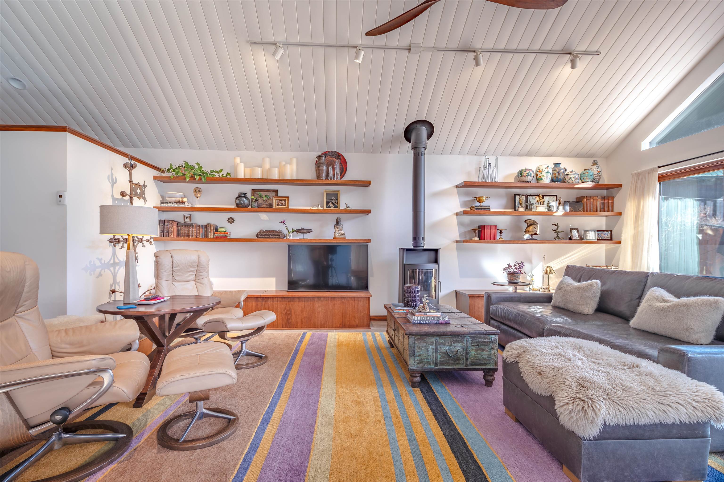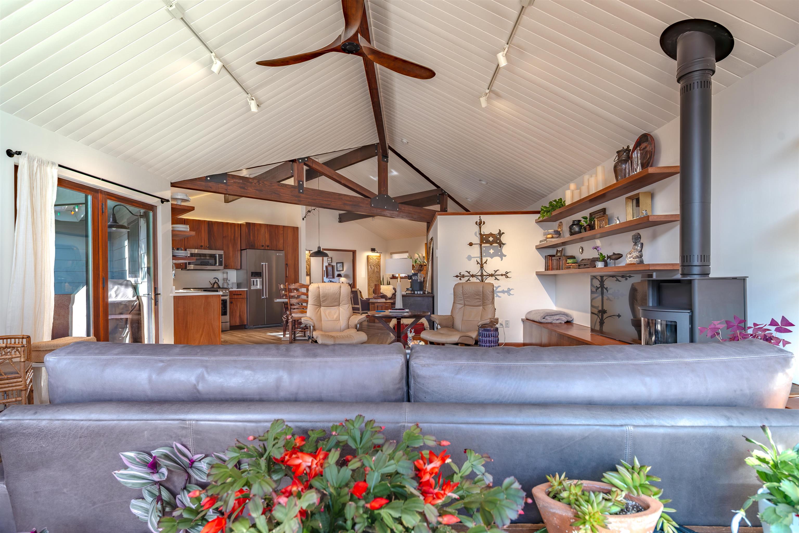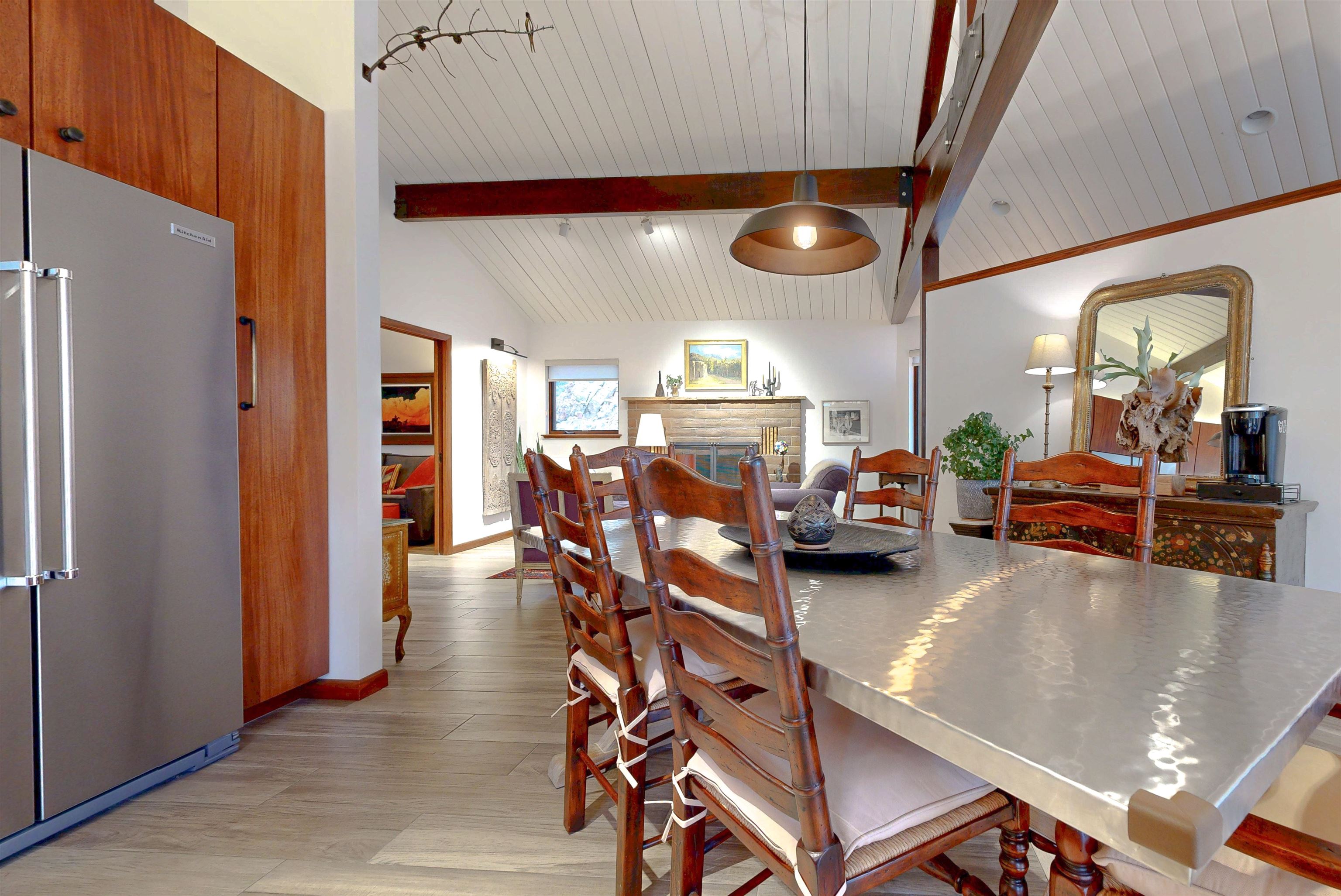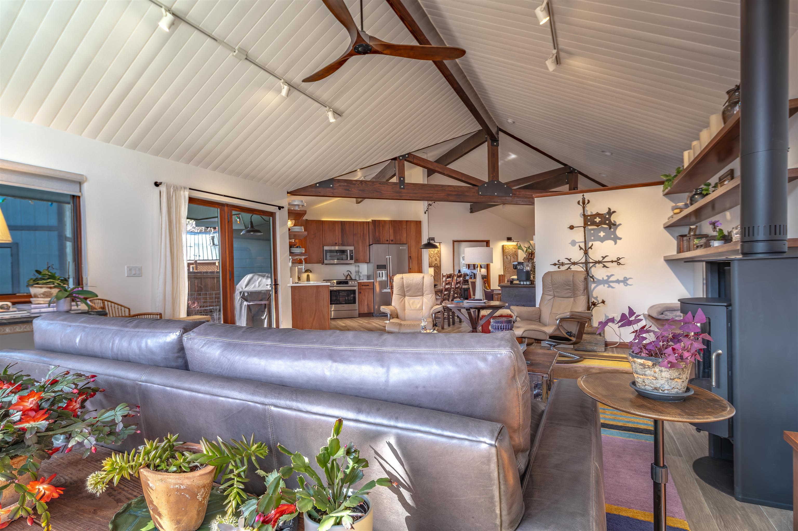 IN-TOWN MAIN HOUSE WITH GUEST CABIN! Discover the ultimate mountain lifestyle in the heart of Red River -- just a short walk to restaurants, shopping, and the ski slopes. Fully remodeled main house in 2019, this beautifully updated 2-bedroom, 2-bathroom home offers 1,615 square feet of thoughtfully designed living space, blending high-end finishes with the relaxed charm of alpine living. From the backyard deck, enjoy the rare and captivating view of skiers descending the run in the winter, while the soothing sounds of the bordering Mallette creek on one side of the property creates a peaceful backdrop starting in late spring, all summer and into fall. Inside, the open concept living and kitchen areas are designed for gathering and comfort. Custom cabinetry throughout the space including storage benches, while mountain views and ski slope vistas fill the home with natural beauty. Cozy evenings are effortless with both a fireplace and wood-burning stove. Quartz countertops throughout add a refined touch, and the Navien natural gas water heater provides modern efficiency with radiant floor heating in the main home. The primary bedroom is conveniently located on the main level with a private ensuite bath. The second bedroom offers access to an upper-level loft -- a flexible reading, sleeping, or recreation space perfect for sleepovers, a teen retreat, gaming area, or quiet time with a great book. A separate 437 square foot cabin with sleeping loft provides exceptional versatility and rental potential. Partially renovated in 2022, it features durable Japanese Cypress siding known for its natural resistance to fire, pests, and weathering -- requiring no paint or stain -- along with new windows, carpet and Trex decking on all exterior surfaces. The backyard offers privacy and flexibility, including potential to expand parking. This is one of the few properties in town with a sizeable, fenced yard. A single-car carport and additional parking spaces accommodate guests with ease. An outdoor shop with electricity and loft storage creates the perfect space for hobbies, gear storage, studio use, or creative pursuits. With walk-to-everything convenience, ski slope views, creek frontage, and income potential, this stunning property offers a rare opportunity to own a fully renovated mountain retreat in one of Northern New Mexico's most beloved resort towns. This is one of the most beautiful homes in all of Red River for under $1 million!