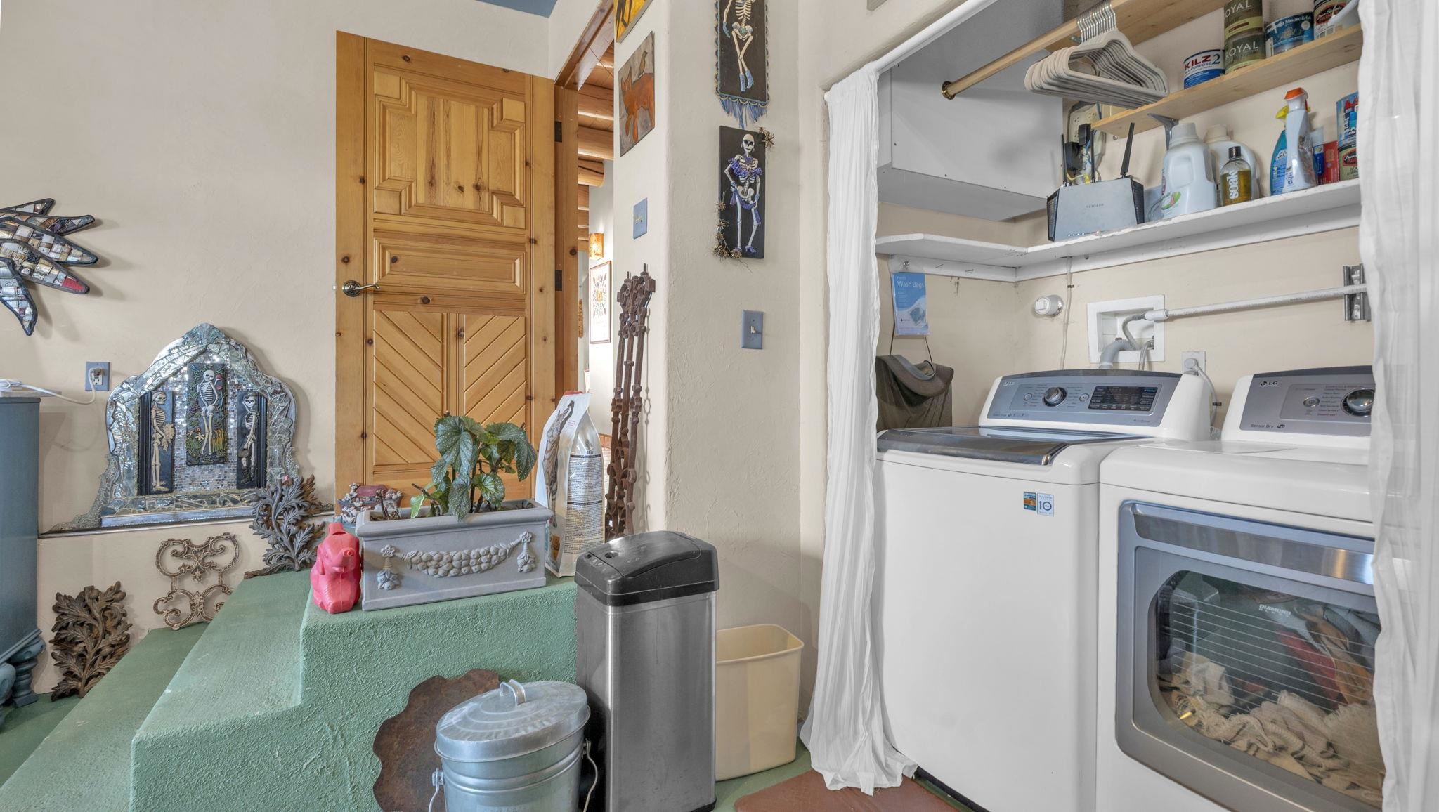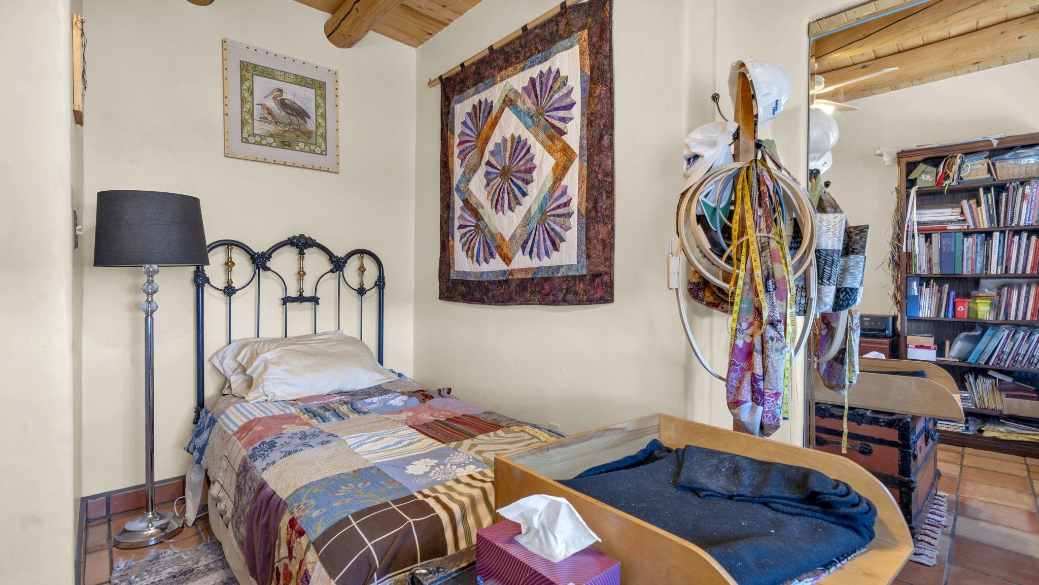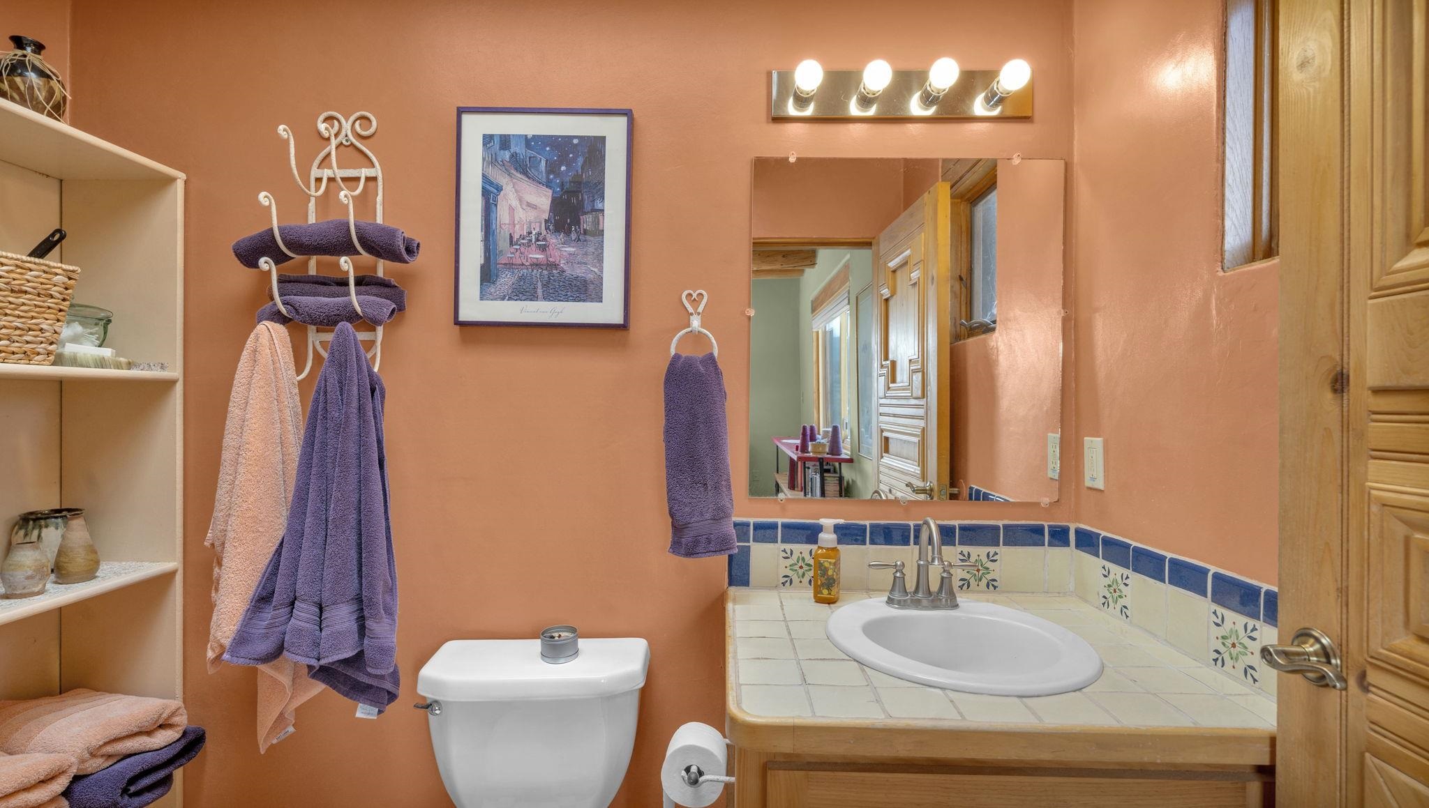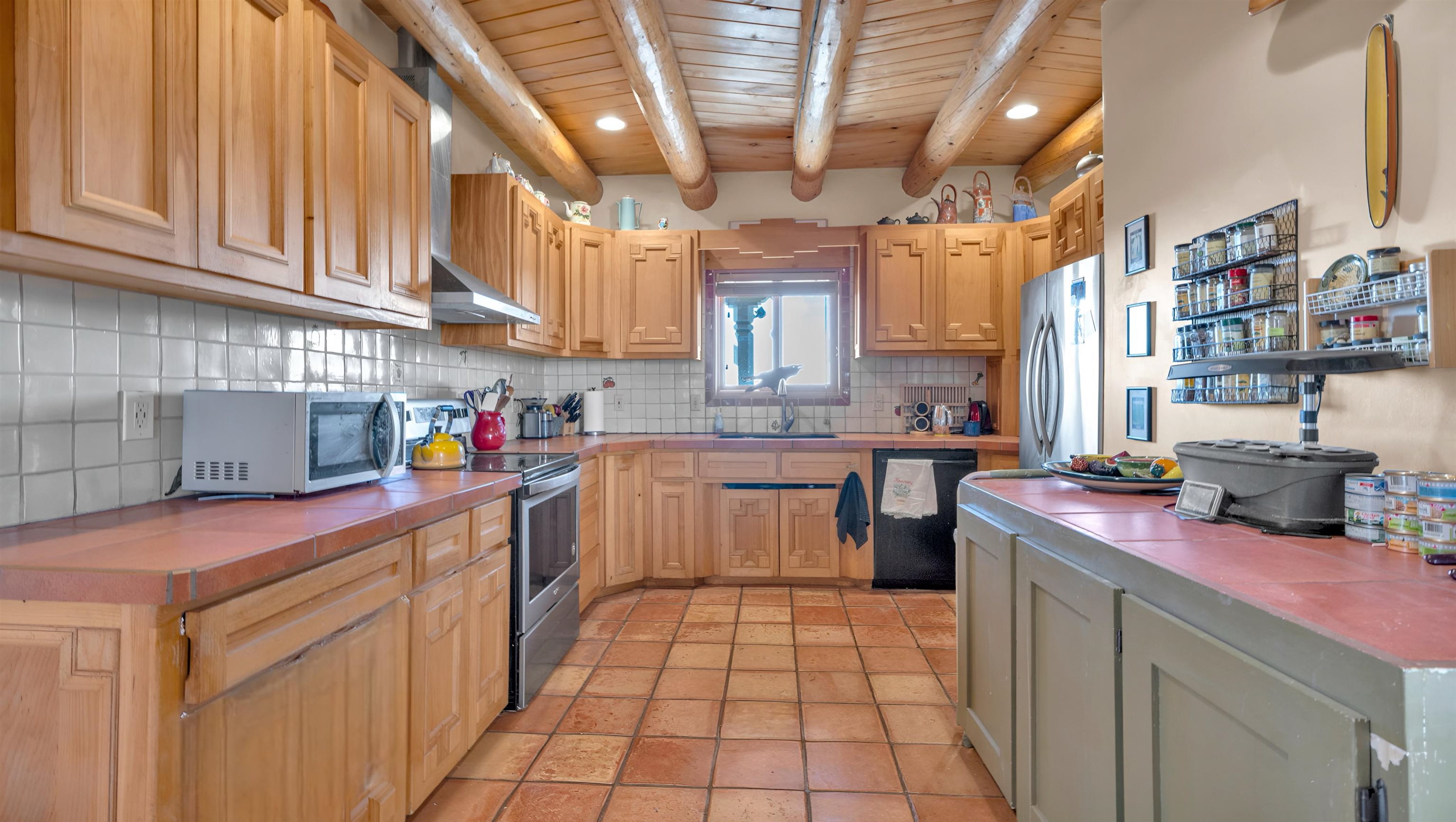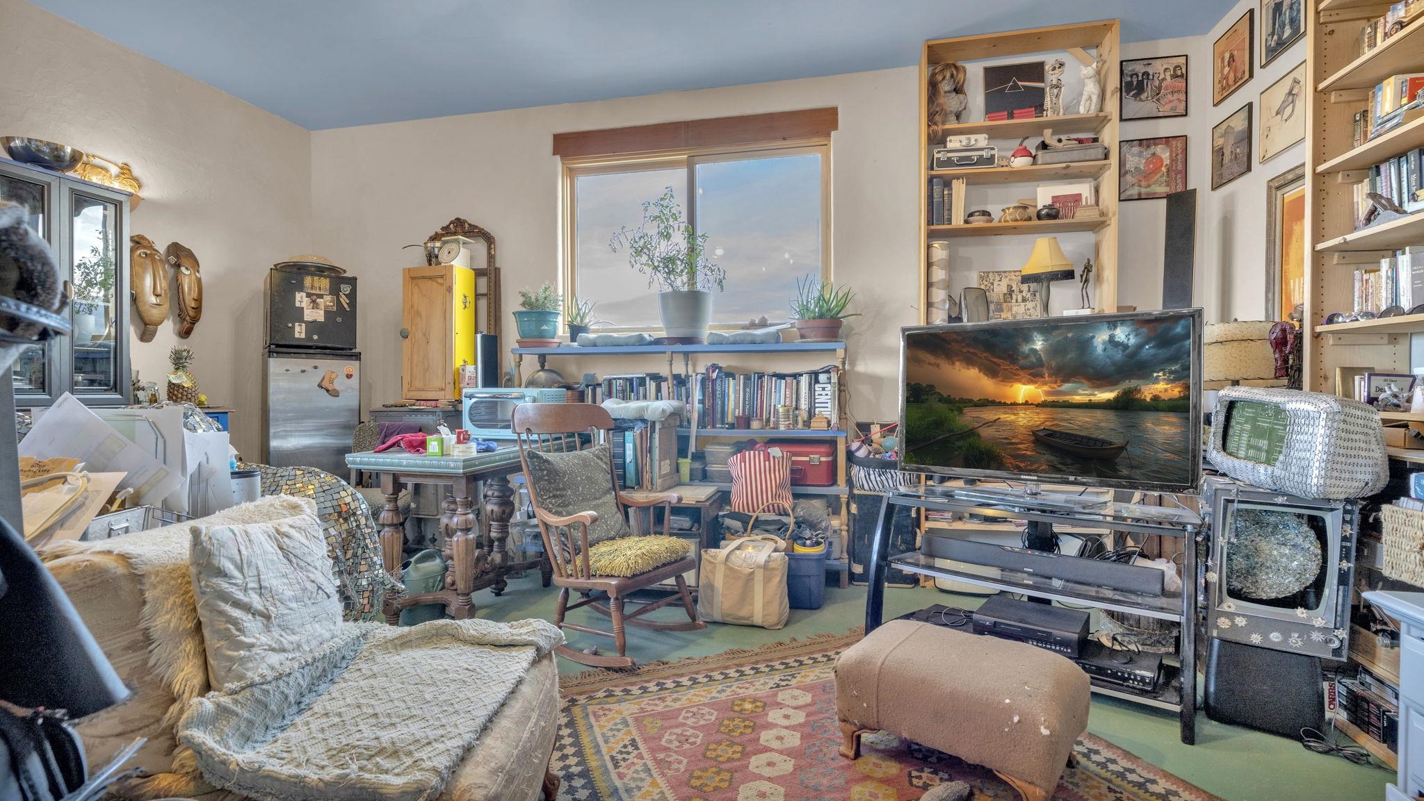 Mountain views take center stage at this spectacular Ranchos de Taos home, where epic vistas meet timeless Southwest charm. This spacious three-bedroom, two-full bath residence features a sunken living room with an inviting kiva fireplace, and saltillo tile floors throughout the home. The thoughtful split floor plan places the primary suite on the opposite side of the home from the guest bedrooms for added privacy. Step out onto the flagstone courtyard patio with trees to take in the vivid western sunsets and panoramic views. Outdoor walkways, a fully fenced yard, designated garden areas, a carport, and a large storage shed complete the property. Lovingly maintained and ideally located near the Taos golf course, and minutes from downtown Taos. This area offers plenty of hiking trails overlooking the Rio Grande, and of course the very epic sunsets. With 18 solar panels to offset your utility costs, a converted garage bonus room, and a tankless on-demand hot water heater, comfort meets efficiency. Discover the beauty of refined mountain living.
