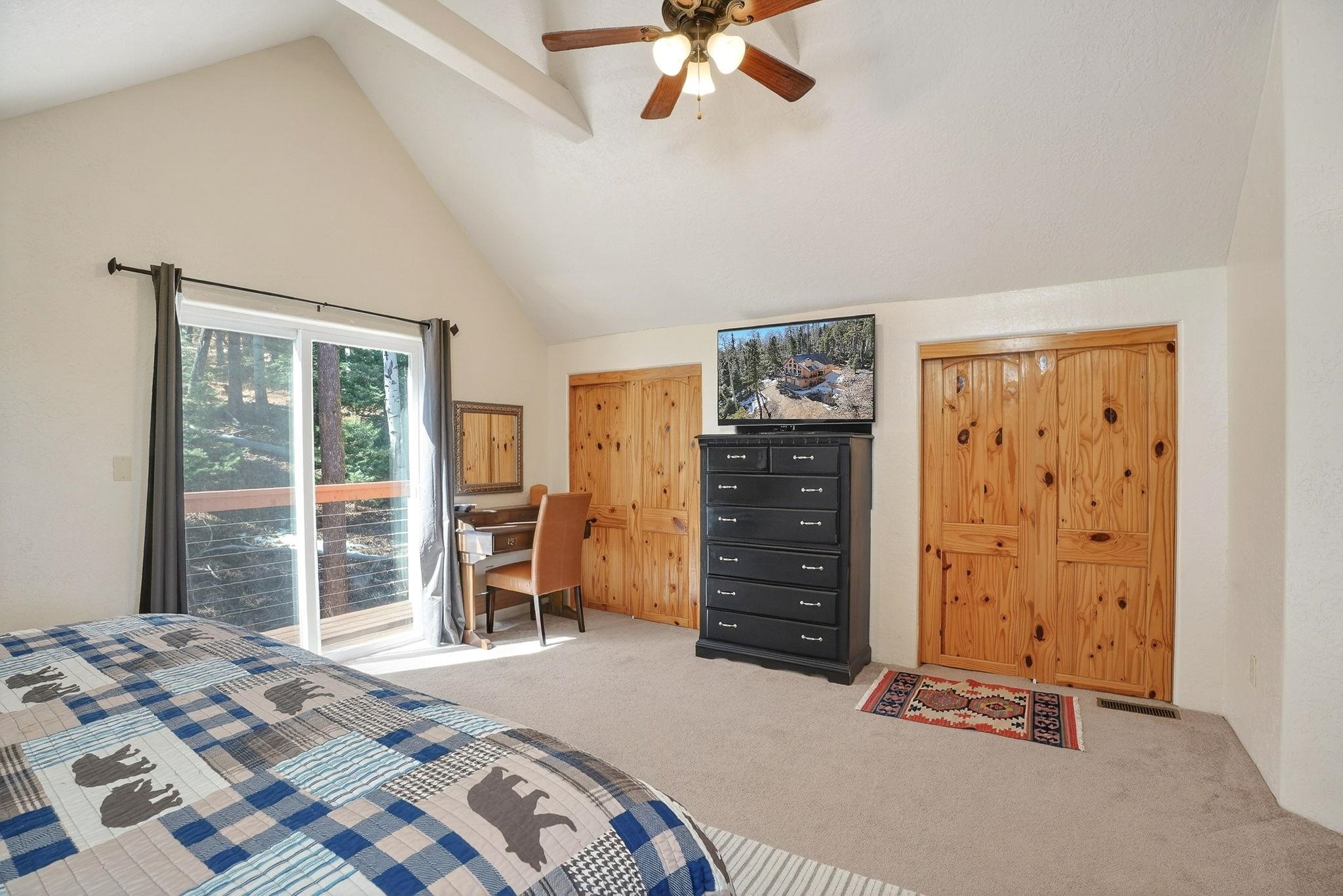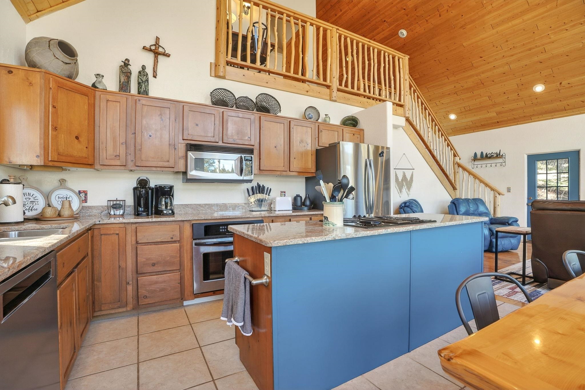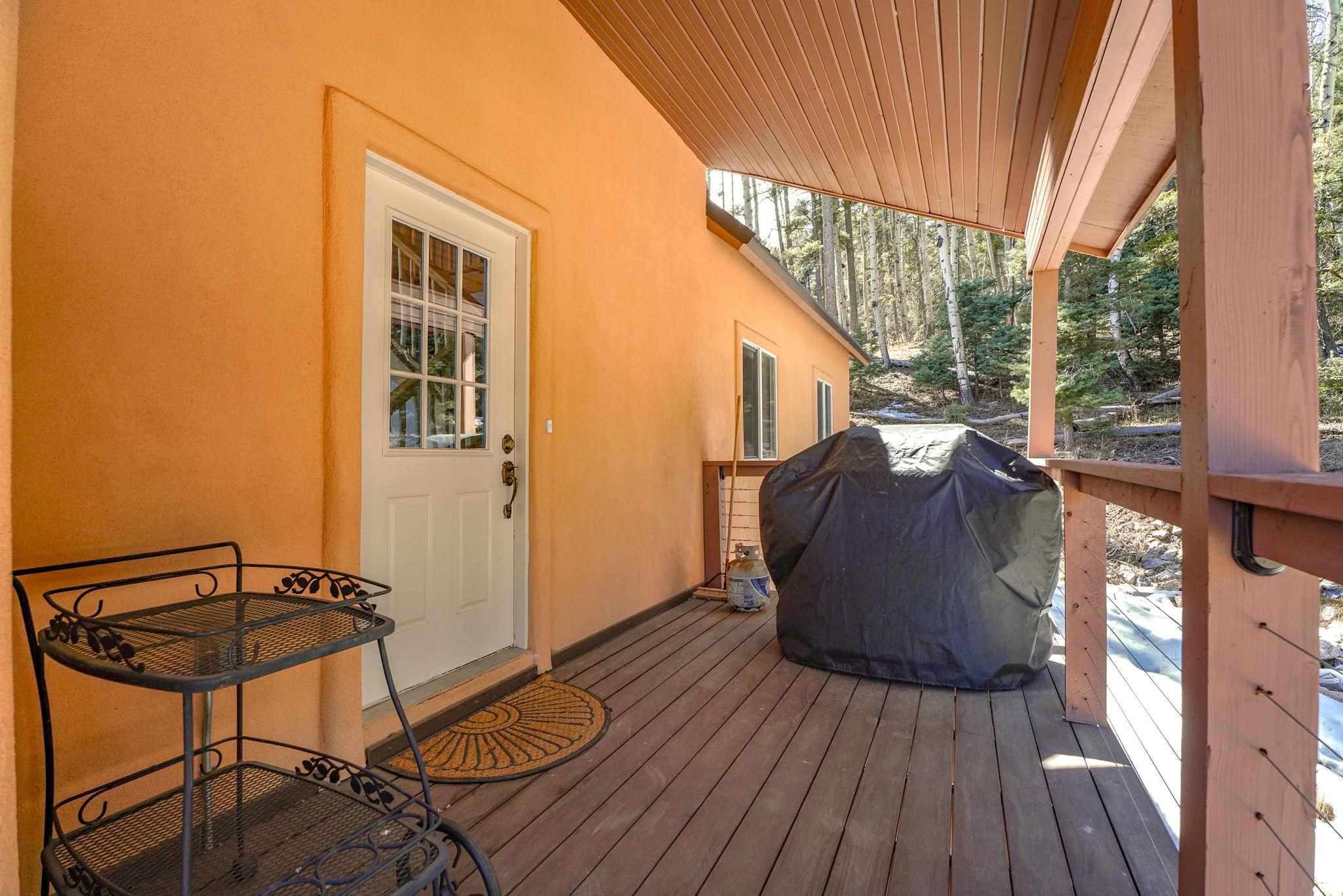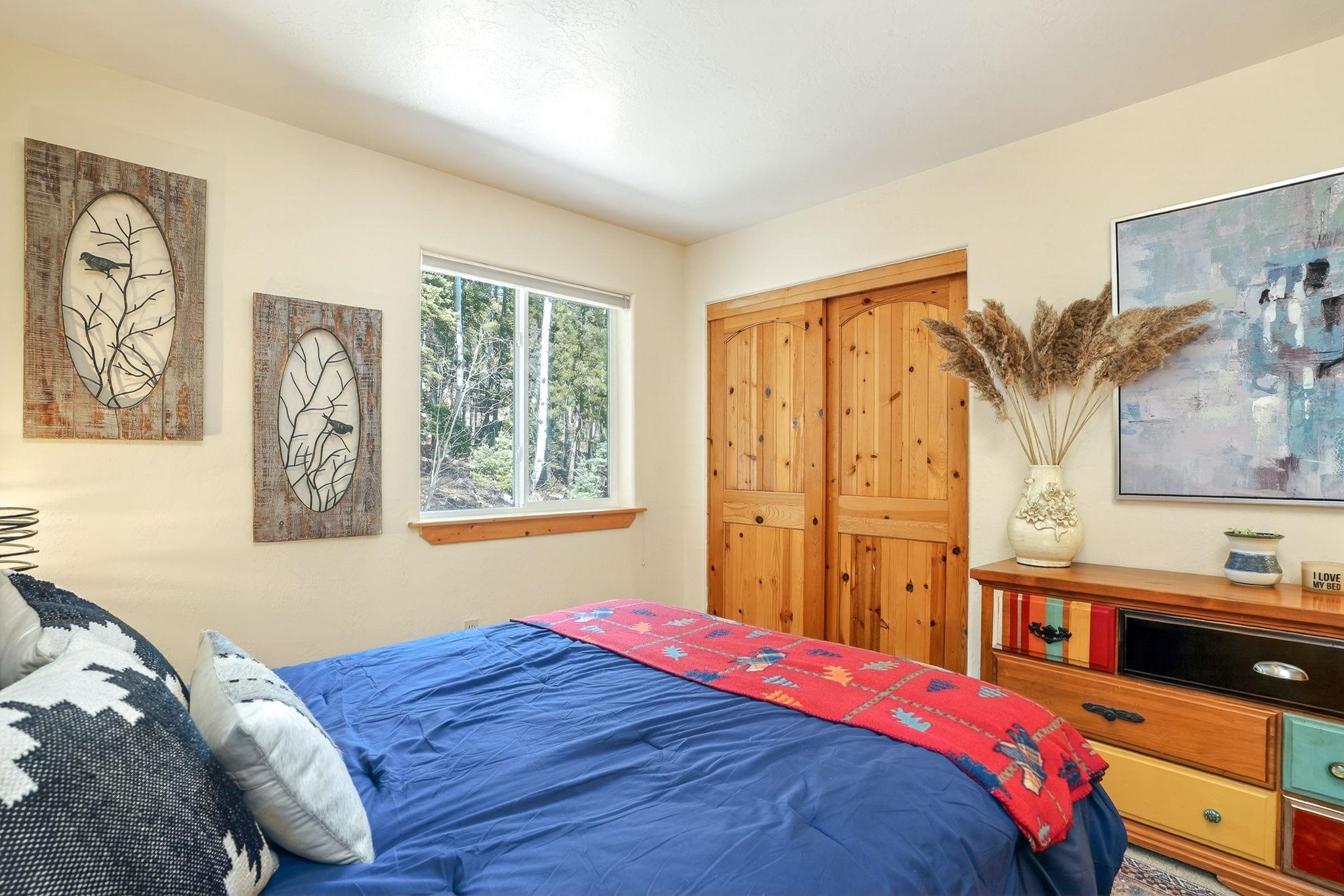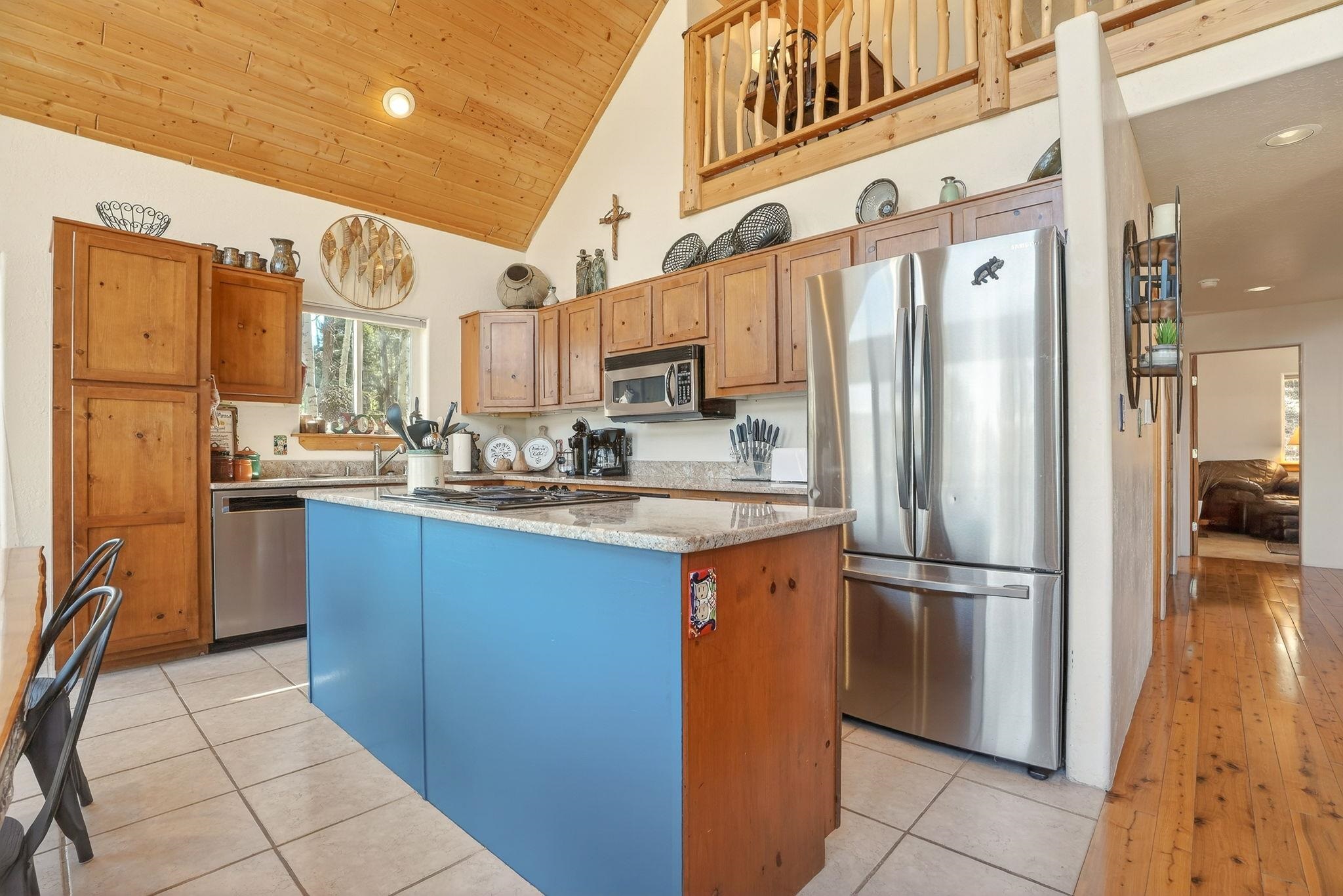 Nestled among the tall pines of Angel Fire, this warm and welcoming mountain chalet sits on a beautifully wooded 1.64-acre lot with peaceful views and room to breathe. Inside, the open living area is filled with natural light and features soaring wood ceilings, expansive windows, and a cozy propane fireplace - an ideal place to unwind after a day of skiing, hiking, or exploring the mountains. The home offers a flexible layout designed for hosting friends and family. The main level includes the living, kitchen, dining, and laundry areas along with two guest bedrooms, a guest bath, and a comfortable primary suite for convenient main-floor living. Upstairs, a loft leads to a second private primary suite, perfect for guests who want their own retreat. Step outside to the spacious composite deck and take in the quiet mountain setting surrounded by mature pines. The attached two-car garage includes an oversized bay with extra height and length, ideal for larger vehicles or outdoor gear. Whether you're looking for a peaceful getaway, a basecamp for mountain adventures, or a property with rental potential, this charming Angel Fire home offers the space and setting to enjoy it all.