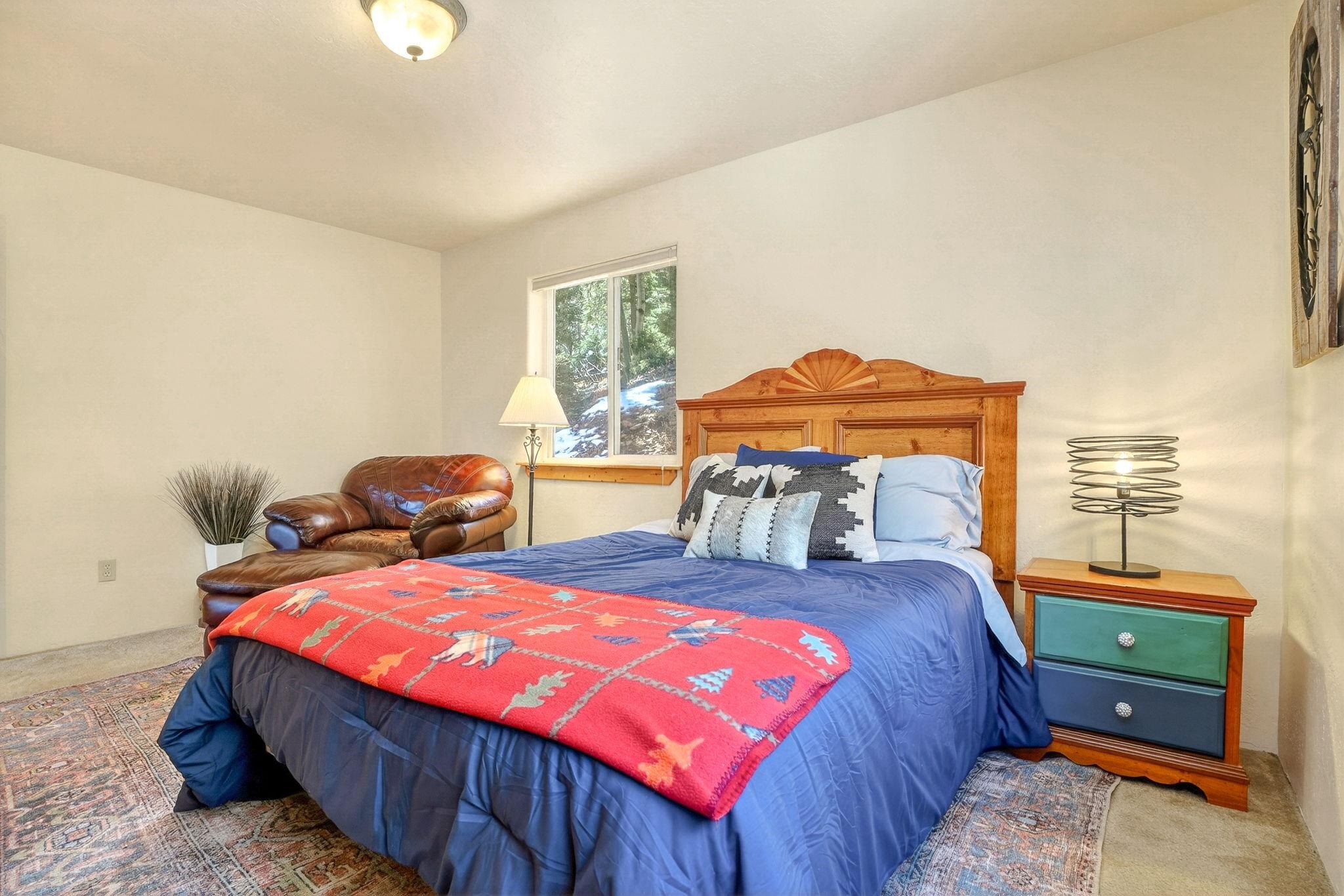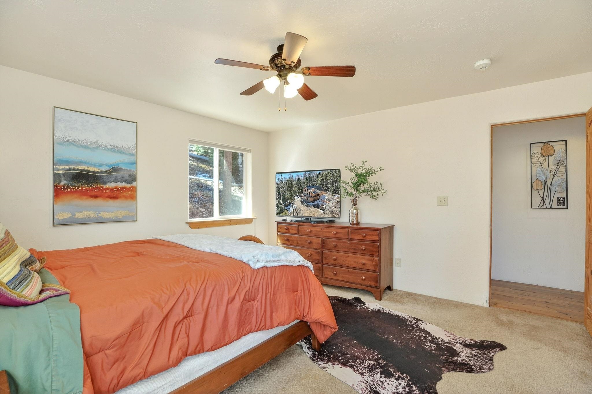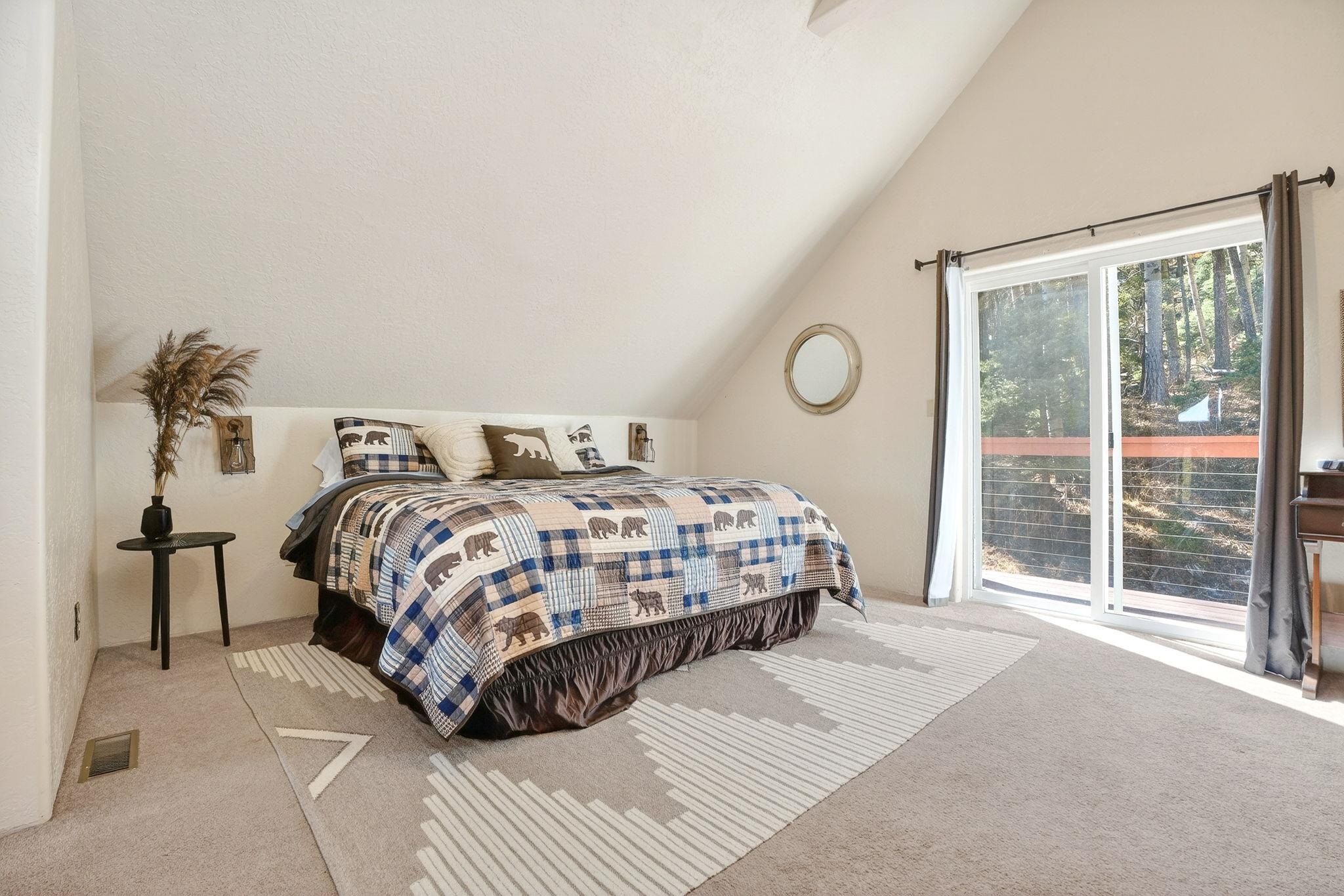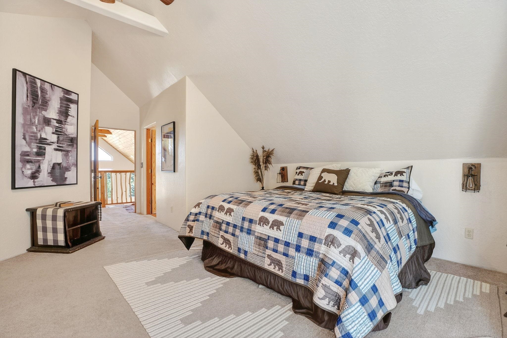 Nestled among the tall pines of Angel Fire, this warm and welcoming mountain chalet sits on a beautifully wooded 1.64-acre lot with peaceful views and room to breathe. Inside, the open living area is filled with natural light and features soaring wood ceilings, expansive windows, and a cozy propane fireplace - an ideal place to unwind after a day of skiing, hiking, or exploring the mountains. The home offers a flexible layout designed for hosting friends and family. The main level includes the living, kitchen, dining, and laundry areas along with two guest bedrooms, a guest bath, and a comfortable primary suite for convenient main-floor living. Upstairs, a loft leads to a second private primary suite, perfect for guests who want their own retreat. Step outside to the spacious composite deck and take in the quiet mountain setting surrounded by mature pines. The attached two-car garage includes an oversized bay with extra height and length, ideal for larger vehicles or outdoor gear. Whether you're looking for a peaceful getaway, a basecamp for mountain adventures, or a property with rental potential, this charming Angel Fire home offers the space and setting to enjoy it all.