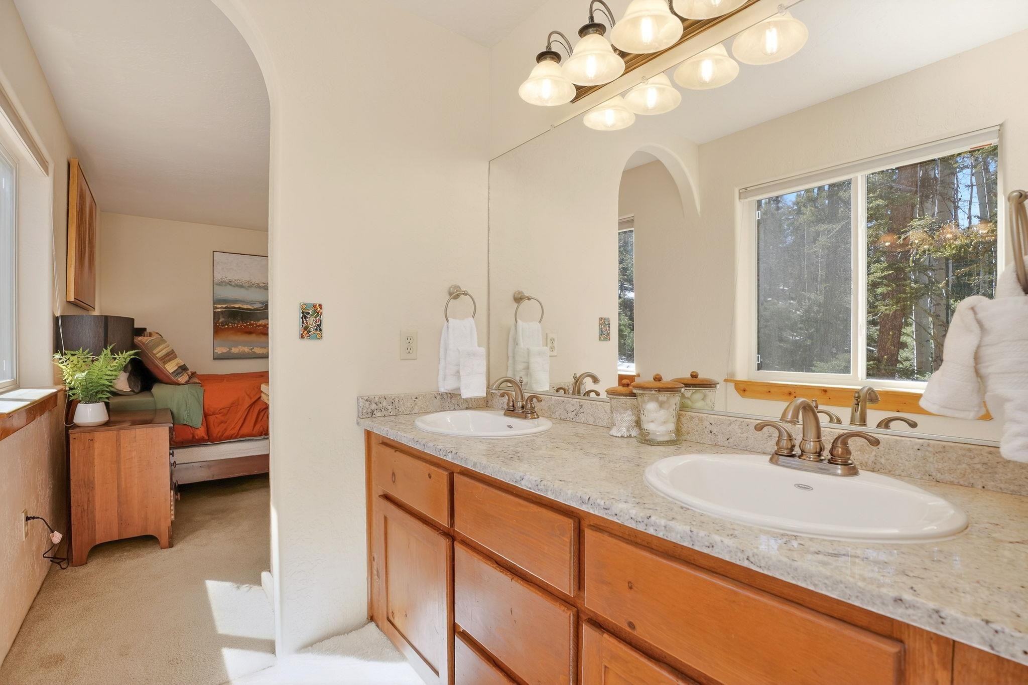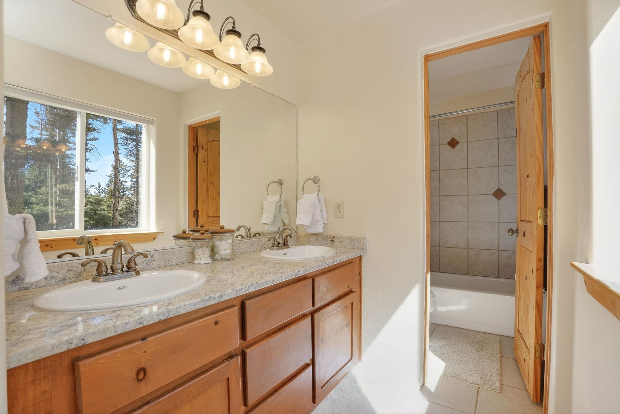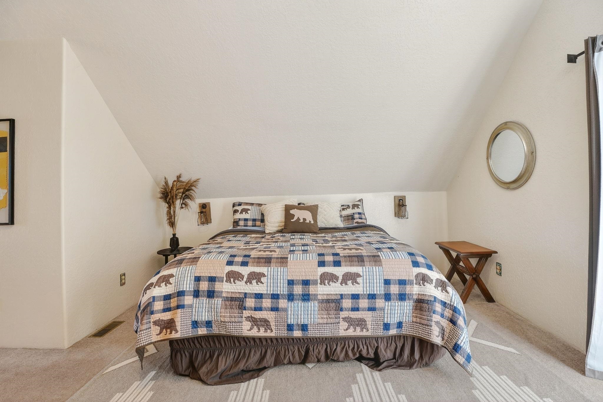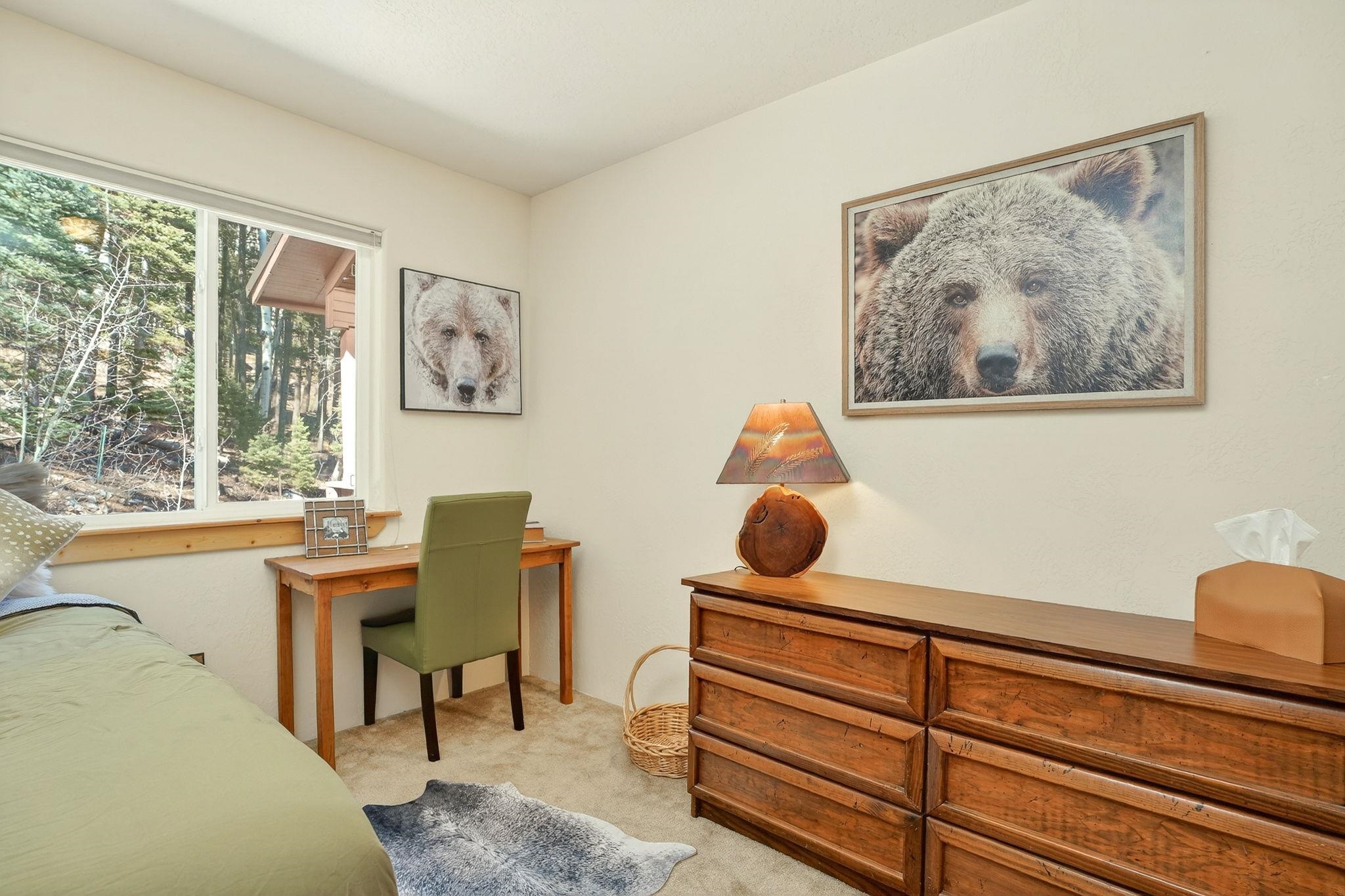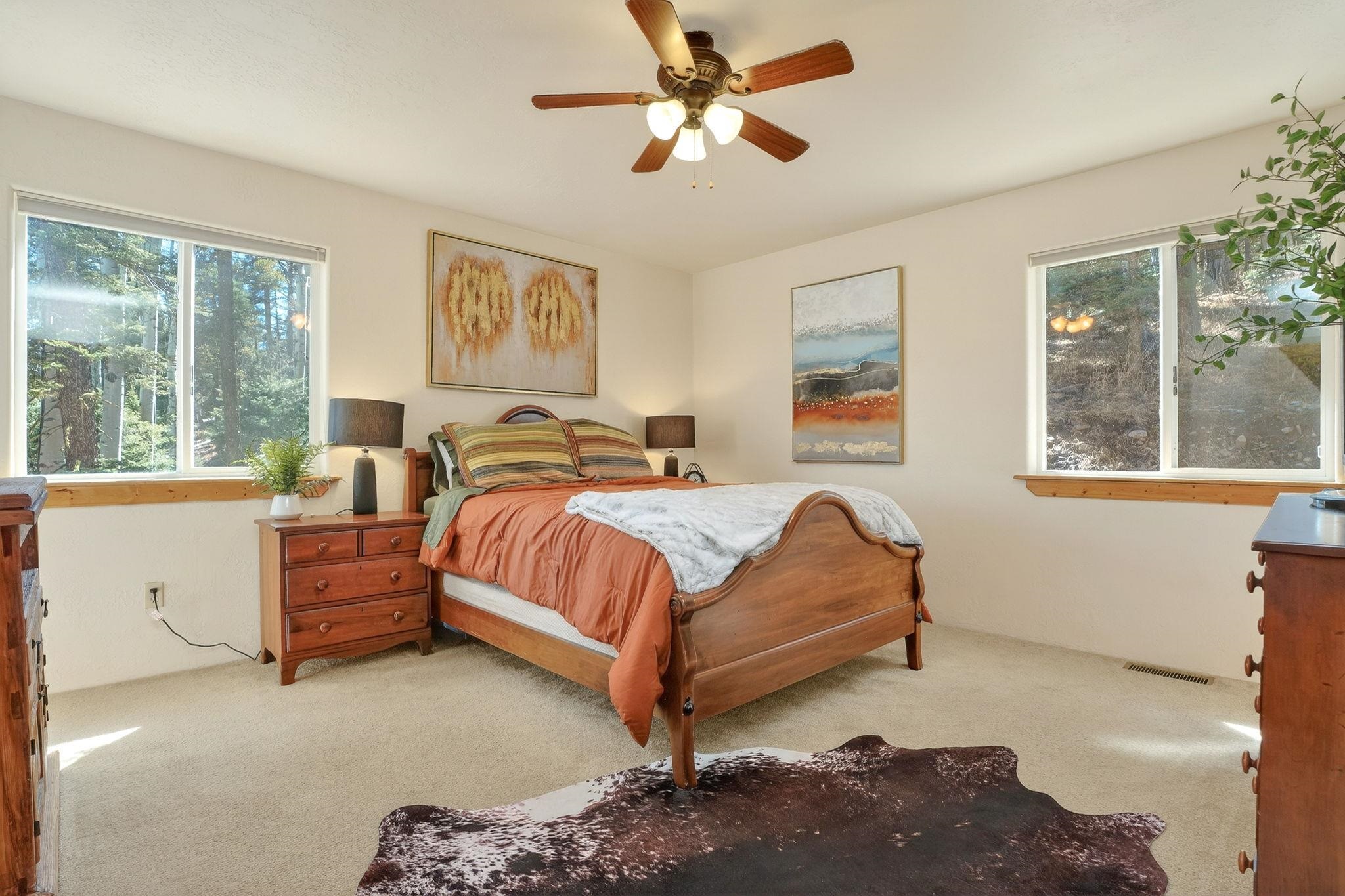 Nestled among the tall pines of Angel Fire, this warm and welcoming mountain chalet sits on a beautifully wooded 1.64-acre lot with peaceful views and room to breathe. Inside, the open living area is filled with natural light and features soaring wood ceilings, expansive windows, and a cozy propane fireplace - an ideal place to unwind after a day of skiing, hiking, or exploring the mountains. The home offers a flexible layout designed for hosting friends and family. The main level includes the living, kitchen, dining, and laundry areas along with two guest bedrooms, a guest bath, and a comfortable primary suite for convenient main-floor living. Upstairs, a loft leads to a second private primary suite, perfect for guests who want their own retreat. Step outside to the spacious composite deck and take in the quiet mountain setting surrounded by mature pines. The attached two-car garage includes an oversized bay with extra height and length, ideal for larger vehicles or outdoor gear. Whether you're looking for a peaceful getaway, a basecamp for mountain adventures, or a property with rental potential, this charming Angel Fire home offers the space and setting to enjoy it all.