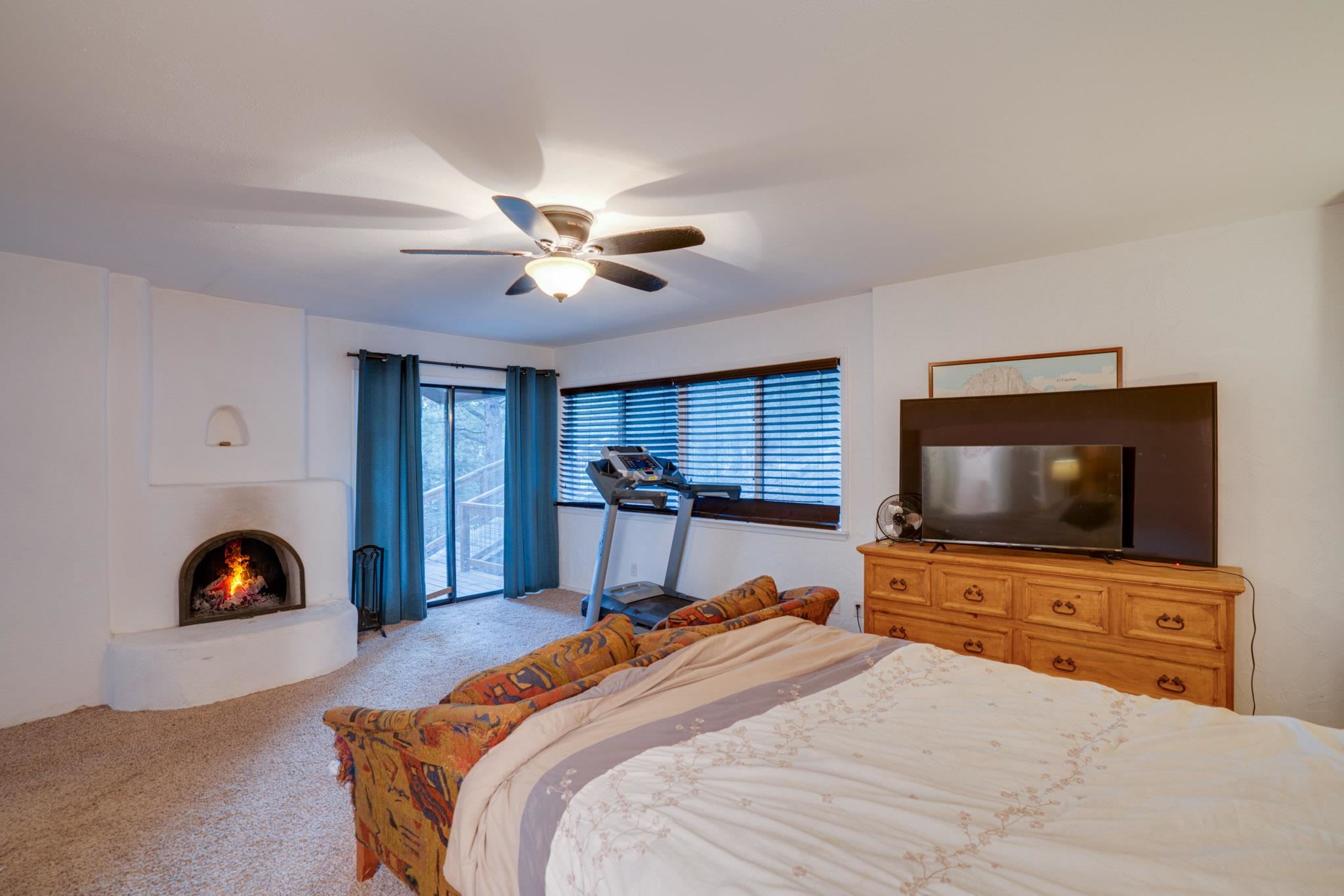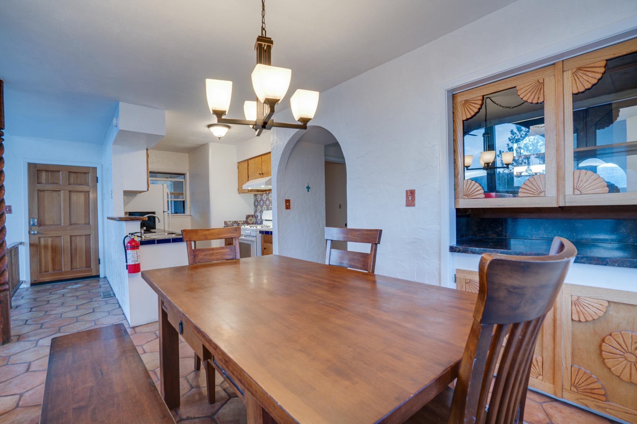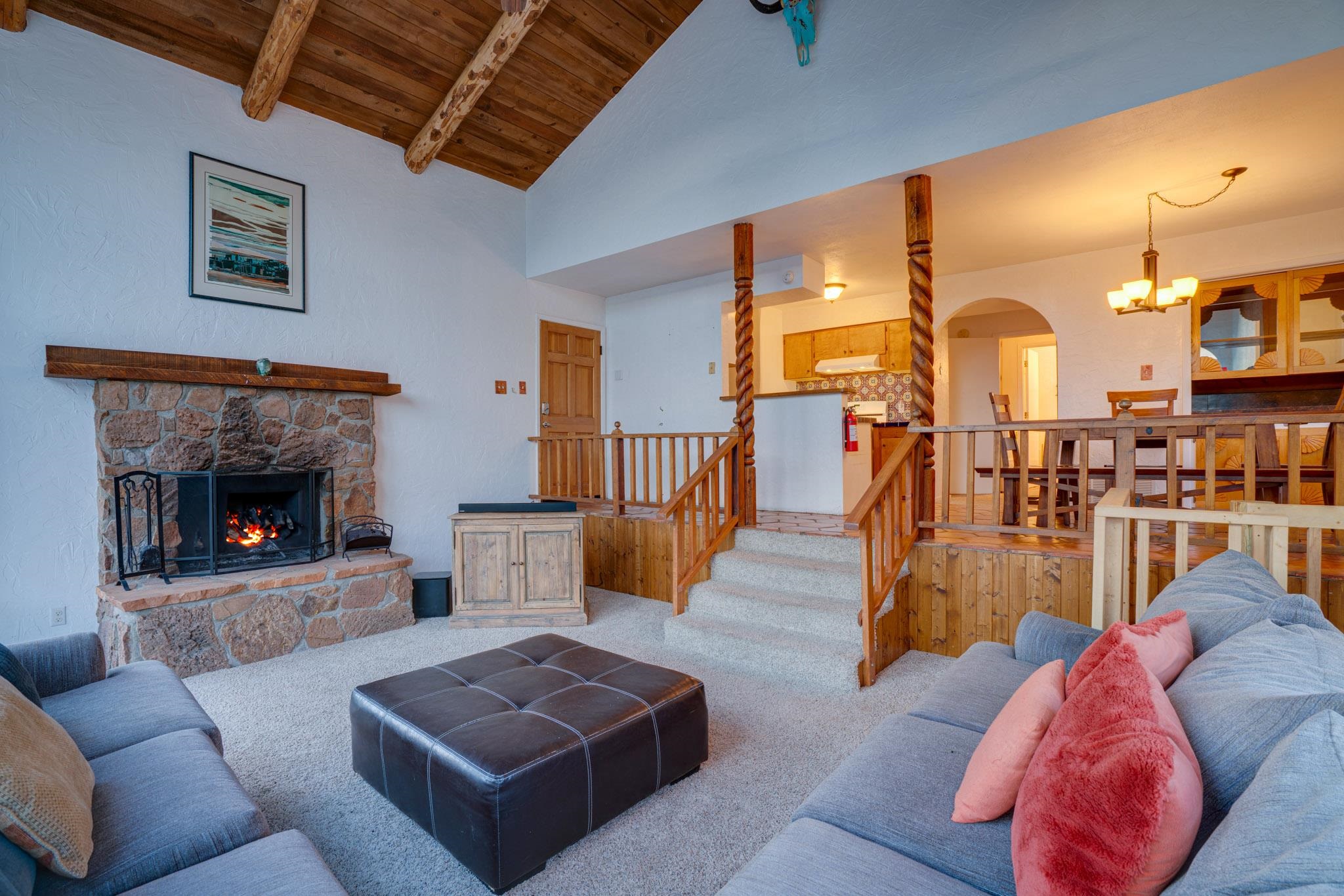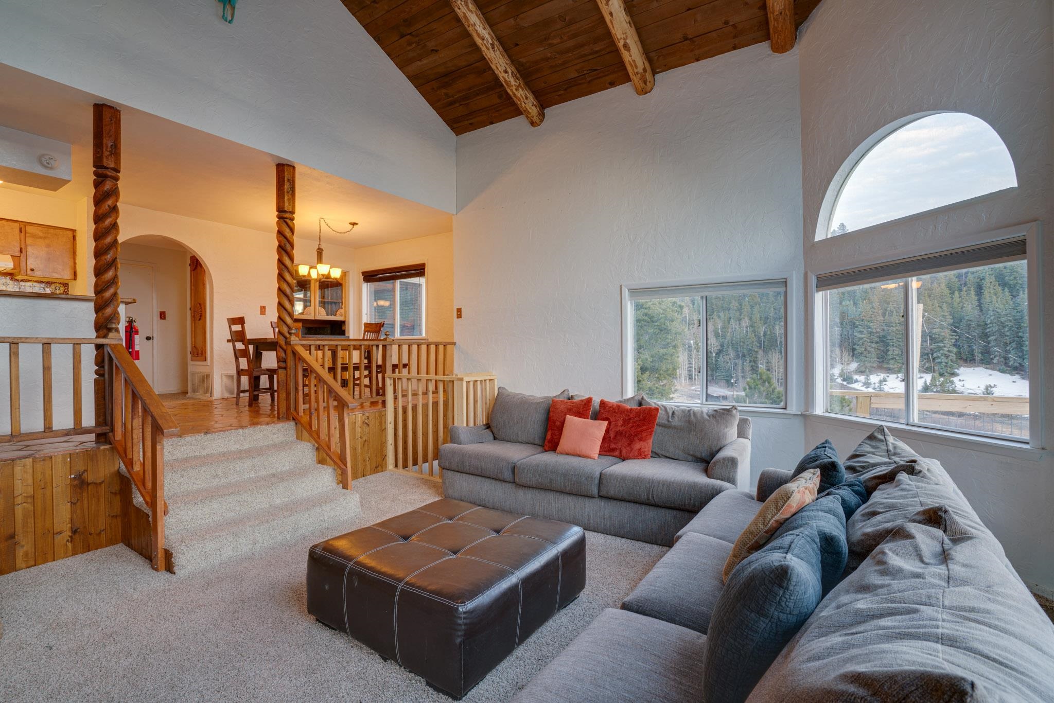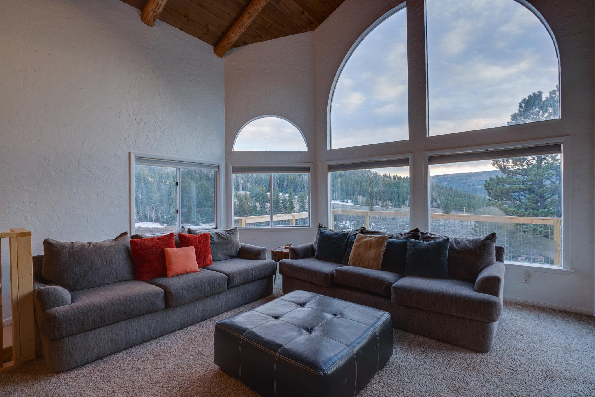 Embrace the mountain lifestyle in this beautiful custom 4-bedroom, 2-bath retreat set on .75 acres and surrounded by the natural beauty of Northern New Mexico. Perfectly positioned to capture stunning mountain views, the living room features dramatic floor-to-ceiling windows that bring the outdoors in and fill the home with natural light. Cozy up beside one of the two fireplaces, including a private fireplace in the primary bedroom, creating the perfect setting for cool mountain evenings. Step out onto the spacious deck to relax with your morning coffee, watch the changing colors of the mountains, or enjoy peaceful stargazing under the clear alpine sky. Backing directly to forest land, the property offers privacy, abundant wildlife, and immediate access to hiking and outdoor exploration right from your backyard. Whether you're looking for a full-time mountain home, weekend escape, or investment getaway, this property offers the perfect blend of comfort, scenery, and adventure in the heart of Northern New Mexico. Square footage is approximate only.