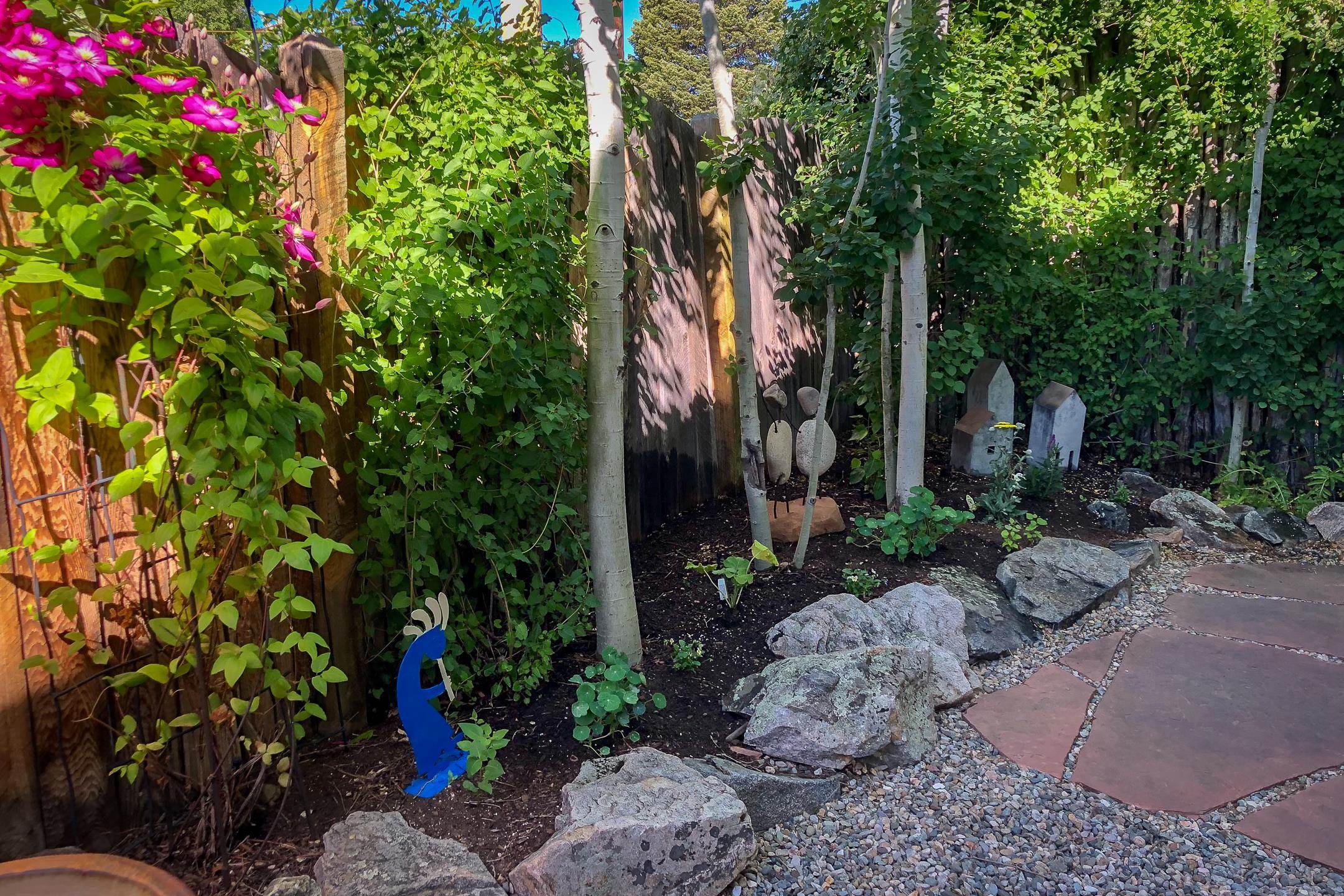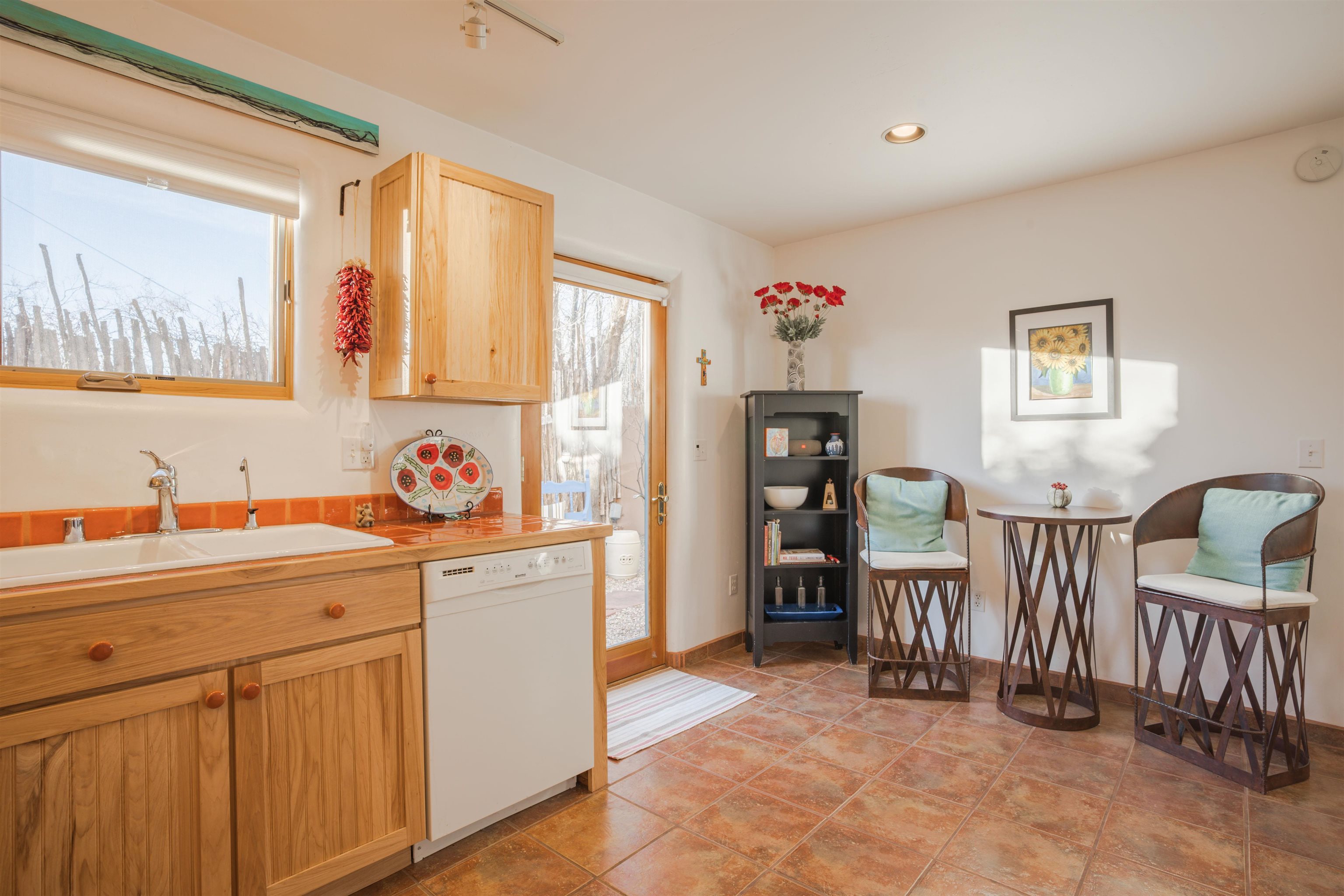Tucked away on charming Dolan Street just moments from the Historic Taos Plaza, Casa Escondida--meaning "hidden house"--offers a peaceful retreat with authentic Southwestern character and convenient access to the best of Taos living. Located approximately one mile from the Plaza and within easy reach of shopping, dining, and world-class skiing at Taos Ski Valley, this inviting 2-bedroom, 2-bath condominium blends comfort, charm, and location. This thoughtfully designed two-story condo features the primary bedroom with ensuite bath upstairs, creating a quiet and private retreat. The living area welcomes you with exposed wooden ceiling beams, warm desert hues, and a cozy corner kiva fireplace, creating a rustic yet refined atmosphere. Casement windows throughout the home invite abundant natural light, providing bright, consistent illumination throughout the day and enhancing the home's comfortable, peaceful ambiance. Interior finishes reflect classic Taos style with ceramic tile floors throughout, a hardwood staircase, and Talavera tile accents in both bathrooms. The home is simply and tastefully adorned, creating an inviting space that feels both warm and authentic. Outdoor living is equally appealing. A front portal entrance enclosed by a privacy fence offers a charming and secluded entry, while the **private back patio--enclosed with a latilla fence and strung with ambient lighting--**creates the perfect setting for evening gatherings, sunset views, and quiet nights under Taos' star-filled skies. The patio is neatly landscaped with aspen trees, while nearby willow and cottonwood trees lining Dolan Street add to the serene surroundings. From the property, enjoy views of the nearby Taos foothills. Comfortable, quiet, and welcoming, Casa Escondida offers a rare combination of privacy, authentic Southwestern style, and proximity to Taos' vibrant cultural heart--a hidden gem waiting to be discovered.