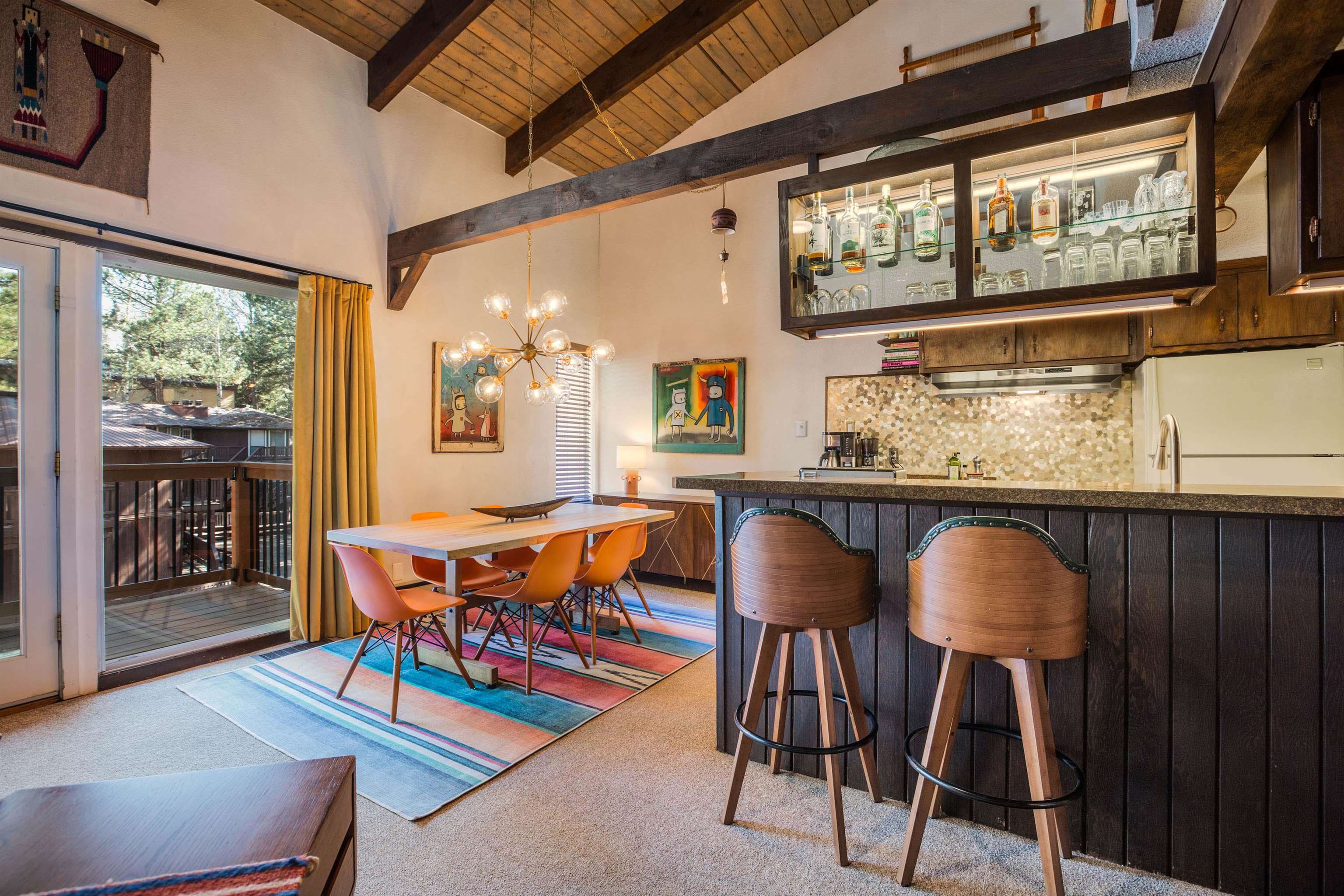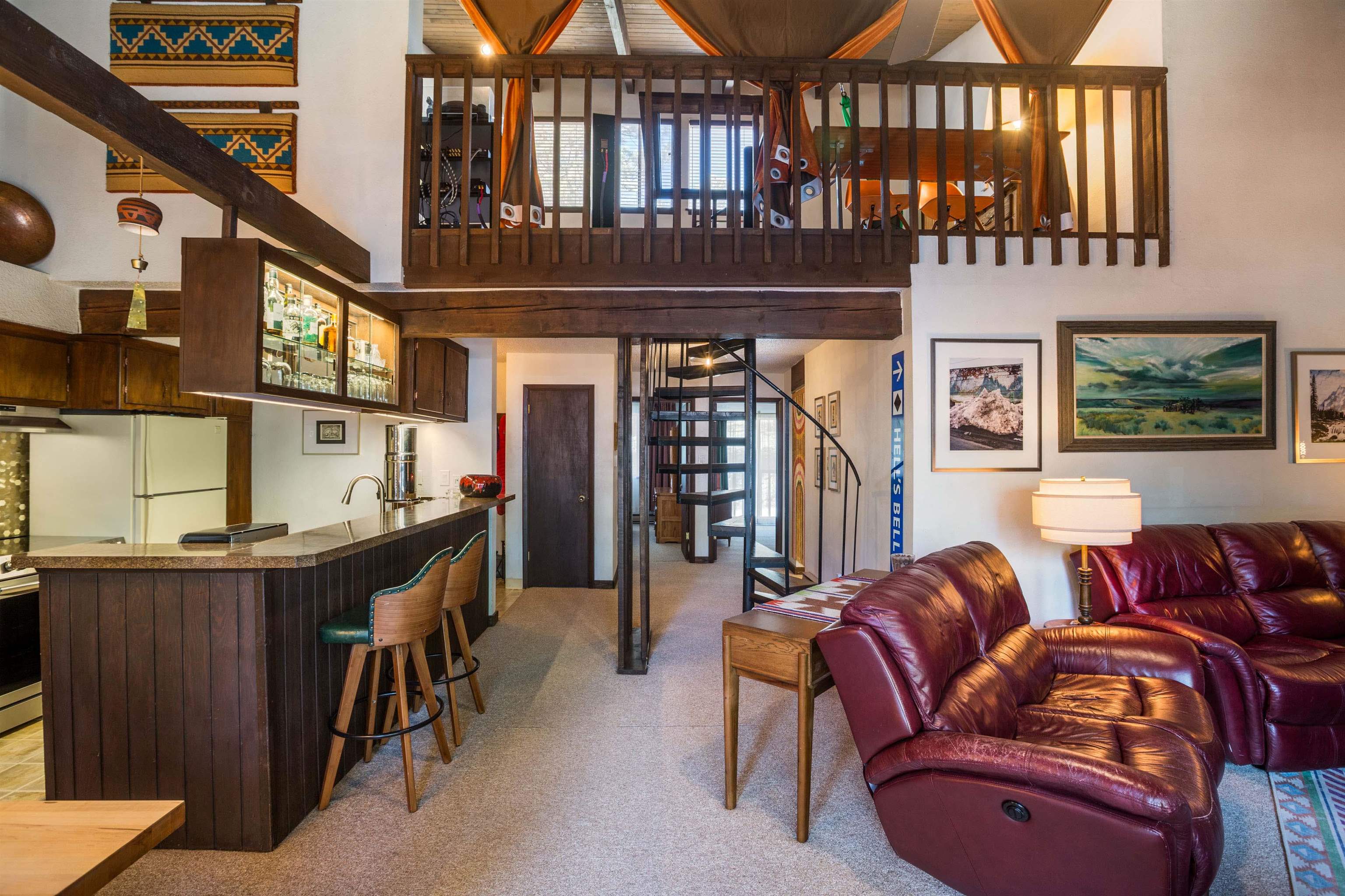 Located just moments from the slopes and trails of Angel Fire Resort, this spacious 3-bedroom, 3-bath condo offers the perfect mountain retreat with plenty of room for family and guests. The inviting main living area features vaulted ceilings, warm wood accents, and large windows that bring in cheerful natural light. The updated kitchen and dining area flow easily into the living room, creating a comfortable space for gathering after a day on the mountain. The primary suite, guest bedroom, and guest bath are located on the main level, while the loft-style third bedroom and bathroom upstairs provide additional sleeping space and privacy. Step outside to enjoy the mountain air from the private deck. The property also includes a full-size garage and a private storage room--perfect for keeping skis, bikes, and other mountain gear organized and out of the way. With its flexible layout, generous sleeping capacity, and convenient location near the base area, this condo makes an excellent vacation getaway, rental investment, or year-round mountain home.