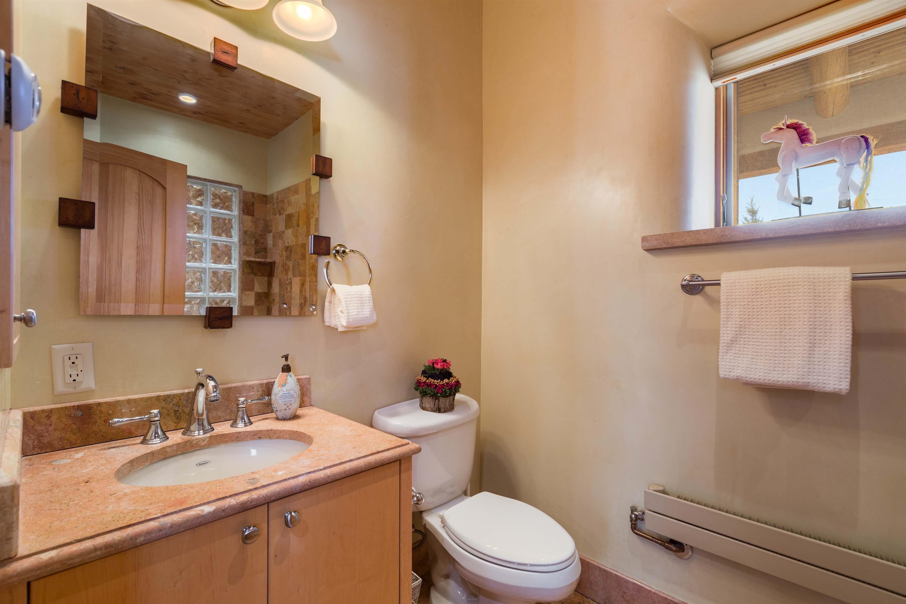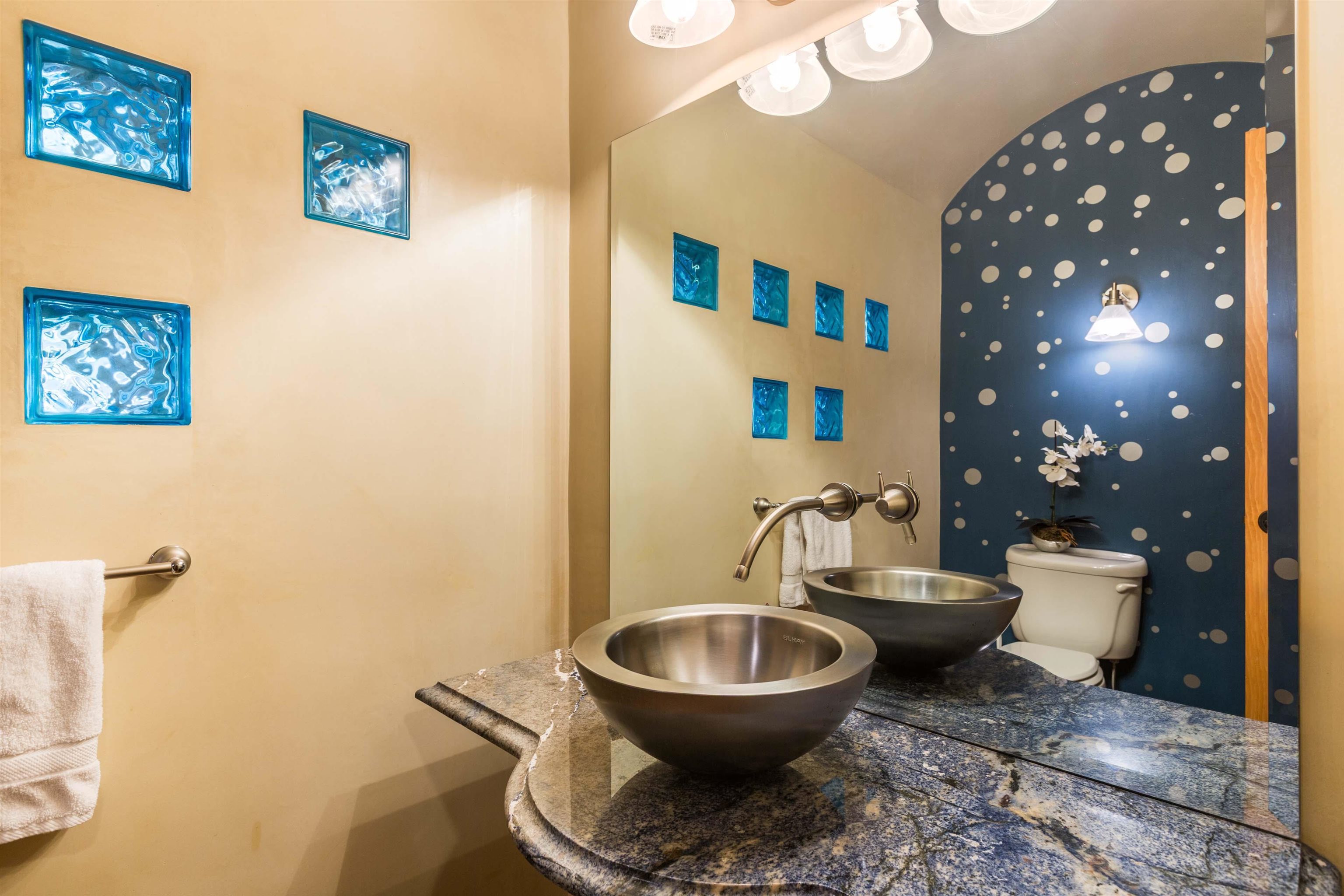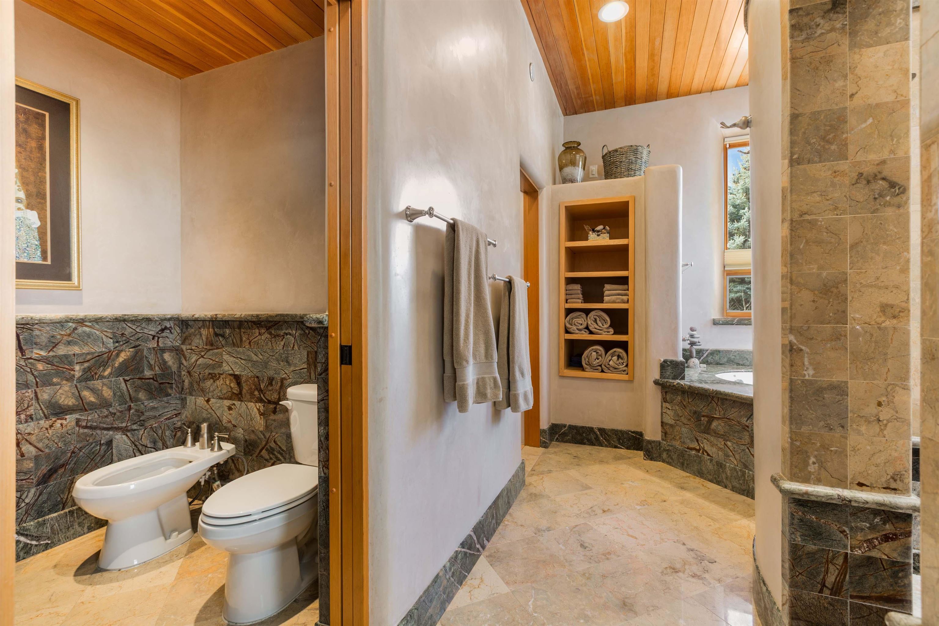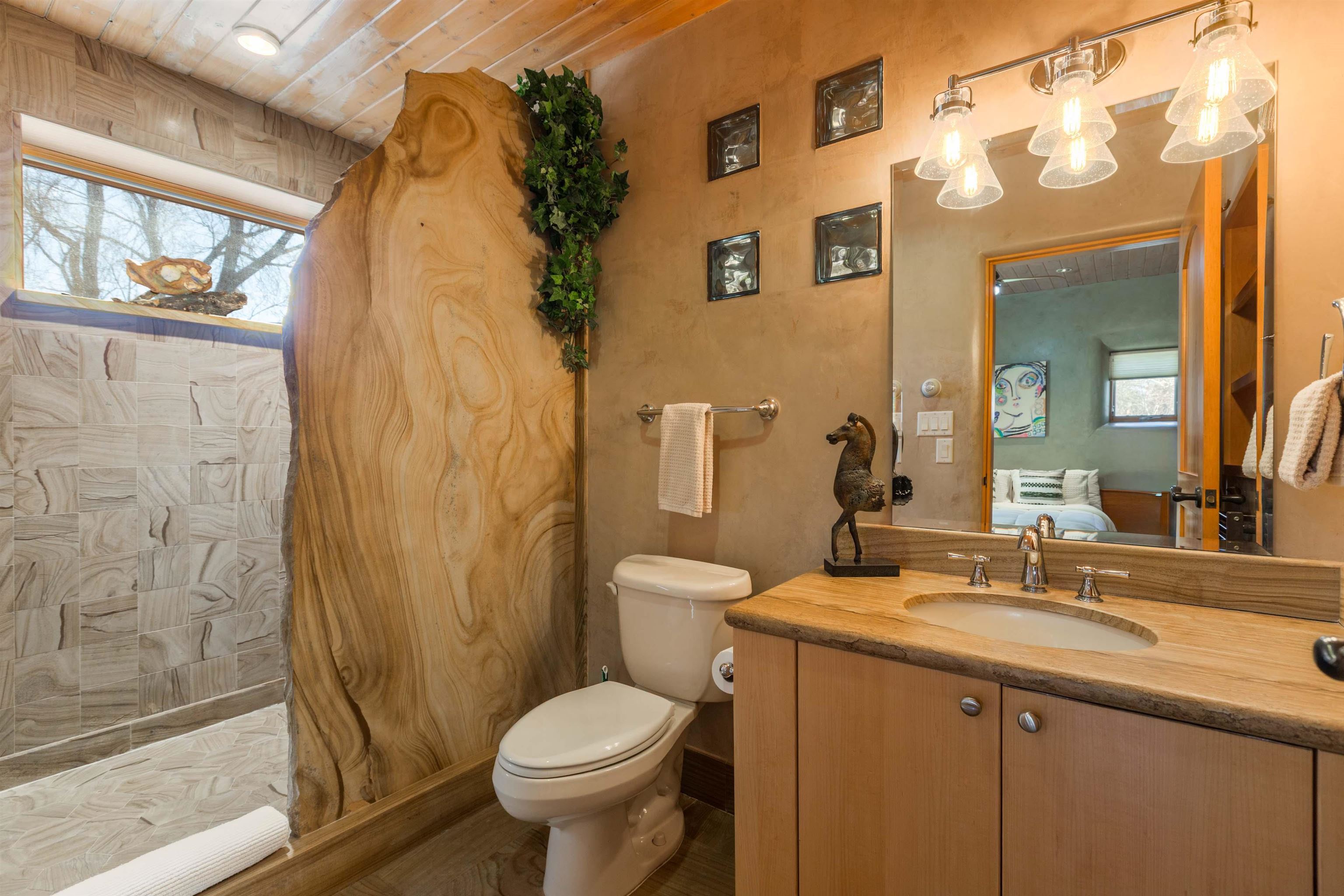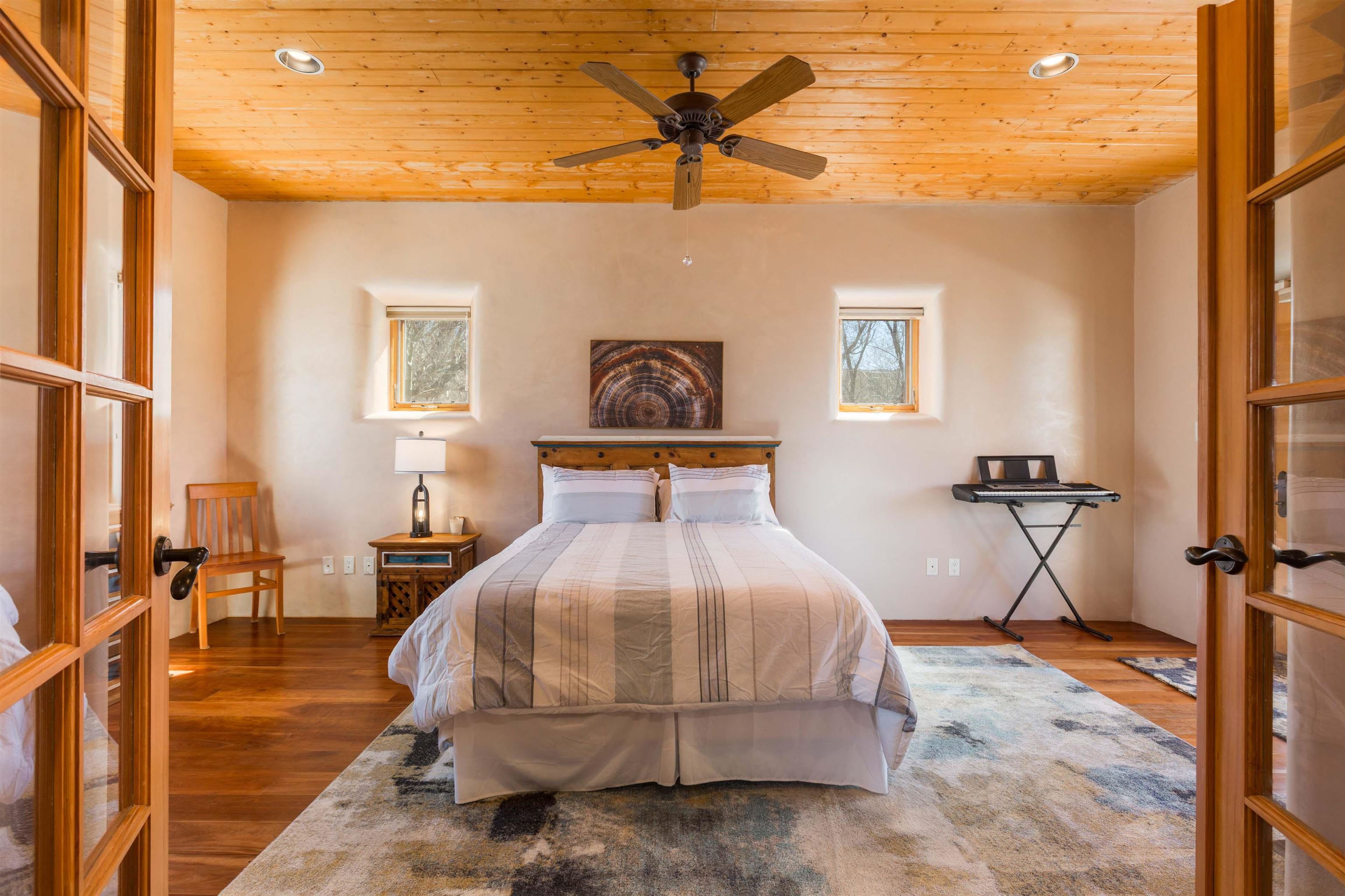 Welcome to your Oasis!! Set within the breathtaking high desert landscape of Taos and minutes from the Plaza. This extraordinary first time on the market, private estate offers a rare blend of timeless Northern New Mexico architecture, artisanal craftsmanship, and self-sustaining luxury. Built by Paul Rotman with substantial 18-inch thick Rastra Block walls, the residence embodies the enduring character of traditional adobe-style design while incorporating refined modern comfort. From the moment you enter through the handcrafted adobe entryway constructed with approximately 100-year-old bricks, the home reveals a level of artistry rarely found in traditional builds. Fourteen-foot ceilings, graceful coved ceilings in the kitchen, and diamond-finish plaster walls tinted with natural mineral pigments create a warm, sculptural interior that reflects the region's rich architectural heritage. The chef's kitchen is both bold and elegant, featuring granite countertops with full bullnose edges, custom cherry cabinetry, double ovens, and an intimate breakfast nook. Living spaces are anchored by gas fireplaces and custom stonework by renowned artisan Bob Loveless, complemented by natural stone tile flooring and expansive light-filled gathering areas including a tranquil sunroom. The primary suite offers a luxurious retreat with distinctive green marble accents in the bath, while upstairs cherry wood flooring adds warmth and refinement. Comfort throughout the home is provided by radiant floor heating, supplemental wall heaters, and a Navien high-efficiency boiler installed in February 2026. A charming casita with tongue-and-groove ceilings crafted from 400-year-old reclaimed wood provides exceptional guest accommodations or private retreat space. Beyond the residence, the property unfolds into an extraordinary multi-use compound. A heated three-car garage, artist studio, heated woodworking shop with professional dust collection system, and fitness room with full bath and laundry hookups create unmatched flexibility for creative pursuits, wellness, or home-based enterprises. The grounds themselves form a true Taos sanctuary. With 7+ acres of mature gardens and landscaping surround a productive orchard of apple, pear, apricot, cherry, peach, and plum trees, alongside flowering perennials and majestic Austrian pine, Colorado blue spruce, and bristlecone pines. Additional agricultural features include a tree nursery, chicken coop, bee house, hoop house, and irrigation access off the mother ditch. Designed for both sustainability and independence, the estate includes two wells (one solar powered), two cisterns, a five-zone in-ground irrigation system, RV hookups with water and 30-amp service, and a back porch pre-wired for a hot tub--perfect for enjoying the quiet beauty and star-filled skies of northern New Mexico. This exceptional offering represents a rare opportunity to own a private high-desert compound where craftsmanship, land stewardship, and luxury living come together in one remarkable Taos property.