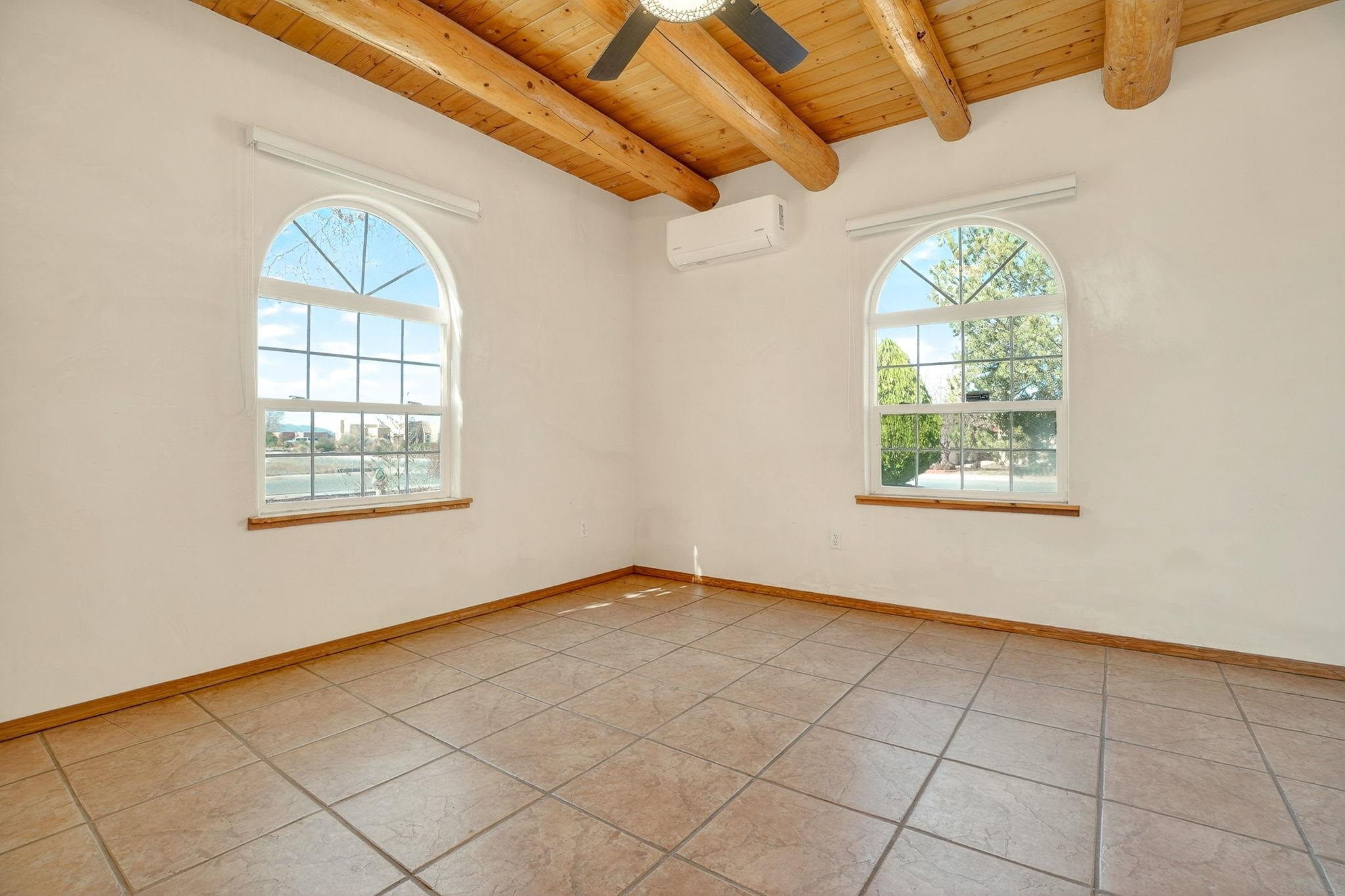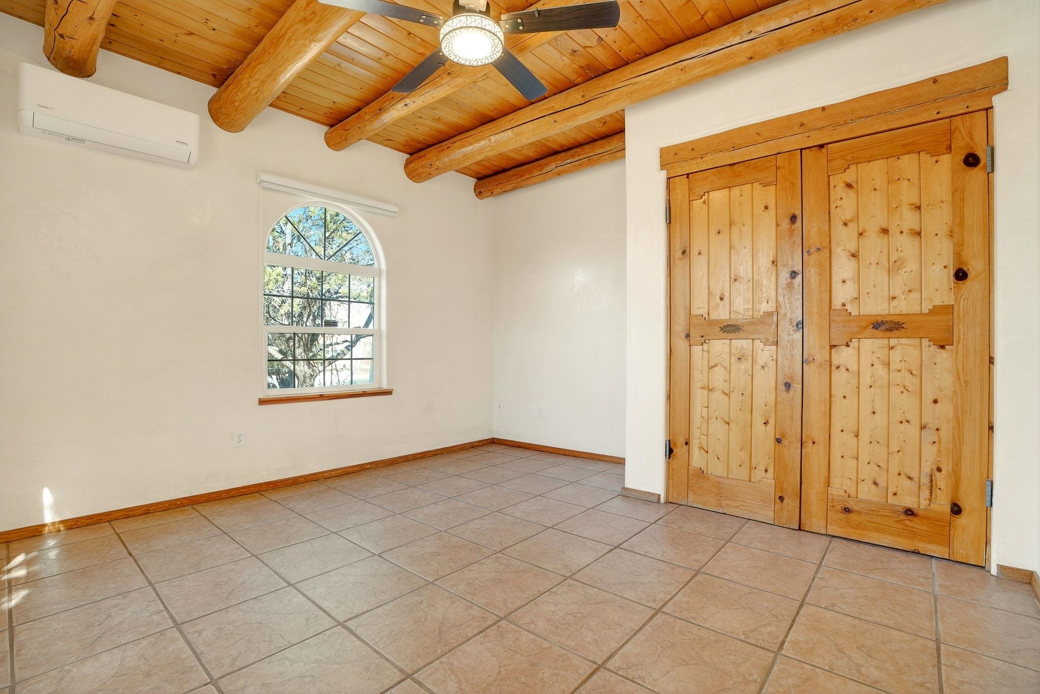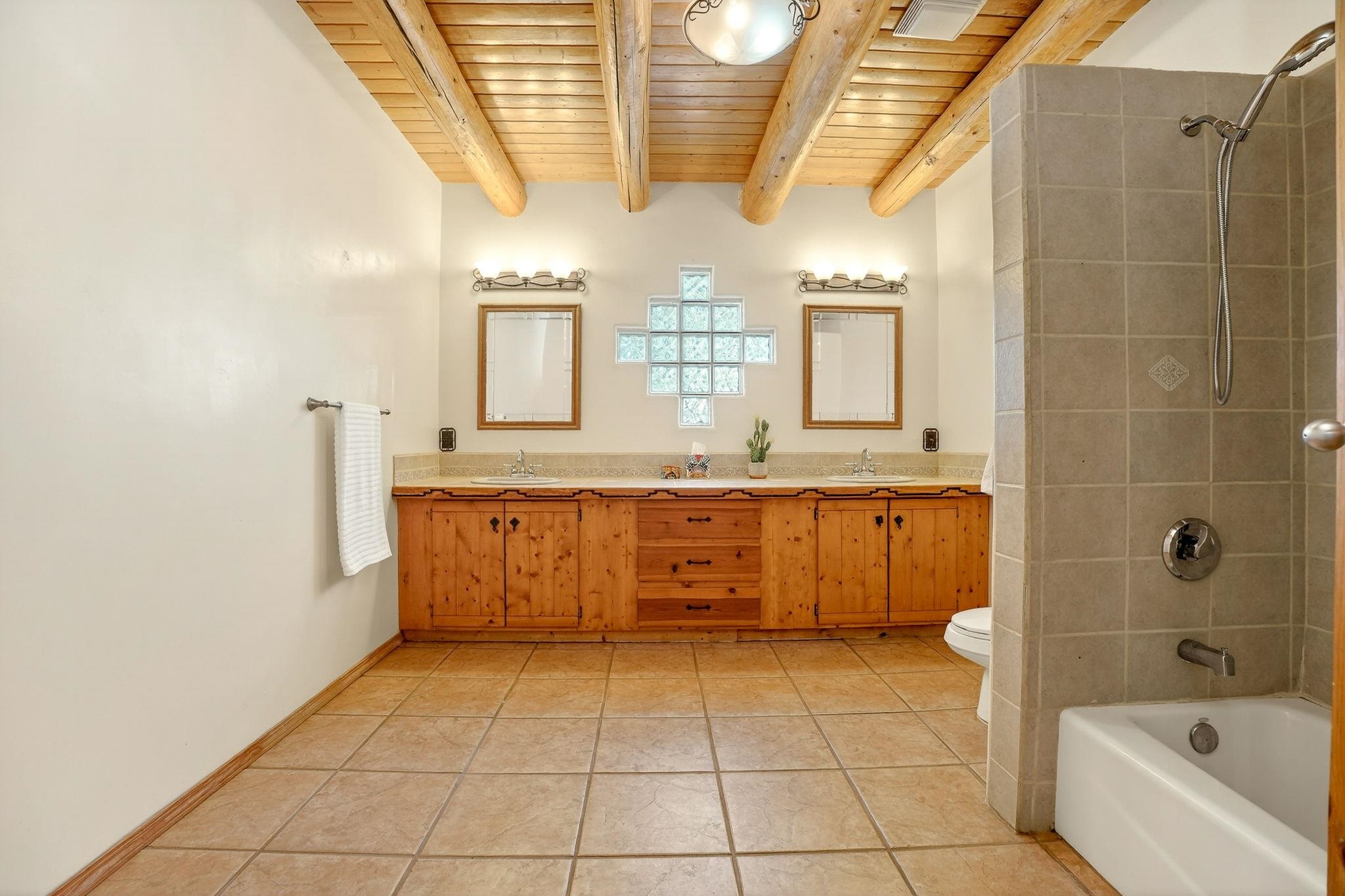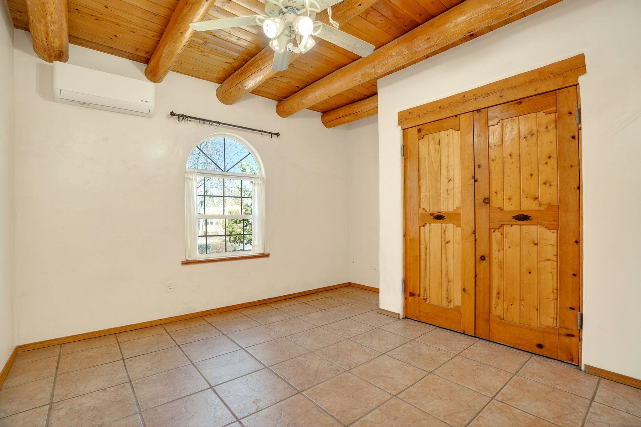 Welcome to this spacious 4-bedroom, 3-bathroom home offering approximately 3,400 square feet of comfort, character, and Southwestern charm in the Vegas De Taos subdivision. Set on a peaceful .68-acre lot, this in-town property combines convenience with a sense of privacy, complete with paved roads, sidewalks, and a welcoming community atmosphere. The beautifully curated grounds feature multiple water features, lush lawn areas, raised garden beds, and a diverse collection of mature trees, including conifers, deciduous varieties, and fruit trees. Enjoy mountain views, big open skies, and a thoughtful blend of low-maintenance xeriscaping in the front with a vibrant backyard retreat. Rock walls and wood fencing create a variety of inviting outdoor spaces, perfect for relaxing or entertaining. Inside, the grand great room impresses with 14-foot vaulted ceilings, custom woodwork, and radiant floor heating, complemented by efficient split units for year-round comfort. French doors off the dining area open to a generous covered veranda, ideal for indoor-outdoor living. The kitchen is designed for both function and gathering, featuring stainless steel appliances, a double oven, a smooth-surface cooktop on the island, a 3-basin sink, and a large island with seating for up to eight. A formal dining room offers additional space for hosting. The west wing includes two guest bedrooms, a spacious full bathroom, and a private primary suite with hickory Pergo flooring, a sitting area or office nook, a whirlpool tub, a separate shower, and an oversized walk-in closet. The east wing offers an additional bedroom, a guest bath, a large pantry, hall storage, and a laundry room with access to the covered breezeway and detached two-car garage. Located just minutes from downtown Taos, the hospital, and local amenities, this property offers a rare combination of space, comfort, and a true in-town homestead feel.