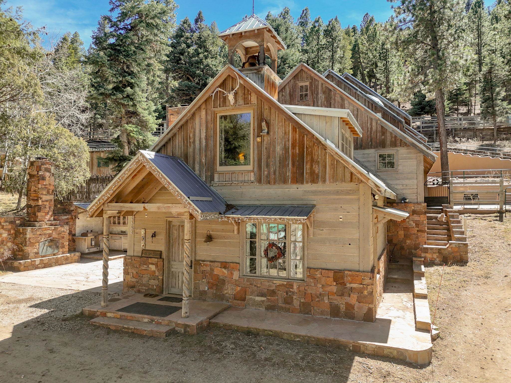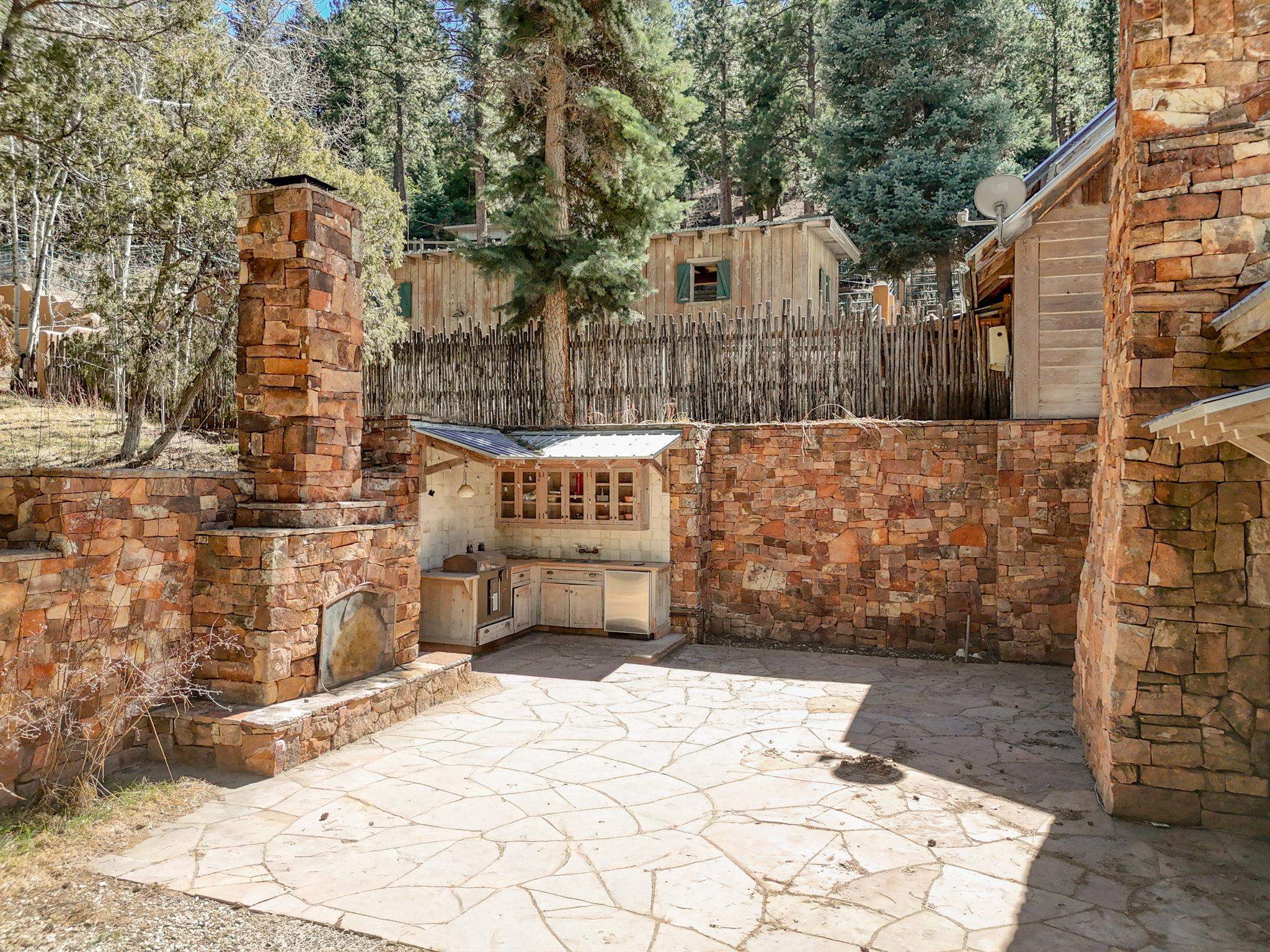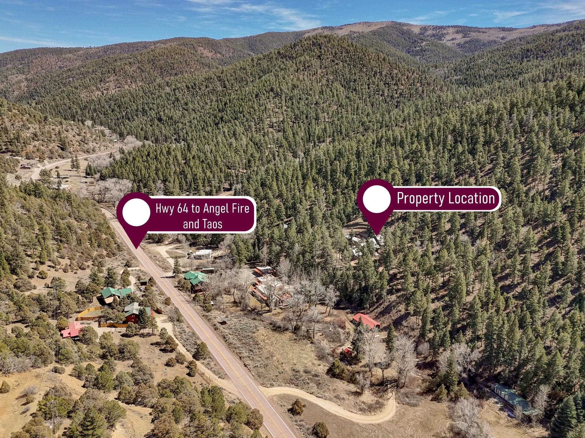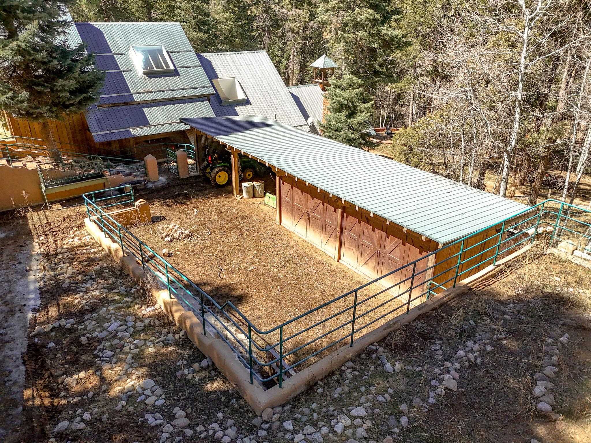 Set on 2.9 acres bordering the pristine Carson National Forest, this exceptional Taos property offers a rare opportunity to enjoy natural beauty and refined Southwestern living, with direct access to protected forest land. Ideally located just 8.3 miles from the Taos Plaza, approximately 40 minutes to Taos Ski Valley, and approximately 25 minutes to Angel Fire Resort, the home provides both convenience and a true sense of escape. This thoughtfully designed and custom-built 2 bedroom, 2.5 bath residence blends craftsmanship with comfort. Rich brick, stone tile, and wood flooring flow throughout, while wood ceilings and abundant skylights bathe the interiors in natural light, creating a warm and inviting atmosphere. The grounds are equally impressive, featuring a large barn and extensive paddocks, ideal for the resident llamas. Entertaining is effortless with an inviting fireplace patio and a separate fire pit, perfect for taking in Taos' star-filled skies. This is a truly special offering where access to nature and timeless Southwestern design come together in one remarkable setting.