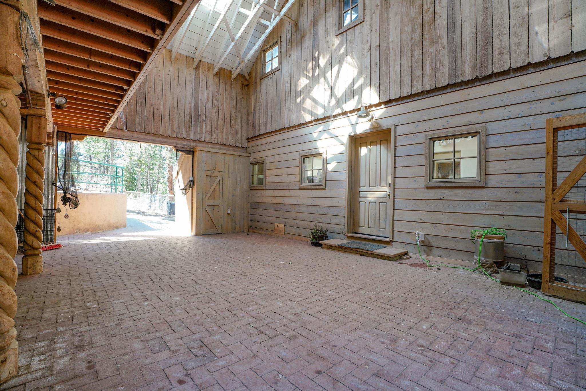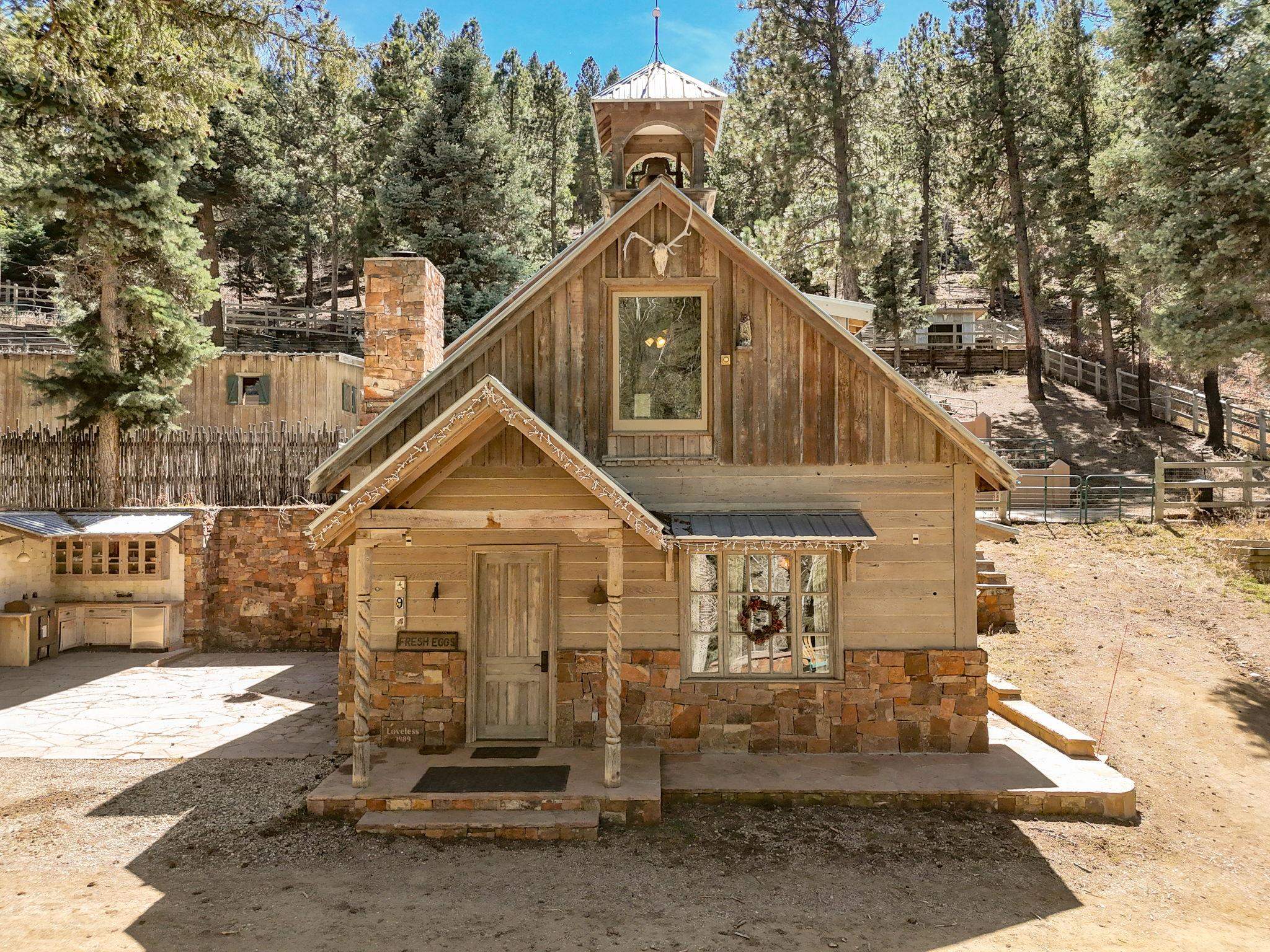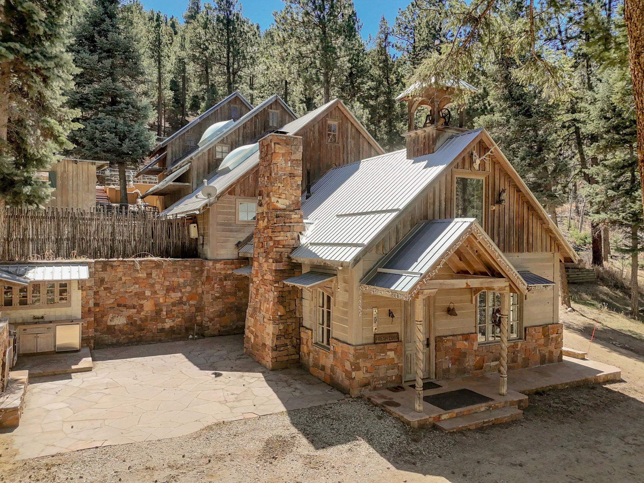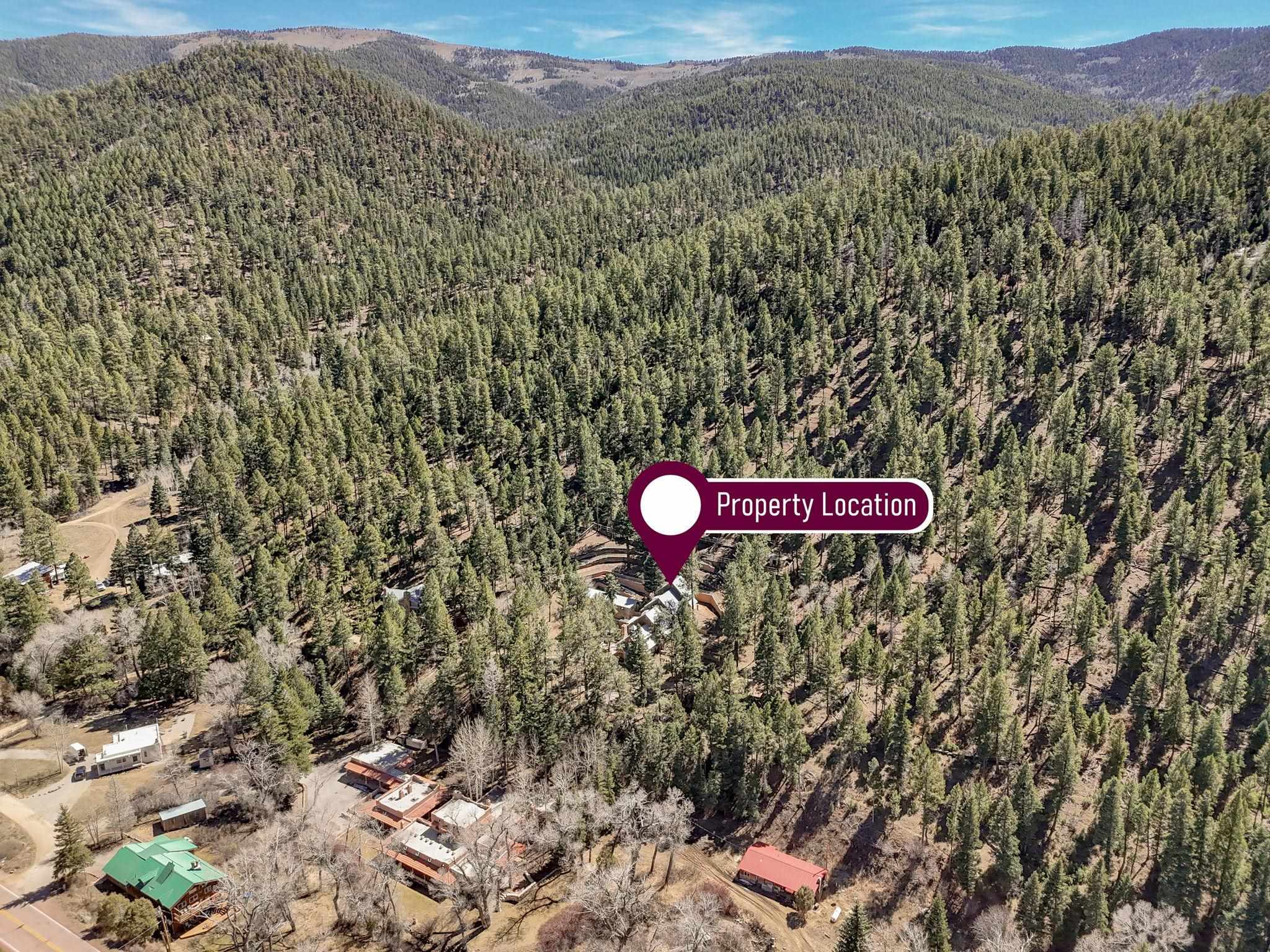 Set on 2.9 acres bordering the pristine Carson National Forest, this exceptional Taos property offers a rare opportunity to enjoy natural beauty and refined Southwestern living, with direct access to protected forest land. Ideally located just 8.3 miles from the Taos Plaza, approximately 40 minutes to Taos Ski Valley, and approximately 25 minutes to Angel Fire Resort, the home provides both convenience and a true sense of escape. This thoughtfully designed and custom-built 2 bedroom, 2.5 bath residence blends craftsmanship with comfort. Rich brick, stone tile, and wood flooring flow throughout, while wood ceilings and abundant skylights bathe the interiors in natural light, creating a warm and inviting atmosphere. The grounds are equally impressive, featuring a large barn and extensive paddocks, ideal for the resident llamas. Entertaining is effortless with an inviting fireplace patio and a separate fire pit, perfect for taking in Taos' star-filled skies. This is a truly special offering where access to nature and timeless Southwestern design come together in one remarkable setting.