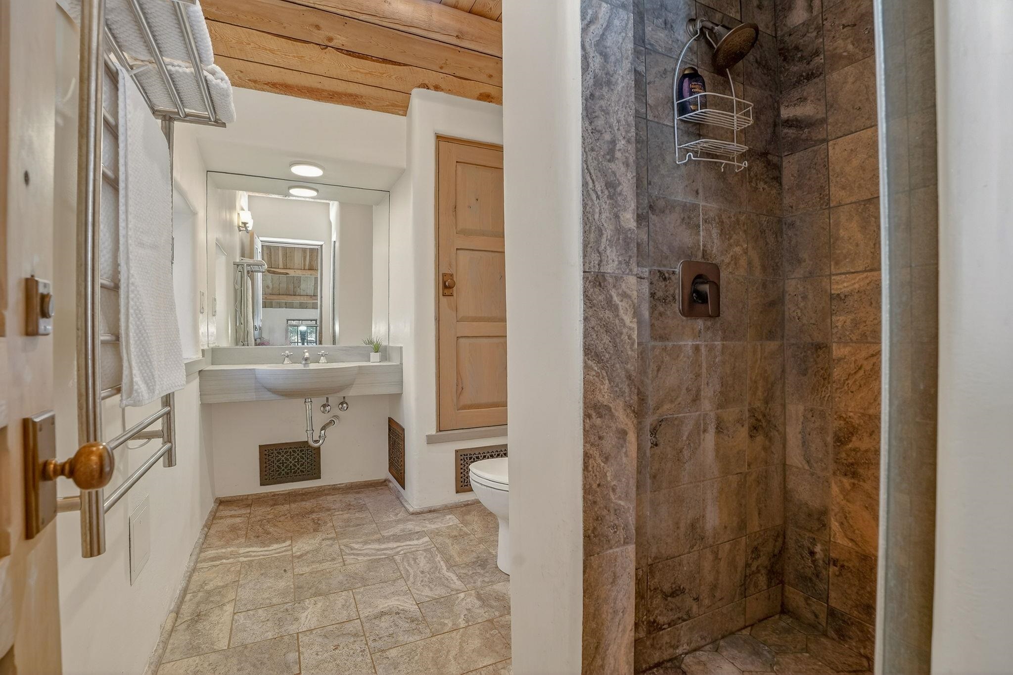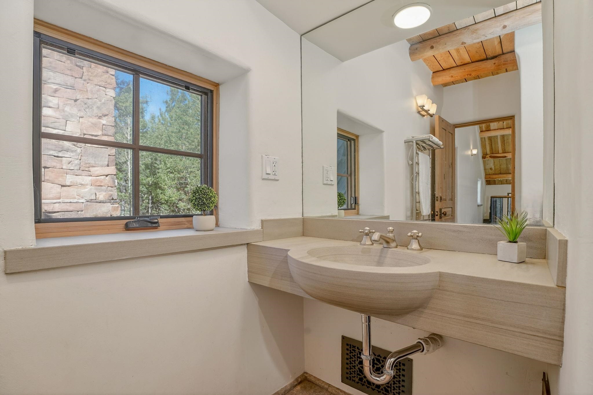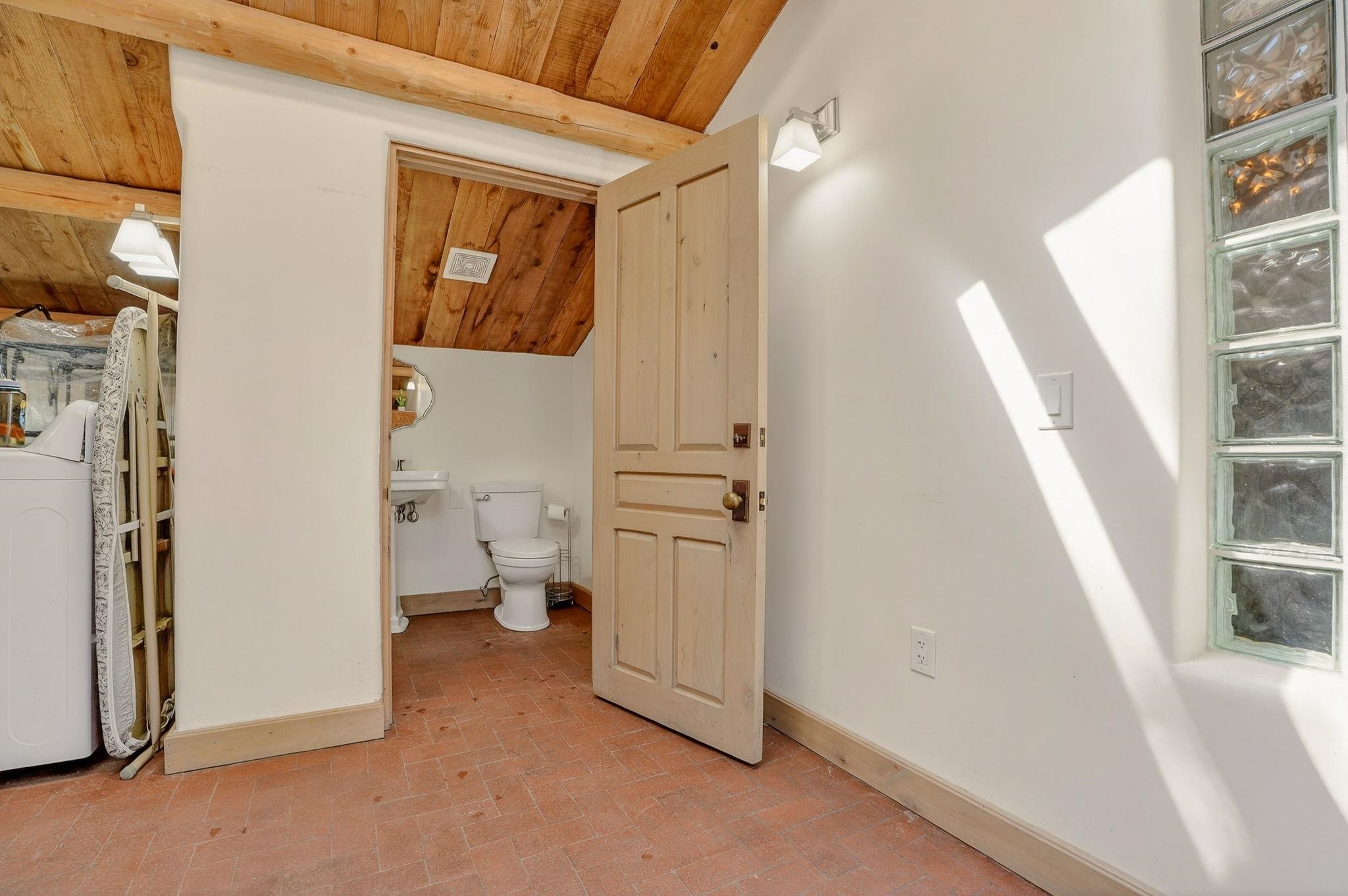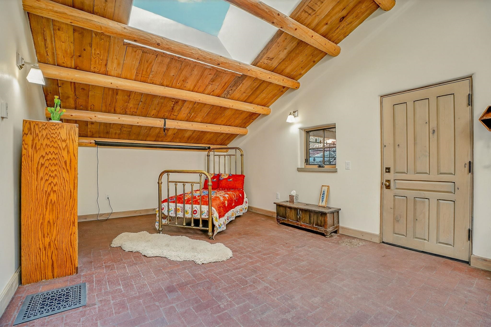 Set on 2.9 acres bordering the pristine Carson National Forest, this exceptional Taos property offers a rare opportunity to enjoy natural beauty and refined Southwestern living, with direct access to protected forest land. Ideally located just 8.3 miles from the Taos Plaza, approximately 40 minutes to Taos Ski Valley, and approximately 25 minutes to Angel Fire Resort, the home provides both convenience and a true sense of escape. This thoughtfully designed and custom-built 2 bedroom, 2.5 bath residence blends craftsmanship with comfort. Rich brick, stone tile, and wood flooring flow throughout, while wood ceilings and abundant skylights bathe the interiors in natural light, creating a warm and inviting atmosphere. The grounds are equally impressive, featuring a large barn and extensive paddocks, ideal for the resident llamas. Entertaining is effortless with an inviting fireplace patio and a separate fire pit, perfect for taking in Taos' star-filled skies. This is a truly special offering where access to nature and timeless Southwestern design come together in one remarkable setting.