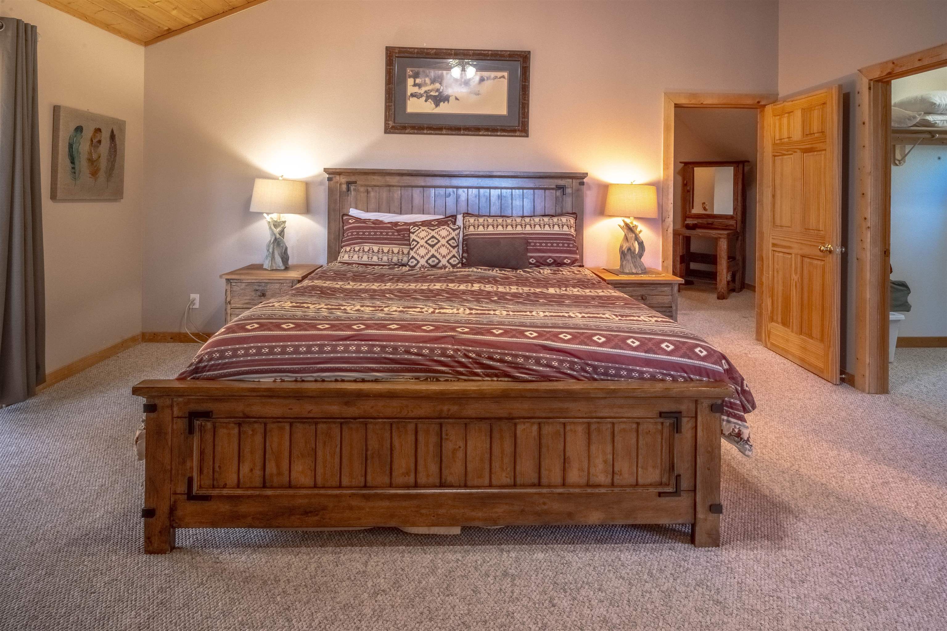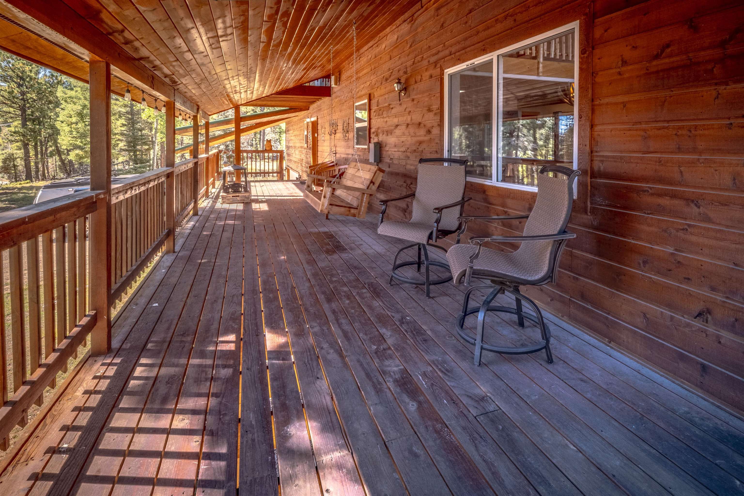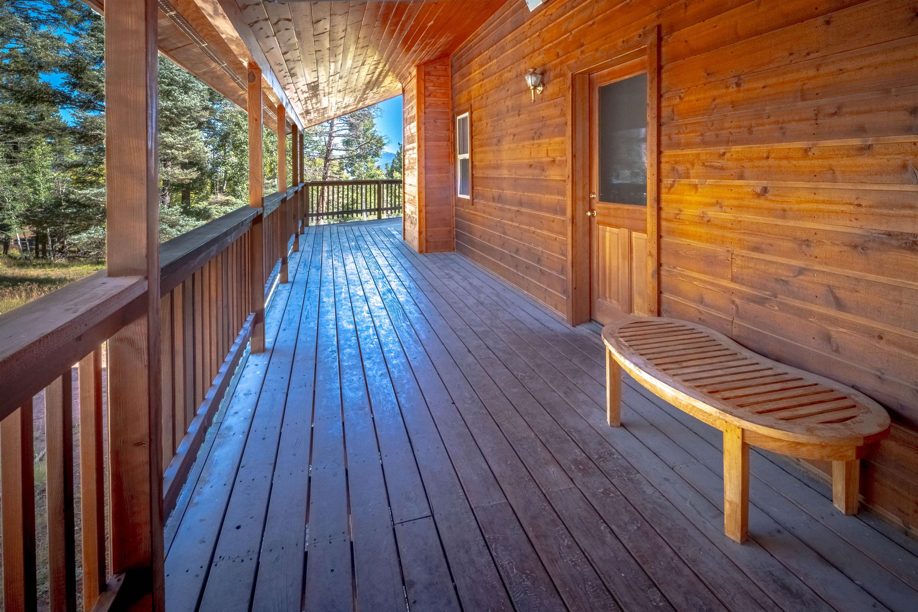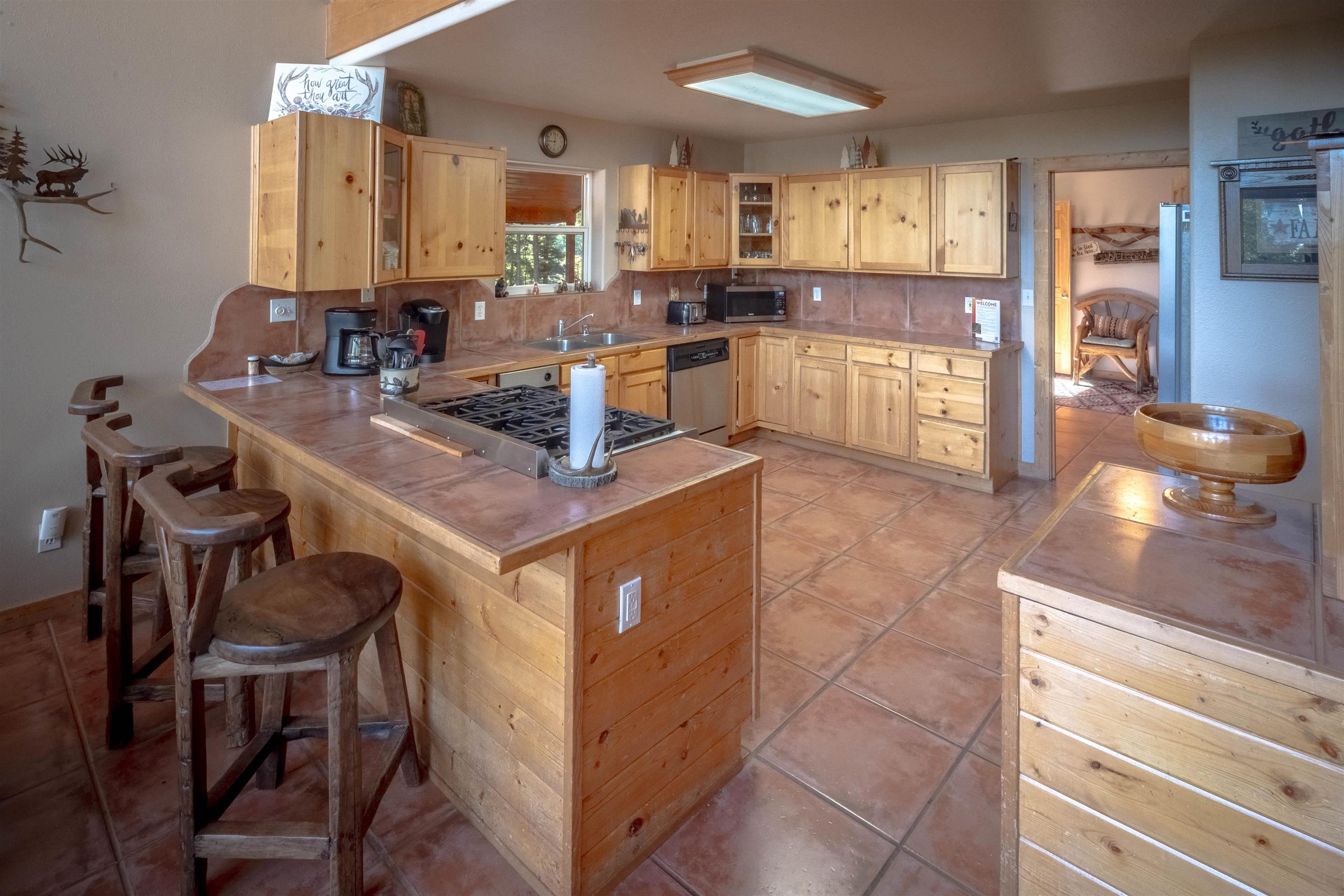 Welcome to your dream mountain getaway! Nestled on 2 private acres with breathtaking mountain views, this 5 bed 4 bath, 3-level chalet is the epitome of Rocky Mountain charm, comfort, and functionality. Featuring an open-concept kitchen, a living & dining area with soaring tongue & groove ceilings, massive logs and a striking rock fireplace. Also a chalet-style wall of windows that floods the interior with natural light and mountain vistas. The upper level contains 2 master suites, a private deck with panoramic views and a loft area ideal for a home office or cozy reading nook. The main-level includes an expansive kitchen with commercial-grade range and ample counter space, a guest bedroom and full bath, a utility room & mudroom for convenience after outdoor adventures. The lower level offers 2 bedrooms, a full bath, and a large family room with a wet bar plus walk-out access to a flagstone patio with fire pit and mountain views. There is a finished oversized 2-car garage with a second-story storage area that could be converted into an additional bonus room. Quiet and easily accessible year-round location. About 5 minutes to Angel Fire Village, Championship Golf Course, Country Club, Fitness Center, and Ski-Resort.