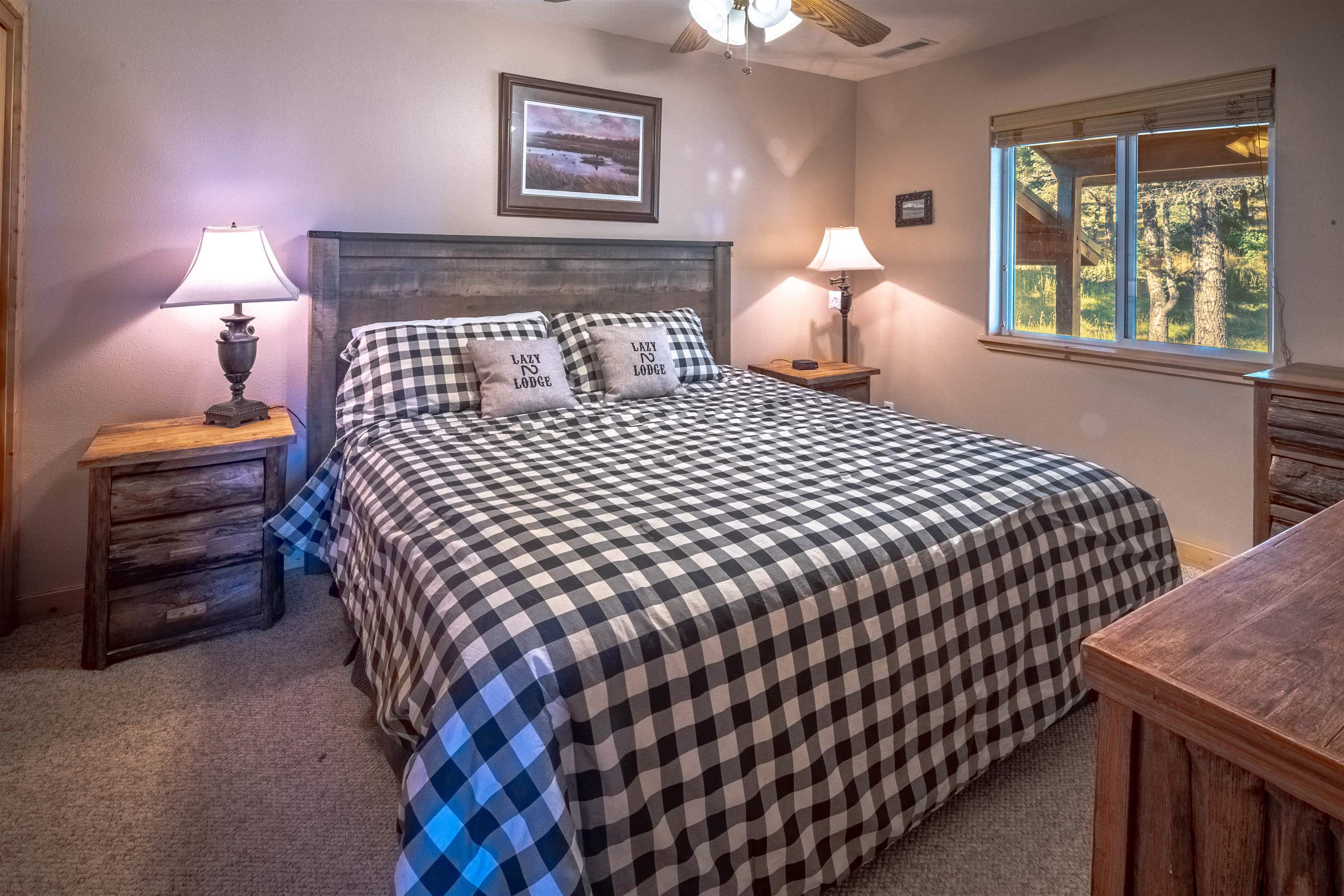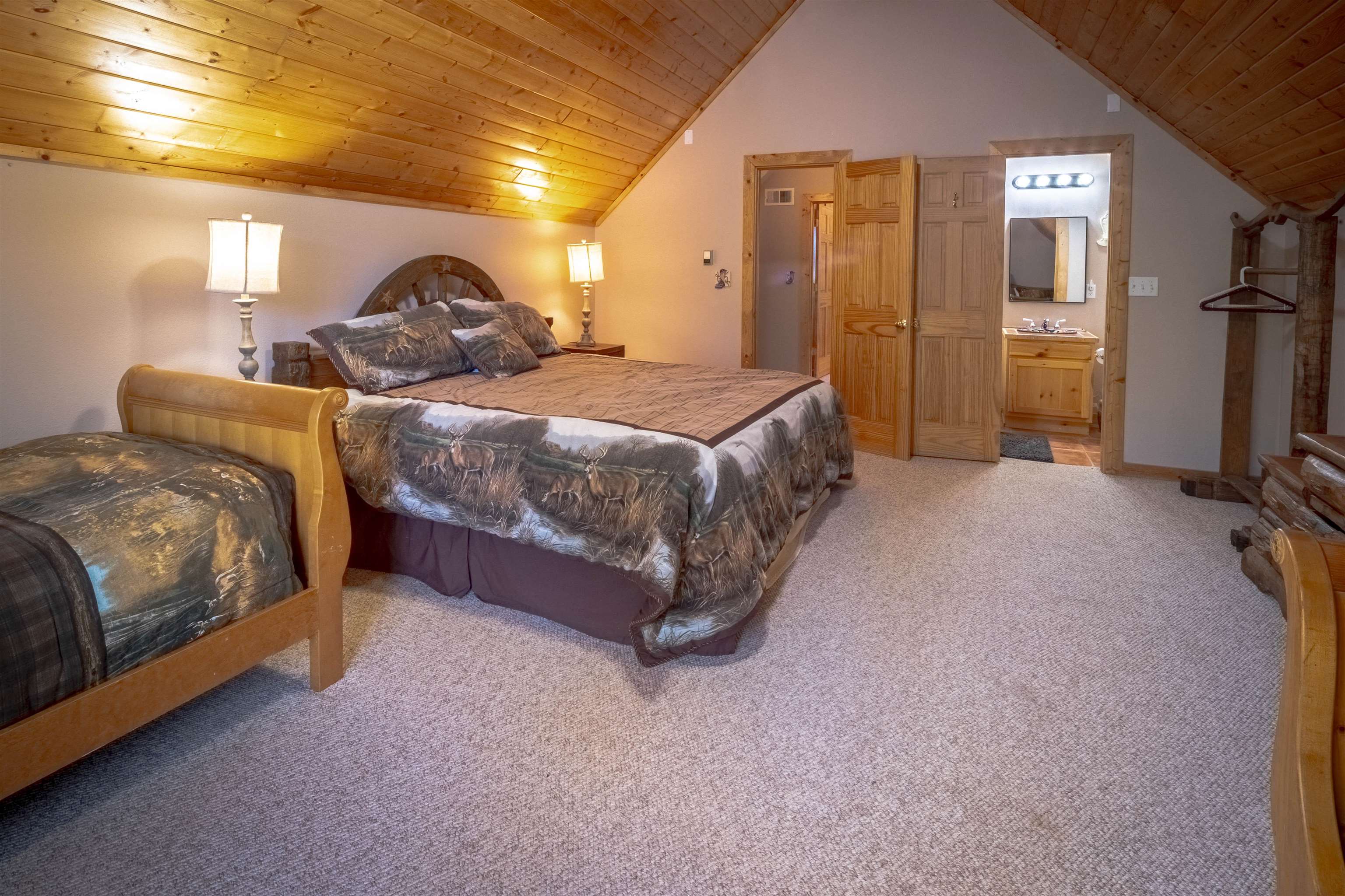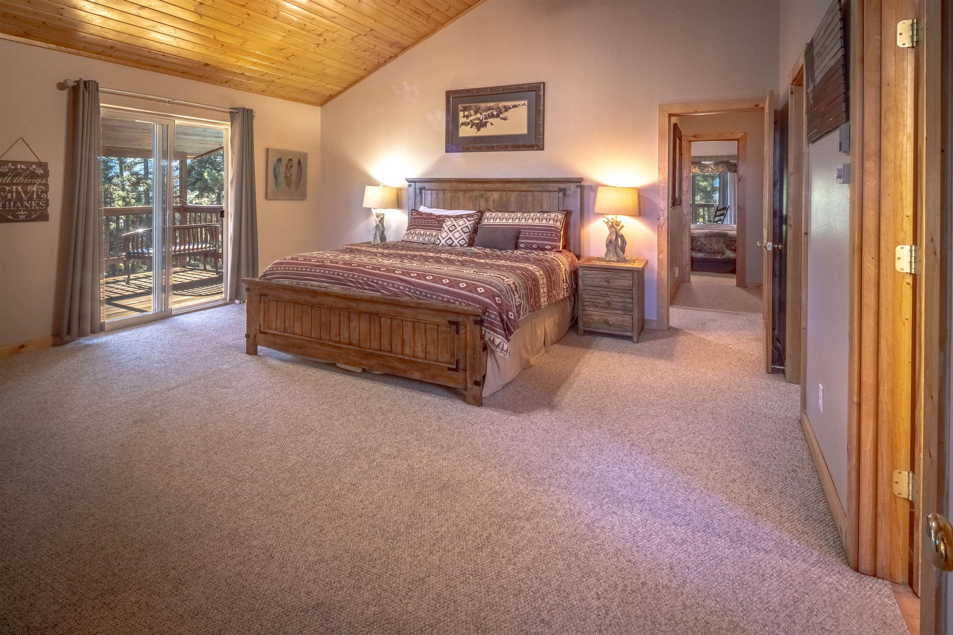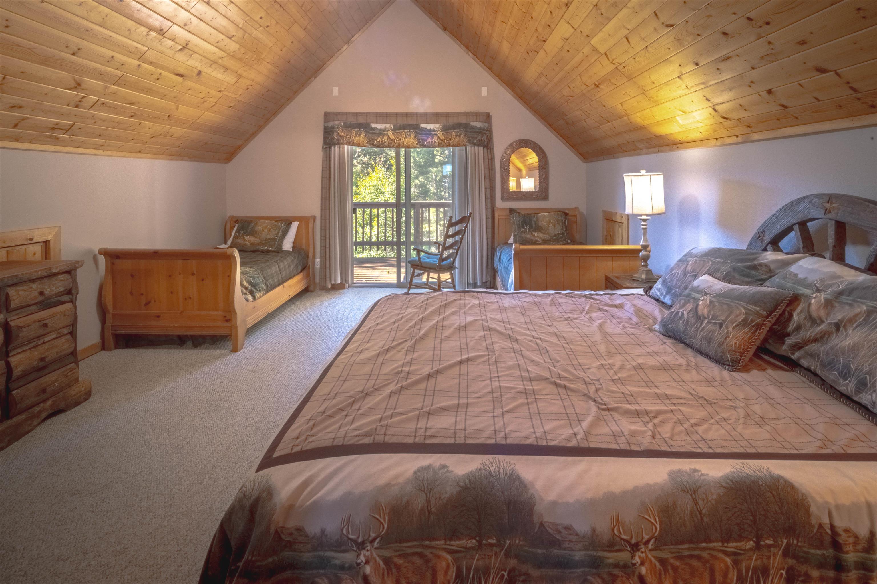 Welcome to your dream mountain getaway! Nestled on 2 private acres with breathtaking mountain views, this 5 bed 4 bath, 3-level chalet is the epitome of Rocky Mountain charm, comfort, and functionality. Featuring an open-concept kitchen, a living & dining area with soaring tongue & groove ceilings, massive logs and a striking rock fireplace. Also a chalet-style wall of windows that floods the interior with natural light and mountain vistas. The upper level contains 2 master suites, a private deck with panoramic views and a loft area ideal for a home office or cozy reading nook. The main-level includes an expansive kitchen with commercial-grade range and ample counter space, a guest bedroom and full bath, a utility room & mudroom for convenience after outdoor adventures. The lower level offers 2 bedrooms, a full bath, and a large family room with a wet bar plus walk-out access to a flagstone patio with fire pit and mountain views. There is a finished oversized 2-car garage with a second-story storage area that could be converted into an additional bonus room. Quiet and easily accessible year-round location. About 5 minutes to Angel Fire Village, Championship Golf Course, Country Club, Fitness Center, and Ski-Resort.