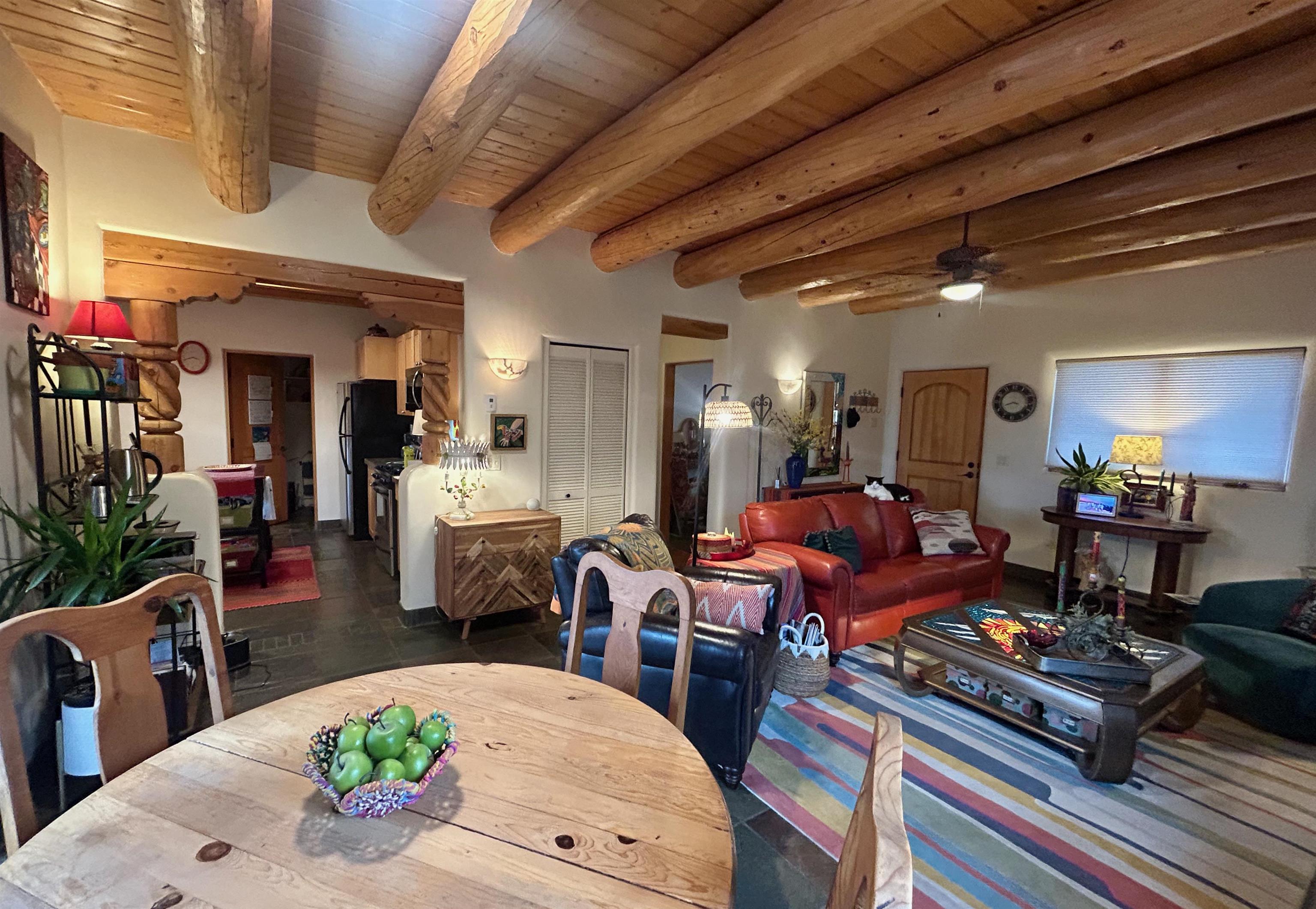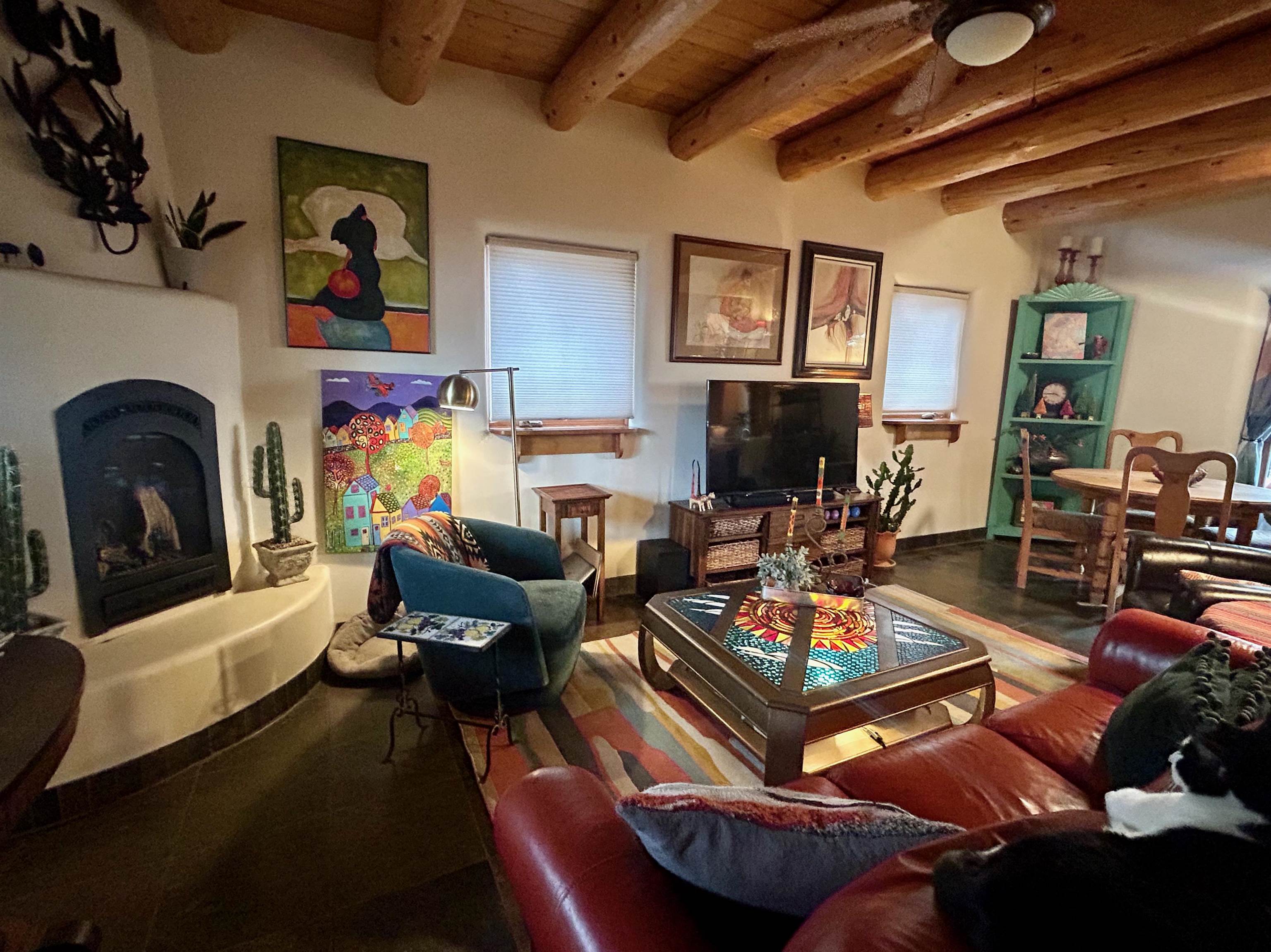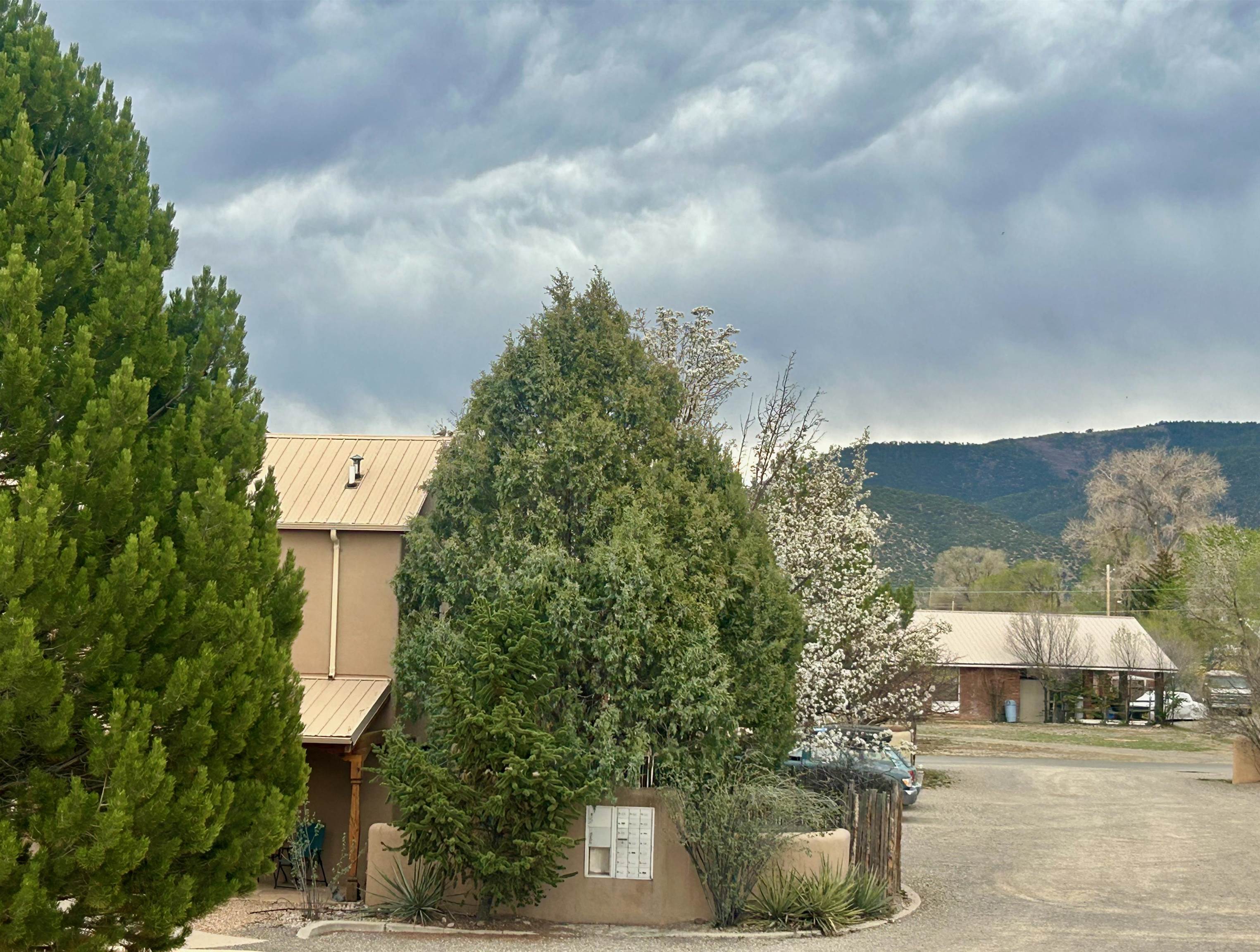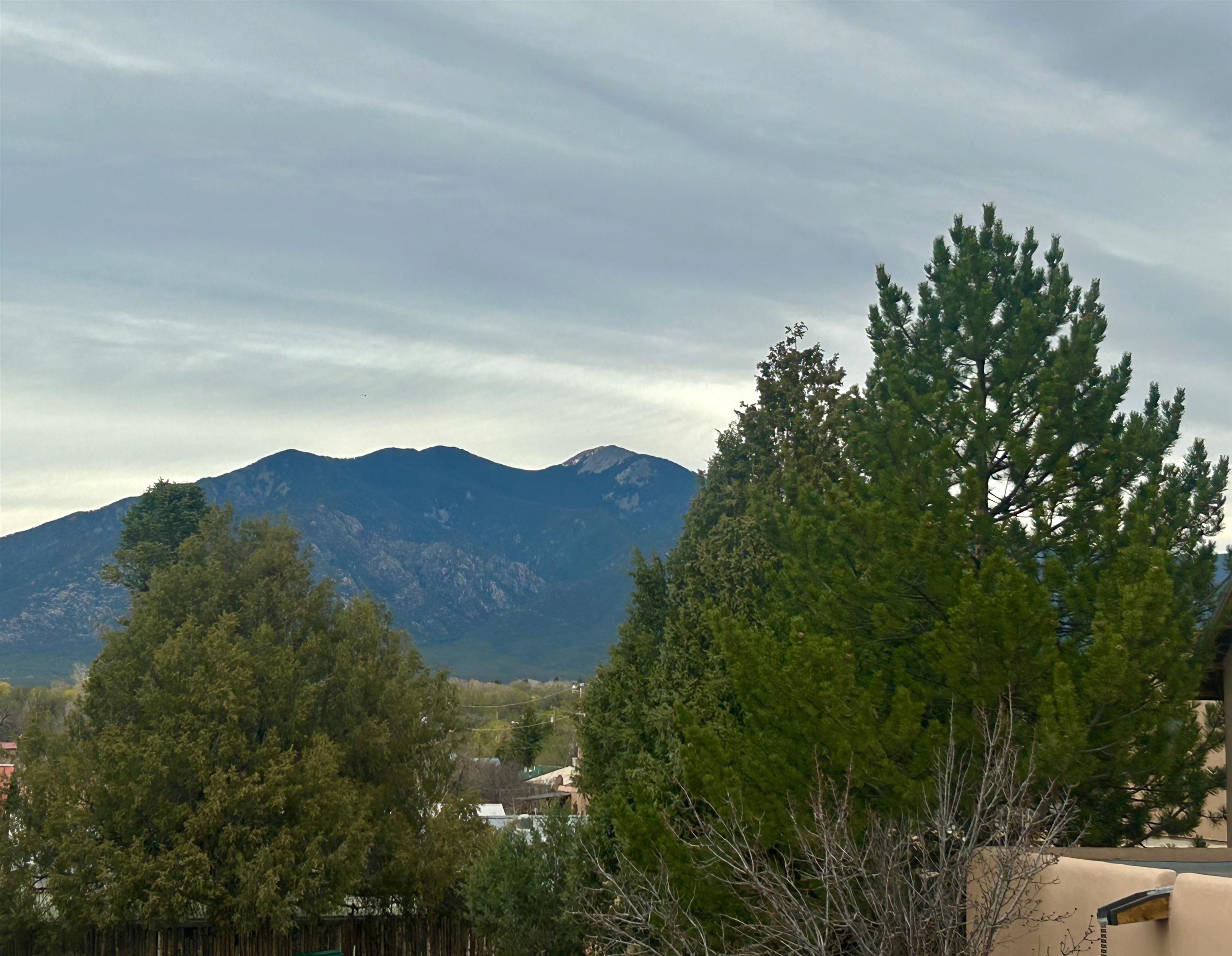 Charming, centrally located two-level townhouse, conveniently located to everything that Historic Taos has to offer. You'll find Toas mountain views from the bedrooms and balcony in this lovingly maintained 3B/3B, 1400+ sqft home, complete with beautiful southwest finishes, Vigas, Kiva gas fireplace, diamond plaster walls and slate tile floors throughout. The kitchen comes furnished with stainless steel appliances, custom cabinets and complimentary granite countertops. A Navien on-demand water heater installed 6 years ago and a new water softener installed last year. Radiant floor heating together with energy efficient Rastra construction which will keep you cool in the summer and warm in the winter. Welcoming patio entrance with flagstone portal and handsome exterior sconces along with expansion pavers to provide a second side-back patio area for watching sunsets. Quiet end unit with high walls for added privacy, offers the perfect combination of comfort and convenience. Located just minutes from everything, this condo offers a great commute for work, shopping, and dining. You'll be close enough to the iconic Taos Plaza, rich in history and cultural attractions and close to hiking, biking and exploring the stunning New Mexico wilderness. Taos Ski Valley is just a 30 minute drive. Convenient, Comfortable and Cozy Home!