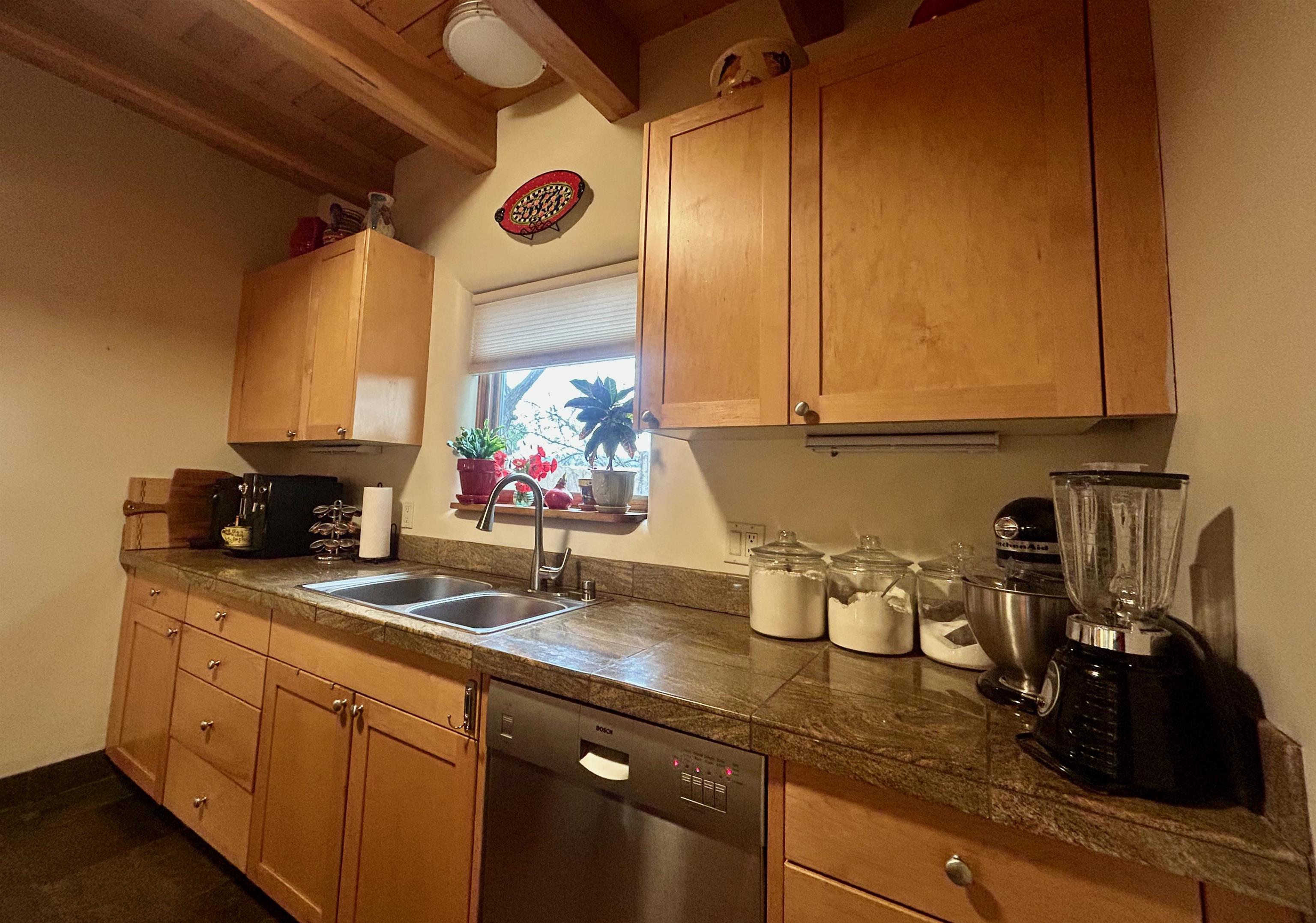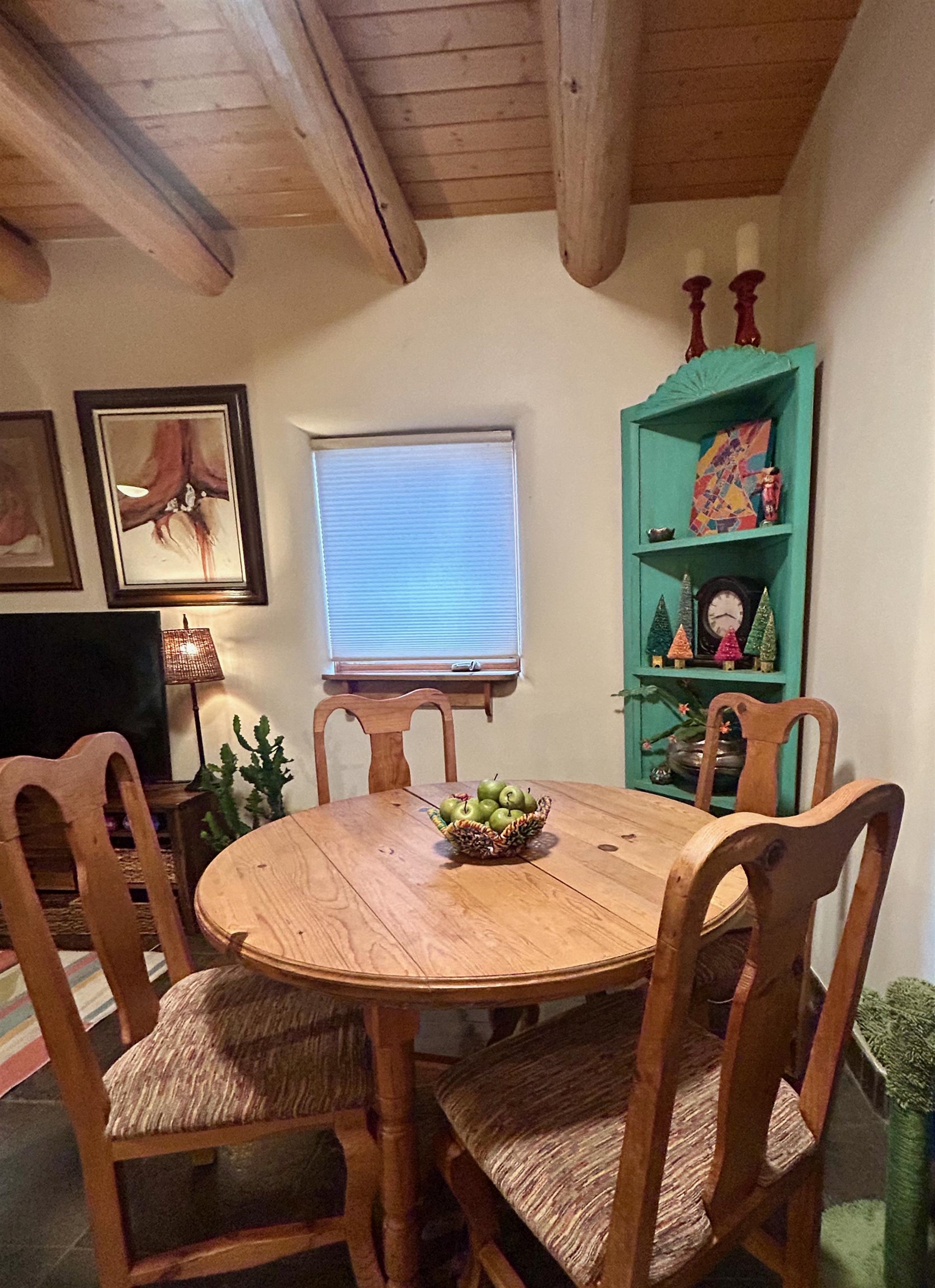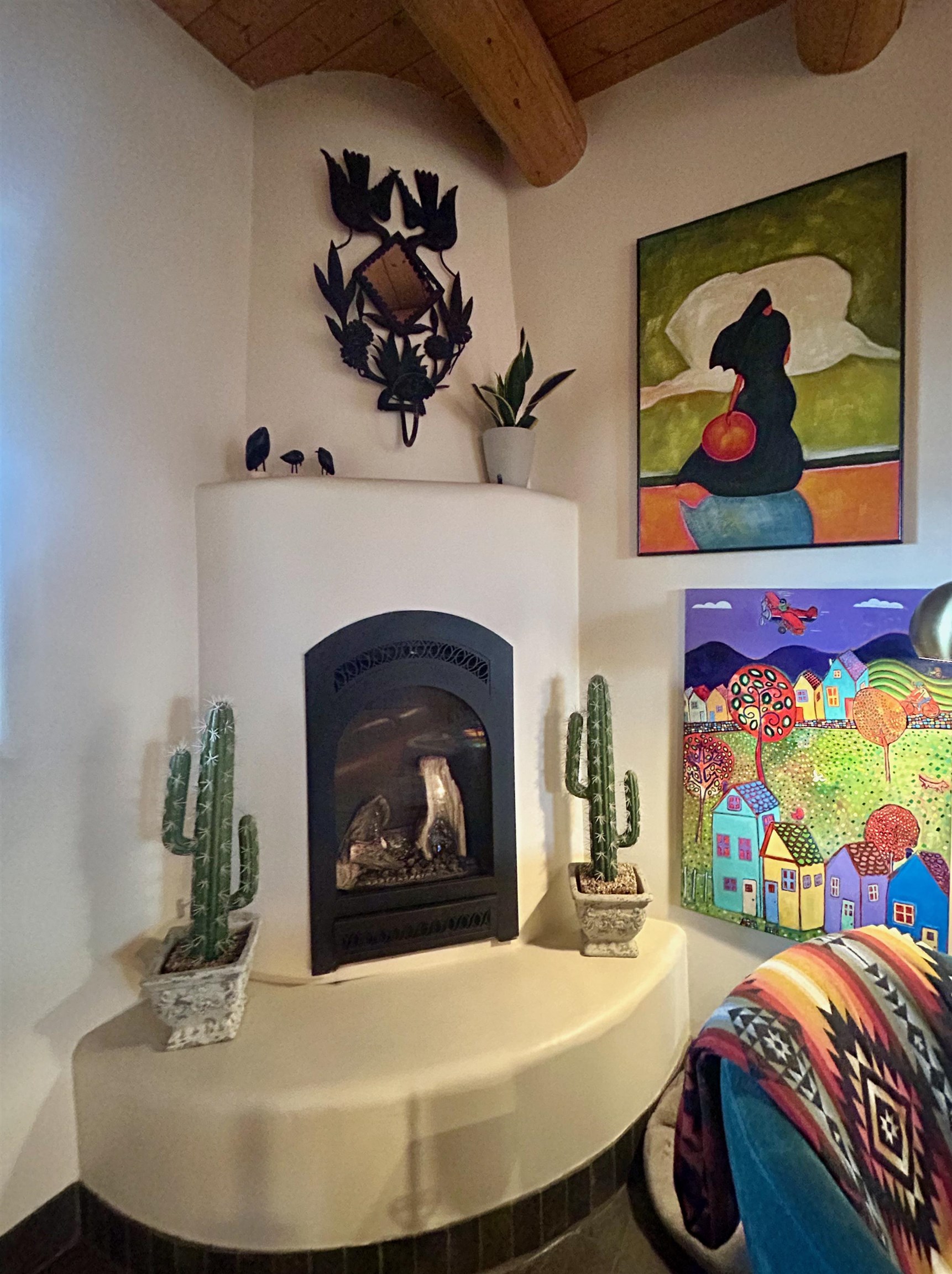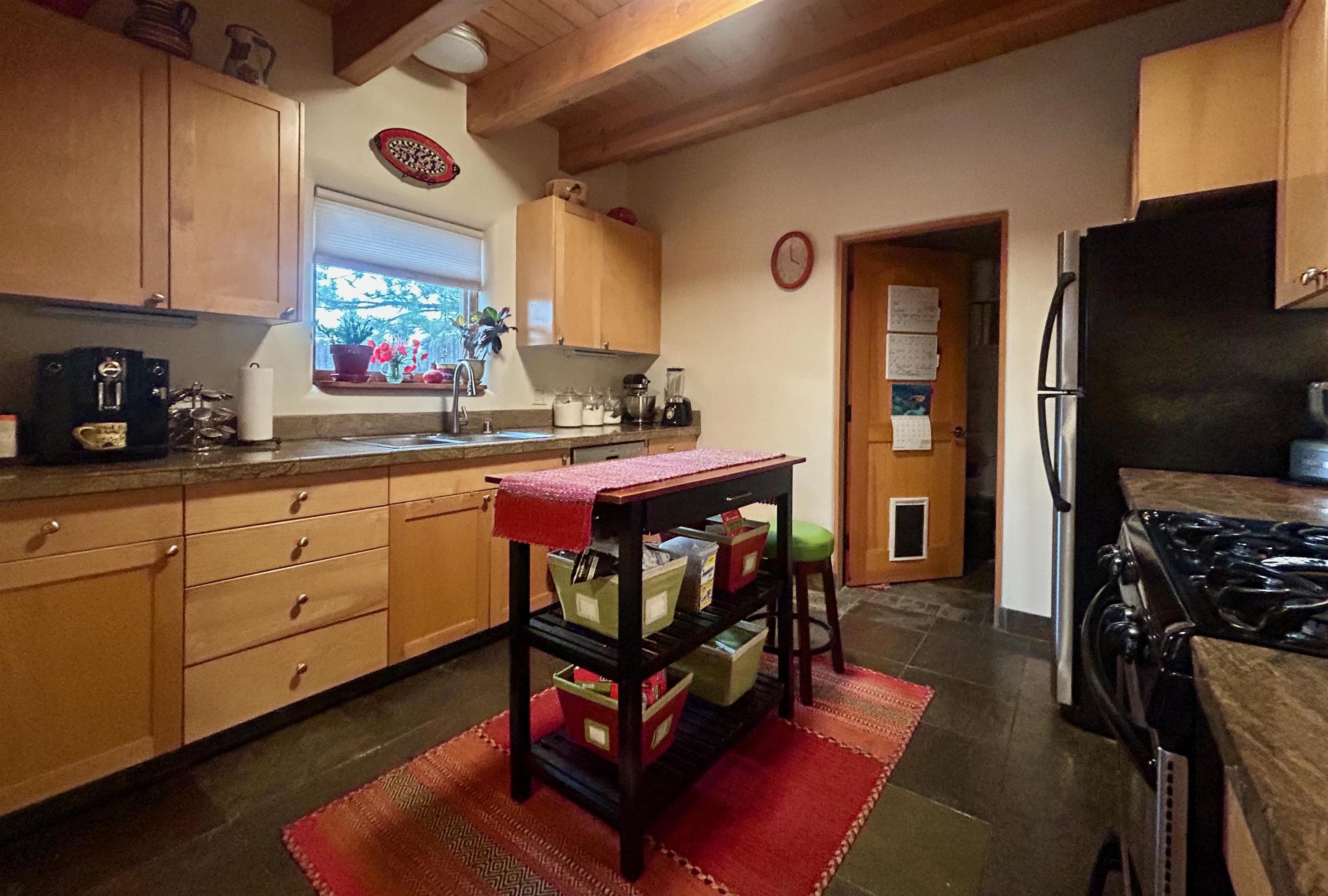 Charming, centrally located two-level townhouse, conveniently located to everything that Historic Taos has to offer. You'll find Toas mountain views from the bedrooms and balcony in this lovingly maintained 3B/3B, 1400+ sqft home, complete with beautiful southwest finishes, Vigas, Kiva gas fireplace, diamond plaster walls and slate tile floors throughout. The kitchen comes furnished with stainless steel appliances, custom cabinets and complimentary granite countertops. A Navien on-demand water heater installed 6 years ago and a new water softener installed last year. Radiant floor heating together with energy efficient Rastra construction which will keep you cool in the summer and warm in the winter. Welcoming patio entrance with flagstone portal and handsome exterior sconces along with expansion pavers to provide a second side-back patio area for watching sunsets. Quiet end unit with high walls for added privacy, offers the perfect combination of comfort and convenience. Located just minutes from everything, this condo offers a great commute for work, shopping, and dining. You'll be close enough to the iconic Taos Plaza, rich in history and cultural attractions and close to hiking, biking and exploring the stunning New Mexico wilderness. Taos Ski Valley is just a 30 minute drive. Convenient, Comfortable and Cozy Home!