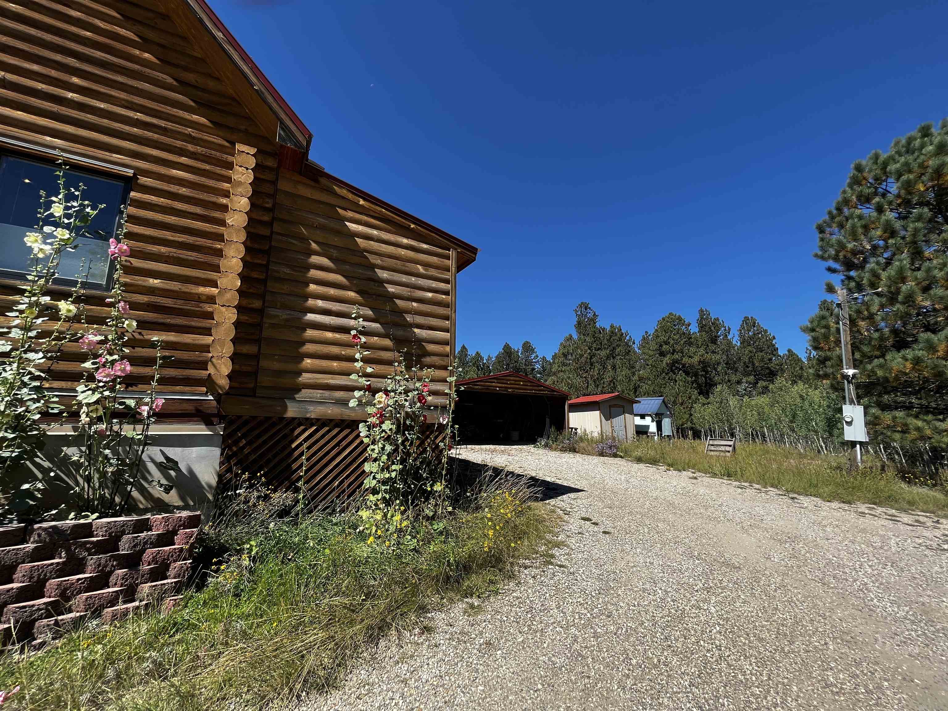 Surrounded by the beautiful and sought out Valle Escondido, sits this absolutely gorgeous home with mountain landscapes that are beyond compare! For all you people out there who love the mountain life and all it has to offer, look no further. This might just be the place for you! This home is within walking distance of the local Valle Escondido Golf Course Lodge and sits amongst well maintained homes and properties. What kind of adventures can you and those you love find yourselves basking in within this tranquil, yet active valley? Well, there's fishing, golfing, mountain biking, hiking, hunting, wildlife photographing, ATV, snowmobiling, Motorcycle trails and much more! The house? Well, this home is a log cabin style, A-Frame home, with a solid wood frame, gorgeous covered deck and pro-panel roof. The inside of the home has plenty of room, with its open floor plan and gorgeous wooden accents. On the first floor, you will find as mentioned, an open floor plan with lots of windows allowing you to enjoy the stunning views. Open up the living room door and walk out onto the covered porch and soak in all the breathtaking views, wildlife, and mountain scents. The master suite conveniently offers a private full bath. In additional to the features already mentioned, you will also find a half bath, perfect for accommodating guests, a laundry room, a pantry, and a bonus space that can be used as you desire. On the second floor, you will ascend using the beautiful spiral wooden staircase, and will be greeted with a loft that can serve multiple functions, a bedroom and a full bath. The two-car carport is spacious and the yard has been fenced in for pets. Come see this gorgeous mountain home and imagine what could be your piece of the Sangre de Cristo Mountains.