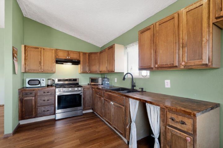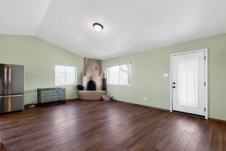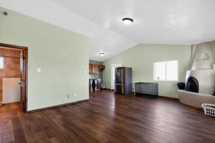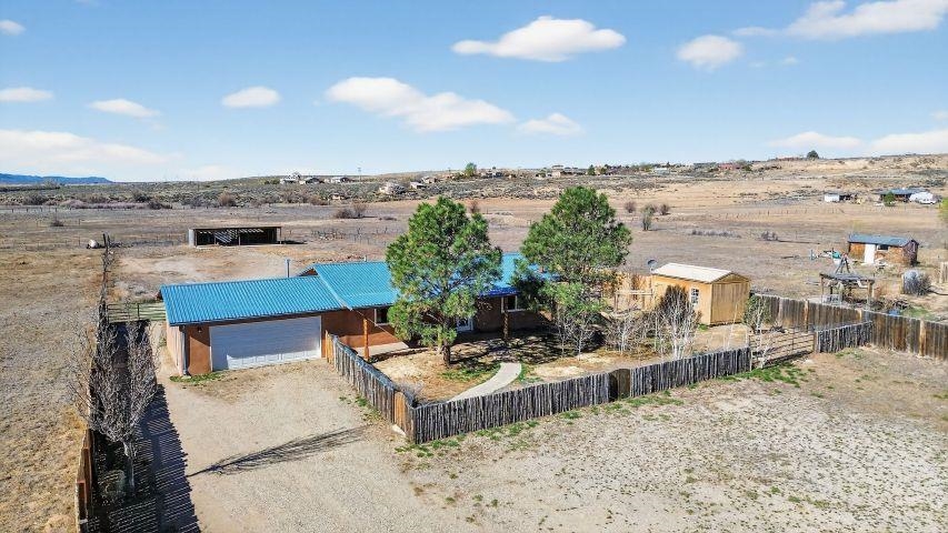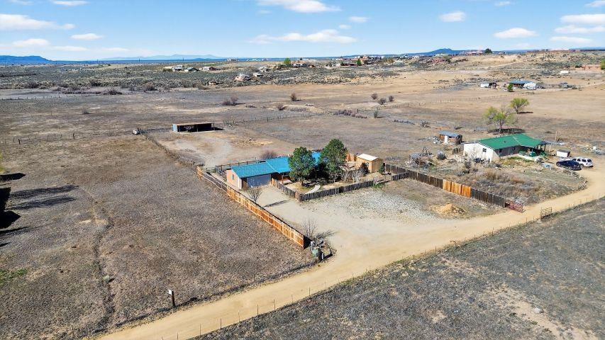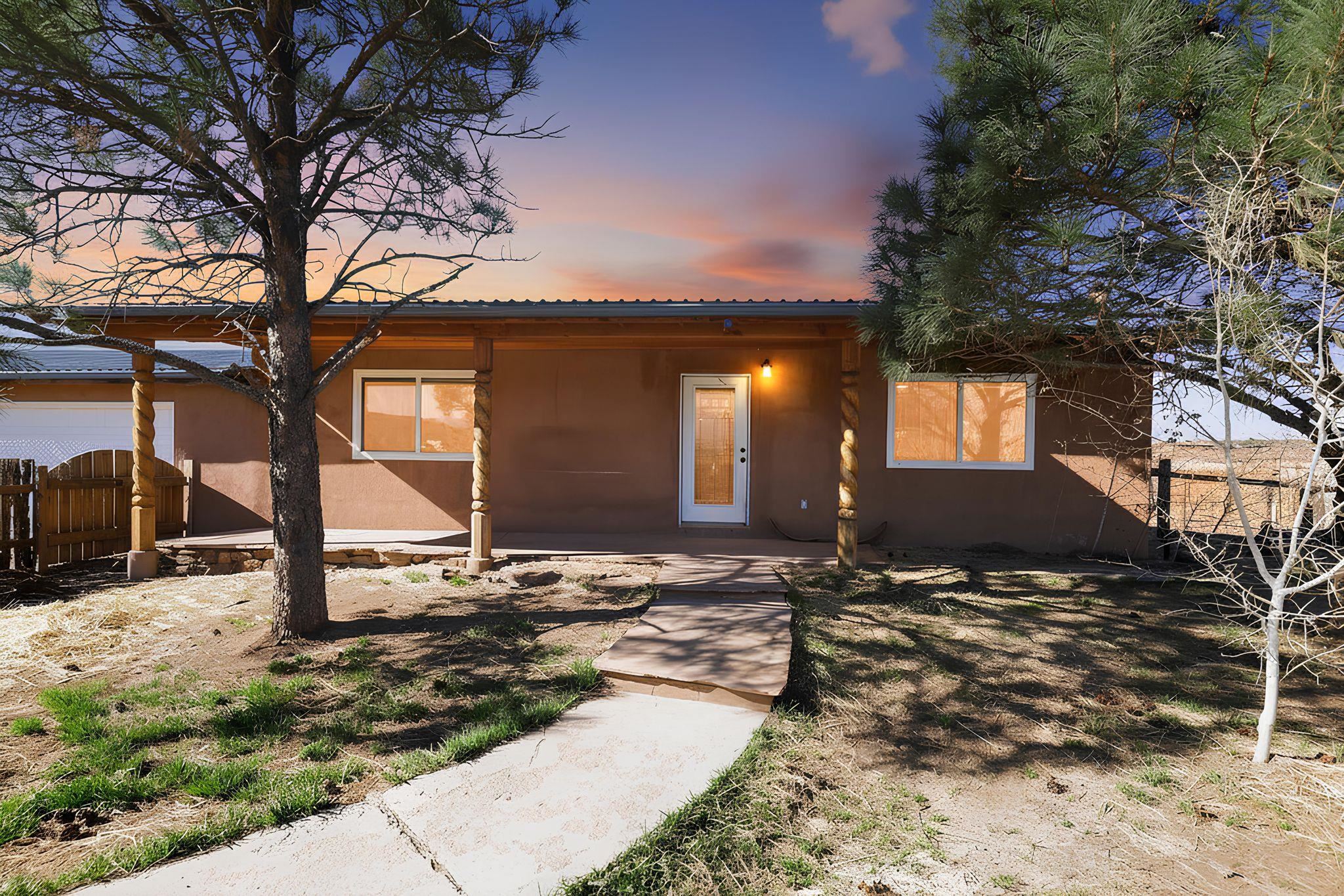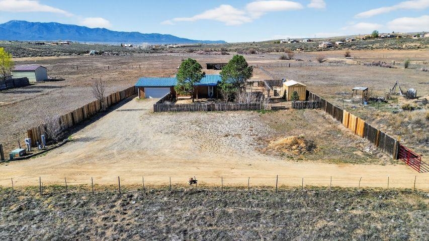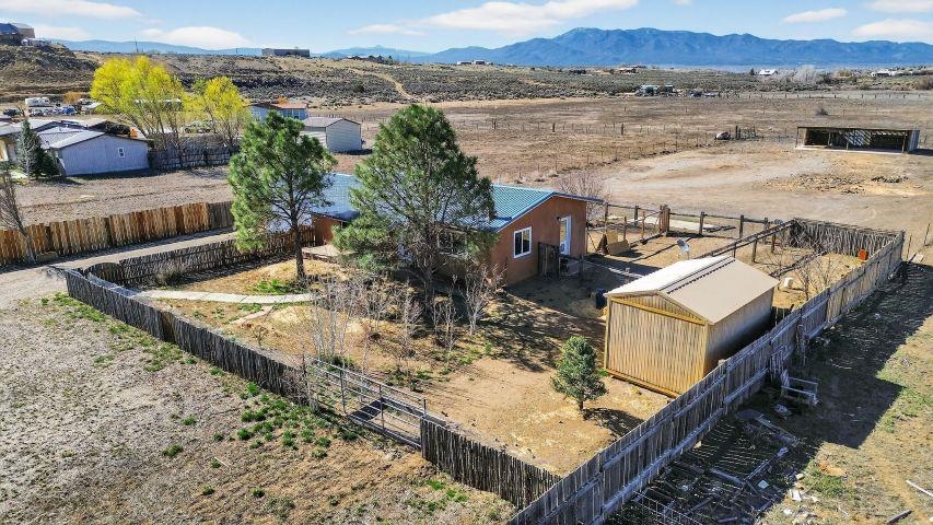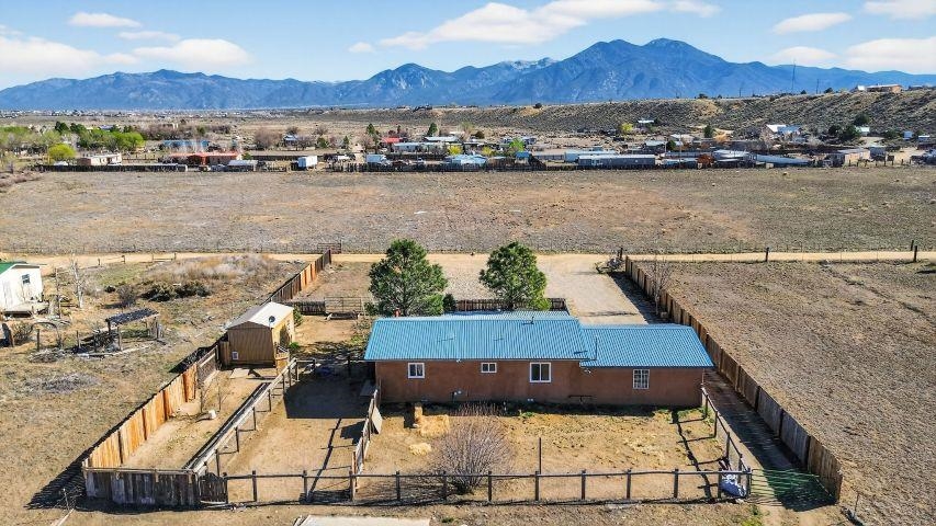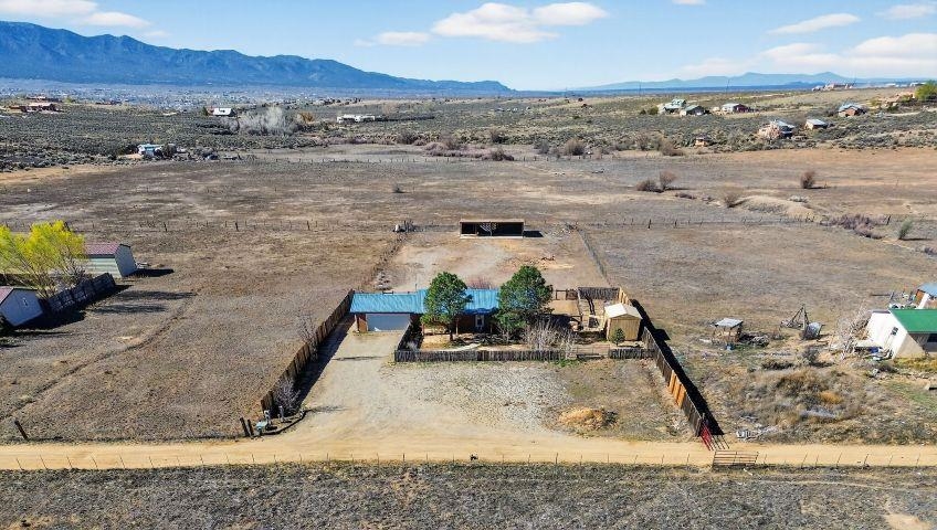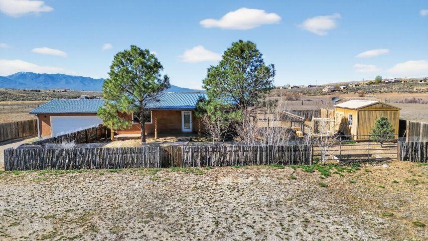 Discover this beautifully maintained Northern New Mexico retreat nestled on a private one-acre lot in El Prado--just minutes from the vibrant heart of Taos and the historic Taos Plaza. This inviting 2-bedroom, 1-bath home blends comfort, character, and functionality. Inside, you'll find warm finishes throughout, including laminate flooring, solid wood doors, and custom cabinetry. The cozy living area is anchored by a traditional kiva fireplace, creating the perfect space to relax or entertain. The bathroom has been tastefully updated with durable laminate flooring, while newer windows throughout the home provide abundant natural light and improved energy efficiency. Step outside and take in the expansive setting. The property borders open fields on two sides, offering exceptional privacy and unobstructed views--ideal for enjoying the stunning Taos Mountain from the covered portal. Perfect for animal lovers, the property features fenced areas for horses and pets, along with dedicated dog runs. Additional highlights include a heated attached two-car garage, a durable pitched metal roof, and multiple outbuildings. A versatile storage shed and a separate pole barn with electricity--including 220 power--offer excellent potential for a workshop, studio, or hobby space. An additional outbuilding provides even more flexibility for equipment, storage, or livestock. Served by a private well and septic system, this property offers the best of rural living with practical infrastructure already in place. Located approximately 10 minutes from Taos Plaza, you'll enjoy both peaceful seclusion and convenient access to town. Impeccably maintained and competitively priced, this is a rare opportunity to own a serene property with space, views, and endless potential.