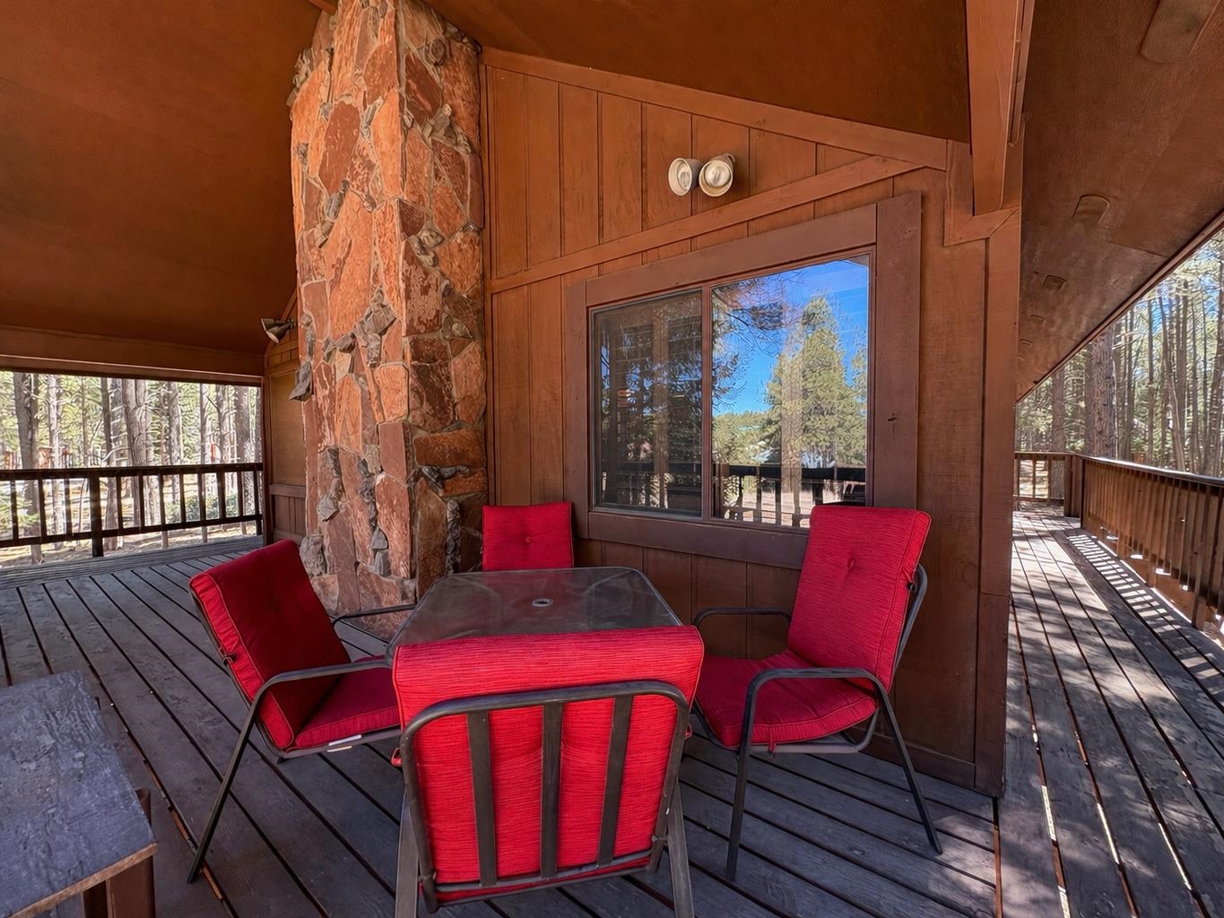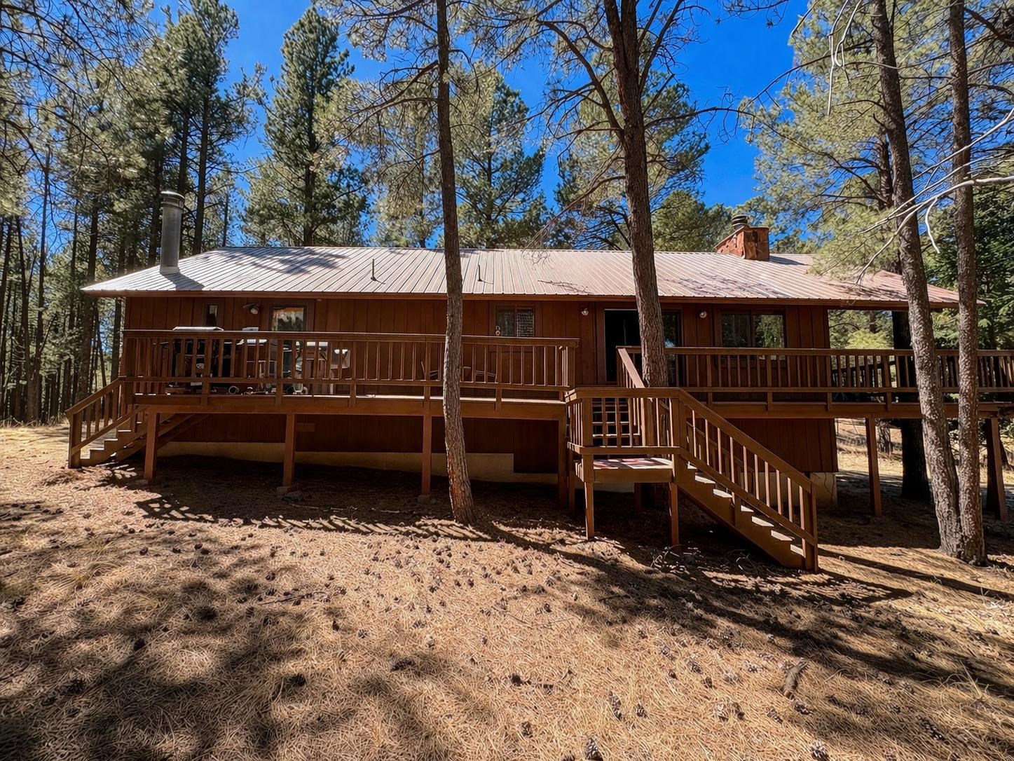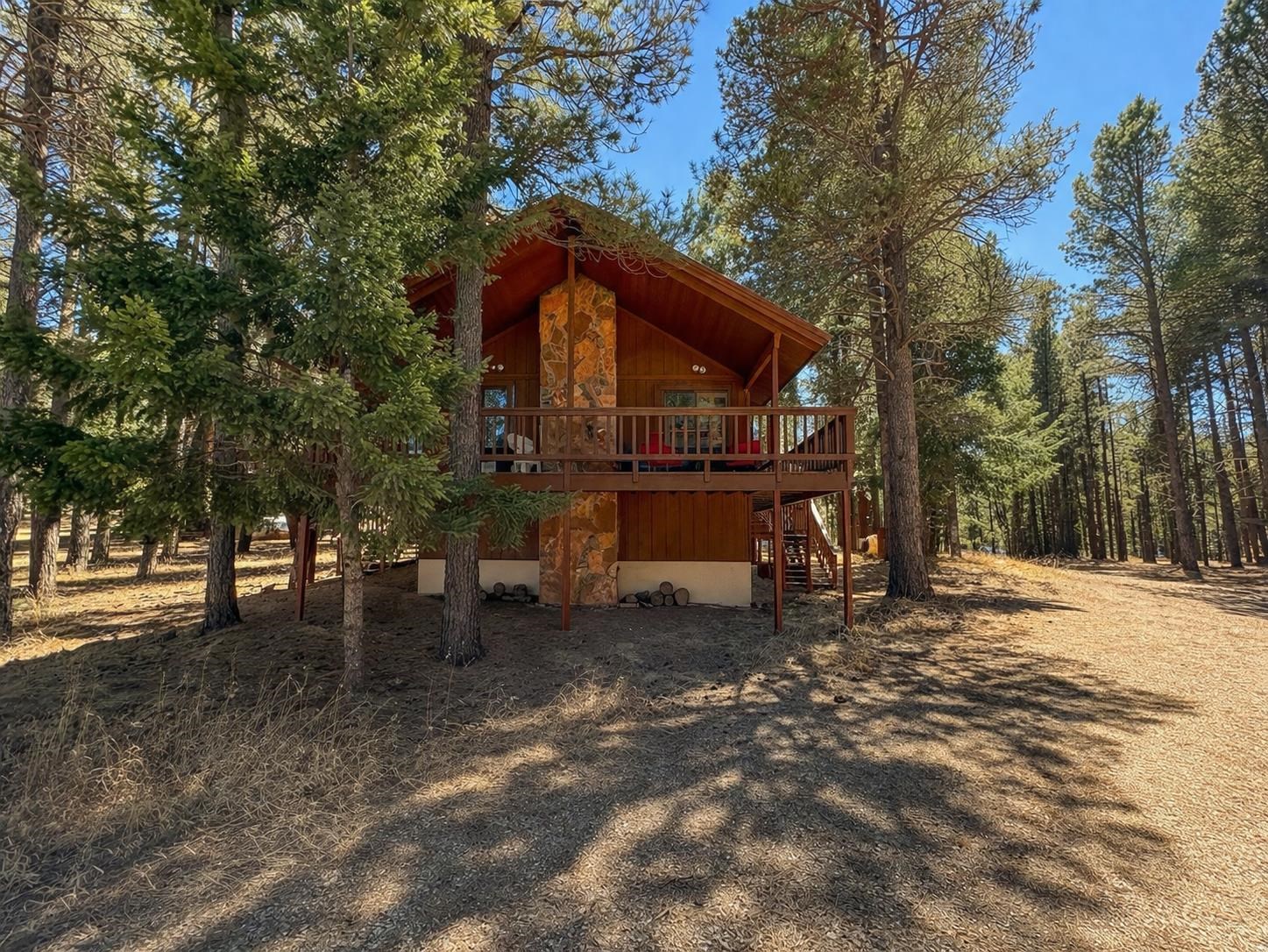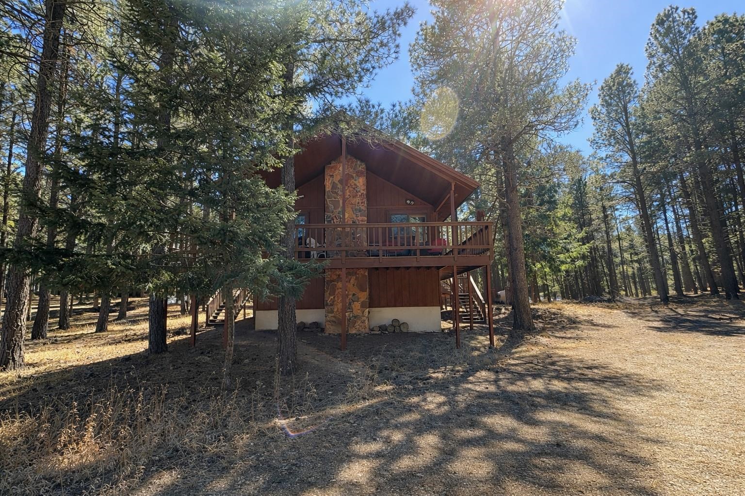 1 block from Monte Verde Lake! This adorable cabin is conveniently located, has 2 fireplaces, stone flooring, tongue & groove celings and great outdoor space! When you first walk in you are greeted by a great mud room area that leads into an open room where you'll find the kitchen, dining room and living room. The large stone fireplace is the highlight of this space! When you step outside onto the patio is a great covered porch and a sunny BBQ area. Further into the house, you follow the stone floor into a master bedroom with another stone fireplace! The property is a part of the Angel Fire Resort Membership, where you can enjoy a PGA golf course, down hill mountain biking park, ski resort, hiking trails, fishing and so much more!