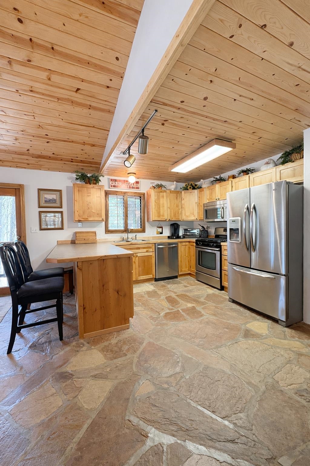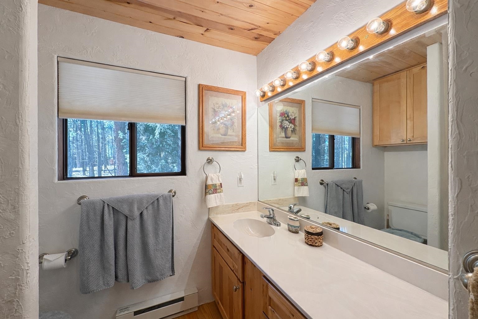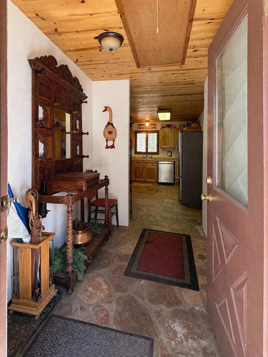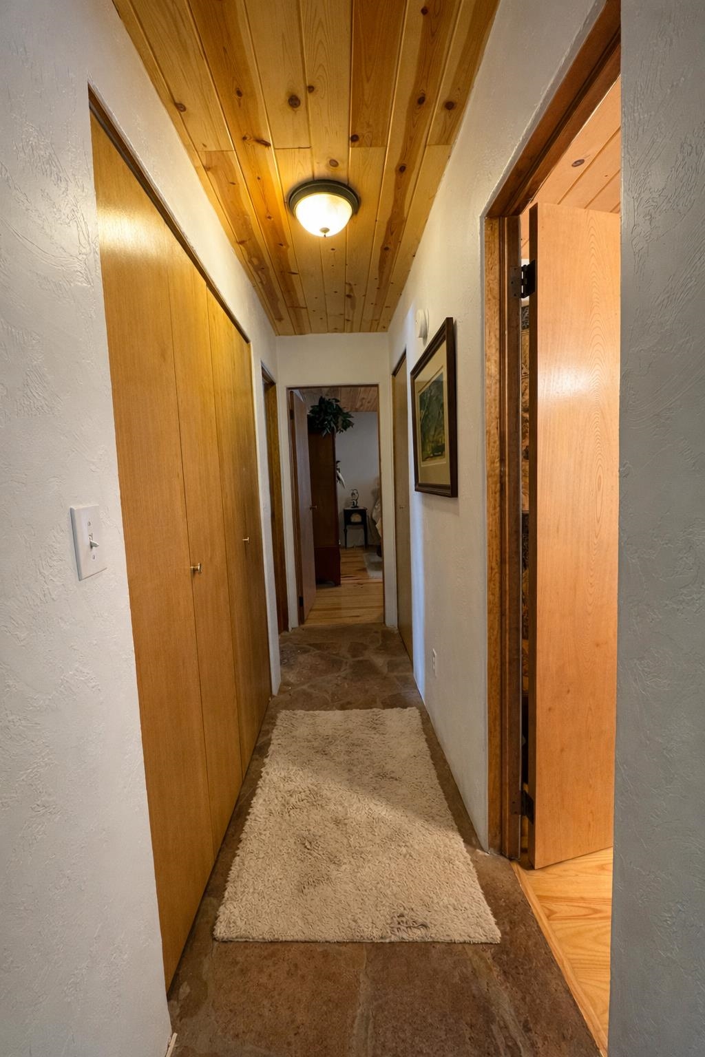 1 block from Monte Verde Lake! This adorable cabin is conveniently located, has 2 fireplaces, stone flooring, tongue & groove celings and great outdoor space! When you first walk in you are greeted by a great mud room area that leads into an open room where you'll find the kitchen, dining room and living room. The large stone fireplace is the highlight of this space! When you step outside onto the patio is a great covered porch and a sunny BBQ area. Further into the house, you follow the stone floor into a master bedroom with another stone fireplace! The property is a part of the Angel Fire Resort Membership, where you can enjoy a PGA golf course, down hill mountain biking park, ski resort, hiking trails, fishing and so much more!