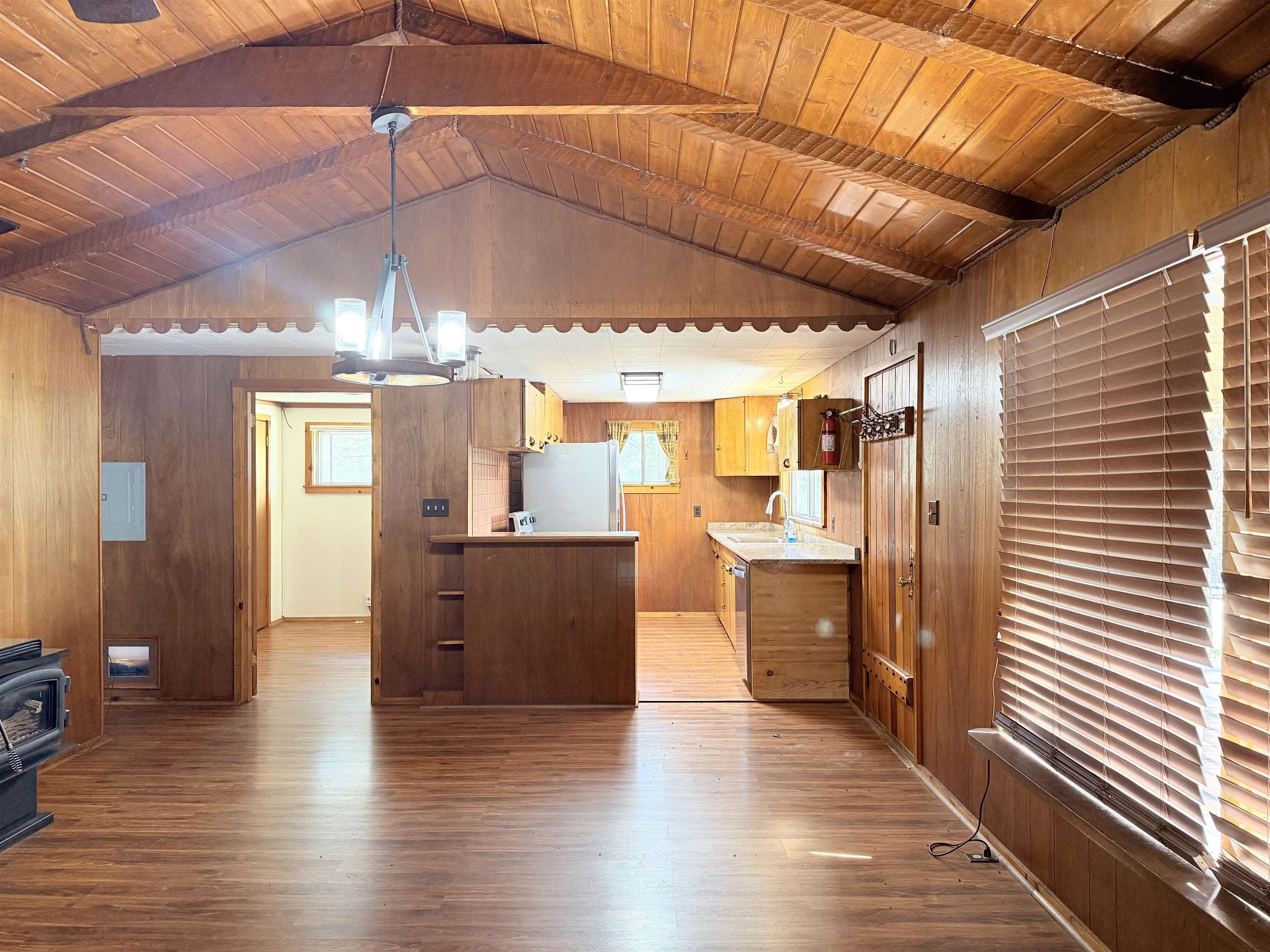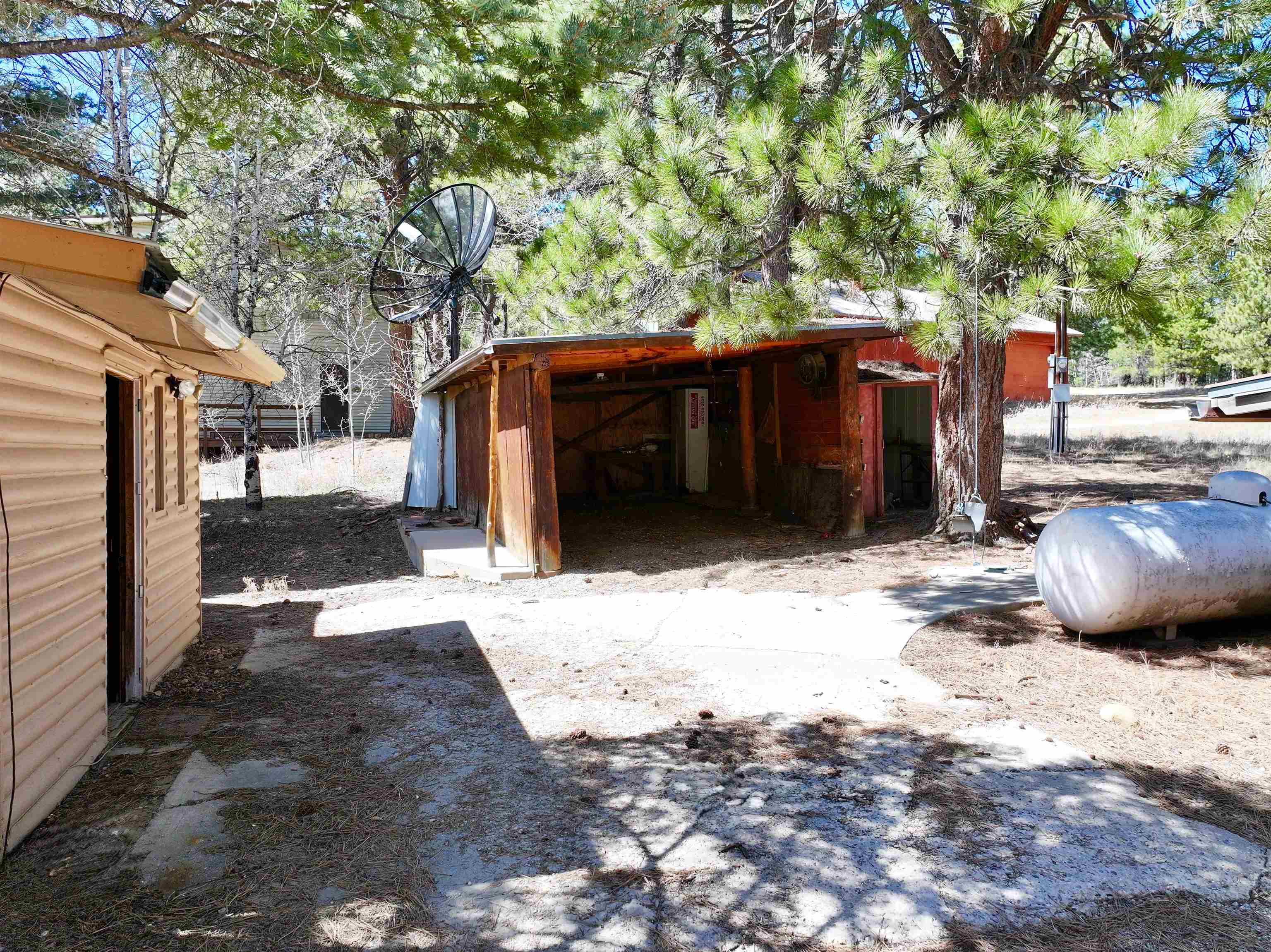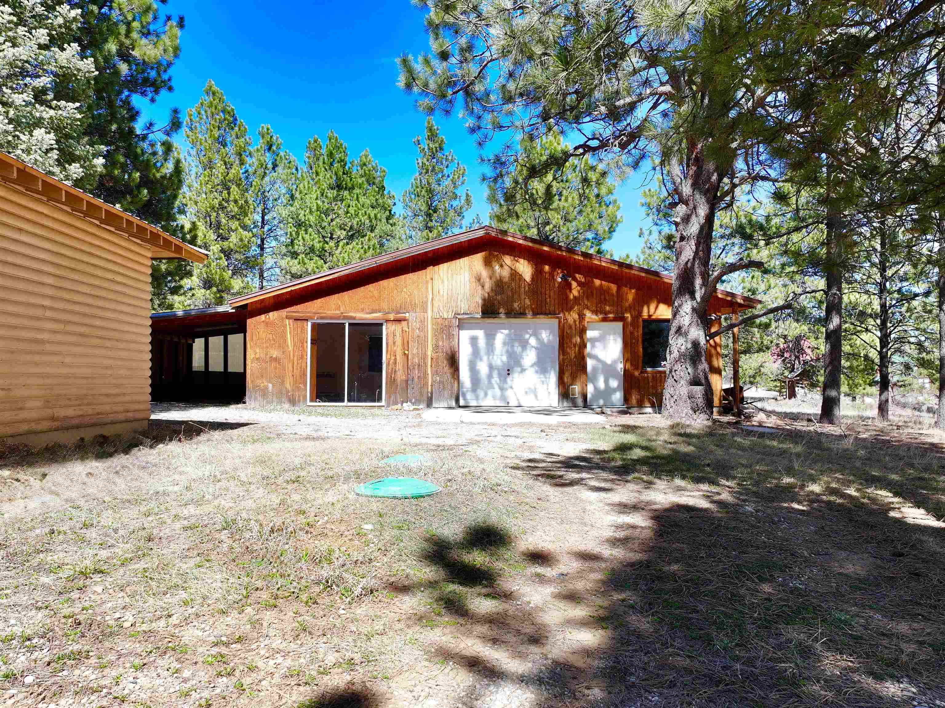 You have discovered your ideal retreat in the Valle Escondido Valley, a tranquil cabin nestled amidst the woods. This exceptional property offers a plethora of amenities, conveniently located near the Valle Escondido Golf Resort. Engage in activities such as fishing, hunting, hiking, sightseeing, mountain biking, ATV riding, and off-roading just to name a few. The home is about 25-30 minutes from Taos, about 20 minutes from Angel Fire and about 45 minutes from Red River. Perched on a gentle hillside, the property features two entry points. Upon entering, you have the option to park outside under the trees, inside a garage or in one of two carports. Upon entering the cabin from the north side, you are greeted by a foyer leading to a spacious living room with beautifully crafted pergo style wood flooring and wood finishes throughout, including a charming wood-burning stove. To your left, you will find a laundry room and a full bathroom equipped with double sinks. Continuing your exploration, you will discover another large living room adjacent to the kitchen, featuring a substantial rock/brick fireplace and another wood burning style gas stove. This area provides ample space for food preparation and entertaining. On the east side of the cabin, two bedrooms and a full bathroom are situated, offering cozy sleeping spaces that evoke the warmth and charm of a cabin setting. The cabin is heated by electric wall heaters, a fireplace, and a wood-burning style gas stove. The front of the cabin boasts a wooden deck that descends to the driveway. The garage also includes an additional heated space that can serve as extra sleeping quarters, a workshop, or storage area. Schedule an appointment today for a personalized tour of this exceptional property to determine if it aligns with your mountain retreat requirements. For more information for the Valle Escondido Homeowners Association, visit https://www.valleescondido.org.