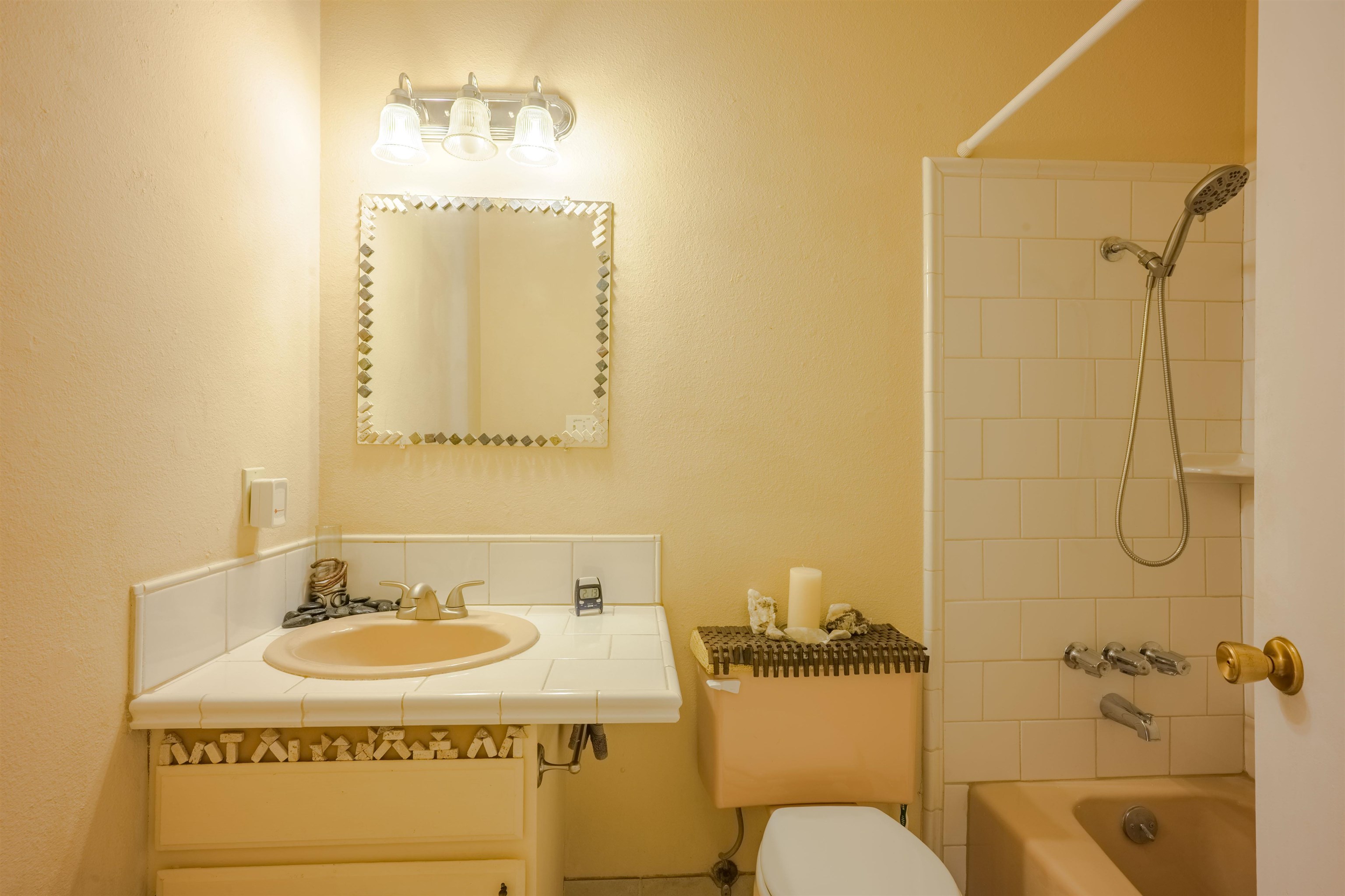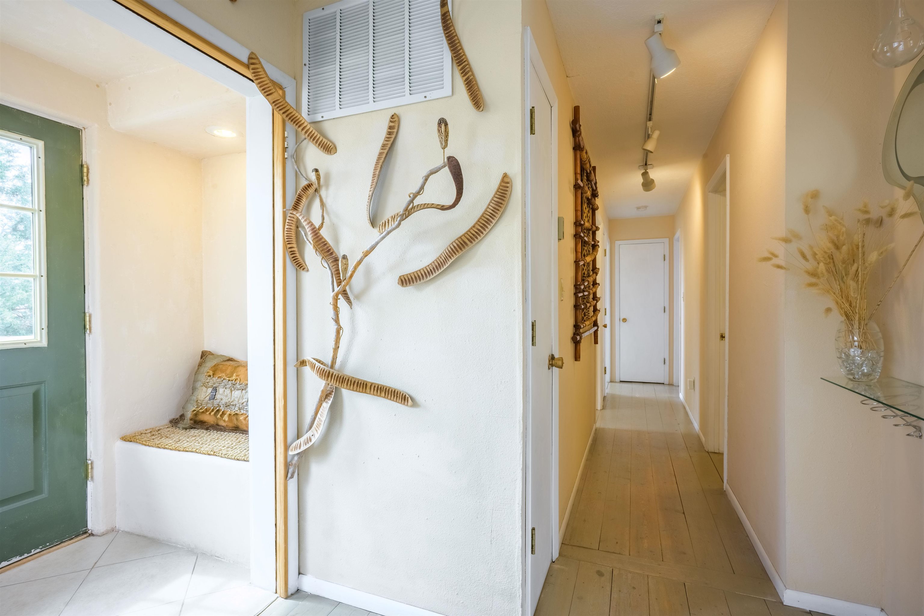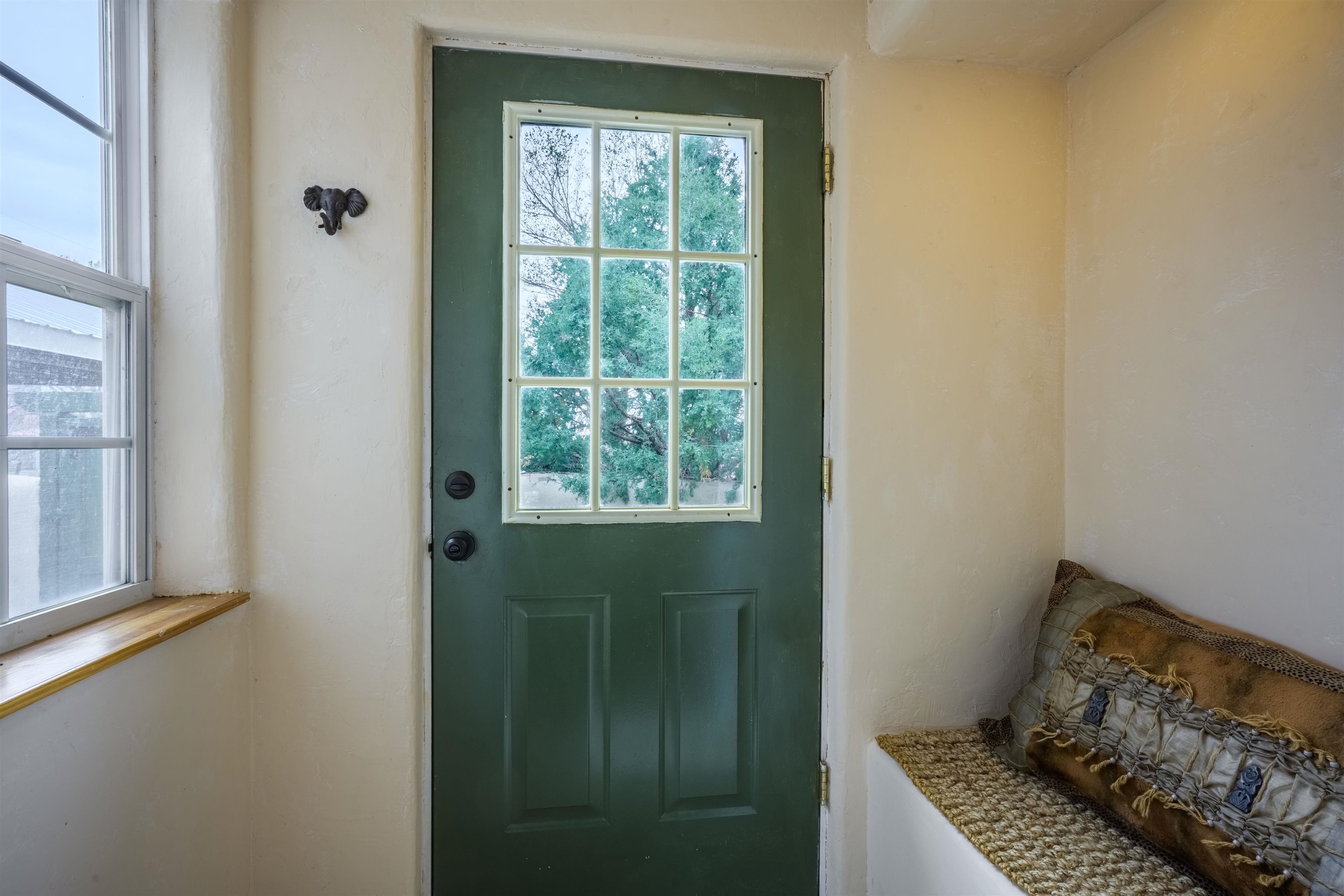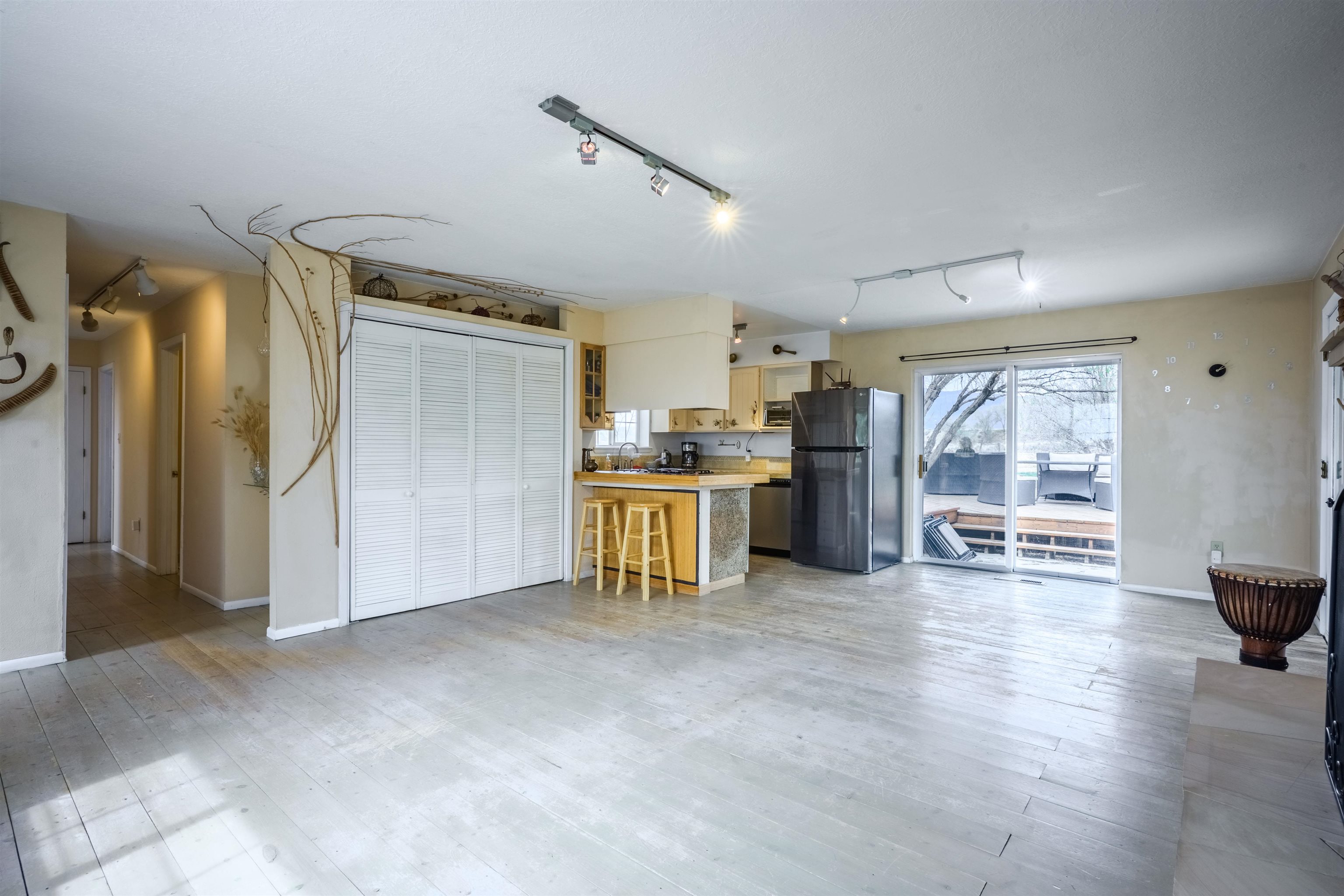 Near the end of a quiet road, across from "Little Santo Nino Church," is a special dwelling on 0.88 acres with young aspens and flowering bushes. The property has a front courtyard concealed behind a curved wall with large slate stepping stones that lead to a covered portal. Inside is an open living/dining area and a very festive cute kitchen. A large picture window and sliding glass doors provide lots of light, perfect for plants, and the stone fireplace will create warmth and ambiance for the humans. The home has two full bathrooms, one large bedroom, and two smaller rooms which can be used as an office, study, or spare bedroom. The driveway leads to a carport with an attached storage shed. Wooden fencing encloses the back yard creating a private sanctuary. At the center is a nature inspired elevated circular deck with a beautiful, sweetly scented olive tree umbrellaing over your party. This deck adds 500 sq ft of usable outdoor space. Entertain with the eight-seater Kontiki while enjoying those tasty fire-roasted meals, then kick back to observe the stars and feel the Great Cosmos. The yard has a tilled garden area, raised beds, and numerous fruit trees-apple, peach, plum, cherry, and produced over a thousand juicy apricots. Taos is known for its spectacular sunsets drawing artists from all over, as well as a deep history of spiritual groups, that congregate for the mystical experiences. Adventure enthusiasts come to ski, bike, and kayak, succumbing to the allure of Taos Mountain and the Gorge. Conveniently located; 15 minutes to the heart of Taos and 25 minutes to Taos Ski Valley or the Rio Grande. A brand-new septic system adds peace of mind and value. With its peaceful setting and inviting outdoor spaces, this property is a wonderful opportunity to enjoy the best of Taos living--schedule your showing today.