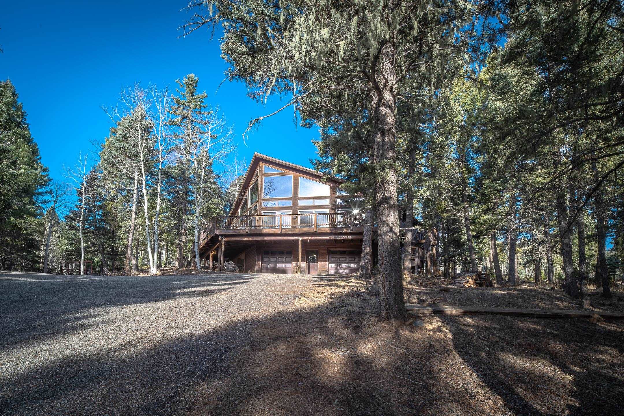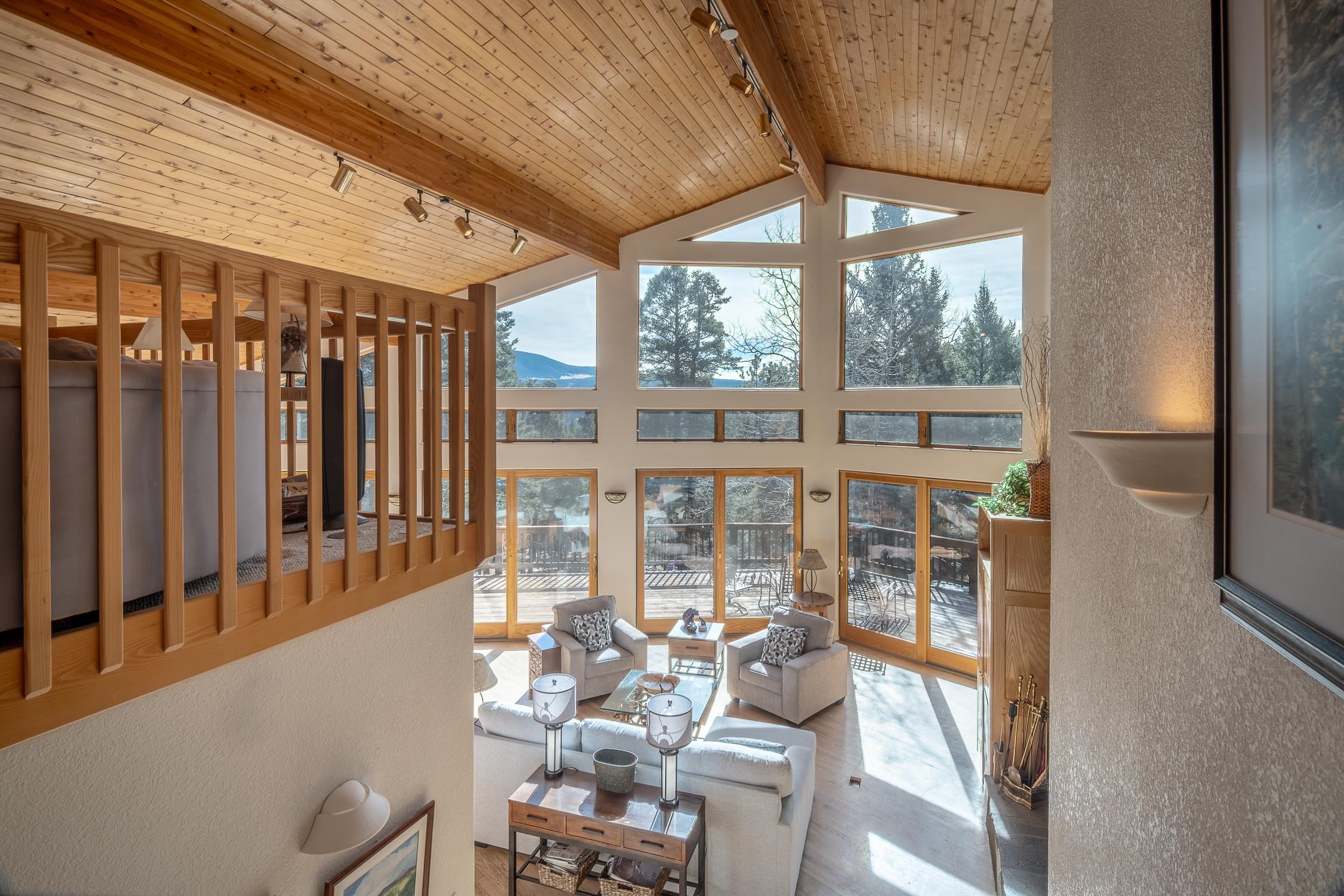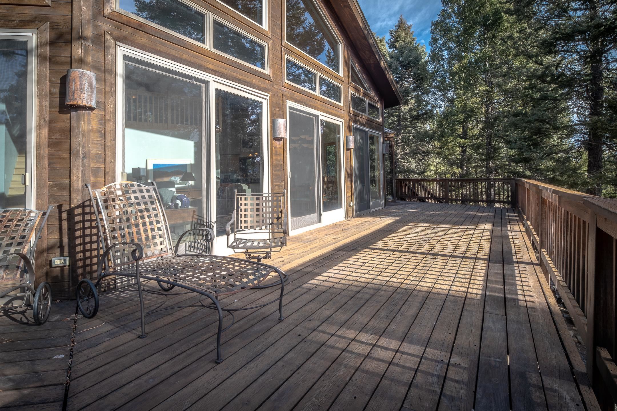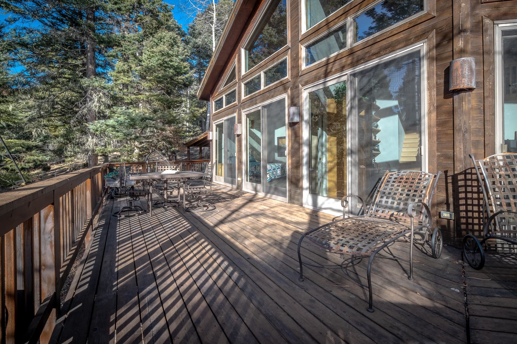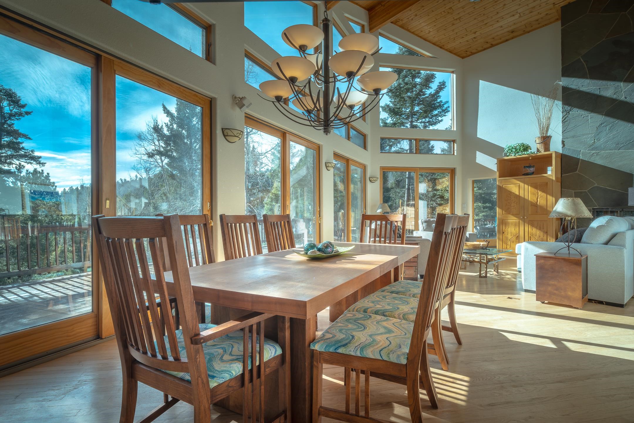Custom built home with mountain views. The open living, dining, and kitchen area features soaring tongue-and-groove ceilings with large beams, hardwood floors, and a dramatic floor-to-ceiling slate wood-burning fireplace. Spacious living room features a wall of glass with sliding and French doors opening to a large outdoor living area. The kitchen includes maple cabinets, a center island, and black granite countertops. This home offers primary suites on both the main and upper levels, including a main-level suite with a two-story wood-burning fireplace and wall of windows overlooking the aspens. Plus, there is a private office space with high-speed internet to make working from home simple & convenient. There is a bonus suite in garage with its own bathroom. Additional features include an oversized two-car garage with work tables and shelves, a large jacuzzi room and an extra storage room.