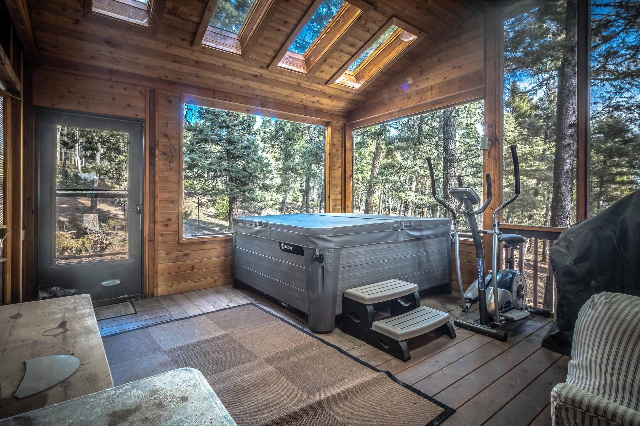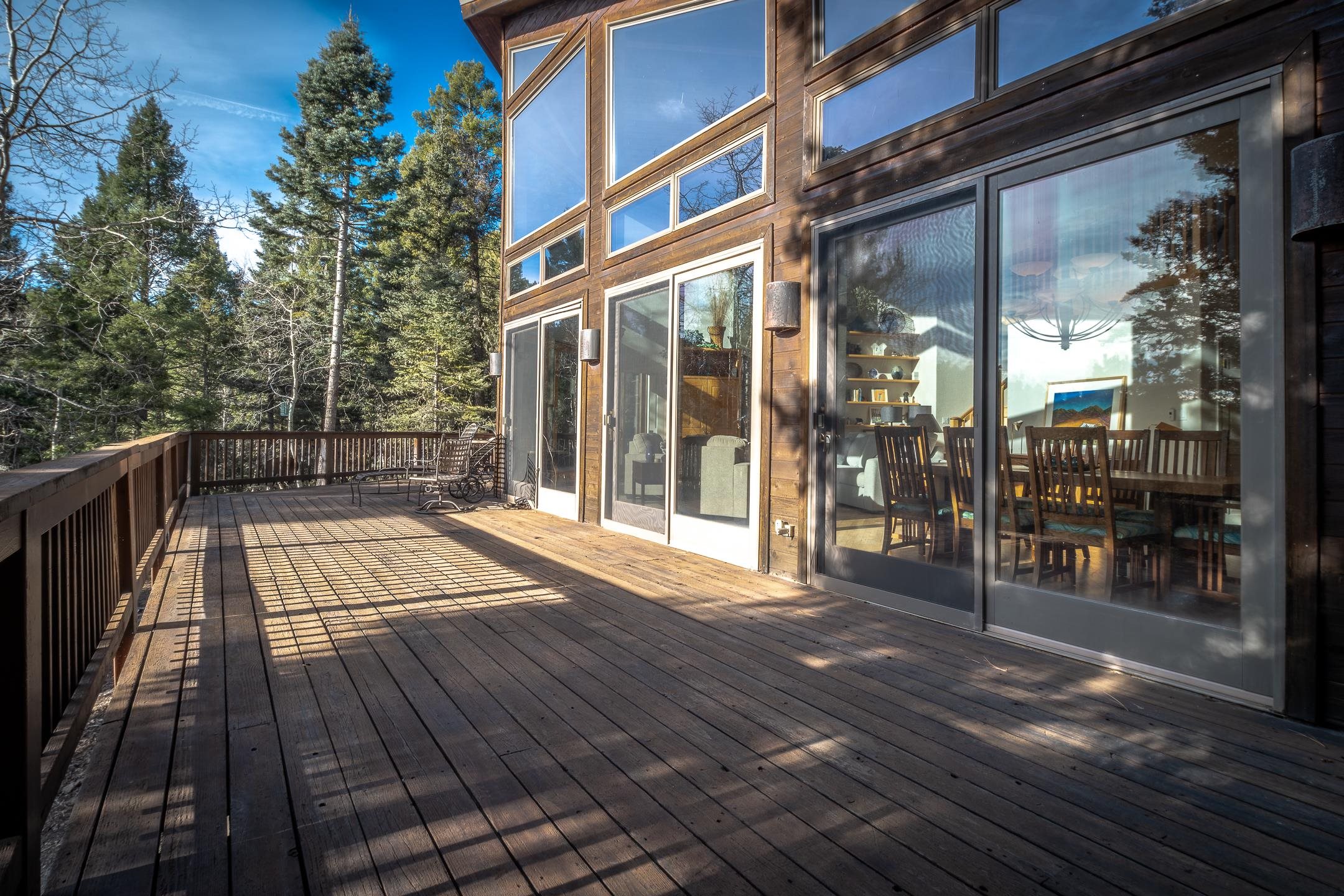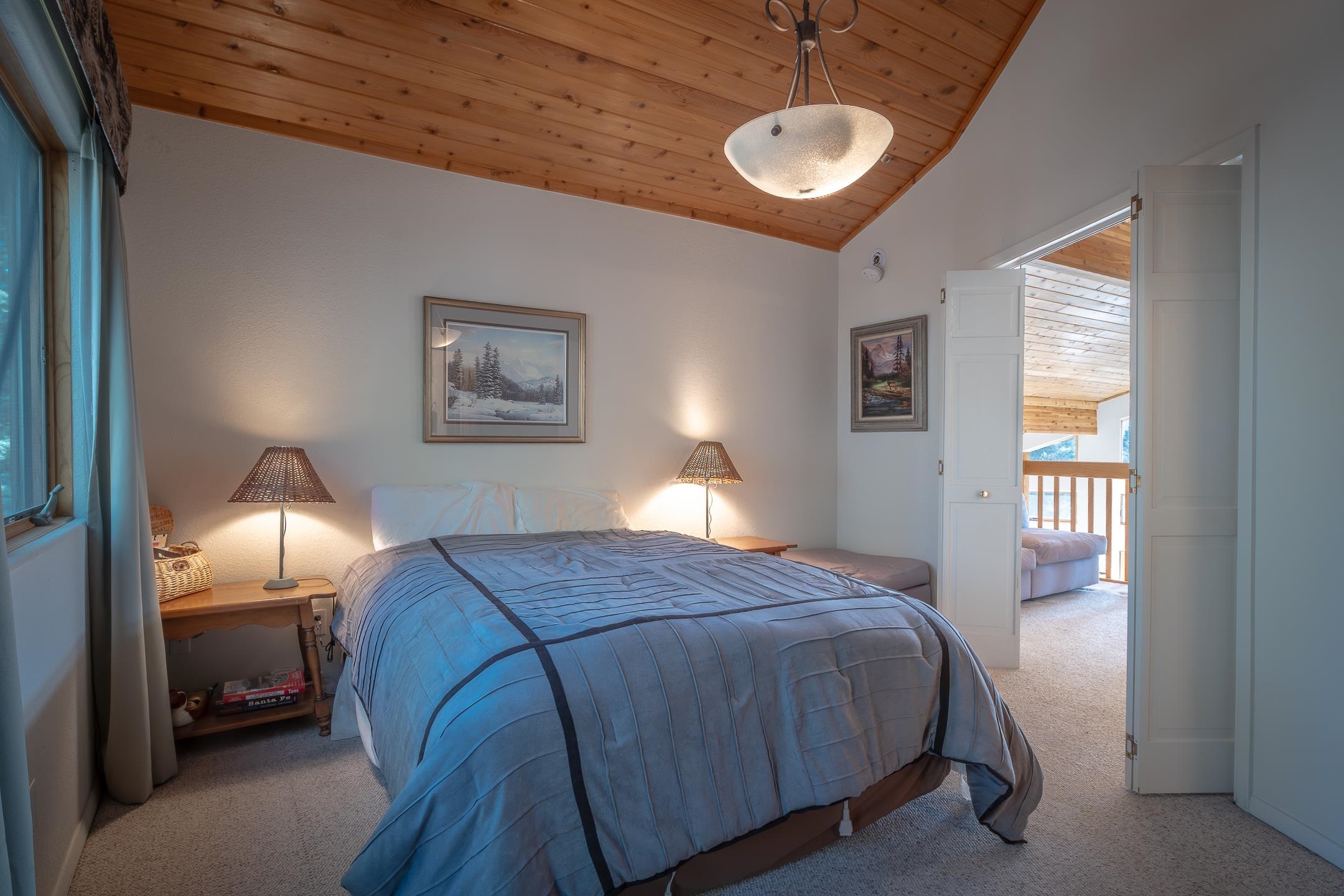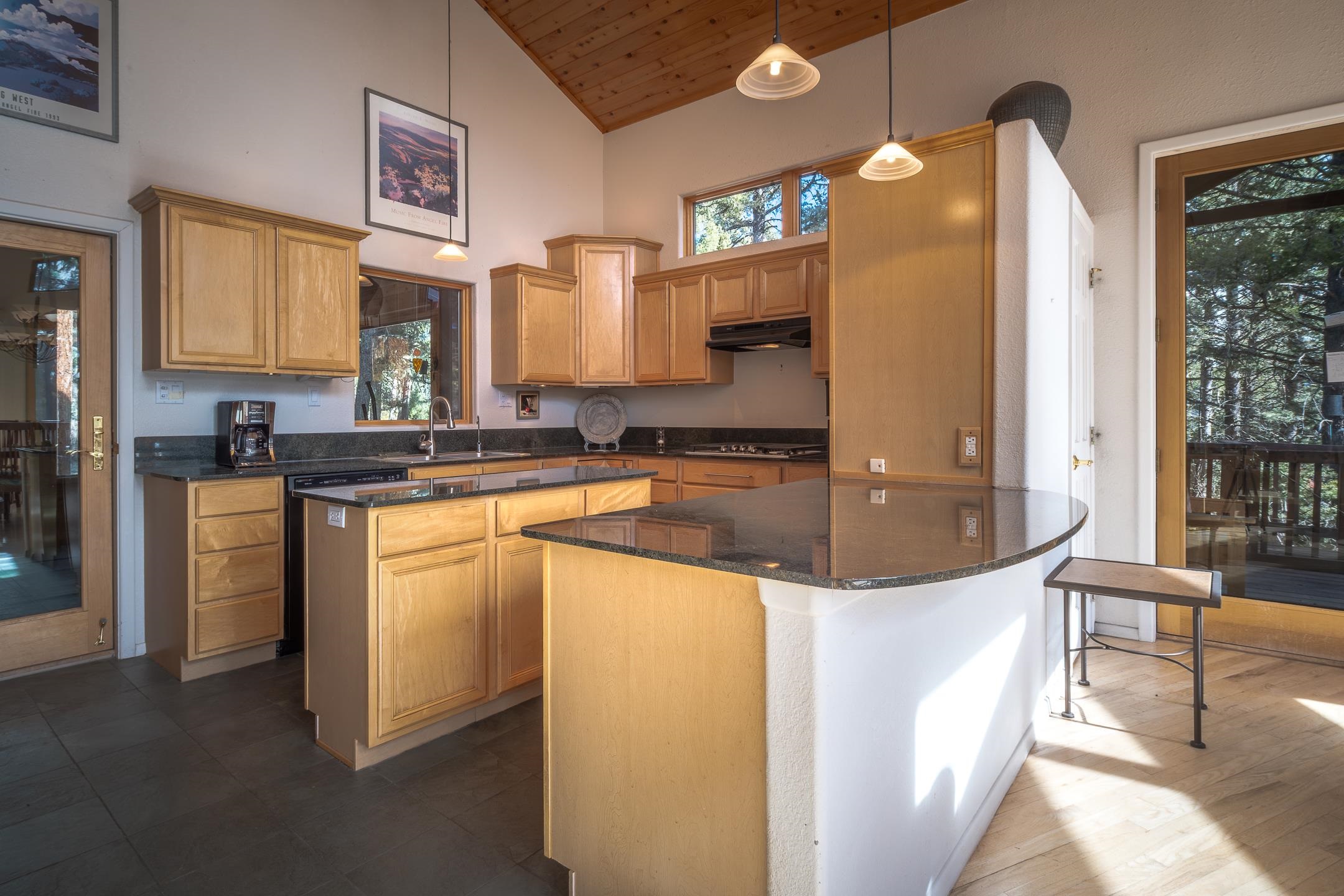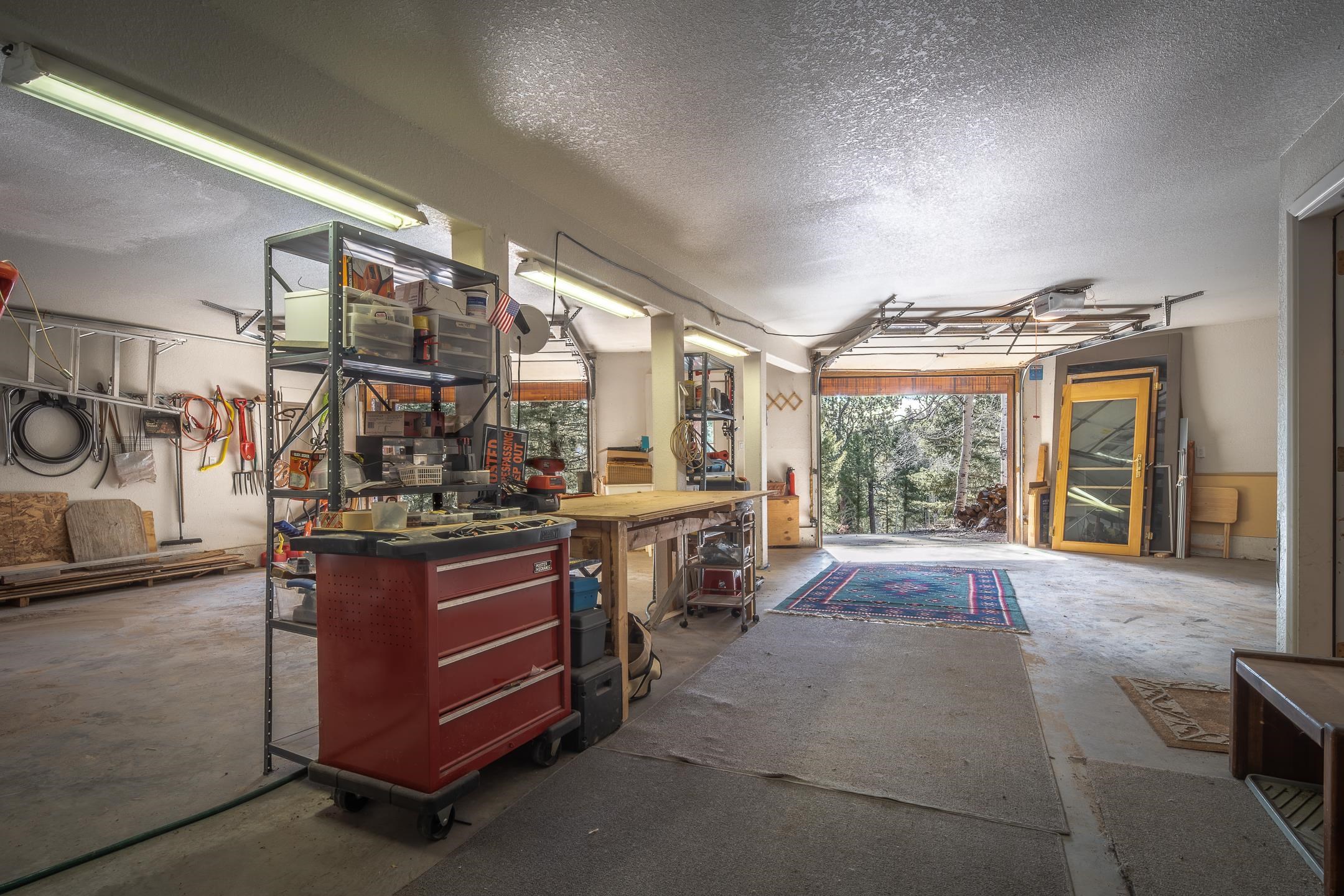 Custom built home with mountain views. The open living, dining, and kitchen area features soaring tongue-and-groove ceilings with large beams, hardwood floors, and a dramatic floor-to-ceiling slate wood-burning fireplace. Spacious living room features a wall of glass with sliding and French doors opening to a large outdoor living area. The kitchen includes maple cabinets, a center island, and black granite countertops. This home offers primary suites on both the main and upper levels, including a main-level suite with a two-story wood-burning fireplace and wall of windows overlooking the aspens. Plus, there is a private office space with high-speed internet to make working from home simple & convenient. There is a bonus suite in garage with its own bathroom. Additional features include an oversized two-car garage with work tables and shelves, a large jacuzzi room and an extra storage room.