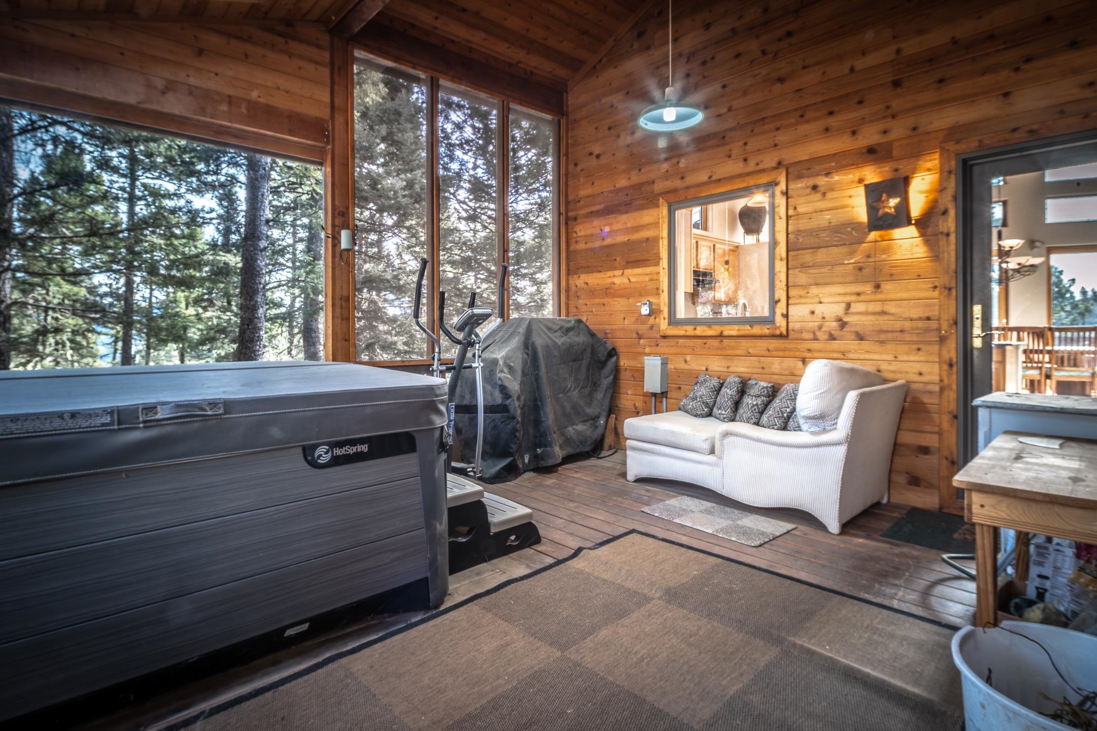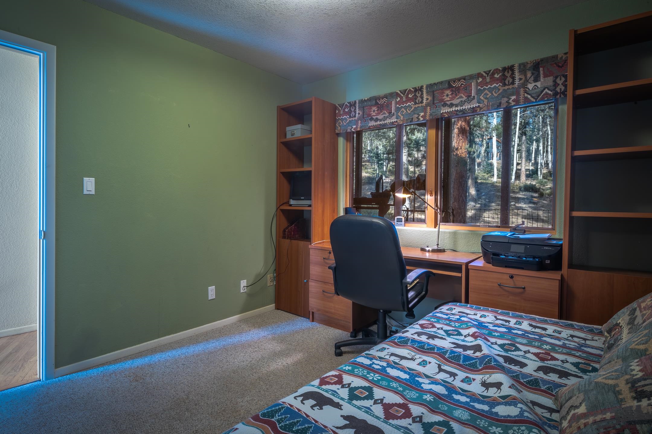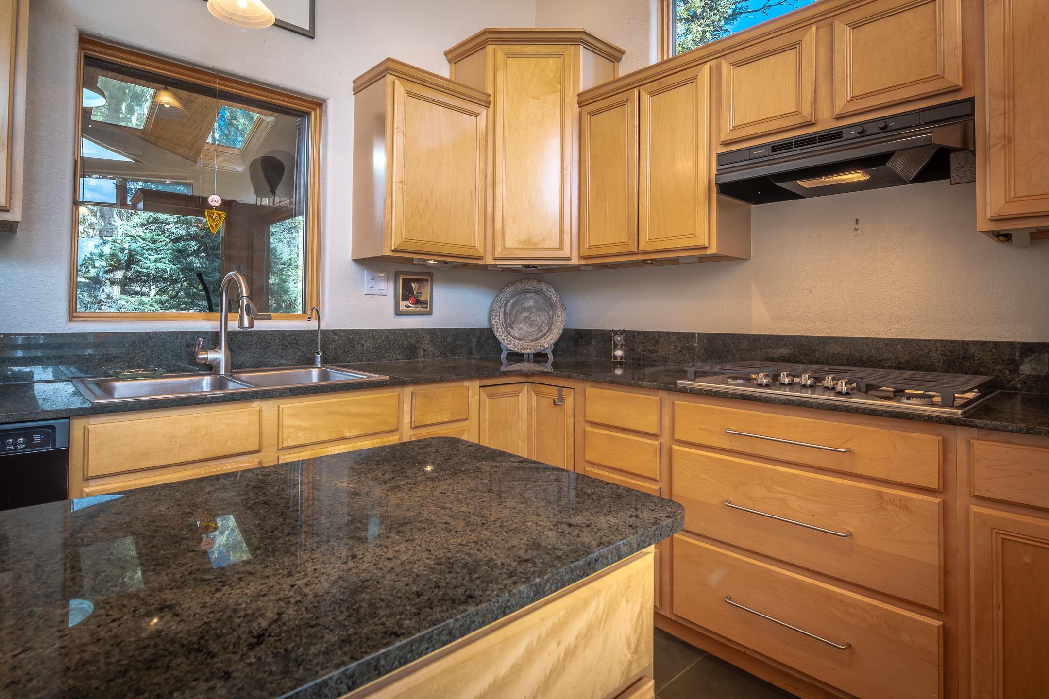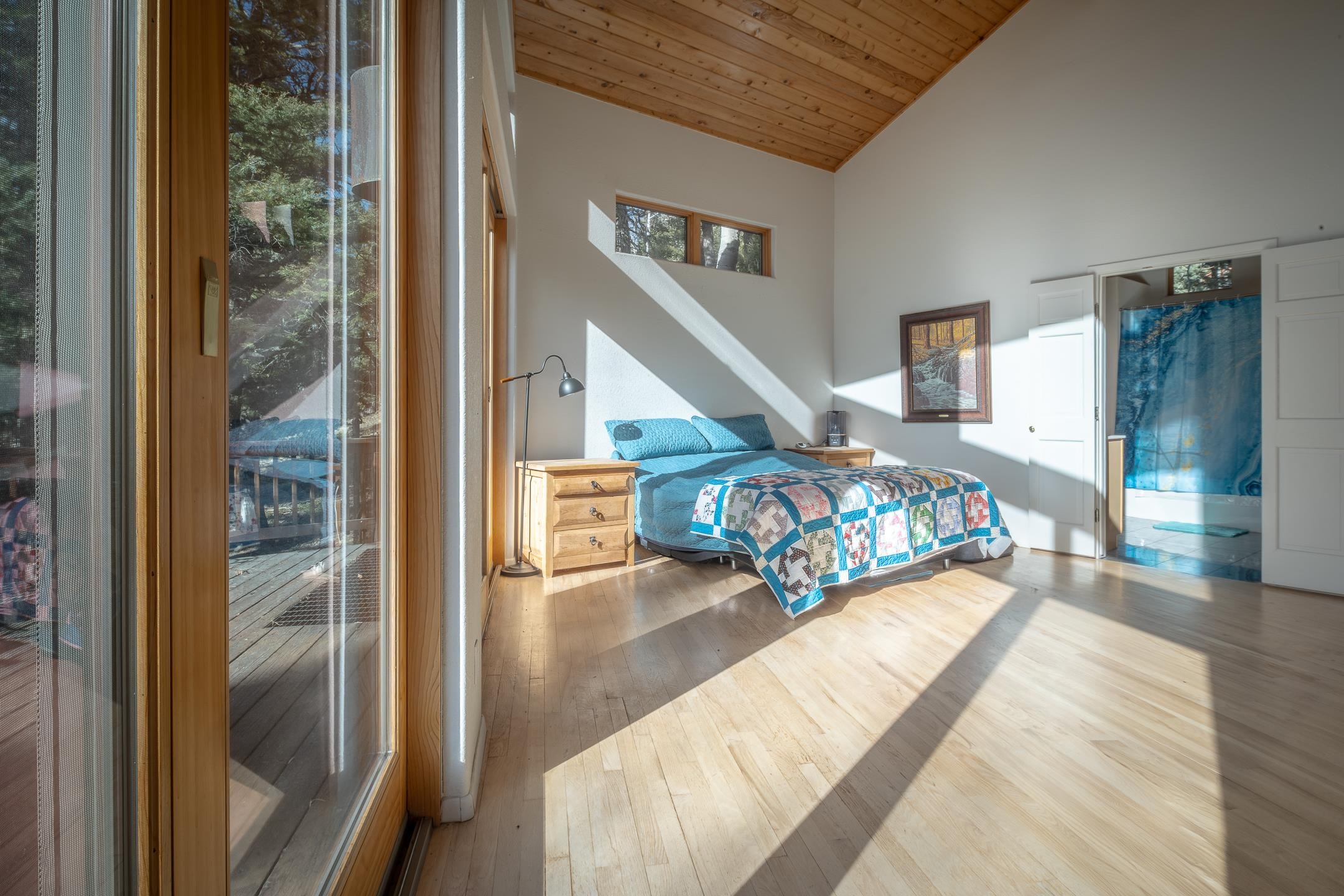Custom built home with mountain views. The open living, dining, and kitchen area features soaring tongue-and-groove ceilings with large beams, hardwood floors, and a dramatic floor-to-ceiling slate wood-burning fireplace. Spacious living room features a wall of glass with sliding and French doors opening to a large outdoor living area. The kitchen includes maple cabinets, a center island, and black granite countertops. This home offers primary suites on both the main and upper levels, including a main-level suite with a two-story wood-burning fireplace and wall of windows overlooking the aspens. Plus, there is a private office space with high-speed internet to make working from home simple & convenient. There is a bonus suite in garage with its own bathroom. Additional features include an oversized two-car garage with work tables and shelves, a large jacuzzi room and an extra storage room.