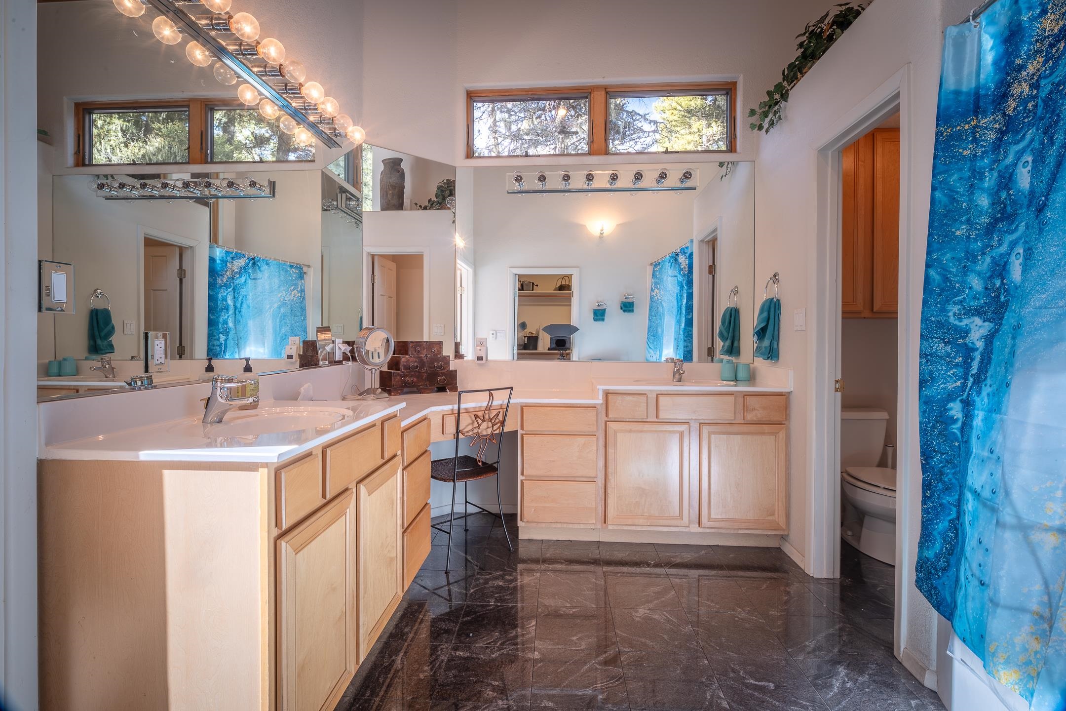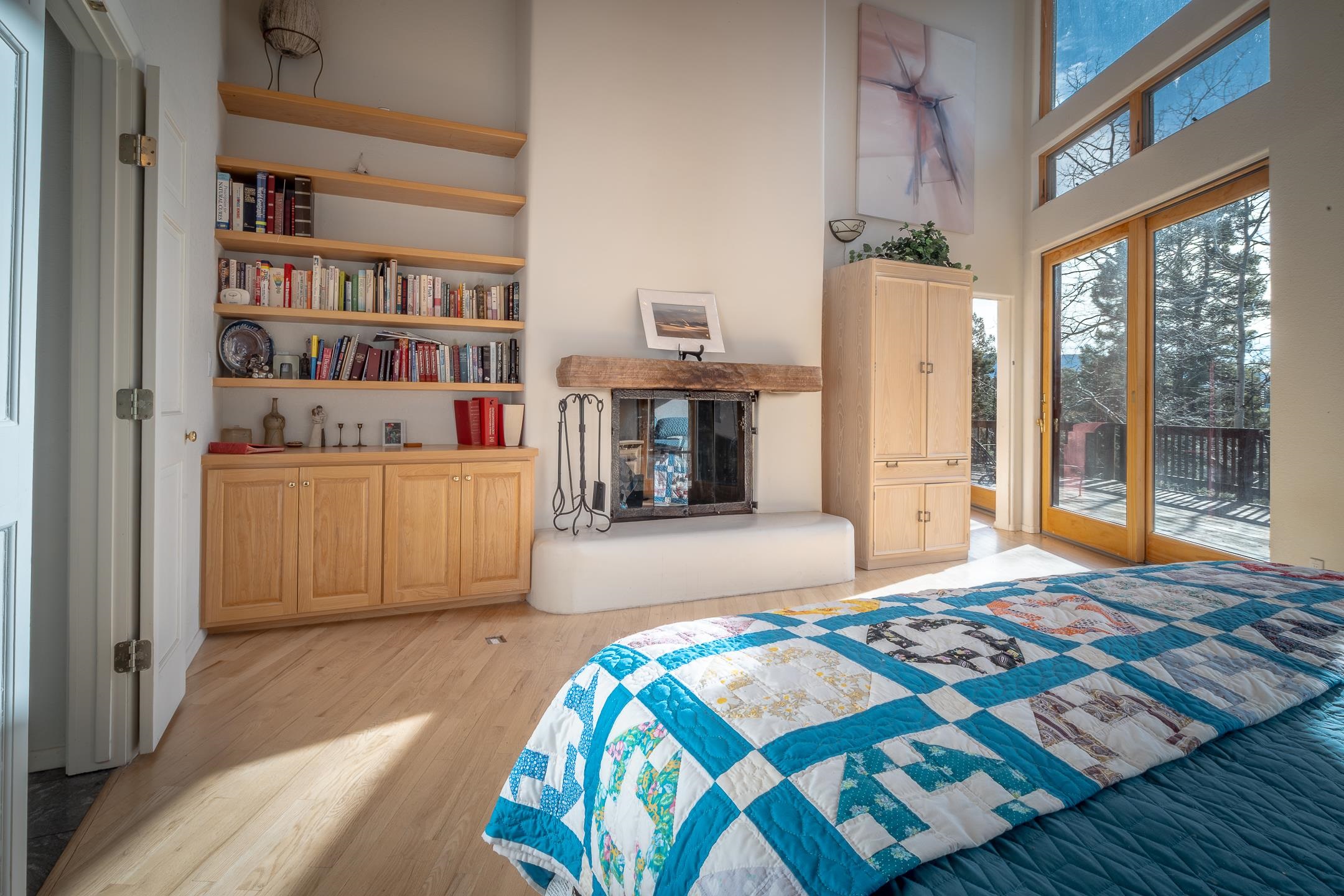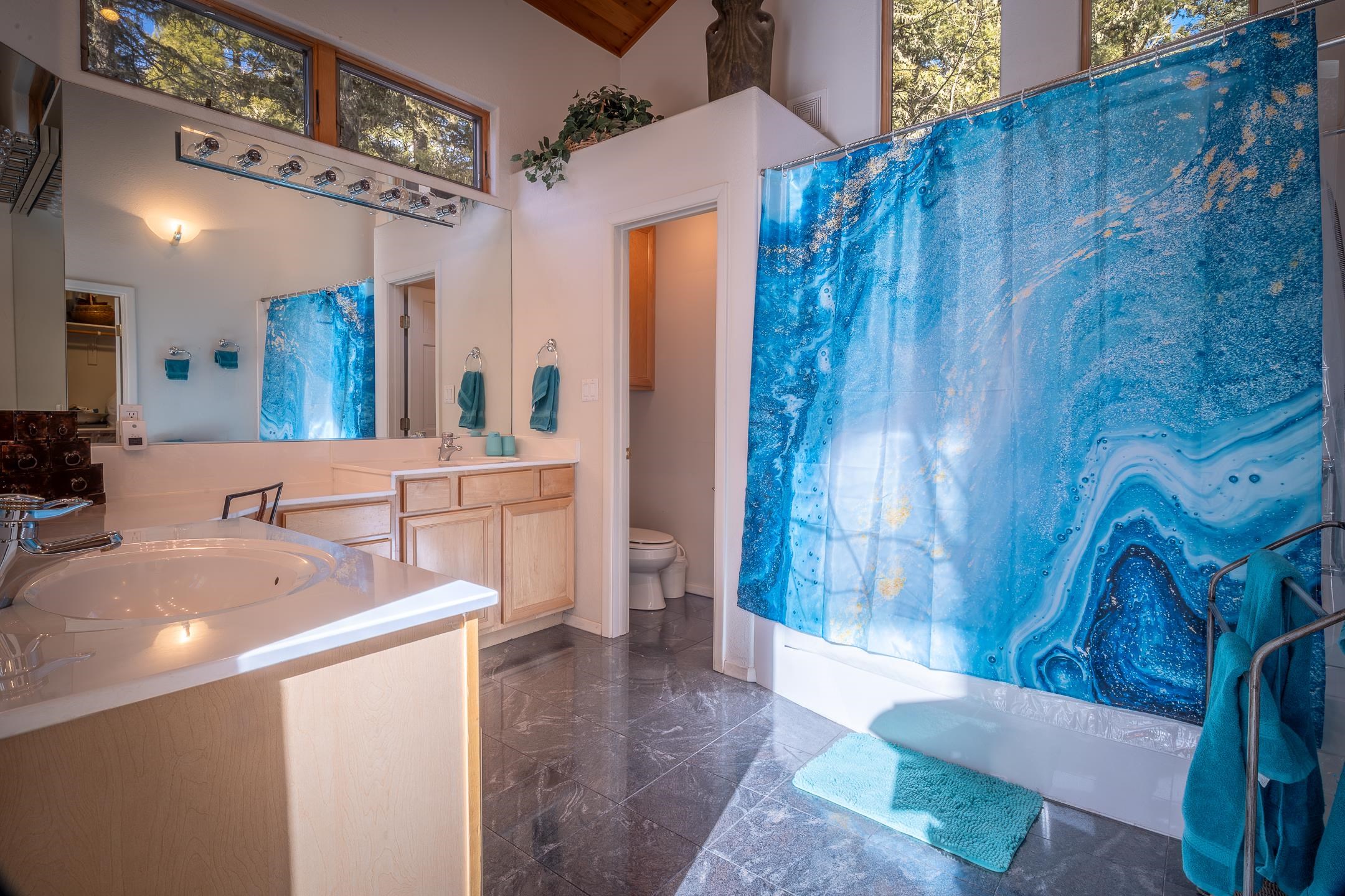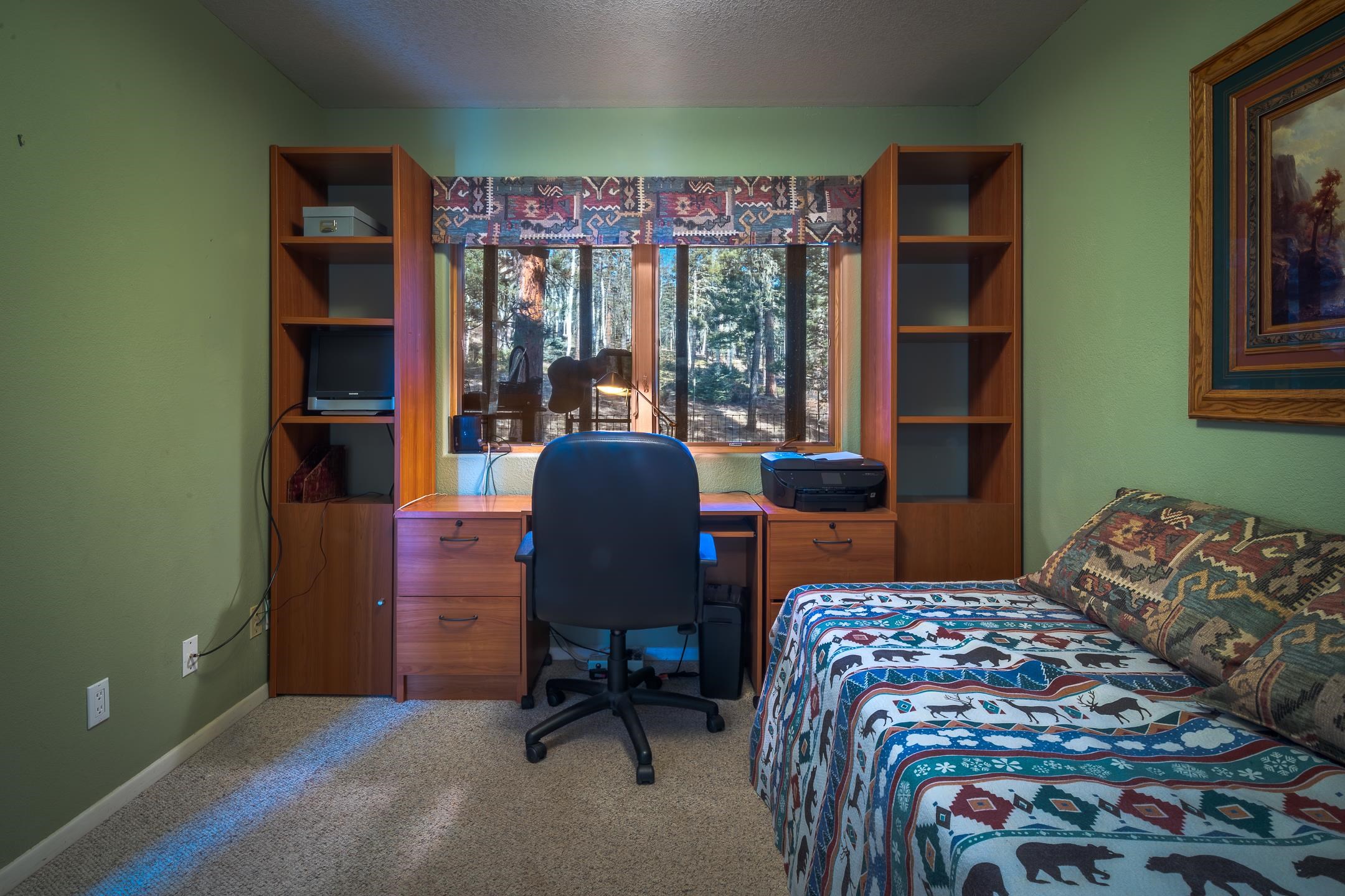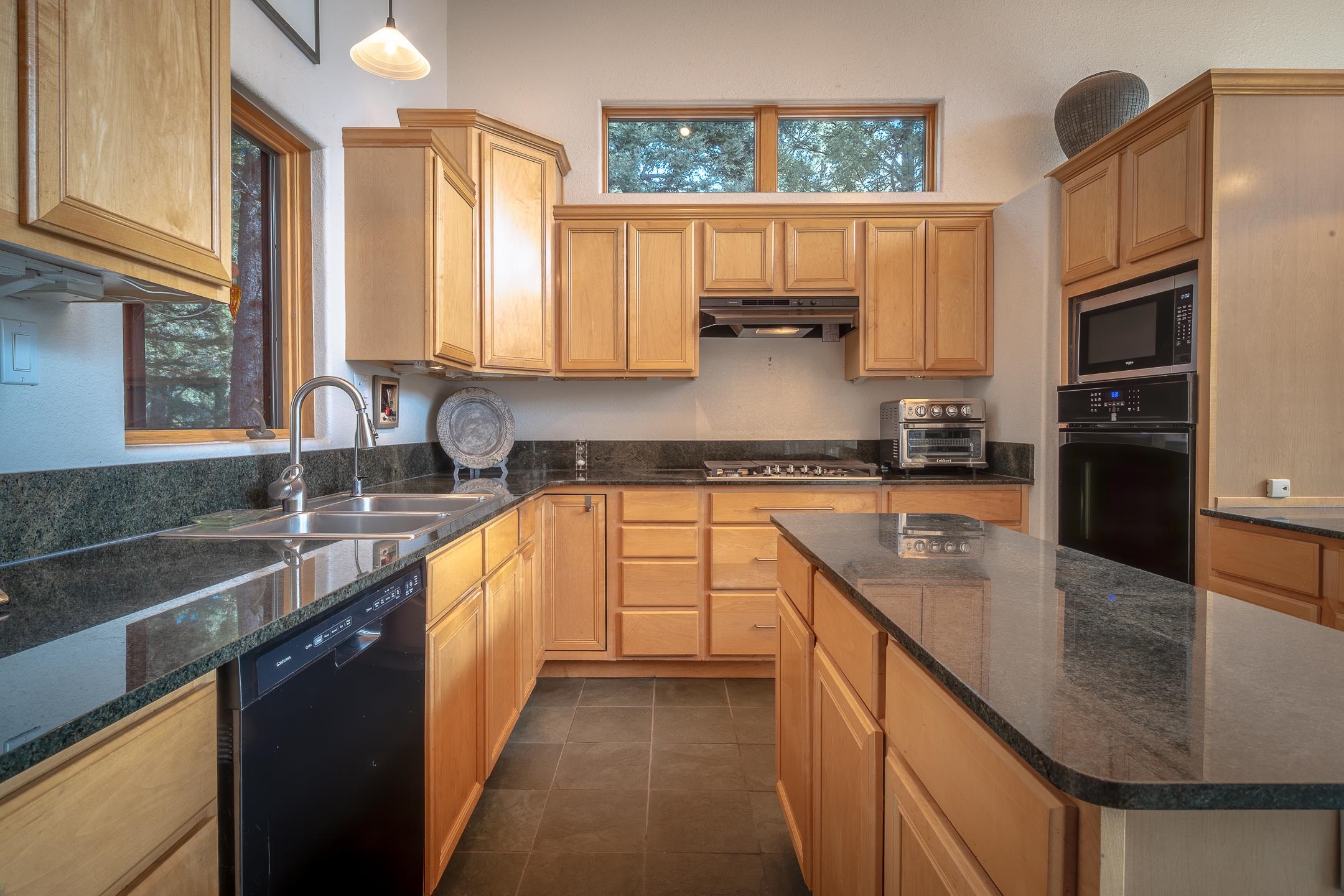Custom built home with mountain views. The open living, dining, and kitchen area features soaring tongue-and-groove ceilings with large beams, hardwood floors, and a dramatic floor-to-ceiling slate wood-burning fireplace. Spacious living room features a wall of glass with sliding and French doors opening to a large outdoor living area. The kitchen includes maple cabinets, a center island, and black granite countertops. This home offers primary suites on both the main and upper levels, including a main-level suite with a two-story wood-burning fireplace and wall of windows overlooking the aspens. Plus, there is a private office space with high-speed internet to make working from home simple & convenient. There is a bonus suite in garage with its own bathroom. Additional features include an oversized two-car garage with work tables and shelves, a large jacuzzi room and an extra storage room.