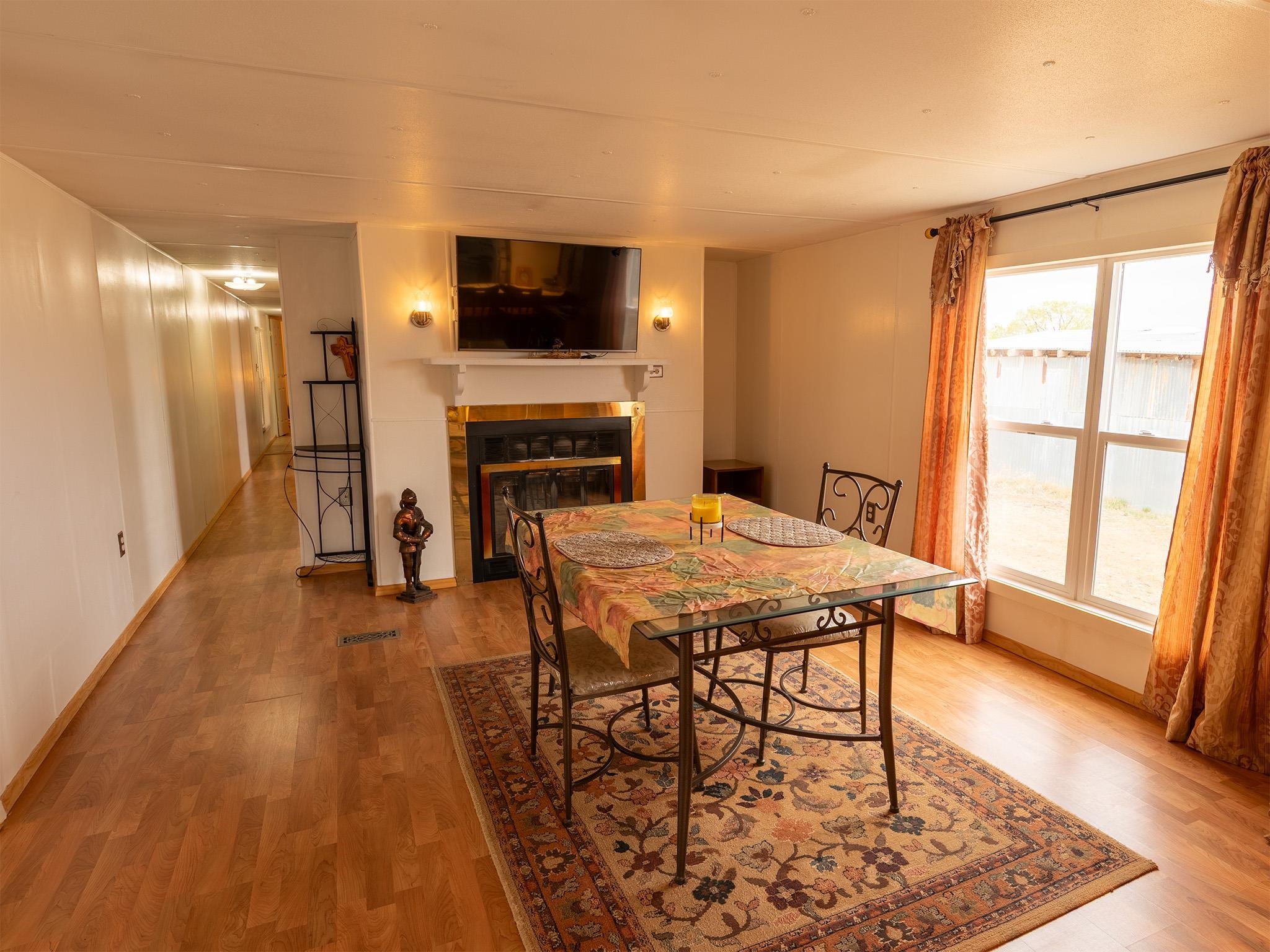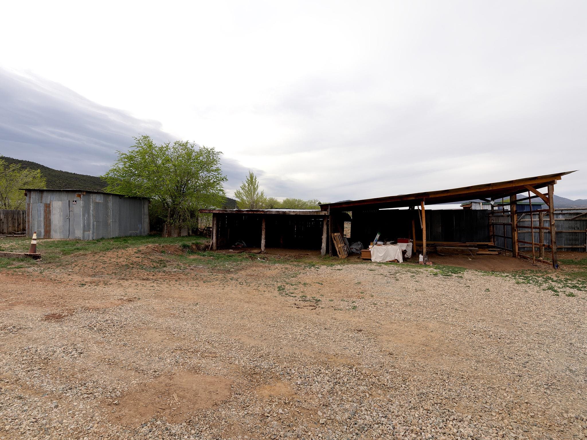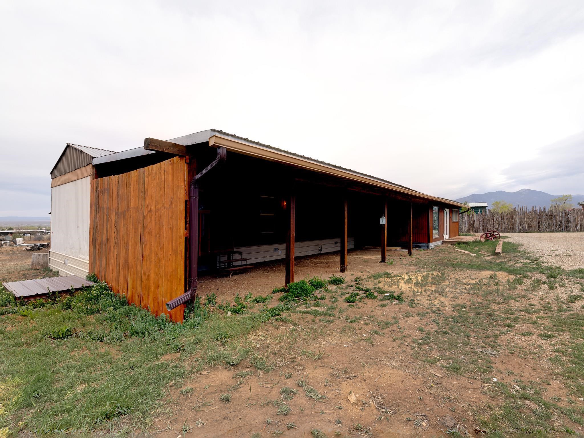 Investment opportunity meets move-in-ready living in Ranchos de Taos Positioned at the end of a legal easement in Ranchos de Taos, this 1.17-acre dual-parcel property delivers a rare combination of privacy, infrastructure, and real upside potential -- all framed by expansive west and north-facing views across the Taos Valley and unforgettable sunset skies. Comprised of two tax lots, this property offers immediate flexibility and investment opportunity. One parcel, approximately 0.5 acres, is fully developable and already served by El Valle de los Ranchos water and sewer -- a significant advantage that can dramatically reduce the time, cost, and friction typically associated with new construction in the area. The existing residence is a clean, recently refreshed 3-bedroom, 2-bath mobile home with an active title, complemented by a well-constructed split-level addition that creates a comfortable and functional living or family room space. The home can be conveyed furnished, offering a turnkey opportunity for rental income, seasonal use, or immediate occupancy. Maintaining the home as a titled manufactured residence may offer favorable property tax treatment compared to some site-built alternatives, contributing to overall holding cost efficiency. Buyers should verify current and future tax implications with the Taos County Assessor. Additional improvements include a two-stall detached carport and two large shop/workshop structures, providing excellent space for storage, creative use, or business operations. An irrigation ditch crosses the property, with associated water rights adding both character and long-term value. Whether you're seeking a move-in ready home with income potential, a live/work setup, or a strategic development opportunity with infrastructure already in place, this property offers multiple paths forward in one of the most sought-after areas of Taos. Buyer to verify all utilities, water rights, development potential, and permitted uses. Square footage is approximate and may include additions. Buyers should obtain independent measurements if square footage is material to their purchase decision.