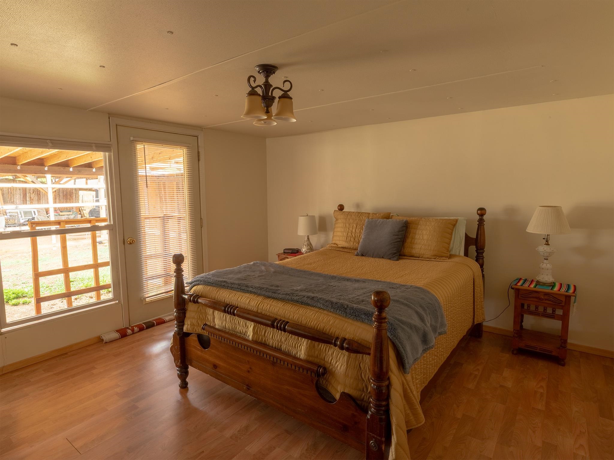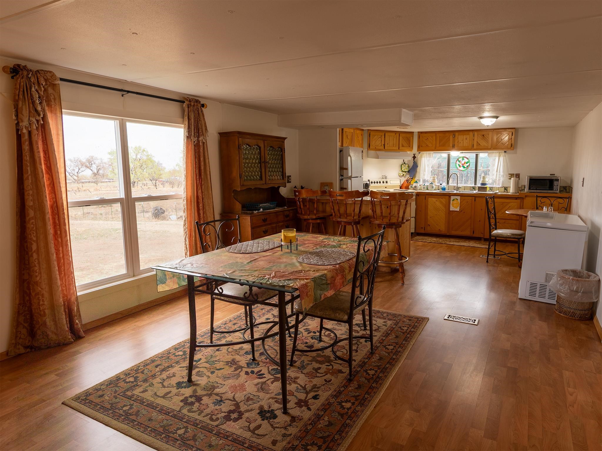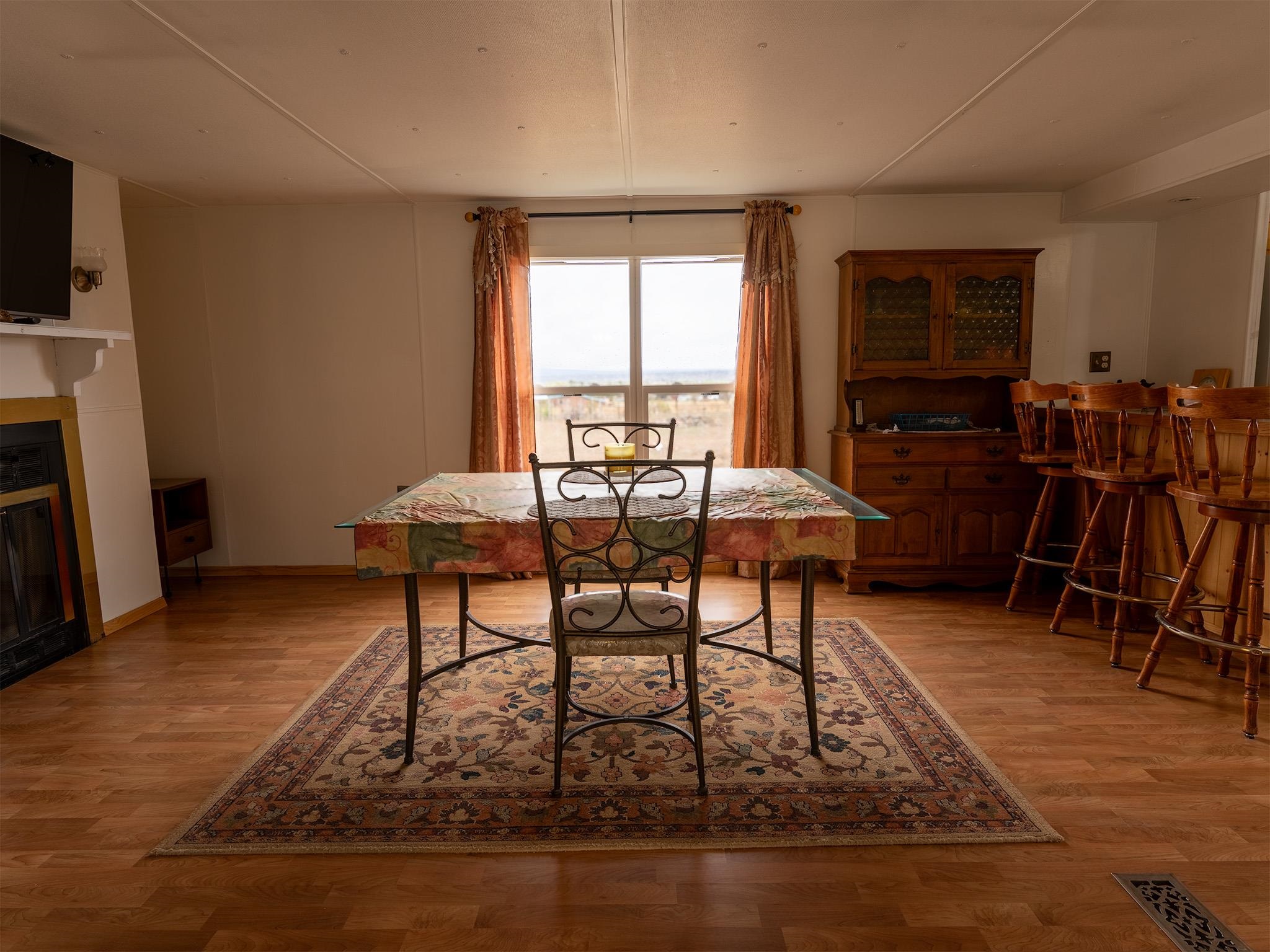 Investment opportunity meets move-in-ready living in Ranchos de Taos Positioned at the end of a legal easement in Ranchos de Taos, this 1.17-acre dual-parcel property delivers a rare combination of privacy, infrastructure, and real upside potential -- all framed by expansive west and north-facing views across the Taos Valley and unforgettable sunset skies. Comprised of two tax lots, this property offers immediate flexibility and investment opportunity. One parcel, approximately 0.5 acres, is fully developable and already served by El Valle de los Ranchos water and sewer -- a significant advantage that can dramatically reduce the time, cost, and friction typically associated with new construction in the area. The existing residence is a clean, recently refreshed 3-bedroom, 2-bath mobile home with an active title, complemented by a well-constructed split-level addition that creates a comfortable and functional living or family room space. The home can be conveyed furnished, offering a turnkey opportunity for rental income, seasonal use, or immediate occupancy. Maintaining the home as a titled manufactured residence may offer favorable property tax treatment compared to some site-built alternatives, contributing to overall holding cost efficiency. Buyers should verify current and future tax implications with the Taos County Assessor. Additional improvements include a two-stall detached carport and two large shop/workshop structures, providing excellent space for storage, creative use, or business operations. An irrigation ditch crosses the property, with associated water rights adding both character and long-term value. Whether you're seeking a move-in ready home with income potential, a live/work setup, or a strategic development opportunity with infrastructure already in place, this property offers multiple paths forward in one of the most sought-after areas of Taos. Buyer to verify all utilities, water rights, development potential, and permitted uses. Square footage is approximate and may include additions. Buyers should obtain independent measurements if square footage is material to their purchase decision.