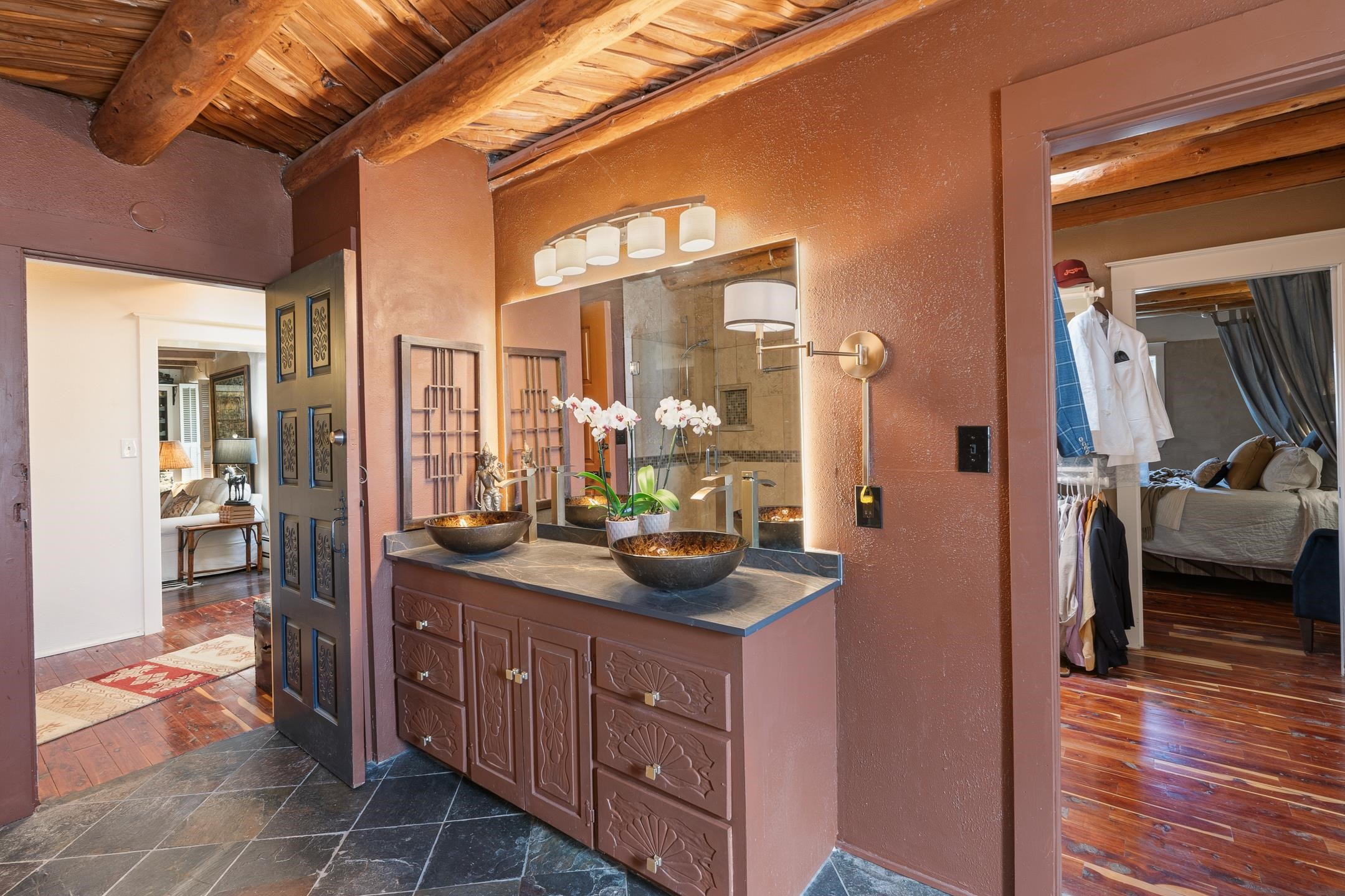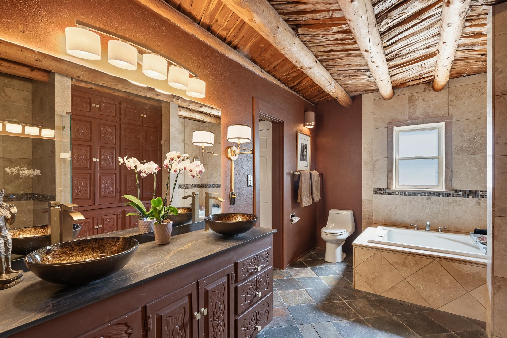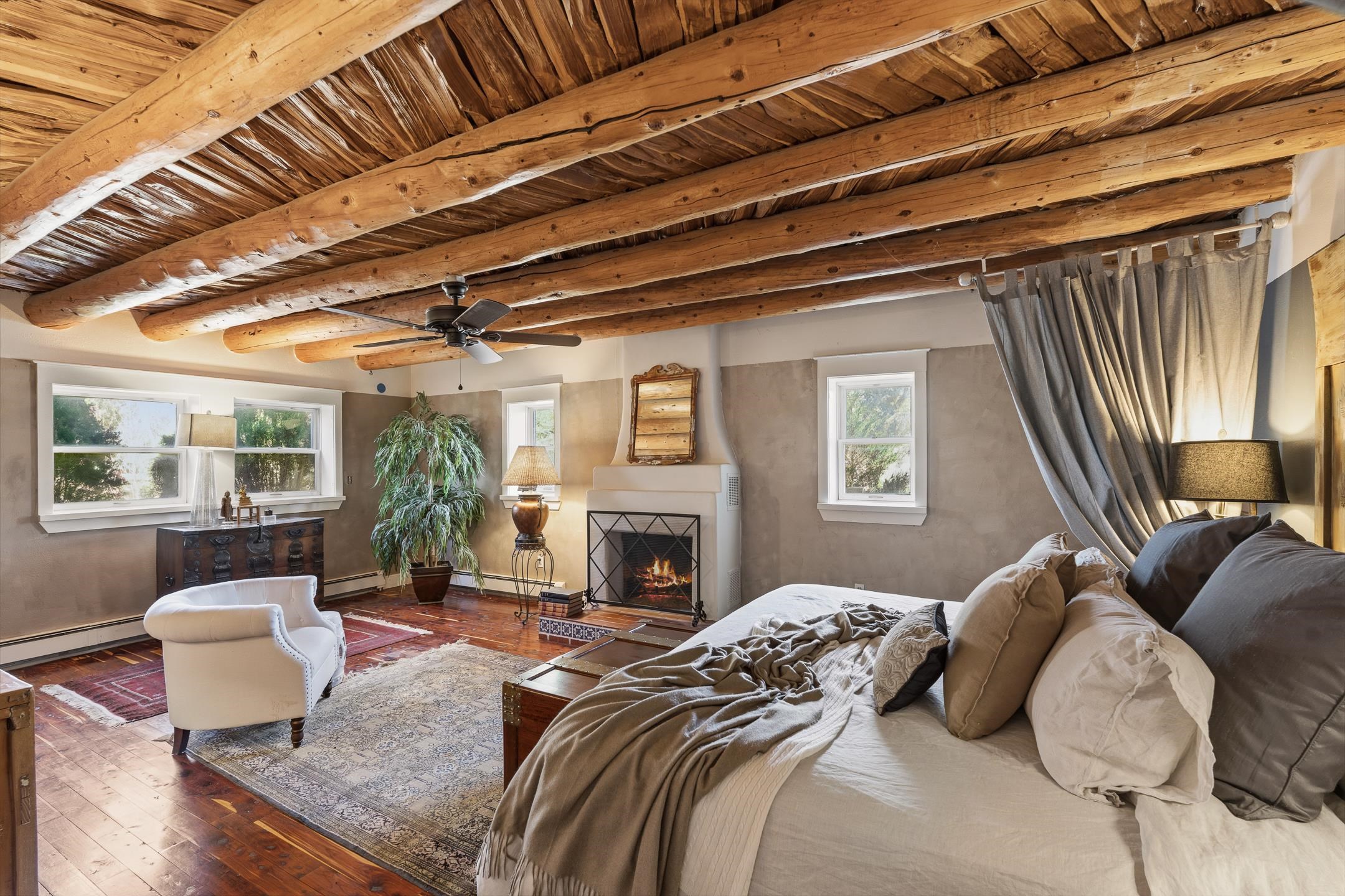 222 State Road 240 -Timeless charm and modern luxury in this stunning 4,030 sq. ft. adobe hacienda is a rare find in the highly desirable historic and agricultural Cordillera area of Ranchos de Taos. This serene setting is just 2 miles from Taos Plaza and 16 miles from the world class skiing of Taos ski valley. Spanish architecture has been blended with the influence of Taos Pueblo, (a Unesco world heritage site), and is reflected in the natural building materials , skylights, vigas, nichos, fireplaces and color palette. Original portion of the building is said to have been built in the 1800's several additions have followed, the largest in 1949 and 1977. This 3-bedroom, 3.5-bathroom hacienda sits on 3.34 serene acres, surrounded by mature trees, a traditional low adobe wall, and the natural beauty of the high desert. The acequia flows just near the back porch allowing for the tranquil sound of water to be enjoyed and used to keep the land lush. The outdoor living spaces have been carefully curated and invite entertaining or simple meditative space. From the moment you step inside, the home's character is unmistakable. Thick adobe walls, built-in storage, nichos, and five fireplaces infuse warmth and tradition throughout. The primary suite is a true retreat, complete with its own fireplace, an ensuite bathroom with a walk-in shower and separate tub, and an oversized closet with built-in storage. The home has undergone extensive updates while maintaining its historic integrity, making it a perfect property for short term rental. Turn key option is available, as well as a vintage Jaguar. The property has also received significant roof improvements, ensuring its longevity and durability. Beyond the main residence, an original studio with electricity offers endless possibilities as a creative workspace or private office. Additional outbuildings provide storage and functionality, while the sprawling acreage offers ample space for horses or future expansion. This extraordinary home embodies the essence of New Mexico's history, craftsmanship, and timeless appeal. If you've been searching for an authentic adobe estate with character, history, and modern conveniences, look no further--this is the one.