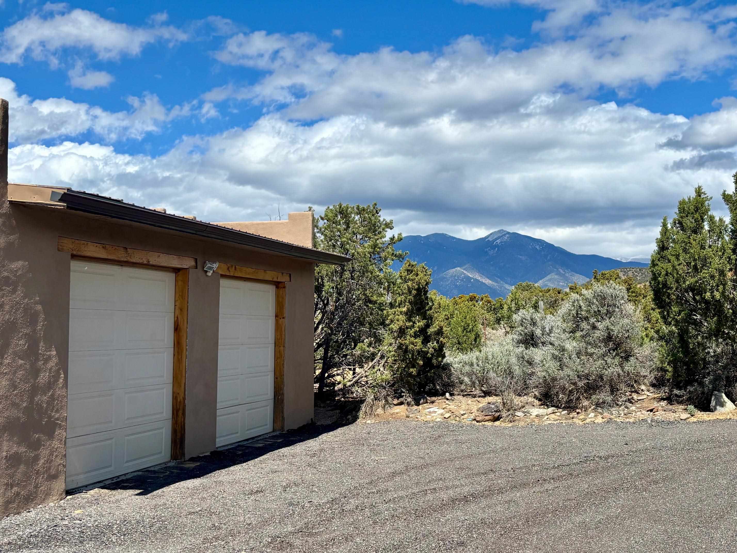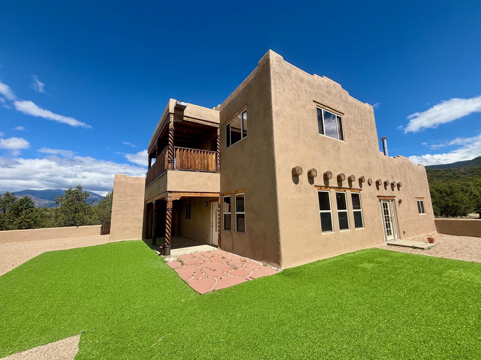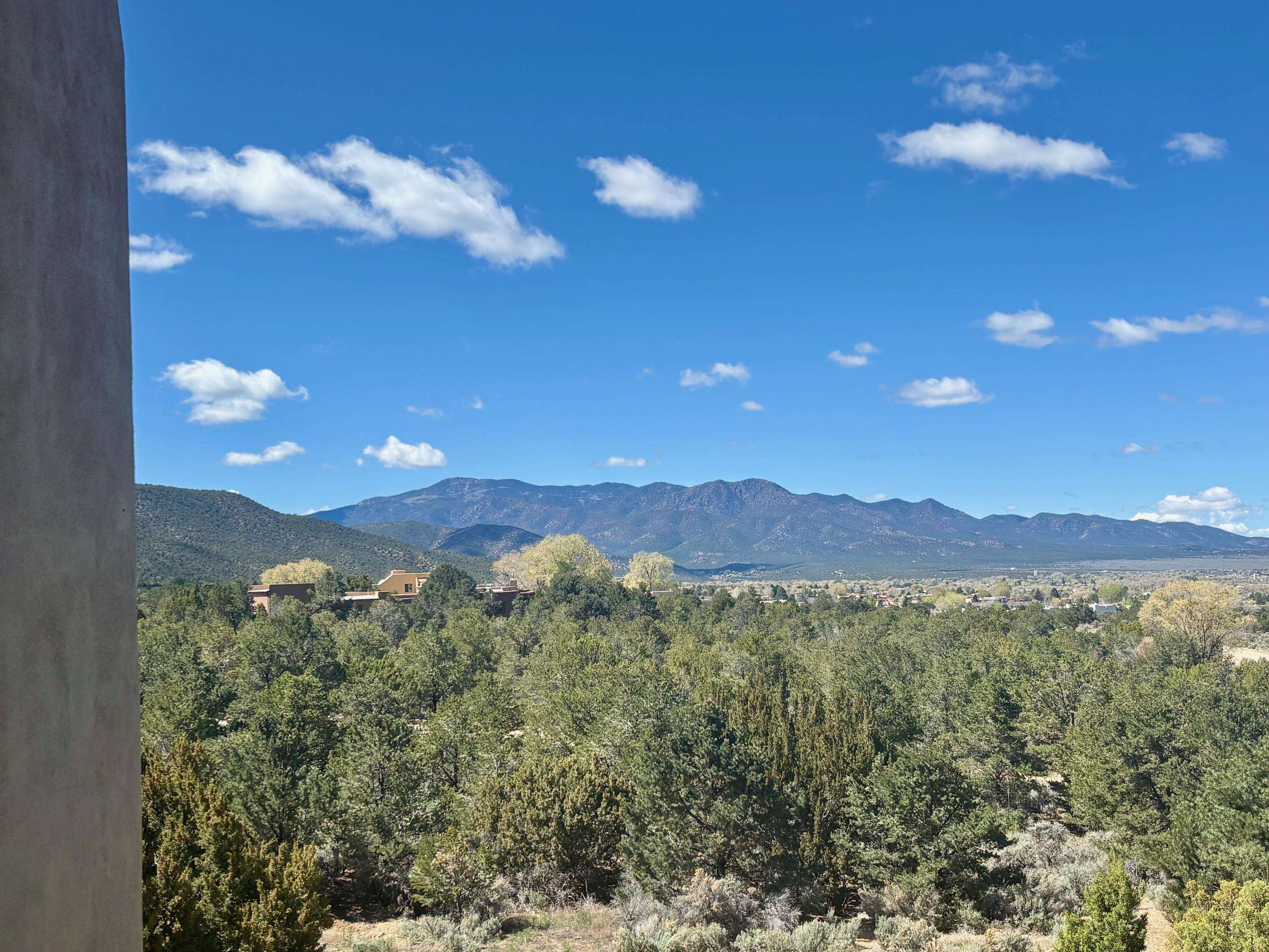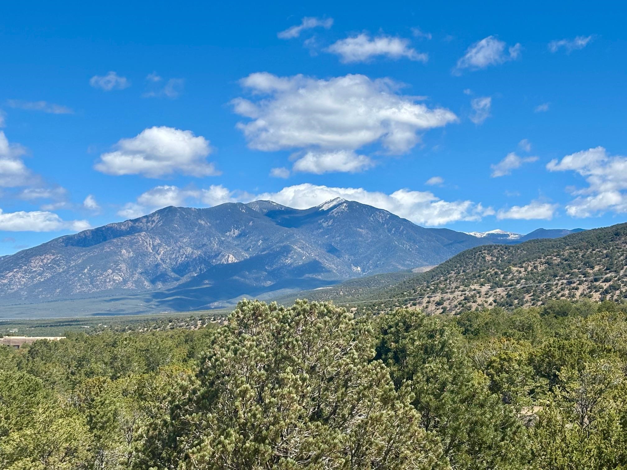 Featuring a 3-bedroom, 3-bathroom house nestled at the base of the Weimer foothills. Has ample living space with 3,026 square feet. The living room is comfortable and relaxed. The dining room is spacious. The kitchen is semi-private. The house has stainless steel appliances. The ceilings have vigas and tongue and groove wood. Some rooms have just tongue and grove. The house has diamond finish plaster. Attached to the house is an oversized two-car garage. The landscaping is amazing featuring several court yards and many trees. The back/side yard have artificial turf. Weimer is a highly desirable neighborhood for many reasons, among which are the sublime panoramic views. This house is located close the hospital and medical plaza and all the amenities the Town of Taos has to offer, including shopping, dining, galleries, and museums. This house enjoys the most amazing views of Taos Mountain along with superb views of the majestic Taos sunsets from the upper deck. All this on 2.99 acres of forested land. This house is very private and secluded. The private road to the house has pavement millings ensuring no dust. The last five pictures were taken from the primary bedroom upstairs deck. Amazing views, amazing views, amazing views.!!!