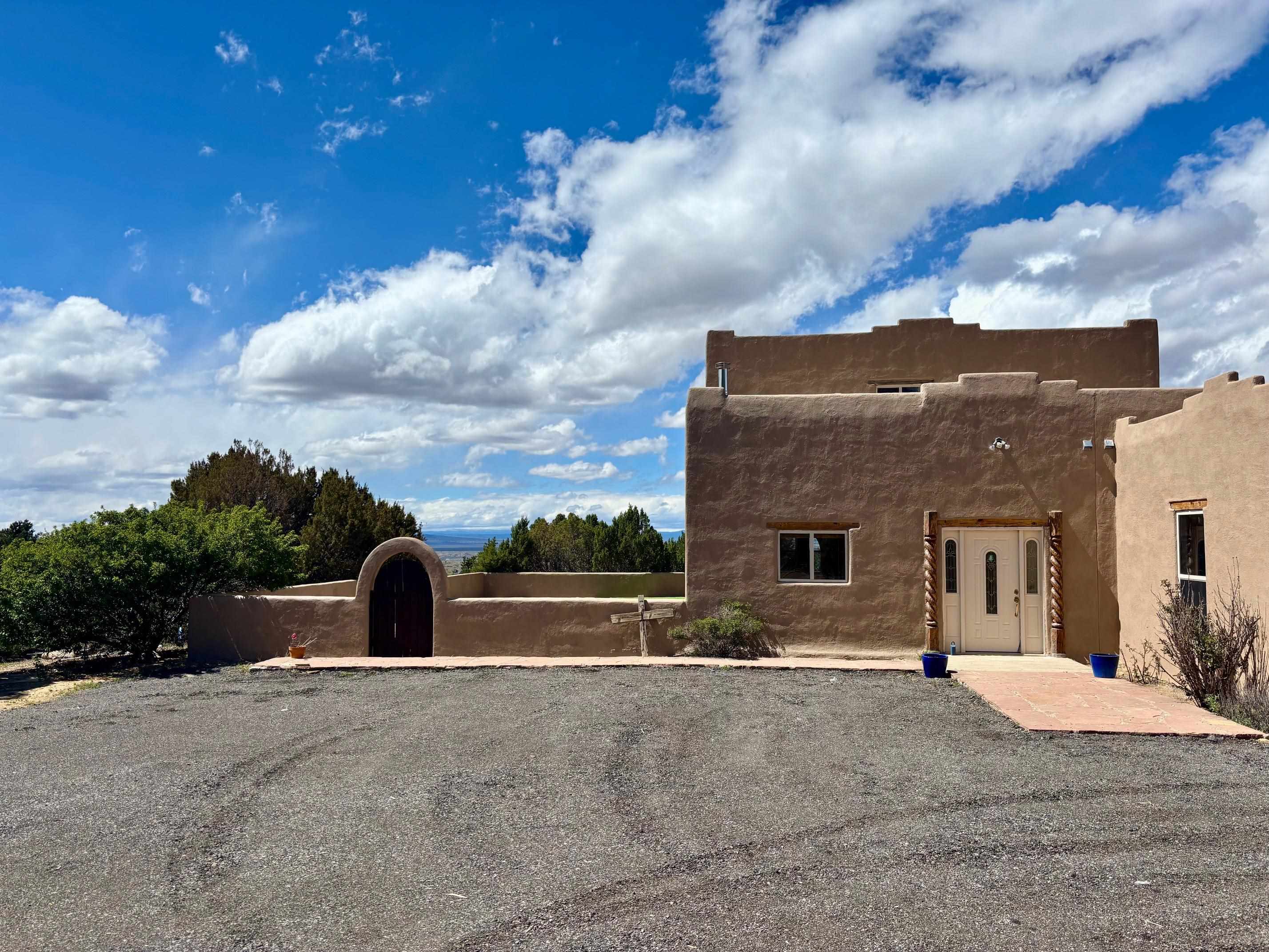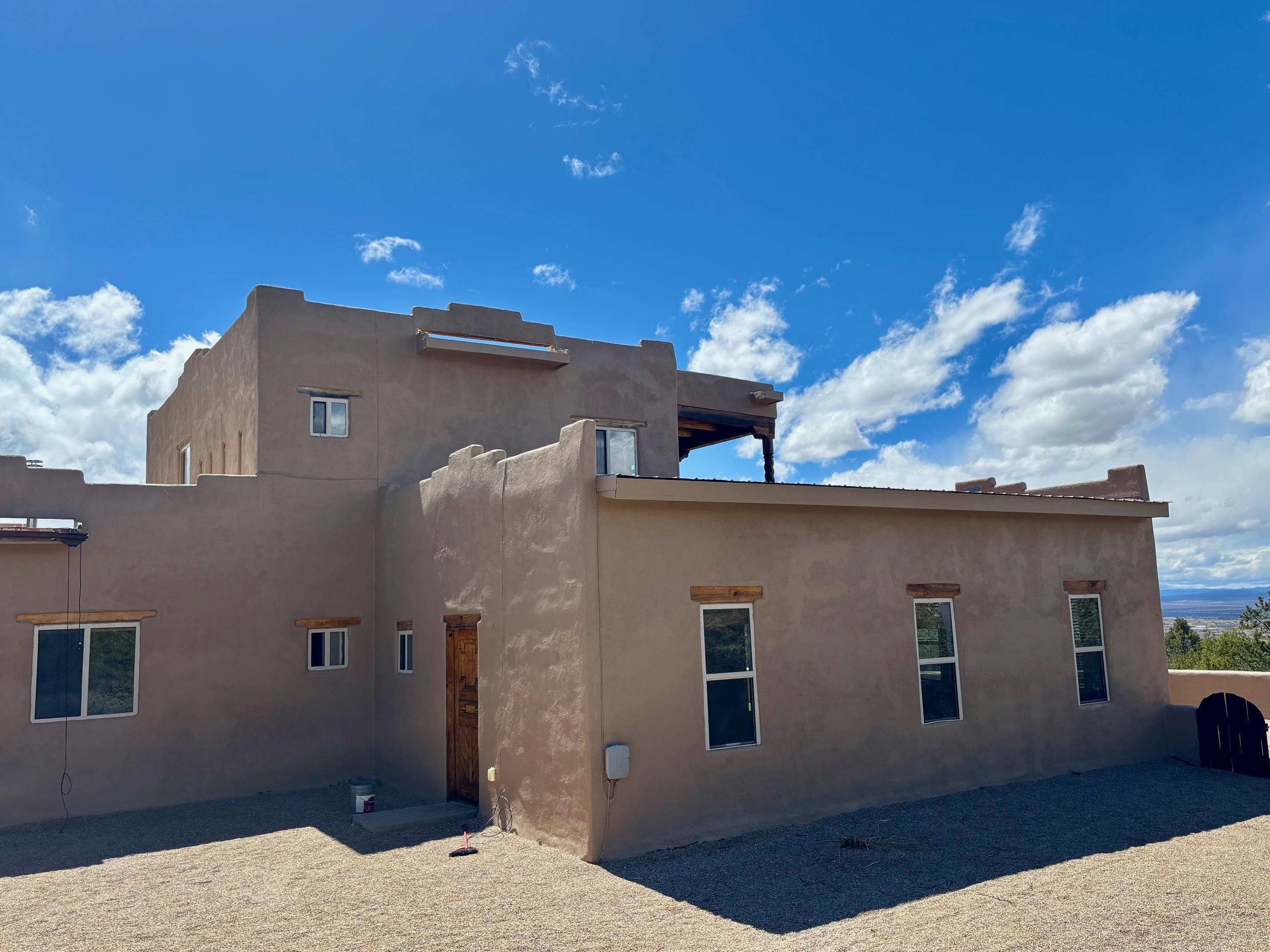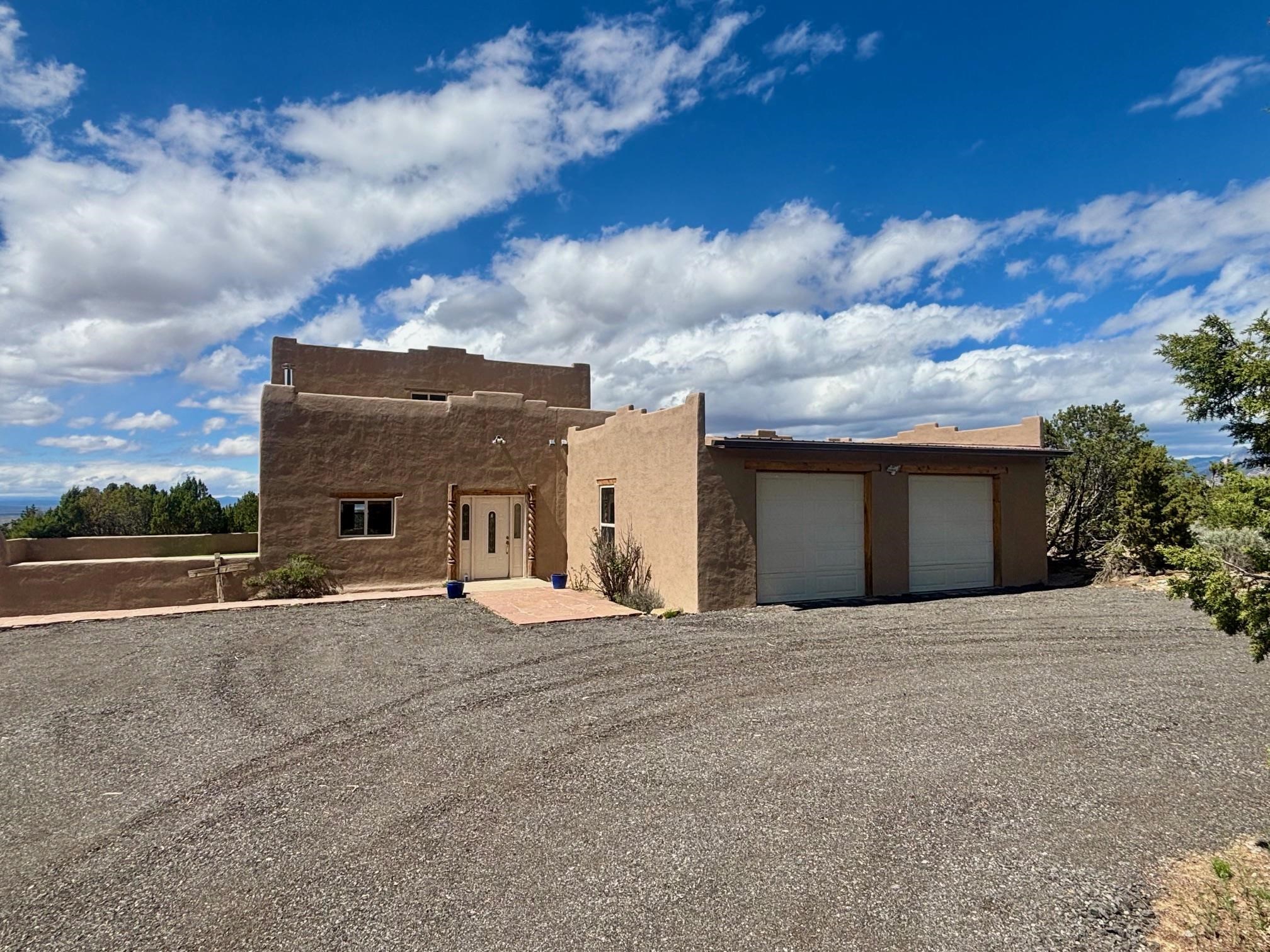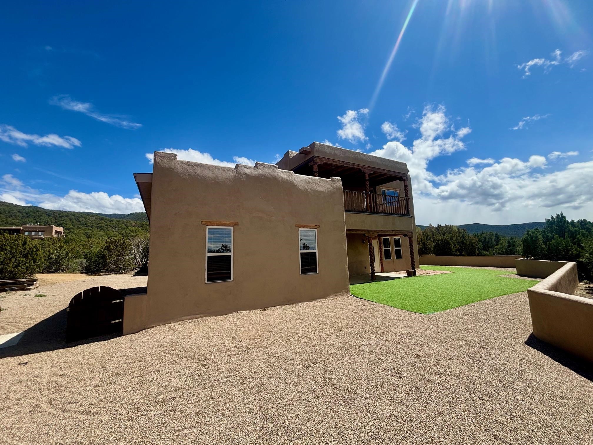 Featuring a 3-bedroom, 3-bathroom house nestled at the base of the Weimer foothills. Has ample living space with 3,026 square feet. The living room is comfortable and relaxed. The dining room is spacious. The kitchen is semi-private. The house has stainless steel appliances. The ceilings have vigas and tongue and groove wood. Some rooms have just tongue and grove. The house has diamond finish plaster. Attached to the house is an oversized two-car garage. The landscaping is amazing featuring several court yards and many trees. The back/side yard have artificial turf. Weimer is a highly desirable neighborhood for many reasons, among which are the sublime panoramic views. This house is located close the hospital and medical plaza and all the amenities the Town of Taos has to offer, including shopping, dining, galleries, and museums. This house enjoys the most amazing views of Taos Mountain along with superb views of the majestic Taos sunsets from the upper deck. All this on 2.99 acres of forested land. This house is very private and secluded. The private road to the house has pavement millings ensuring no dust. The last five pictures were taken from the primary bedroom upstairs deck. Amazing views, amazing views, amazing views.!!!