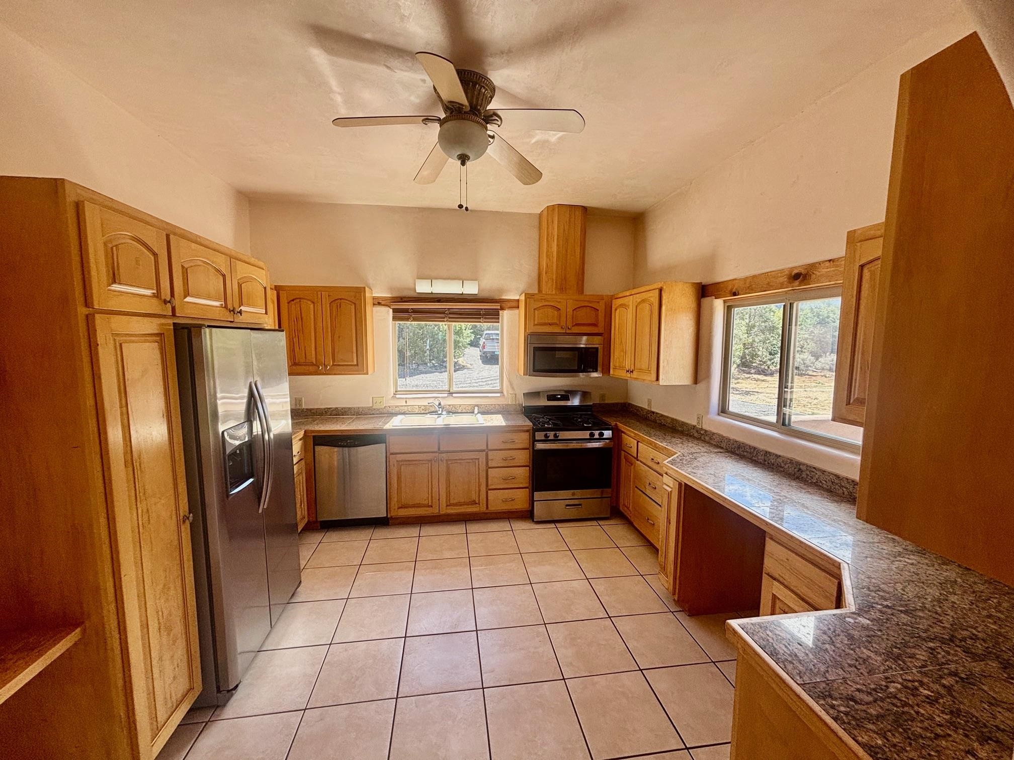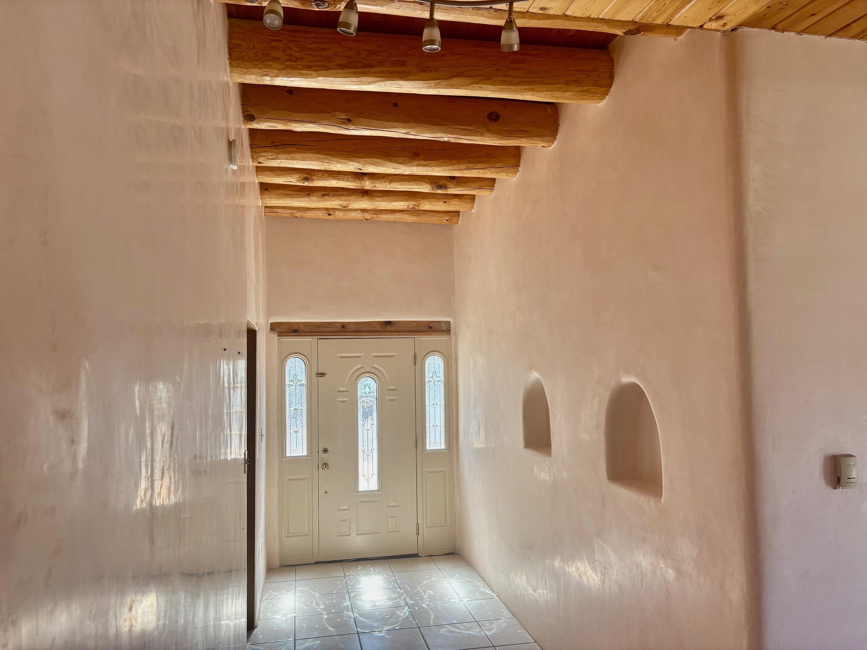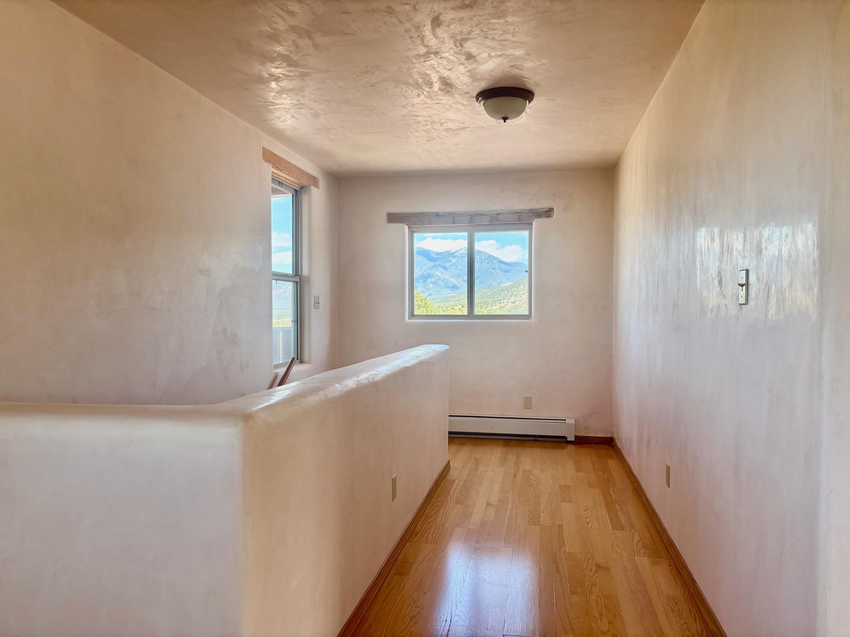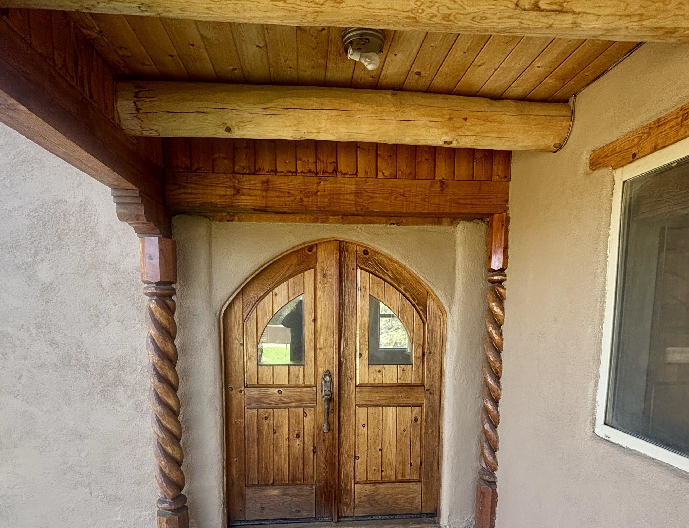 Featuring a 3-bedroom, 3-bathroom house nestled at the base of the Weimer foothills. Has ample living space with 3,026 square feet. The living room is comfortable and relaxed. The dining room is spacious. The kitchen is semi-private. The house has stainless steel appliances. The ceilings have vigas and tongue and groove wood. Some rooms have just tongue and grove. The house has diamond finish plaster. Attached to the house is an oversized two-car garage. The landscaping is amazing featuring several court yards and many trees. The back/side yard have artificial turf. Weimer is a highly desirable neighborhood for many reasons, among which are the sublime panoramic views. This house is located close the hospital and medical plaza and all the amenities the Town of Taos has to offer, including shopping, dining, galleries, and museums. This house enjoys the most amazing views of Taos Mountain along with superb views of the majestic Taos sunsets from the upper deck. All this on 2.99 acres of forested land. This house is very private and secluded. The private road to the house has pavement millings ensuring no dust. The last five pictures were taken from the primary bedroom upstairs deck. Amazing views, amazing views, amazing views.!!!